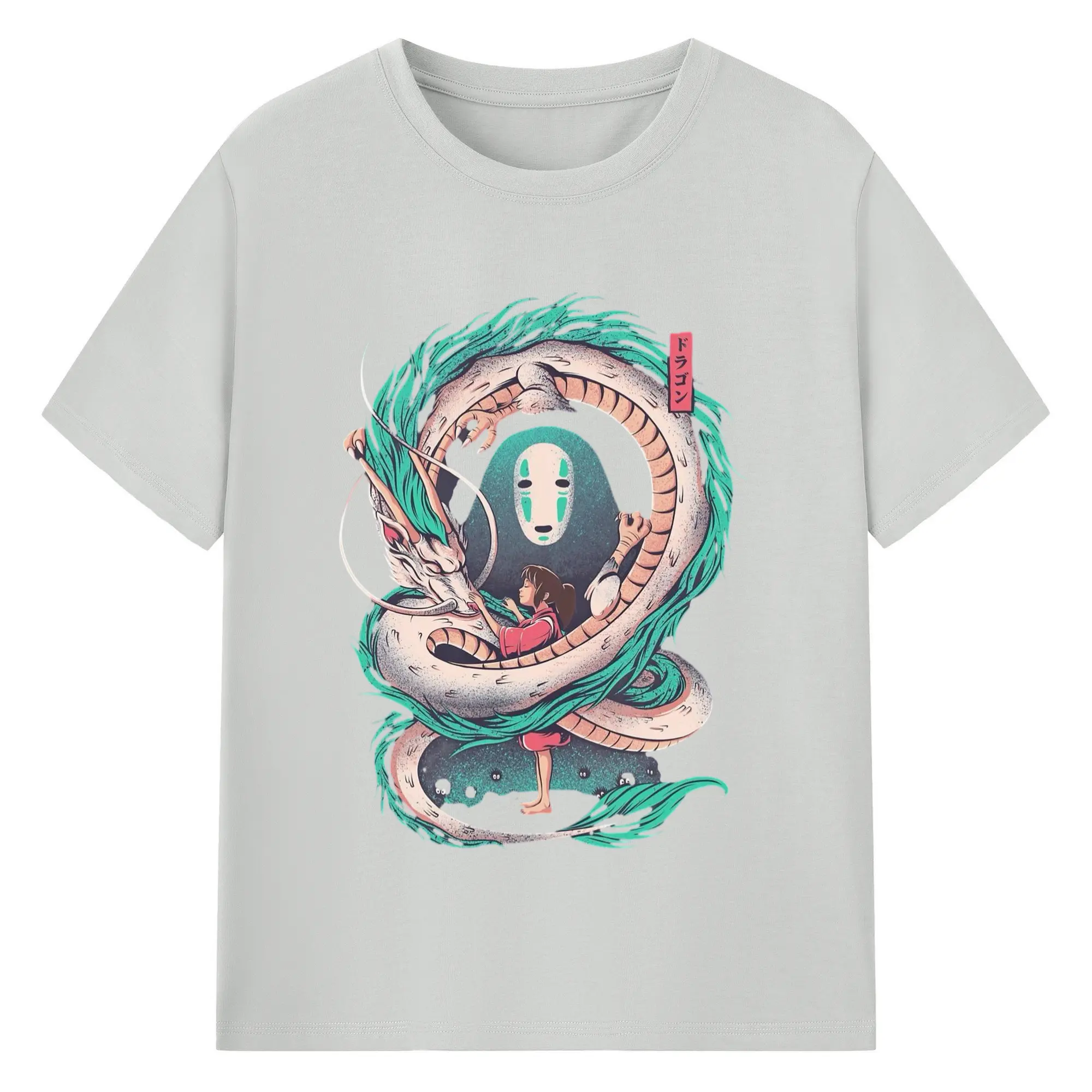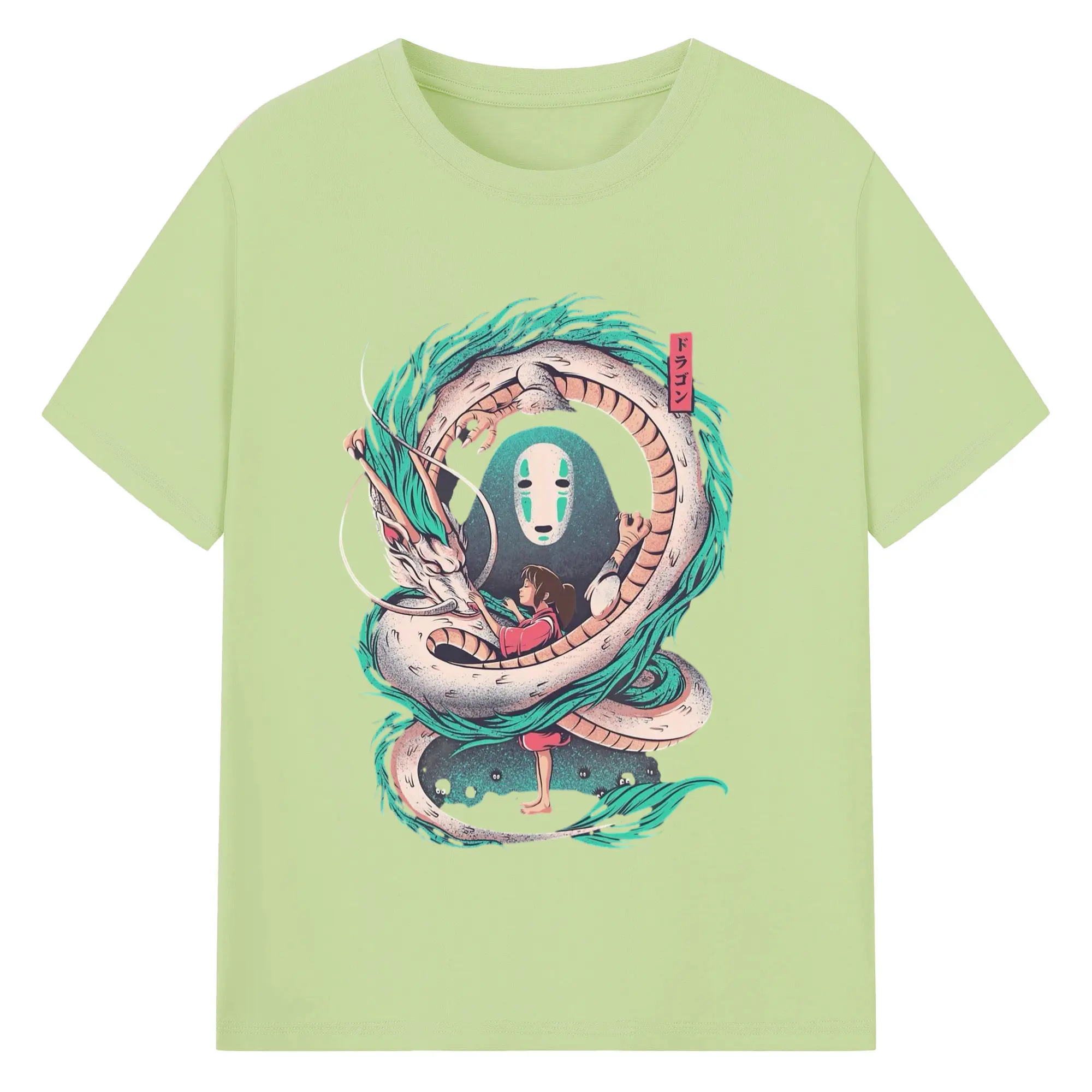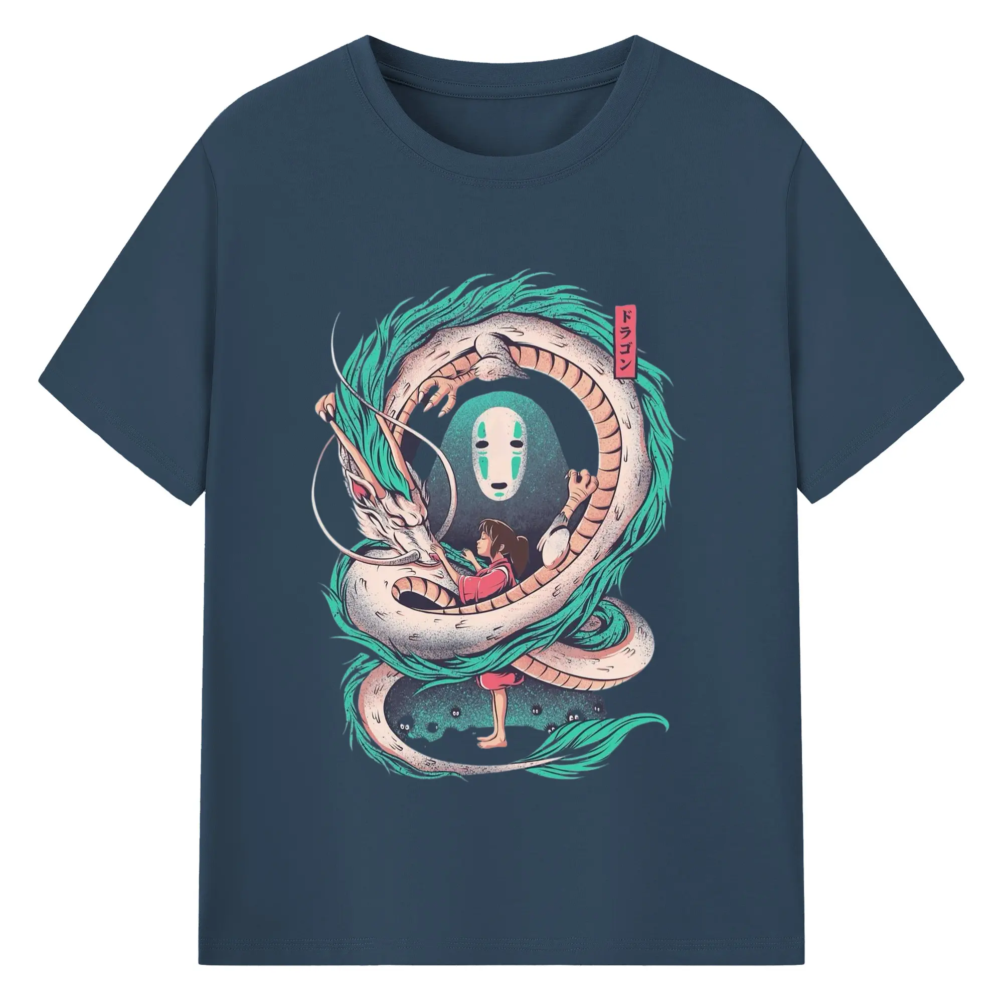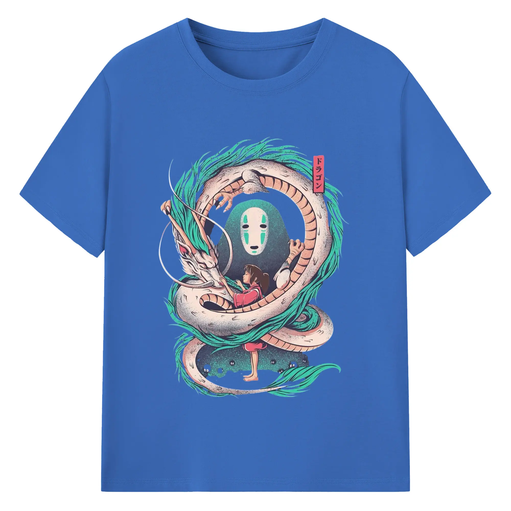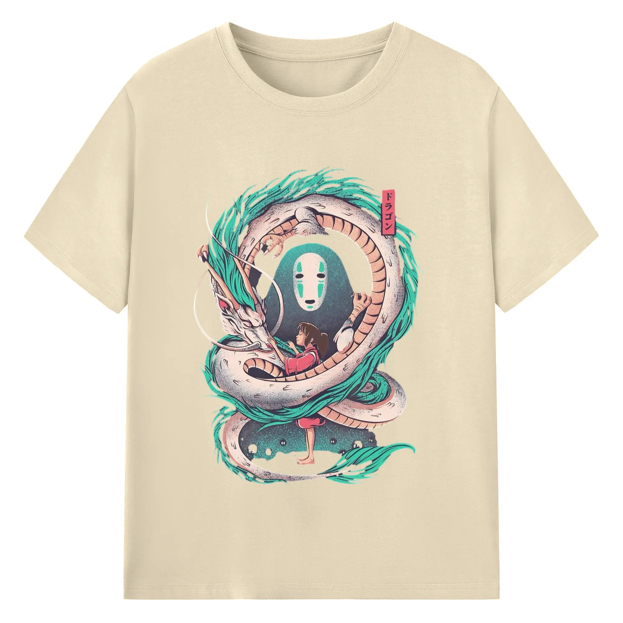 千と千尋の神隠し 白龍と千尋の絆 - 綿100% ヴィンテージ風 半袖Tシャツ ・ フロントプリント ・ 柔らか肌触り ・ 通気性 快適 ・ スポーツ カジュアル 外出用