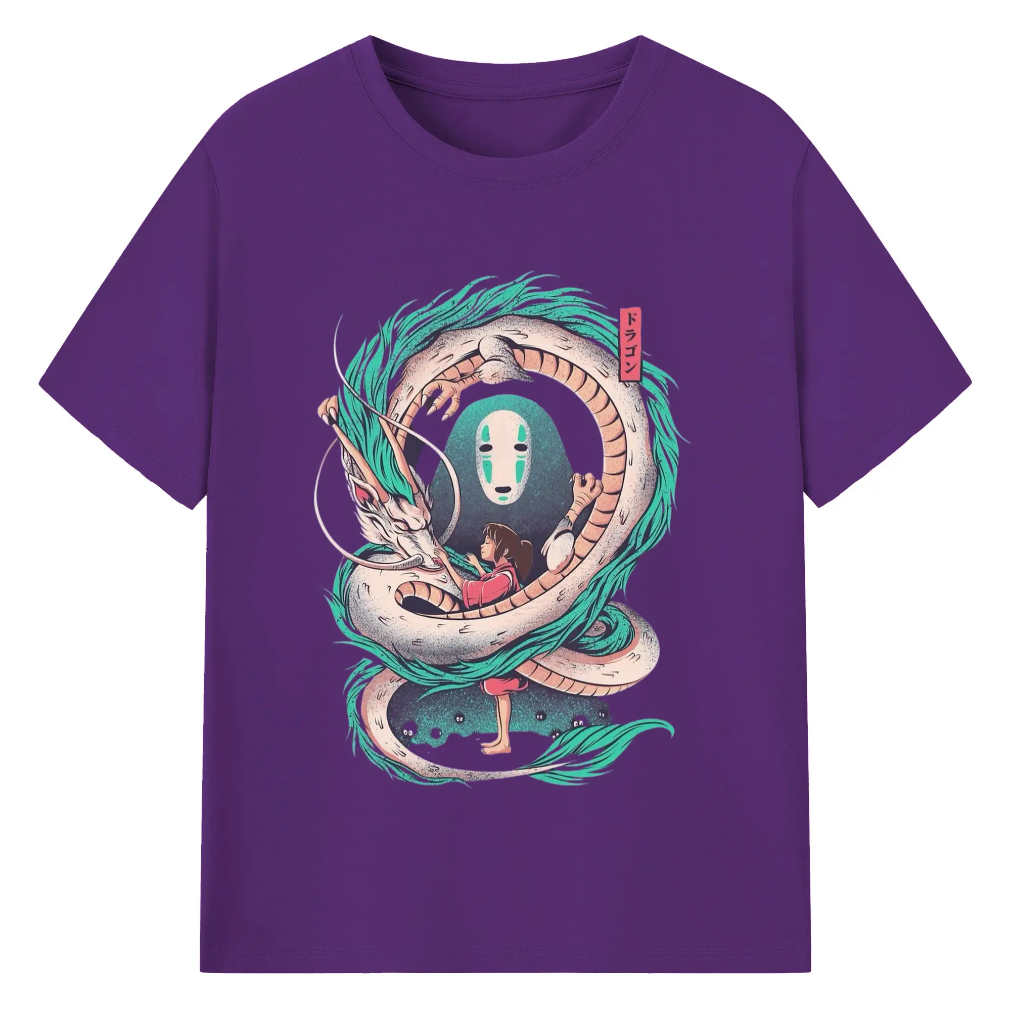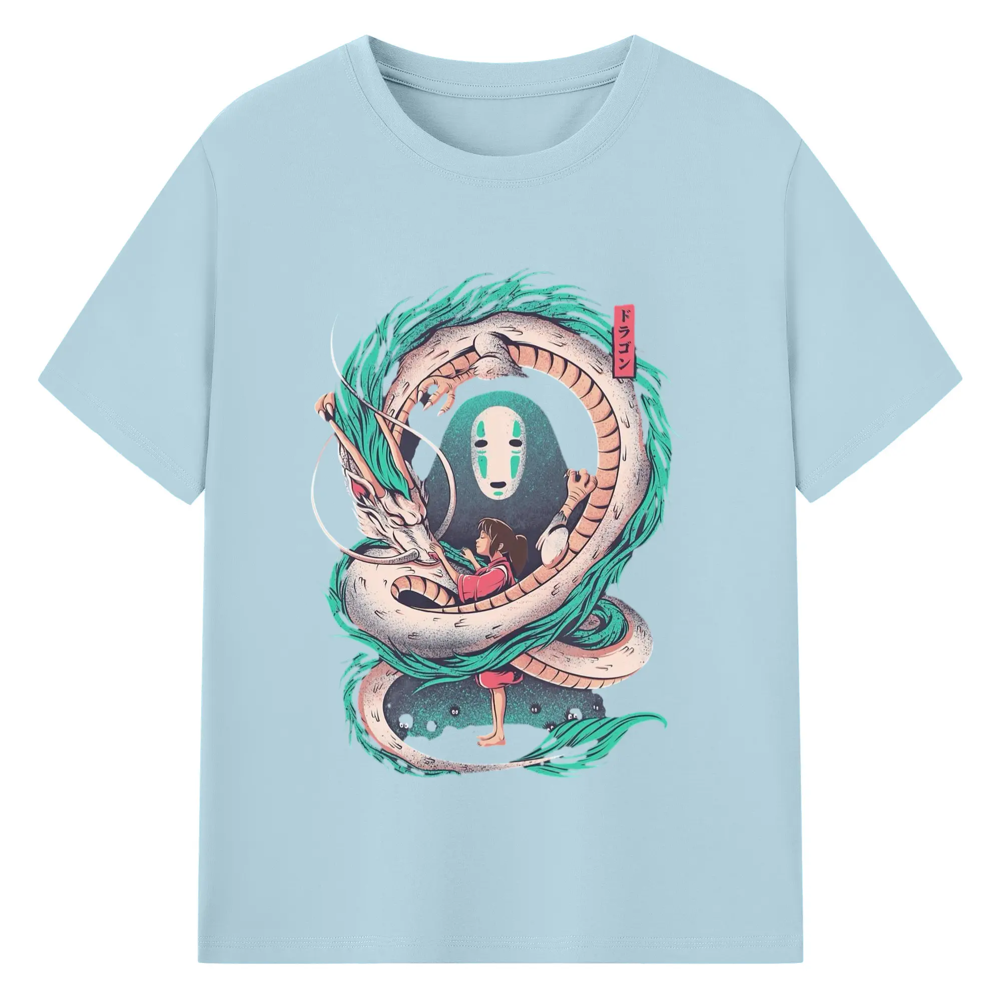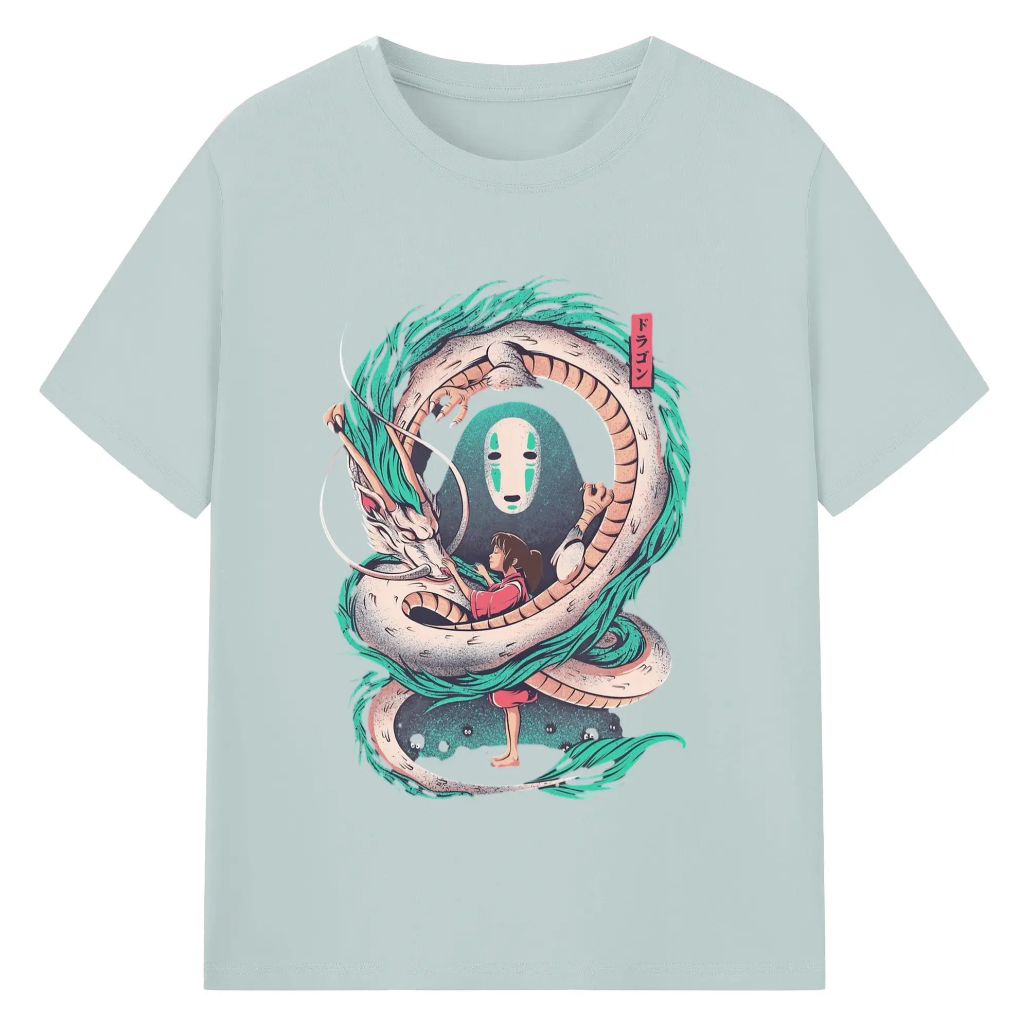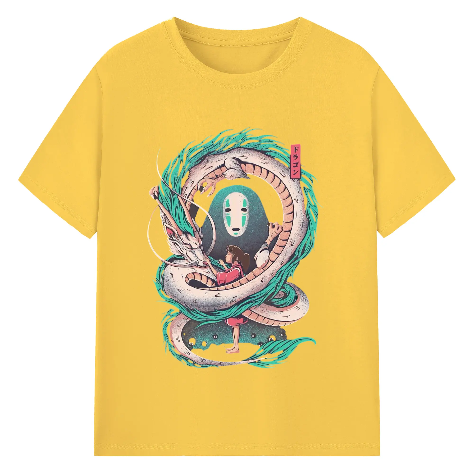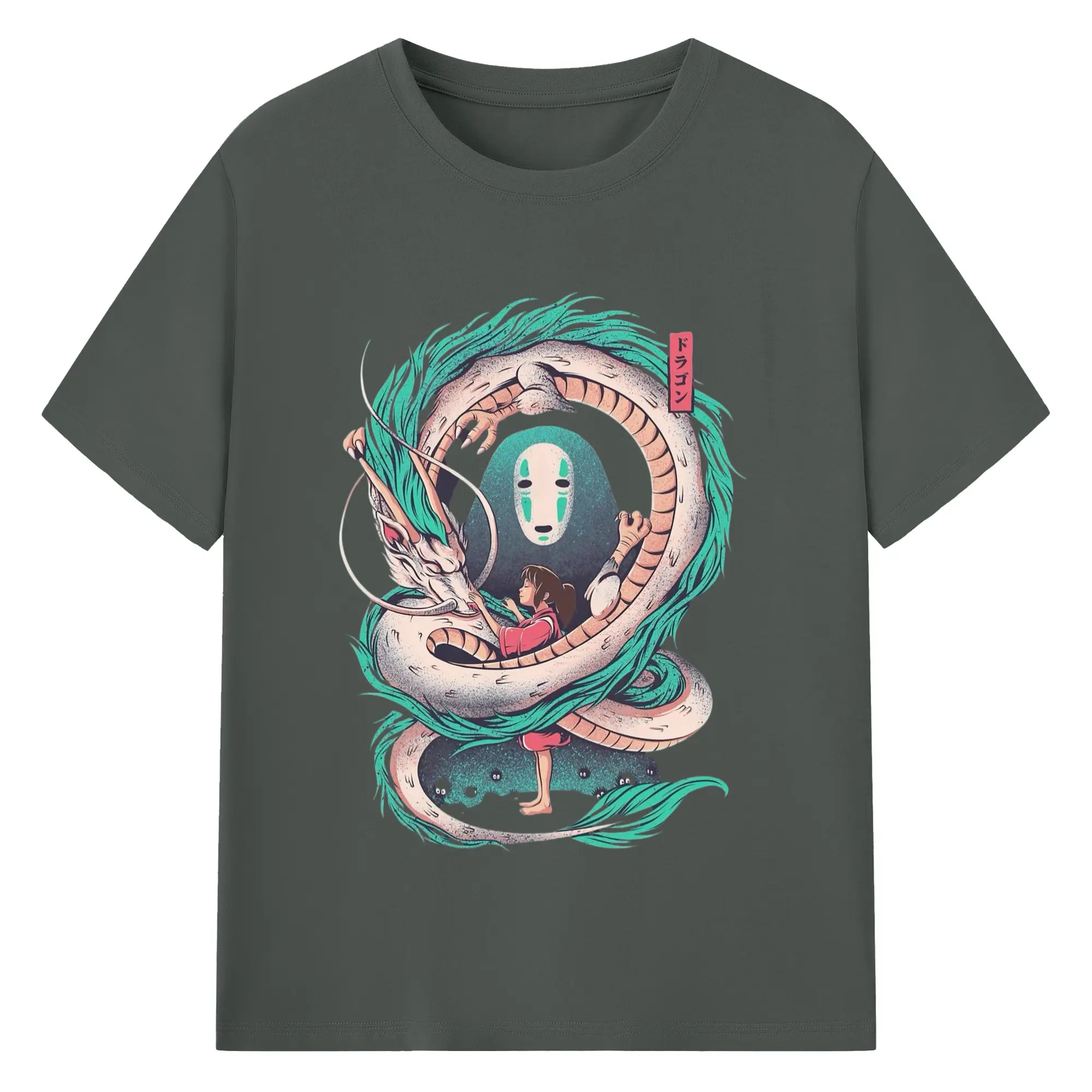 千と千尋の神隠し 白龍と千尋の絆 - 綿100% ヴィンテージ風 半袖Tシャツ ・ フロントプリント ・ 柔らか肌触り ・ 通気性 快適 ・ スポーツ カジュアル 外出用
