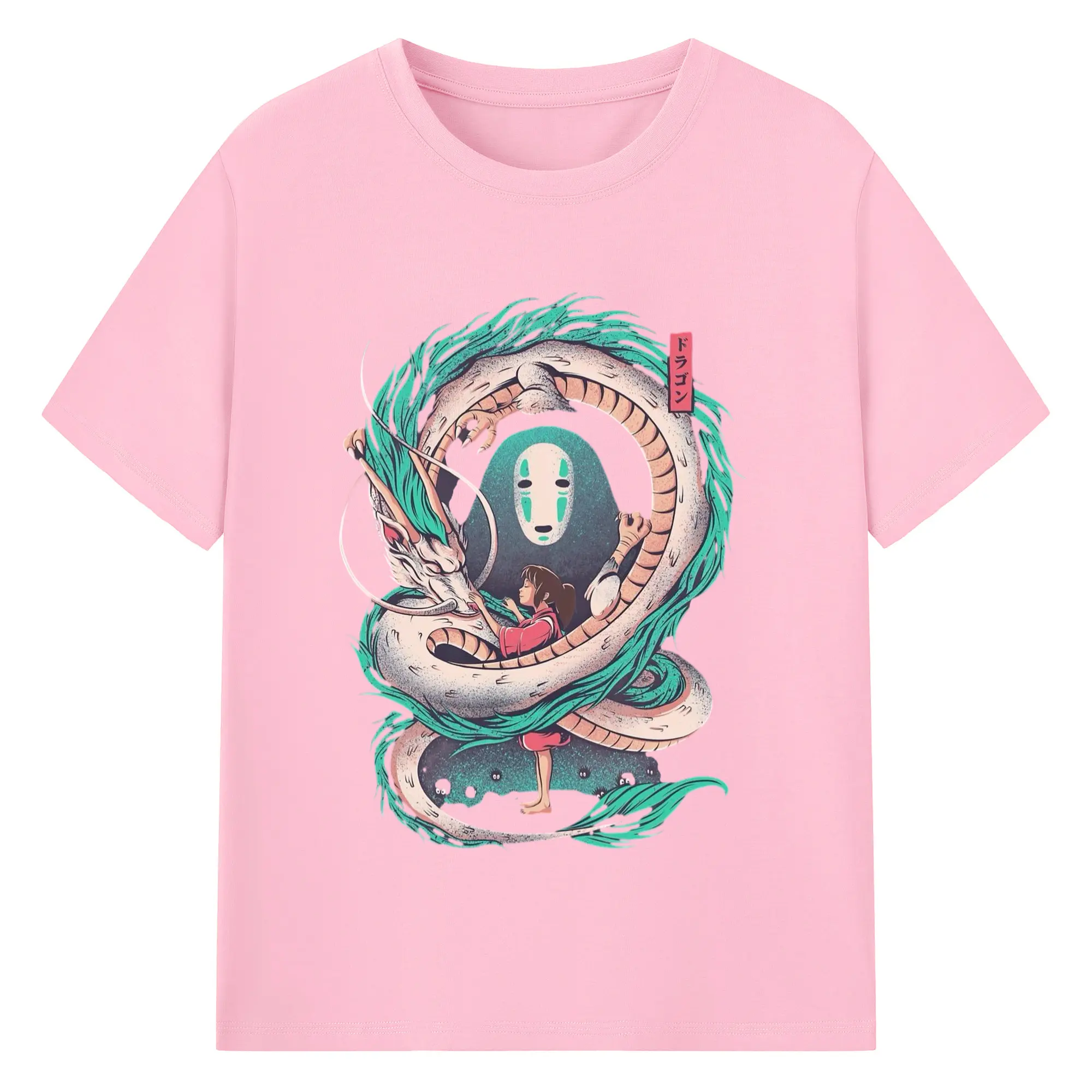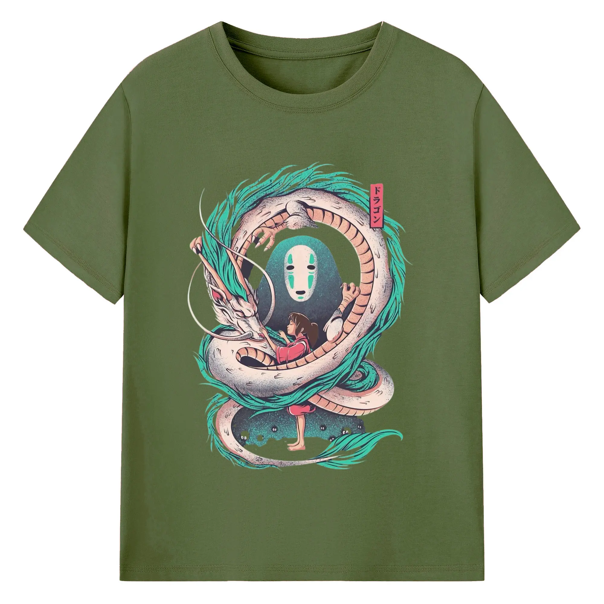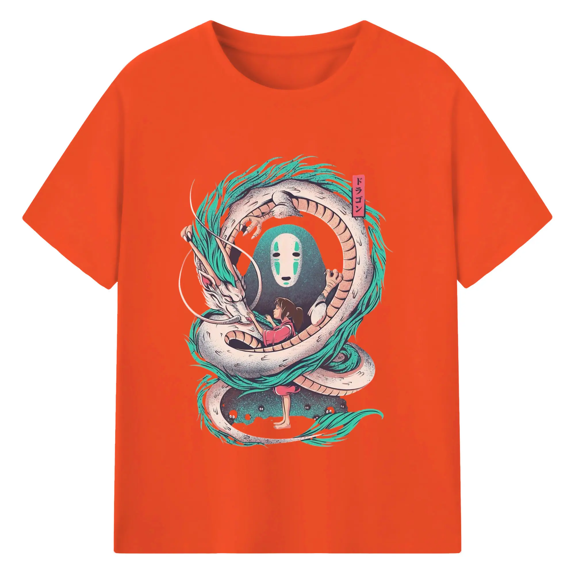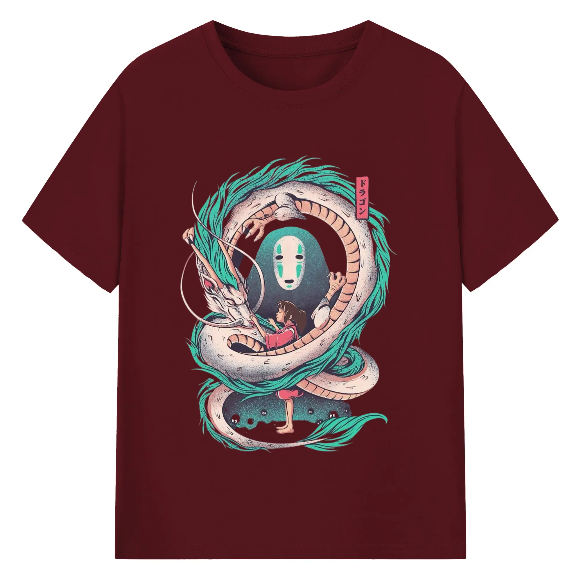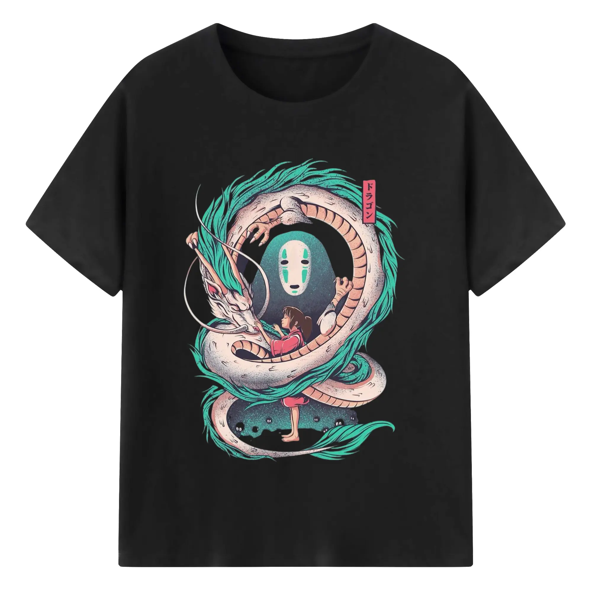 千と千尋の神隠し 白龍と千尋の絆 - 綿100% ヴィンテージ風 半袖Tシャツ ・ フロントプリント ・ 柔らか肌触り ・ 通気性 快適 ・ スポーツ カジュアル 外出用