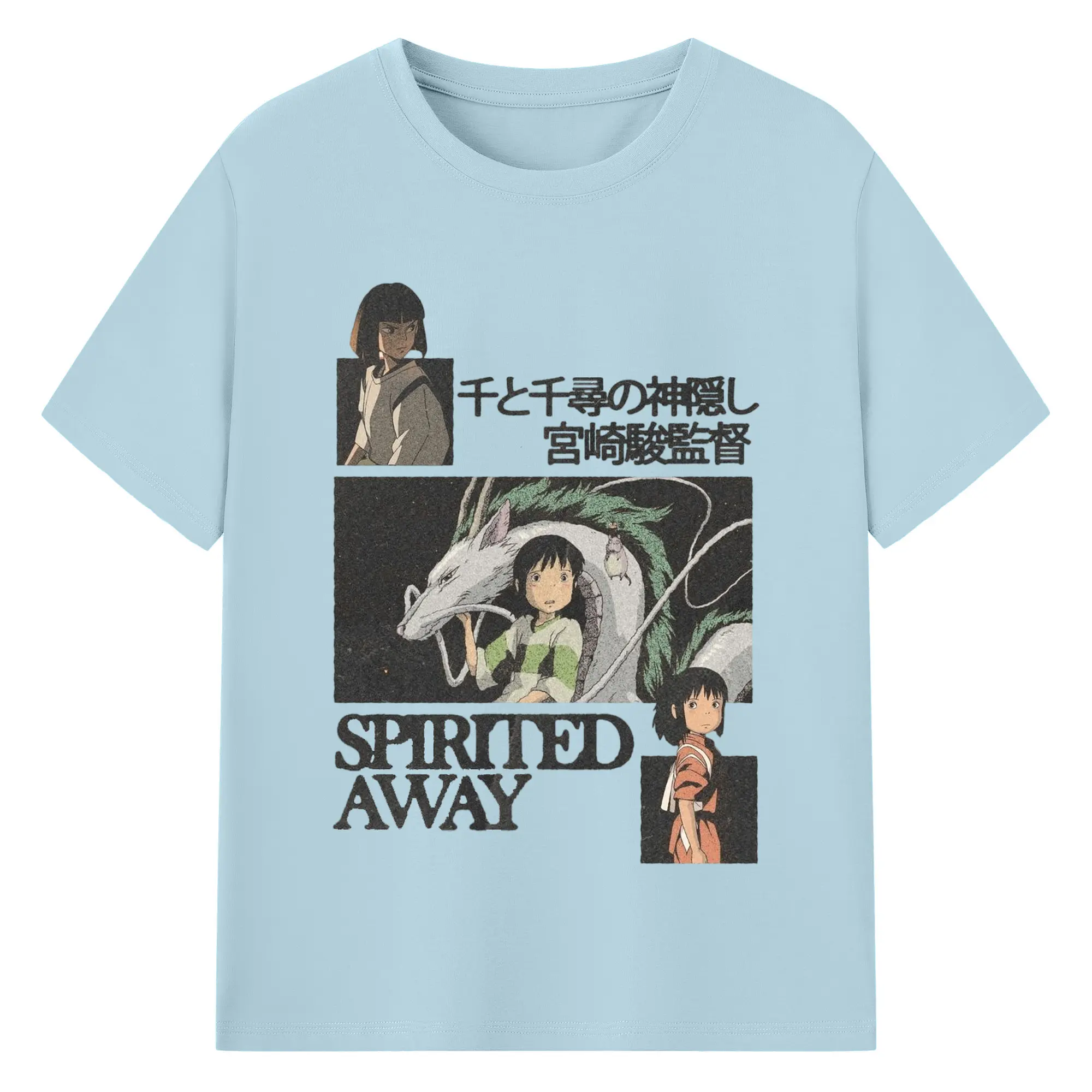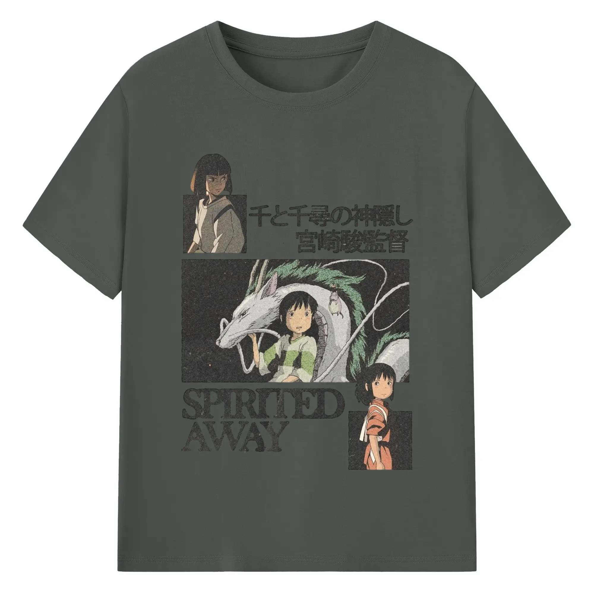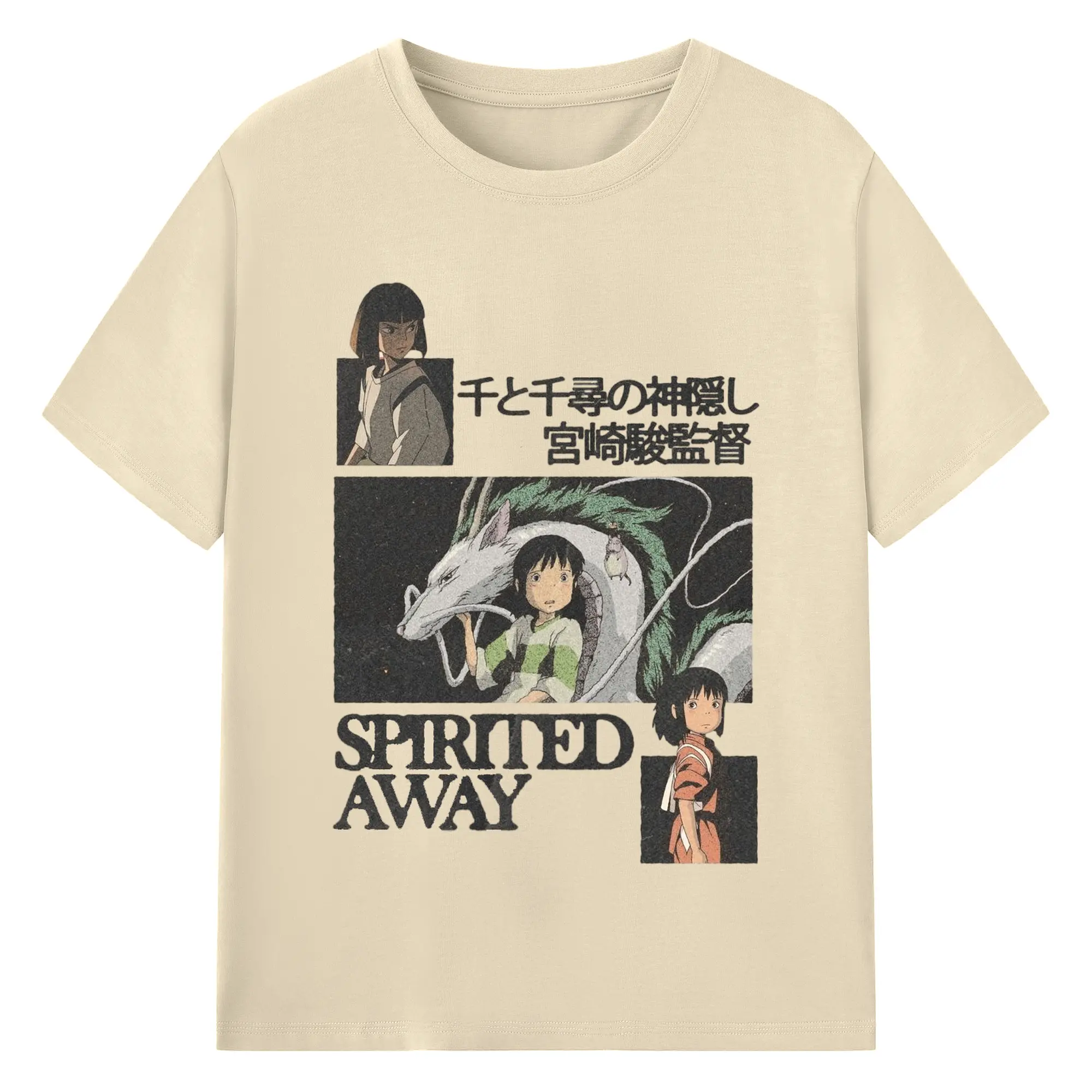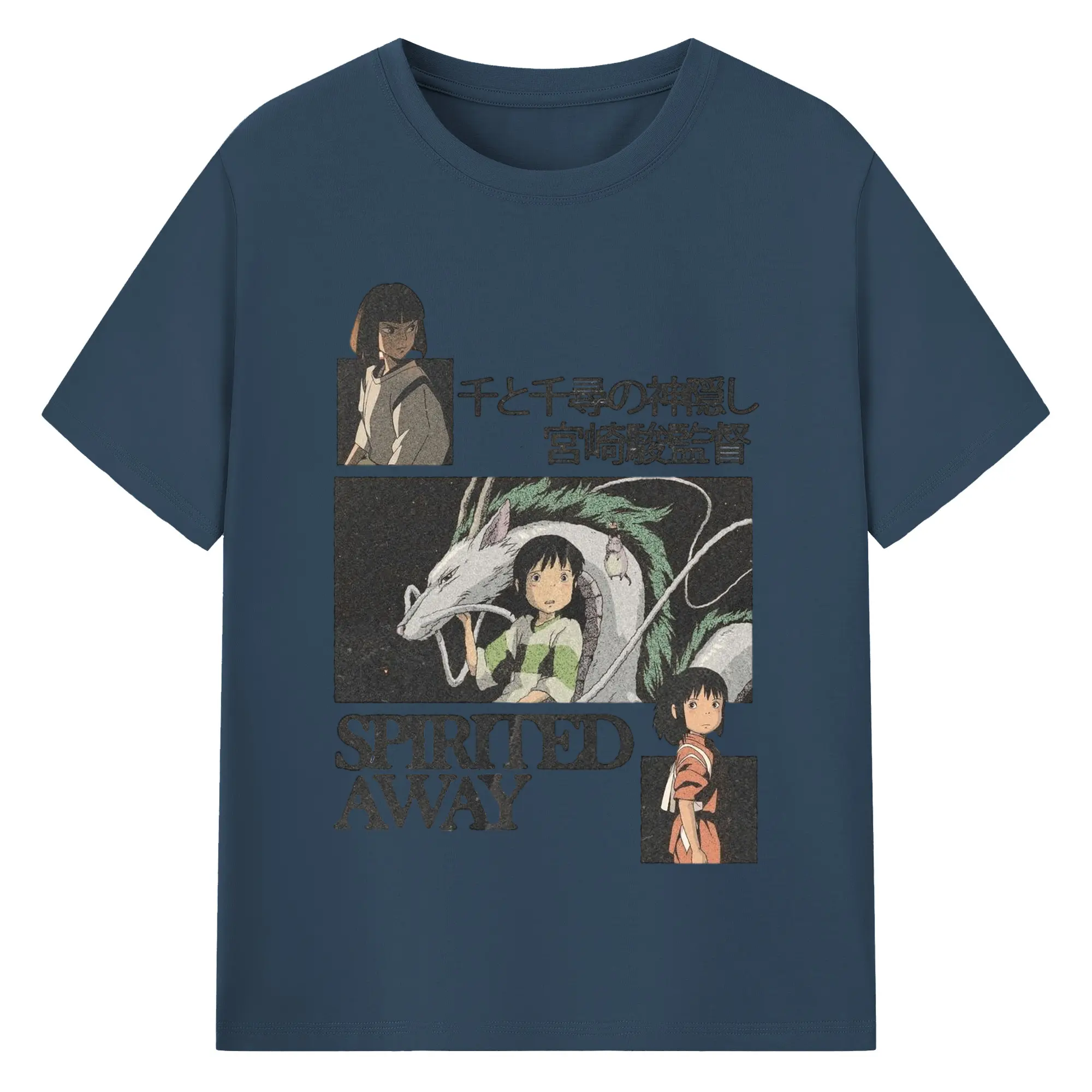 千と千尋の神隠し千尋とハク 宮崎駿監督 - 綿100% ヴィンテージ風 半袖Tシャツ ・ フロントプリント ・ 柔らか肌触り ・ 通気性 快適 ・ スポーツ カジュアル 外出用
