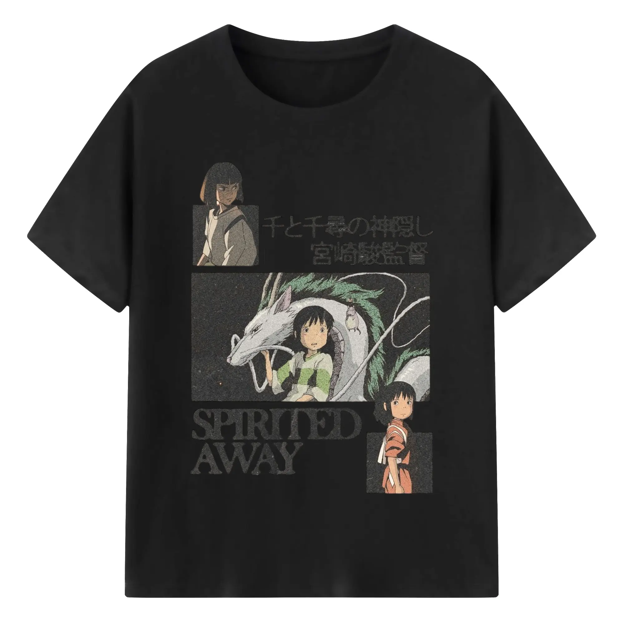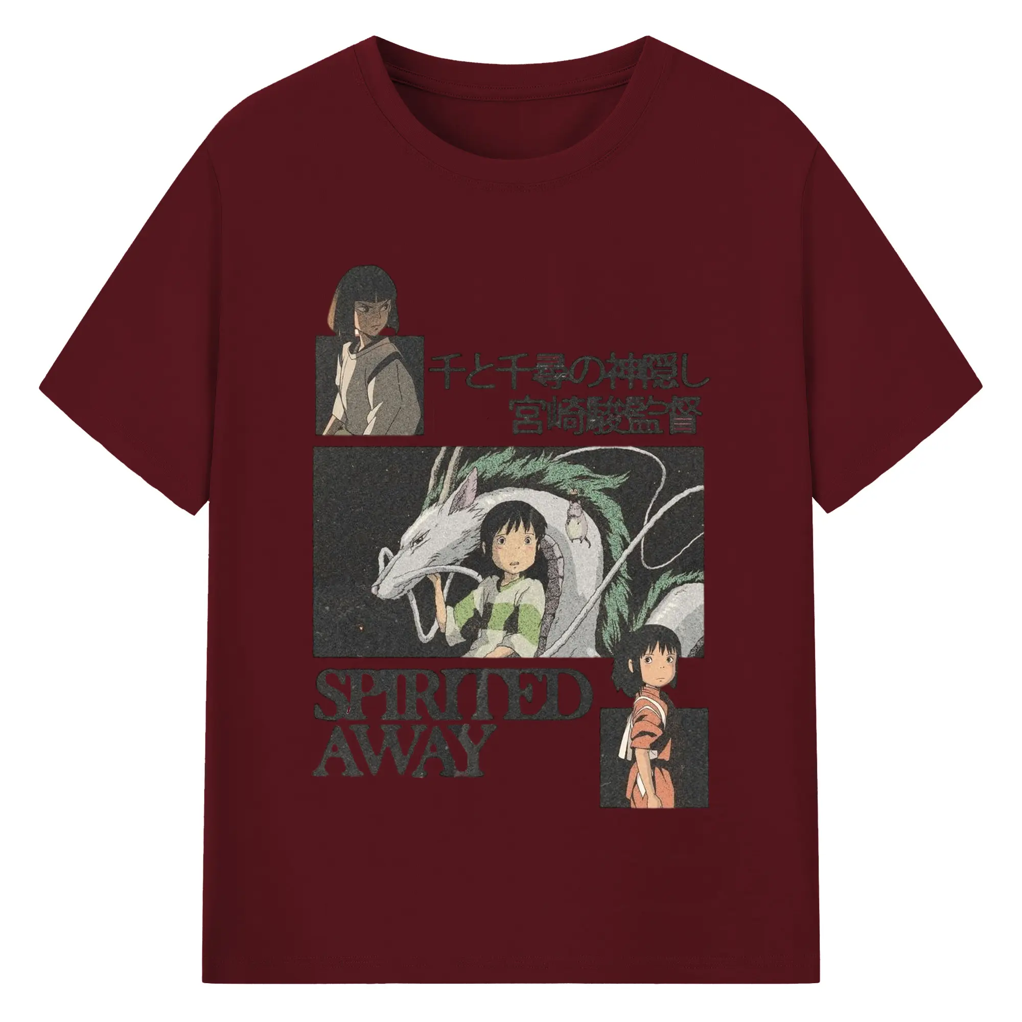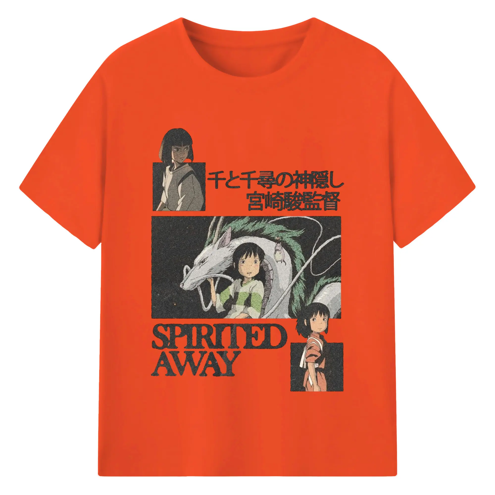 千と千尋の神隠し千尋とハク 宮崎駿監督 - 綿100% ヴィンテージ風 半袖Tシャツ ・ フロントプリント ・ 柔らか肌触り ・ 通気性 快適 ・ スポーツ カジュアル 外出用