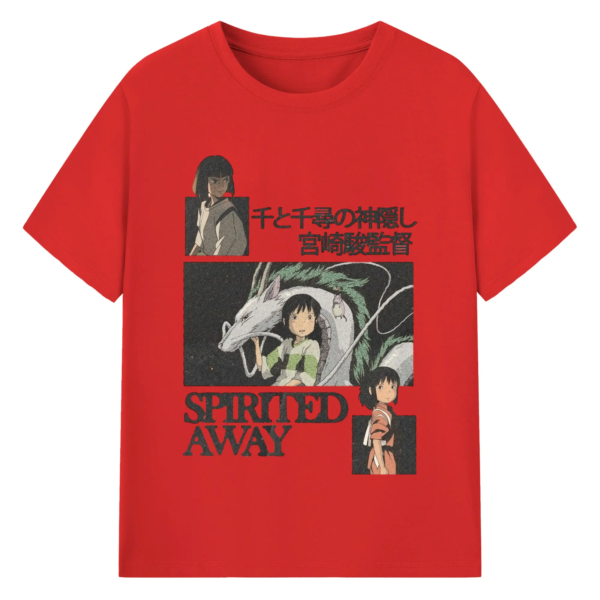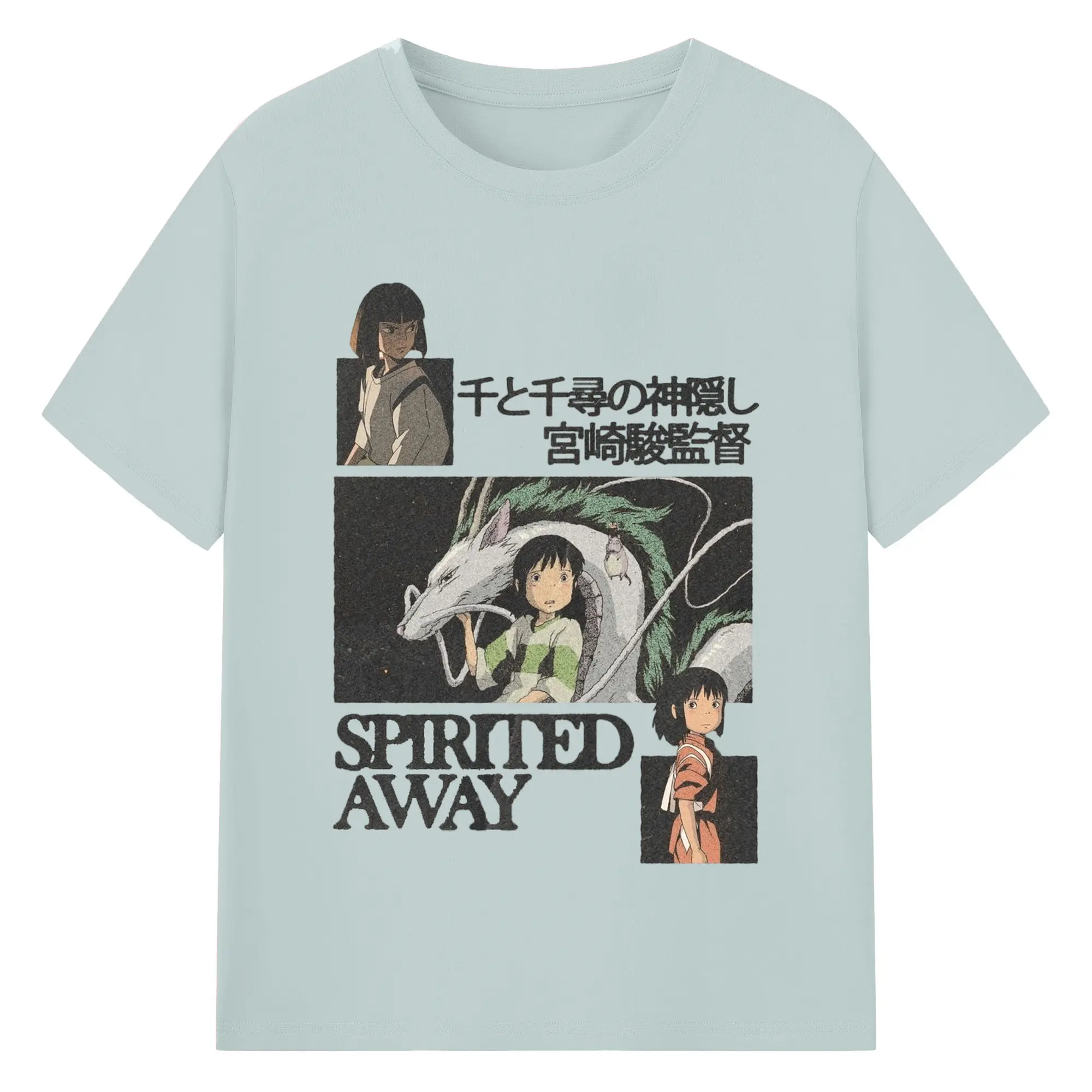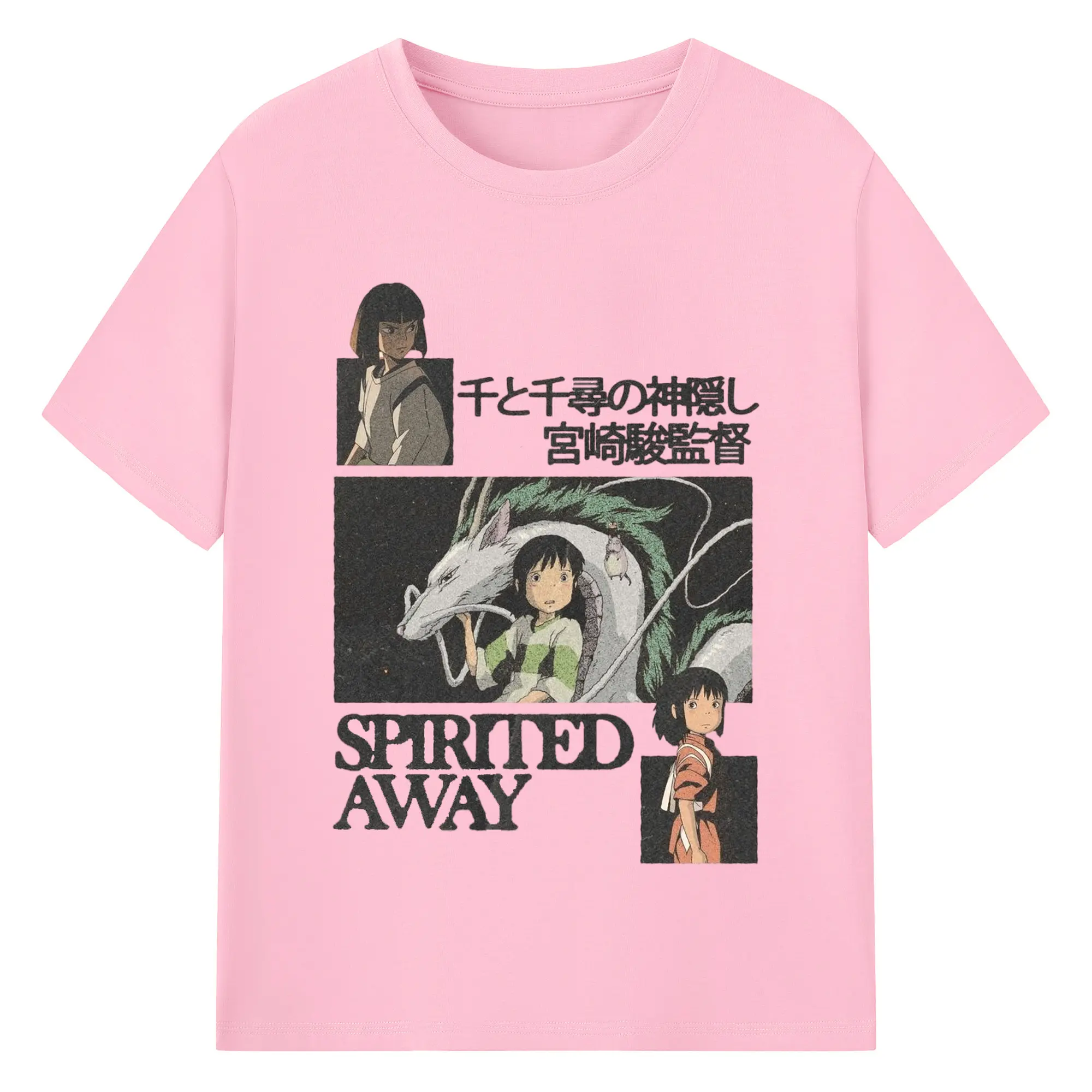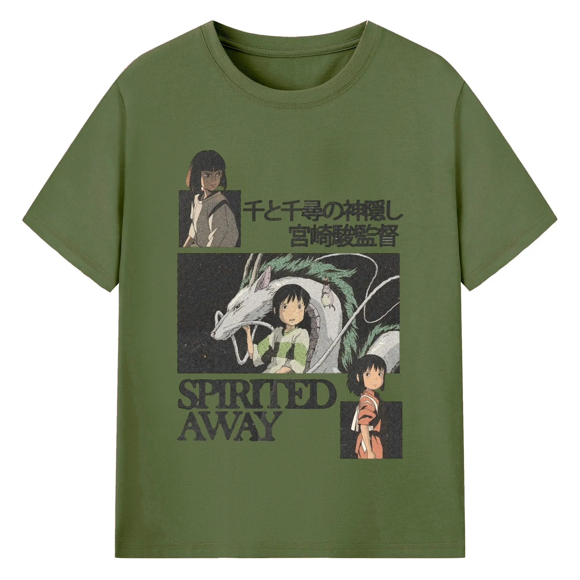 千と千尋の神隠し千尋とハク 宮崎駿監督 - 綿100% ヴィンテージ風 半袖Tシャツ ・ フロントプリント ・ 柔らか肌触り ・ 通気性 快適 ・ スポーツ カジュアル 外出用