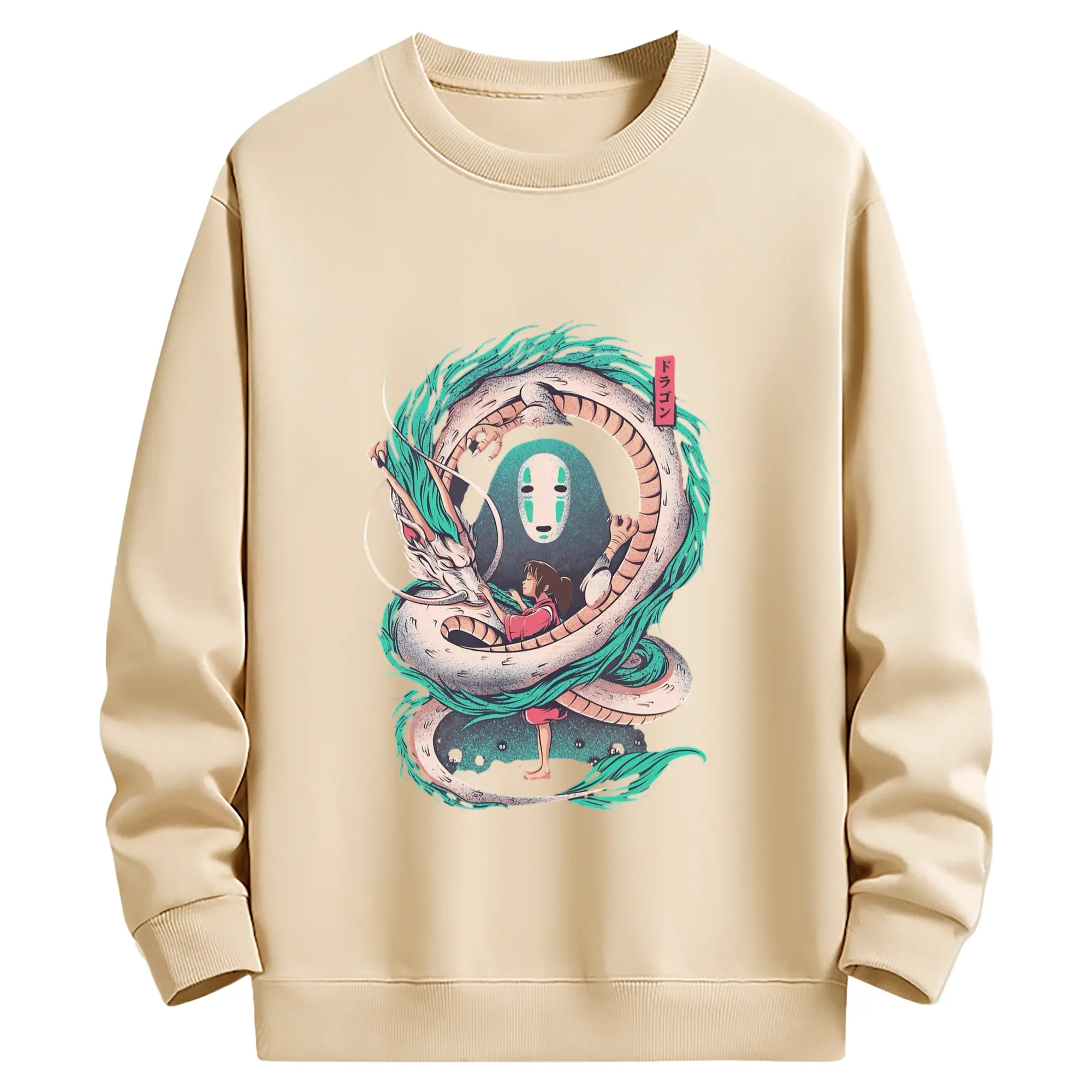 千と千尋の神隠し 白龍と千尋の絆 - 綿100% ヴィンテージ風 半袖Tシャツ ・ フロントプリント ・ 柔らか肌触り ・ 通気性 快適 ・ スポーツ カジュアル 外出用