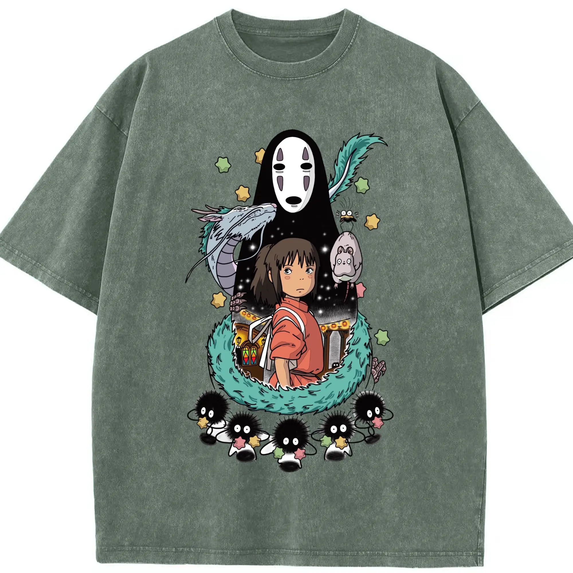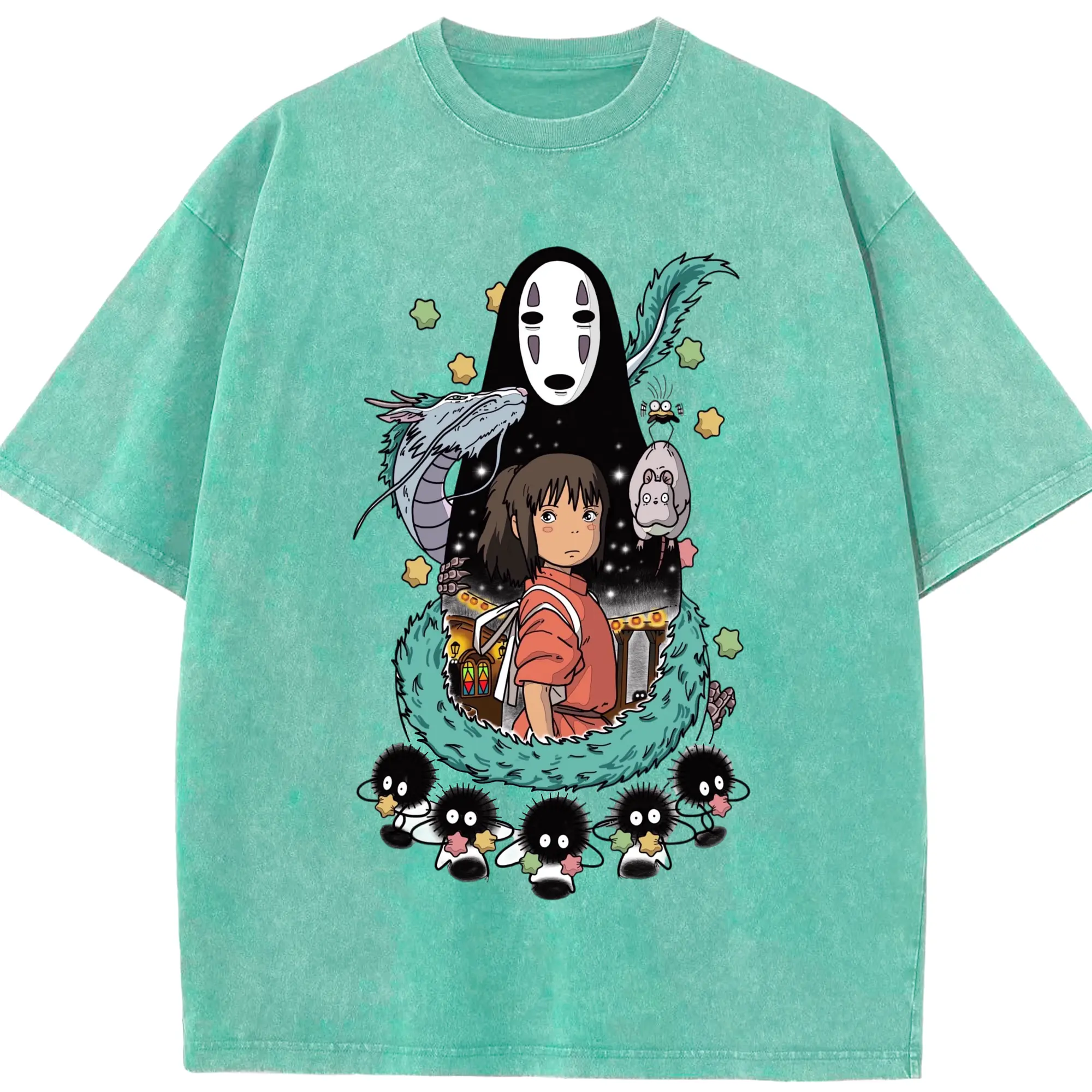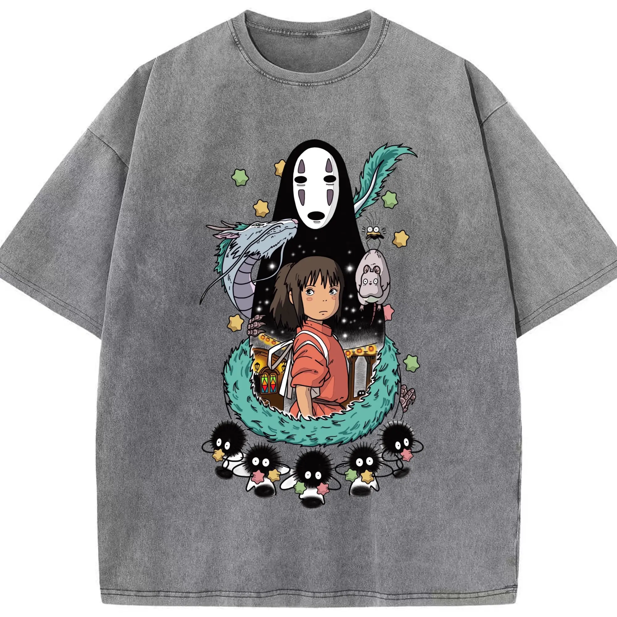 千と千尋の神隠し 千尋とカオナシ - 綿100% 半袖Tシャツ ・ フロントプリント ・ 快適 通気性 ・ 日常使い 散歩 スポーツ用