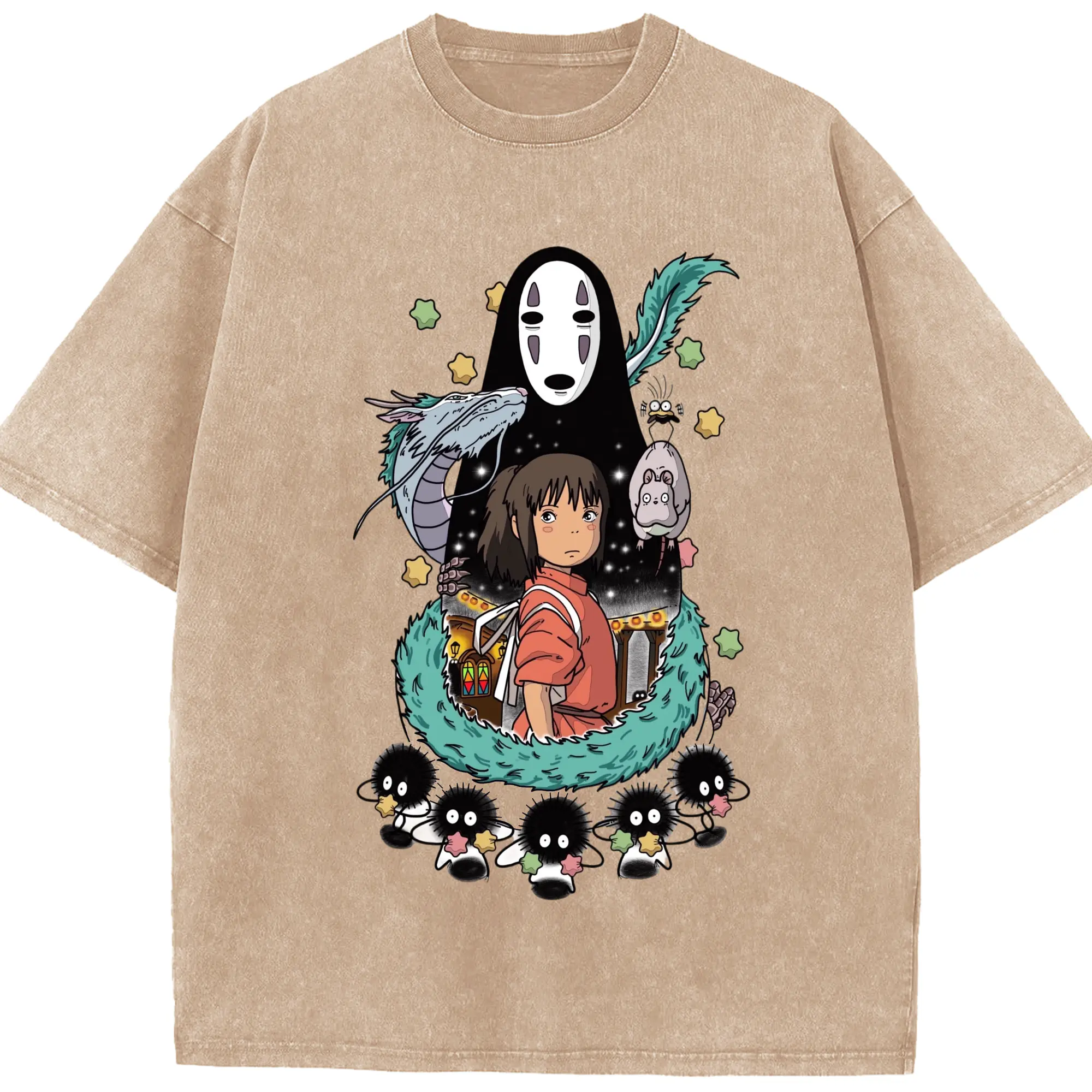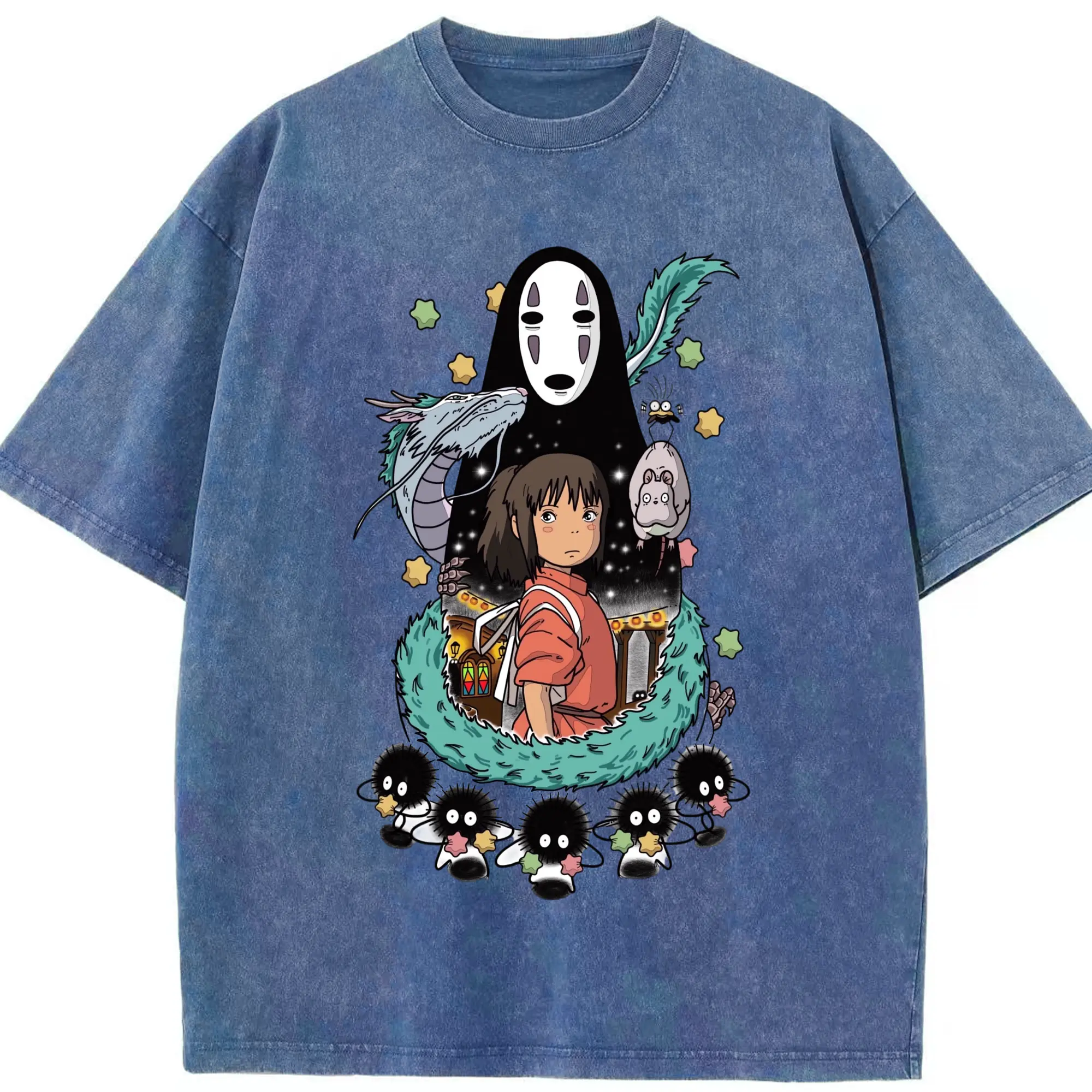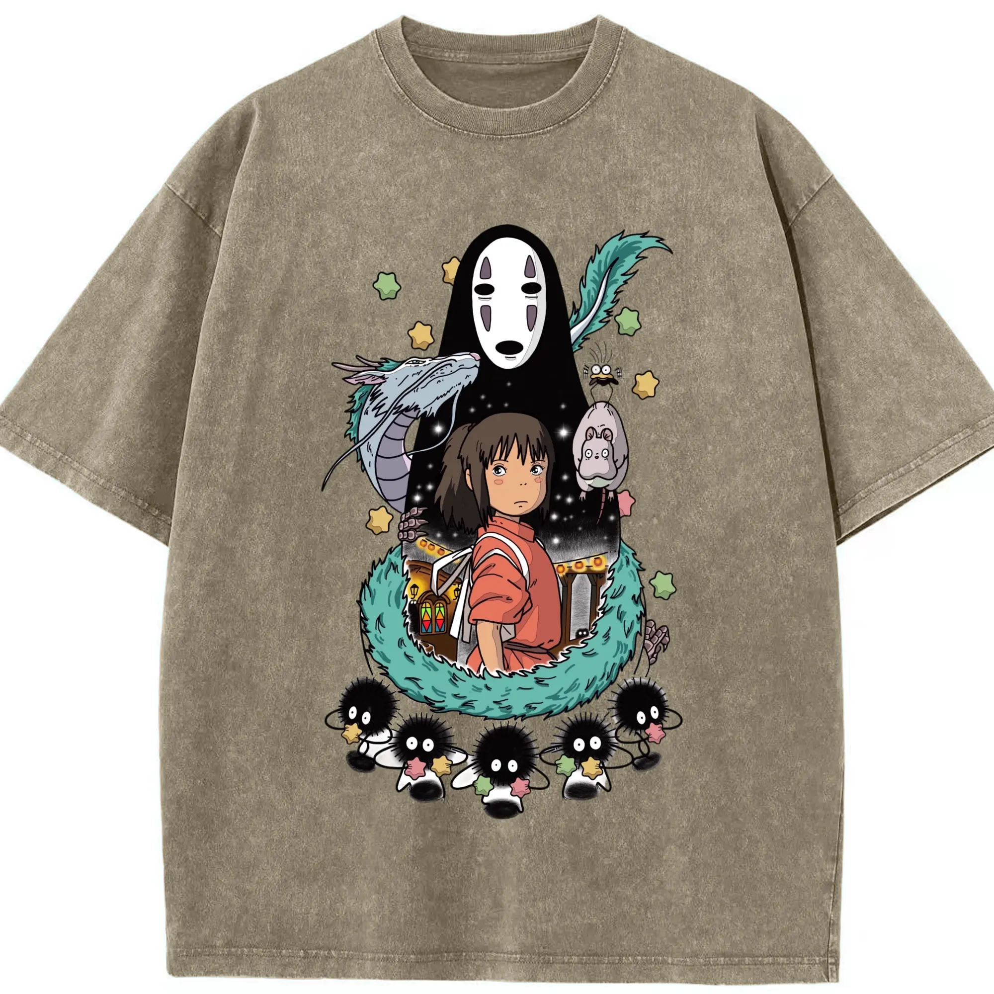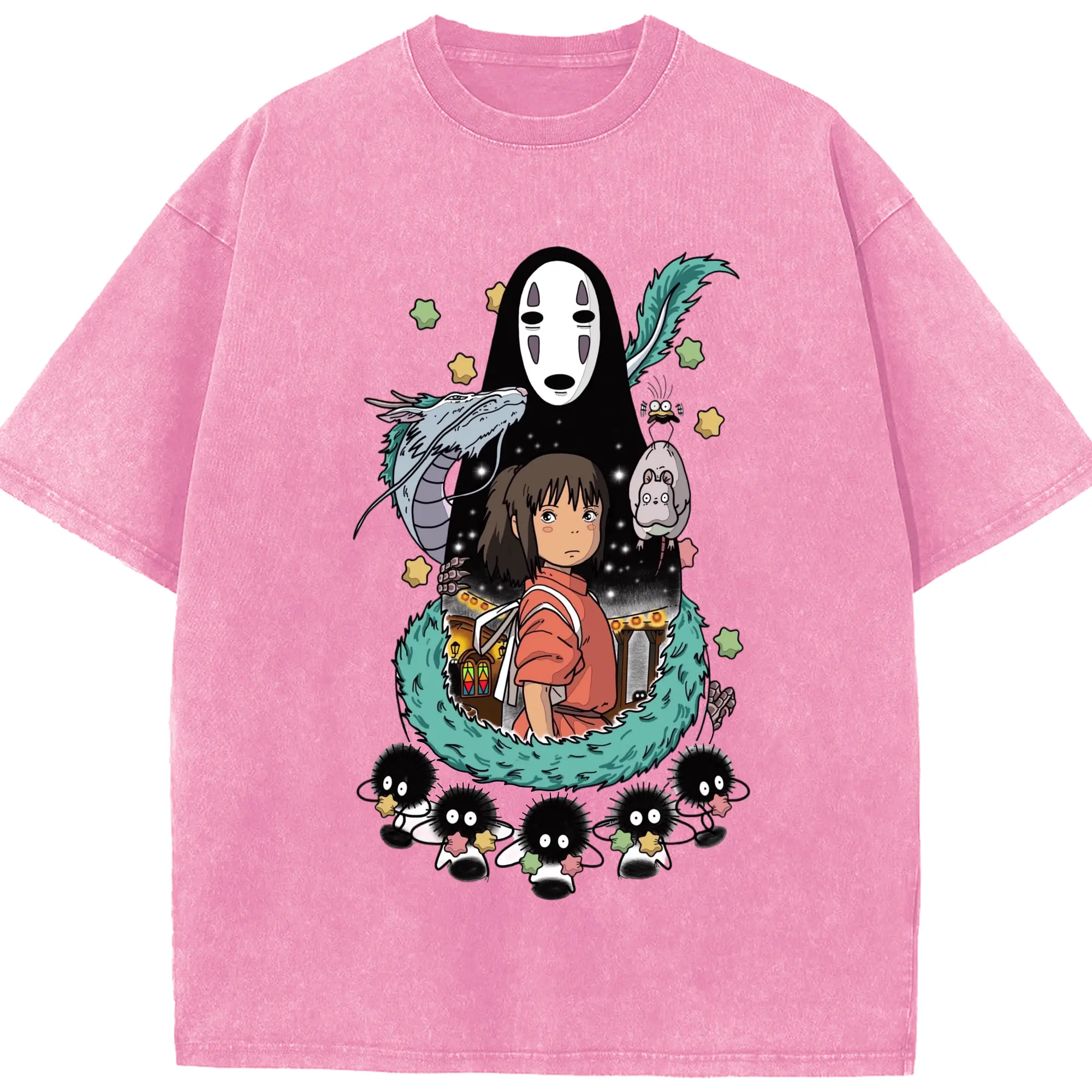 千と千尋の神隠し 千尋とカオナシ - 綿100% 半袖Tシャツ ・ フロントプリント ・ 快適 通気性 ・ 日常使い 散歩 スポーツ用
