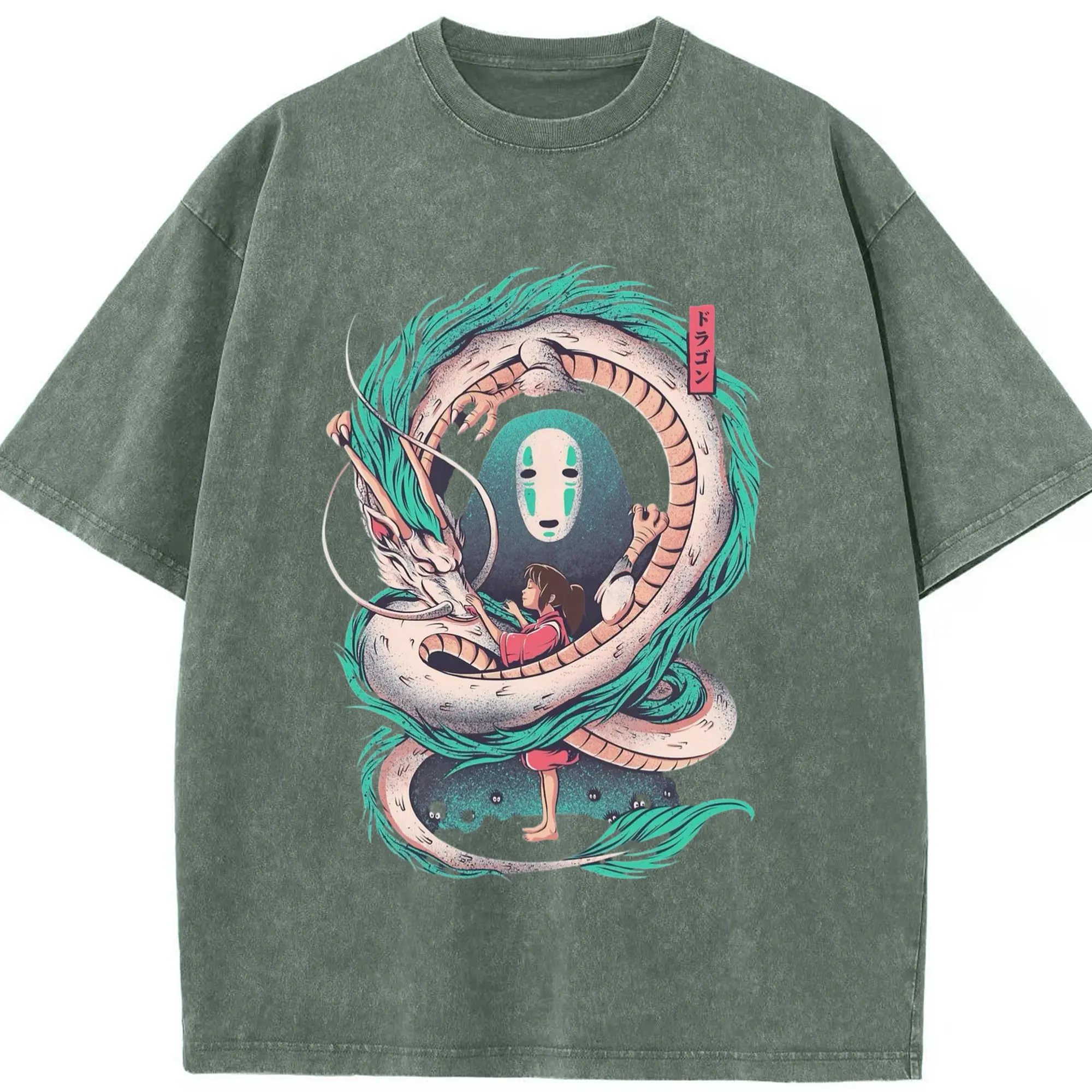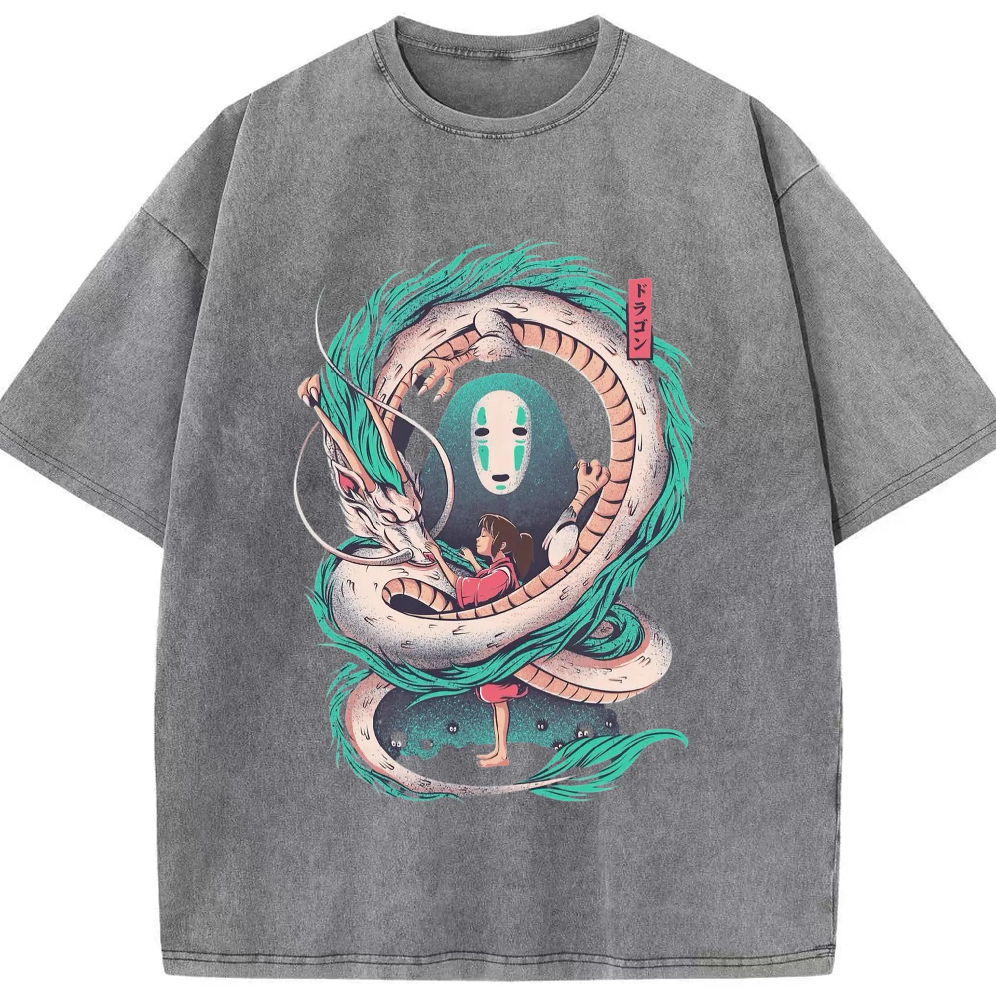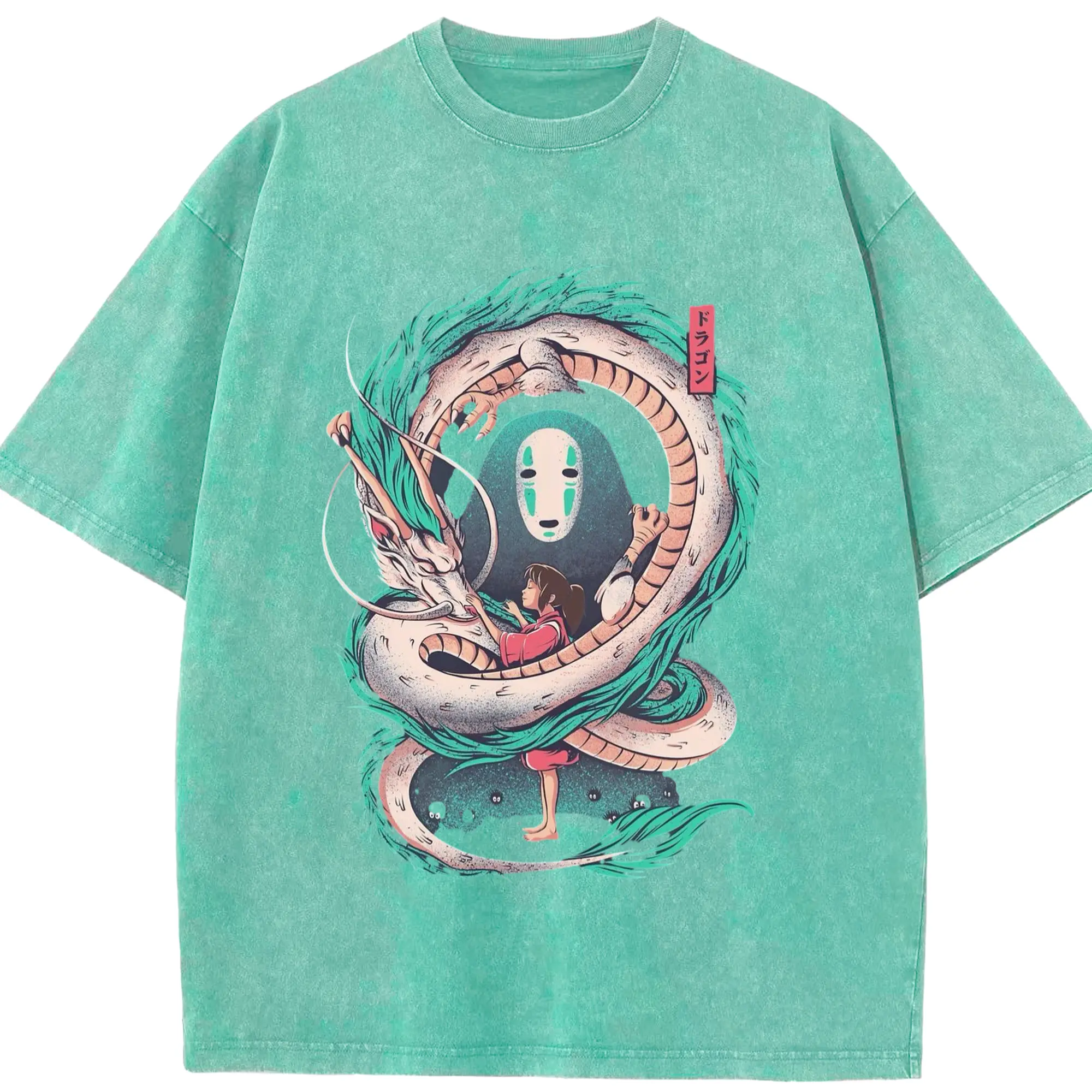 千と千尋の神隠し 白龍と千尋の絆 - 綿100% 半袖Tシャツ ・ フロントプリント ・ 快適 通気性 ・ 日常使い 散歩 スポーツ用