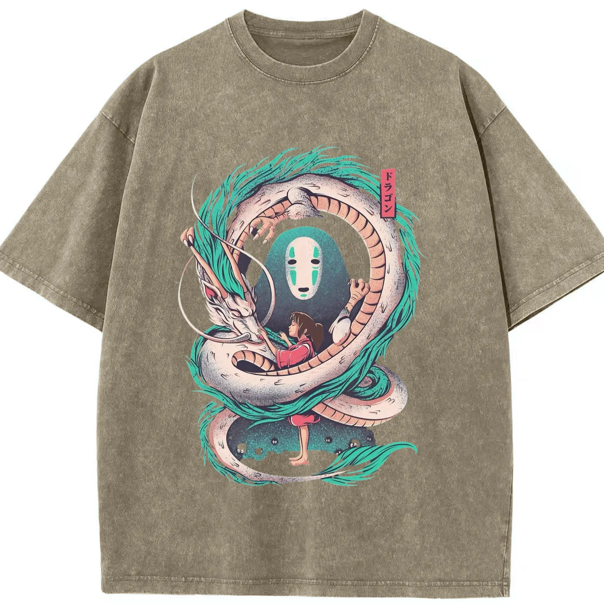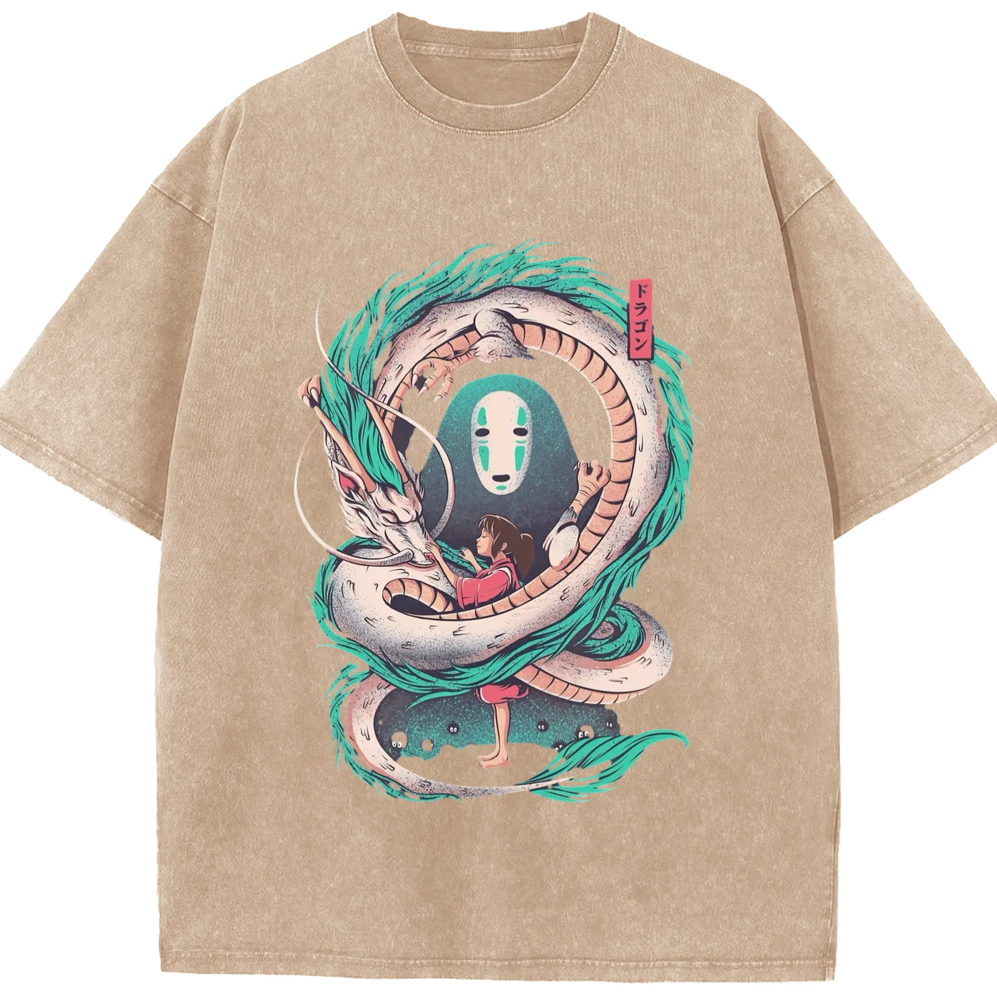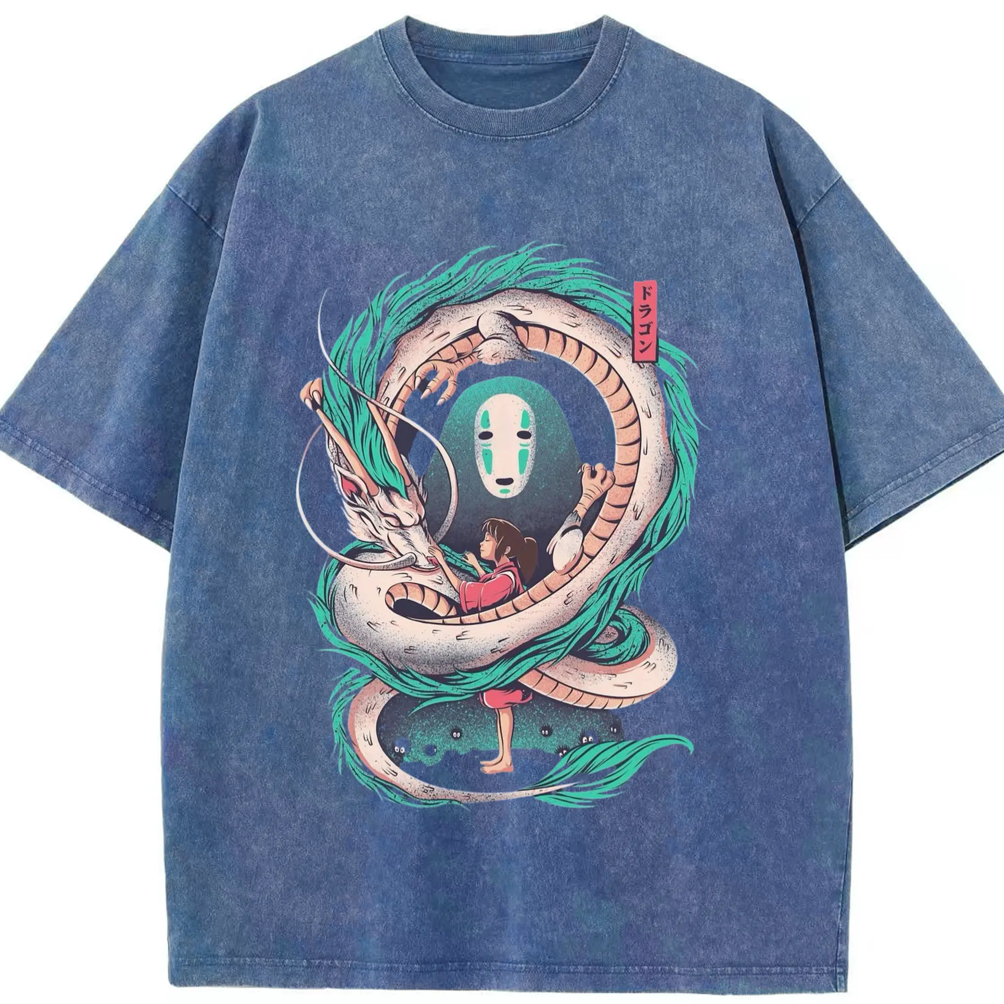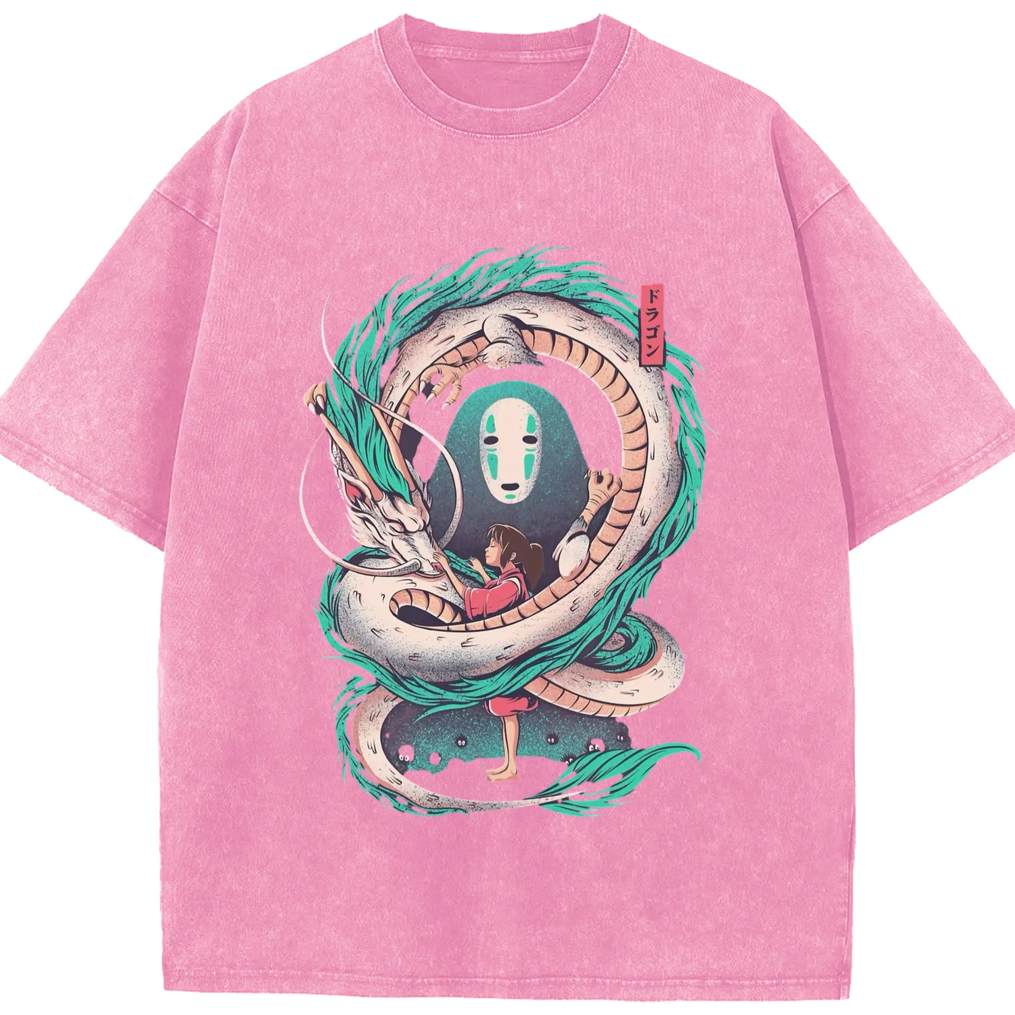 千と千尋の神隠し 白龍と千尋の絆 - 綿100% 半袖Tシャツ ・ フロントプリント ・ 快適 通気性 ・ 日常使い 散歩 スポーツ用