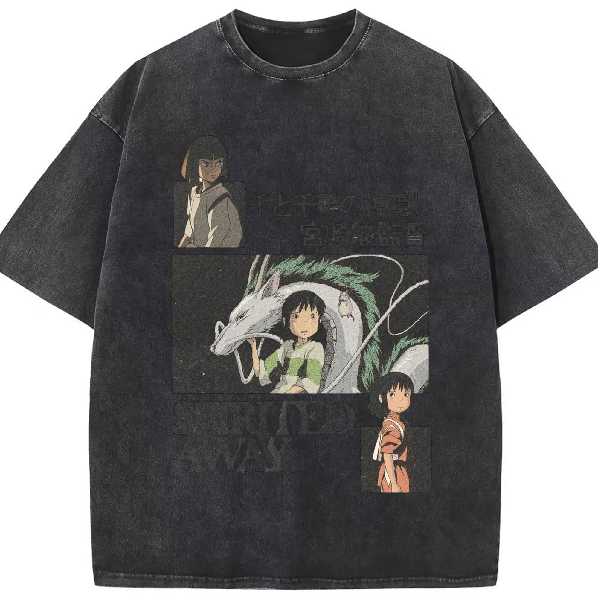 千と千尋の神隠し千尋とハク 宮崎駿監督 - 綿100% 半袖Tシャツ ・ フロントプリント ・ 快適 通気性 ・ 日常使い 散歩 スポーツ用