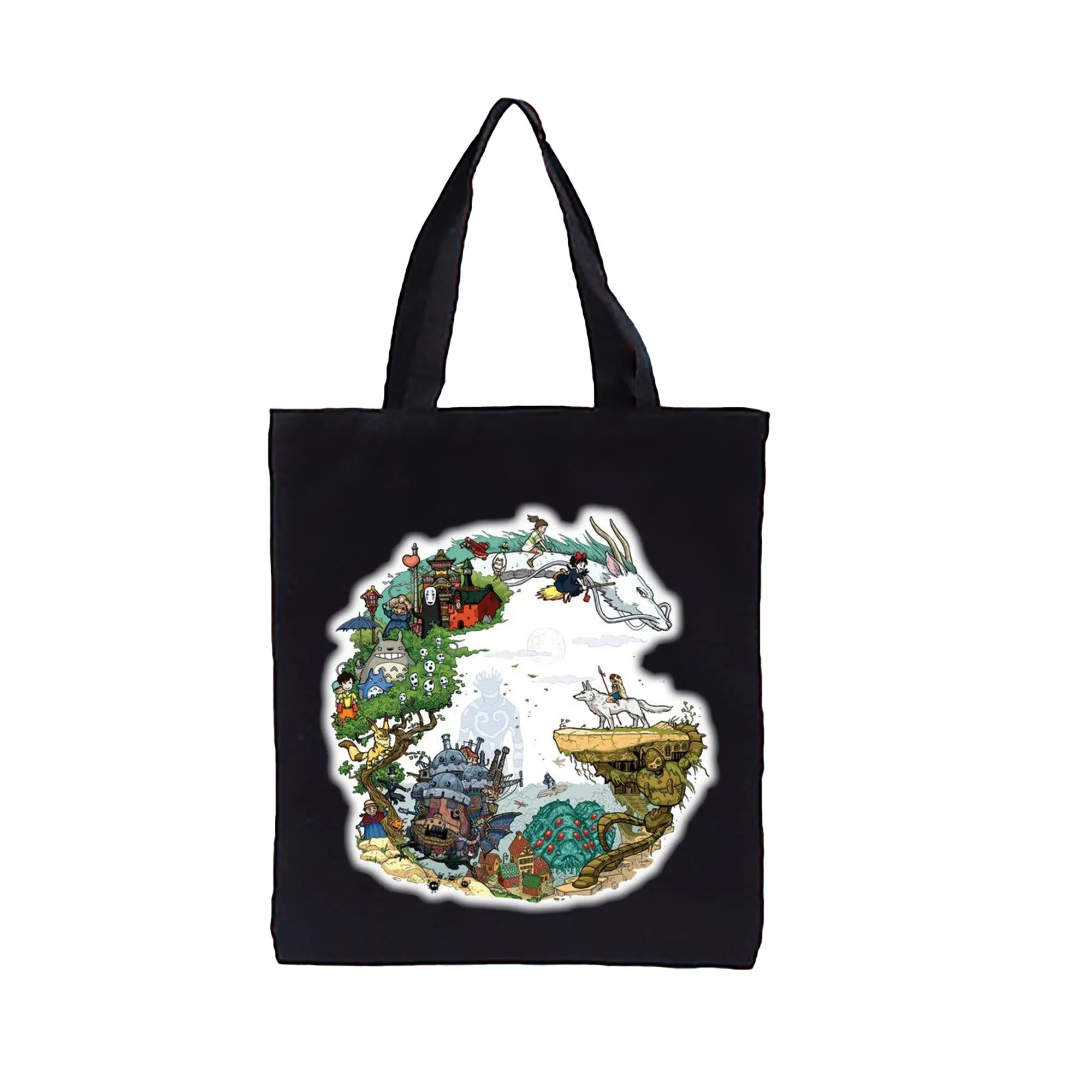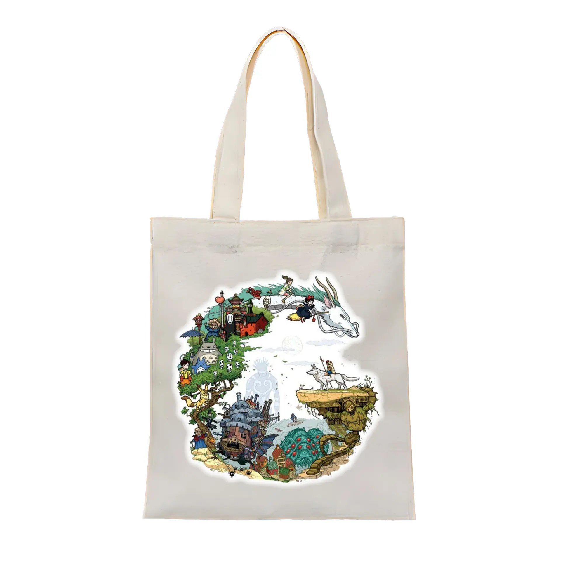 千と千尋の神隠し 神秘の世界 - 縦型キャンバス手提げバッグ(トートバッグ) ・ キャンバス素材 ・ ショッピング用 ・ 軽量 丈夫 お手入れ簡単