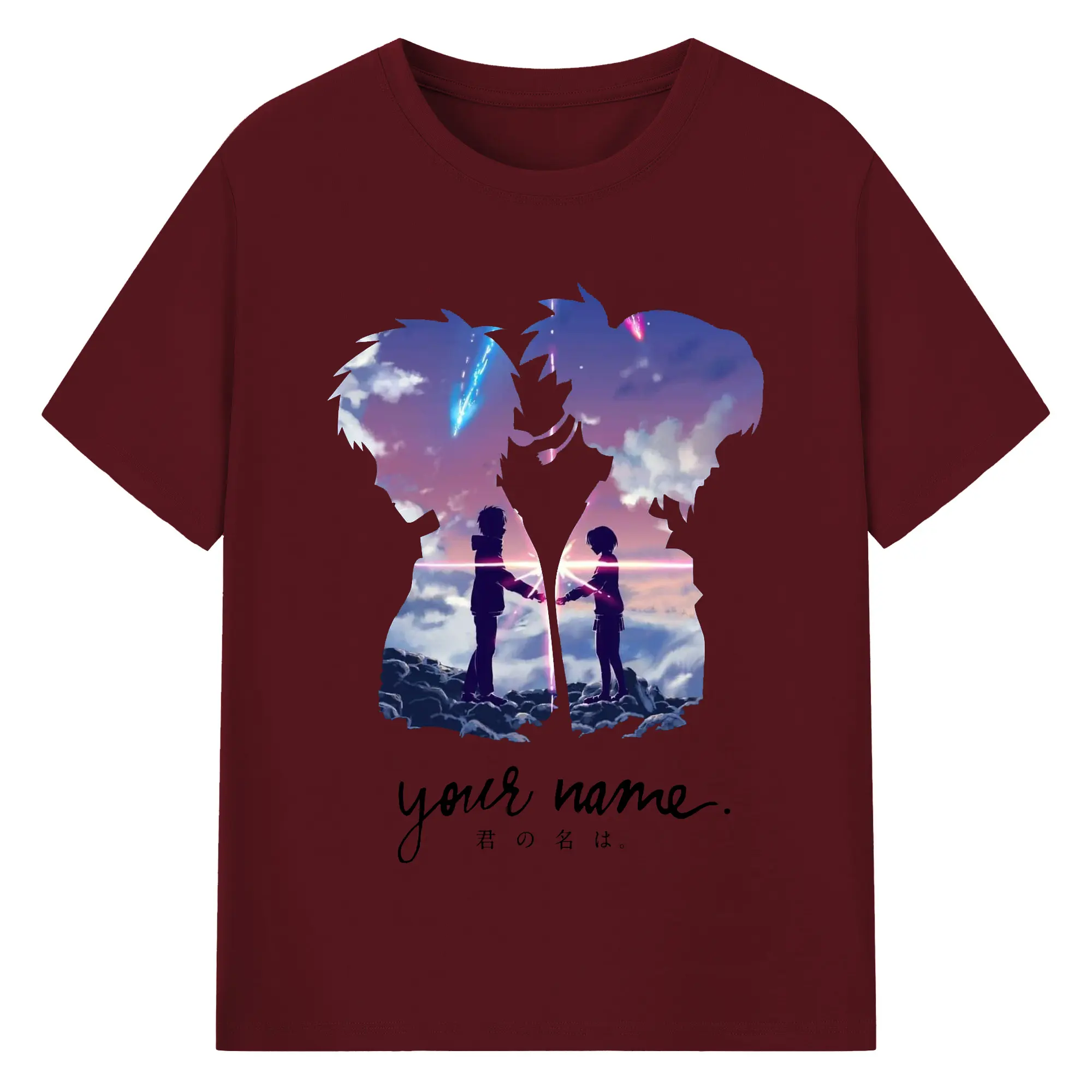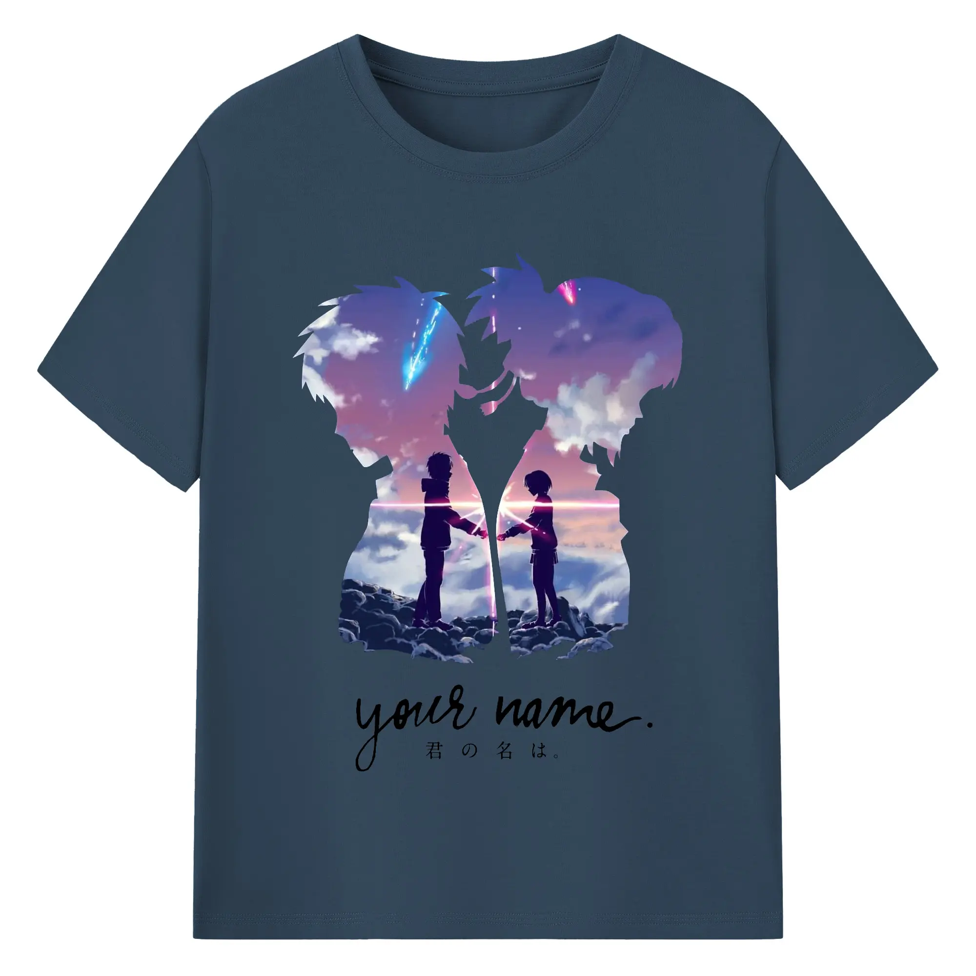 君の名は 入れ替わり - 綿100% ヴィンテージ風 半袖Tシャツ ・ フロントプリント ・ 柔らか肌触り ・ 通気性 快適 ・ スポーツ カジュアル 外出用