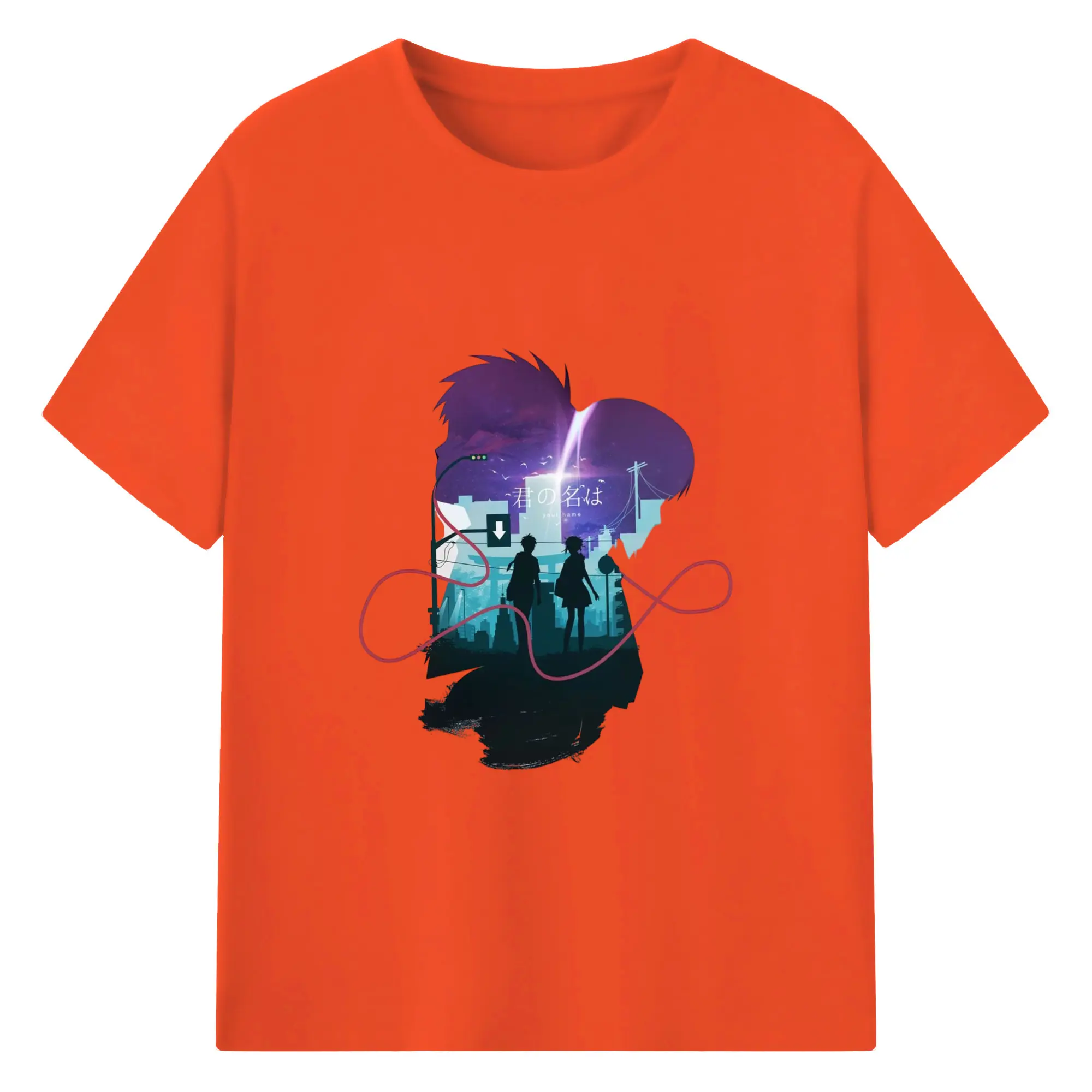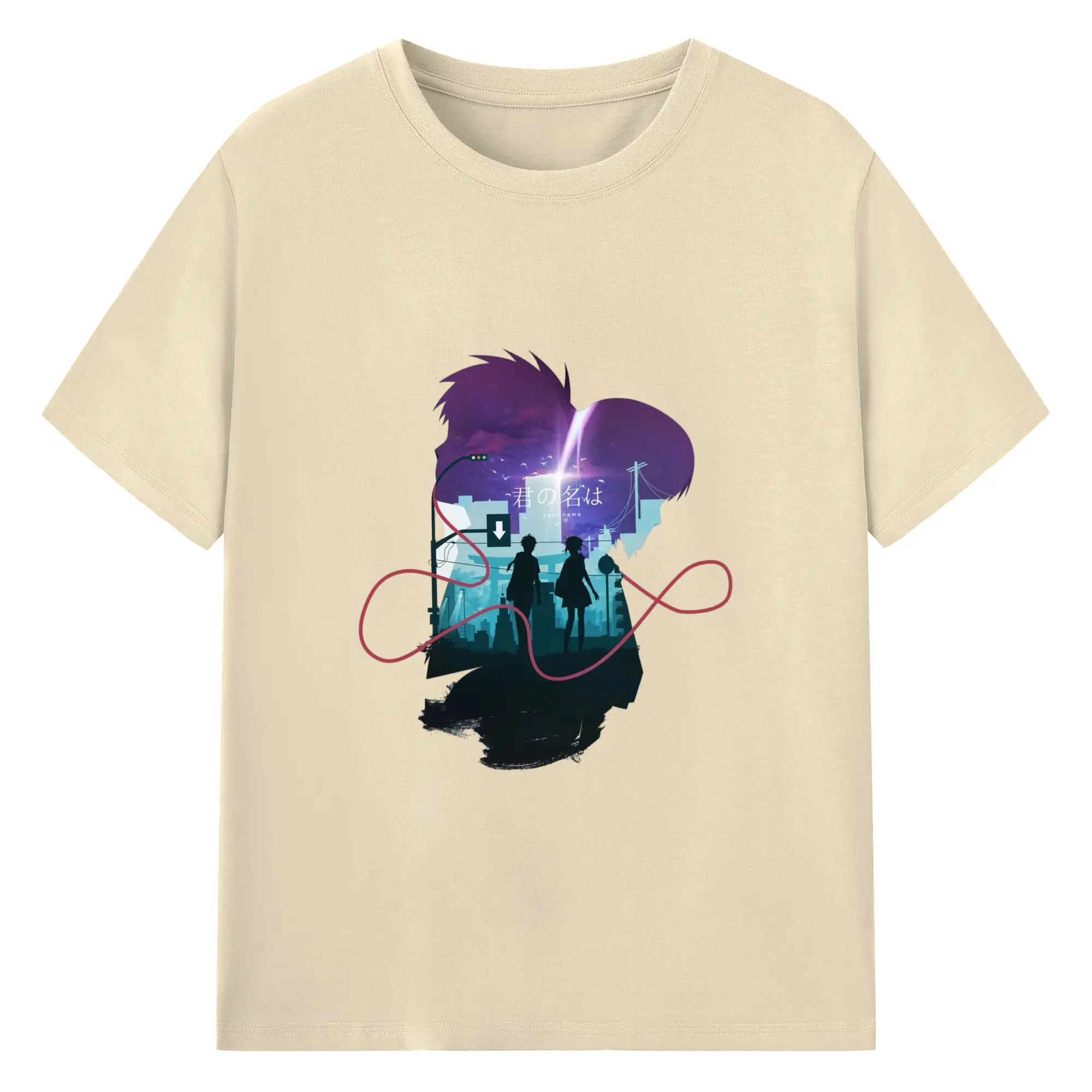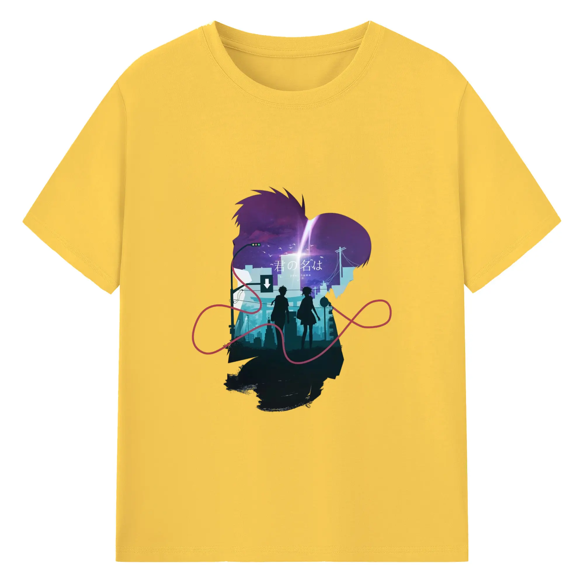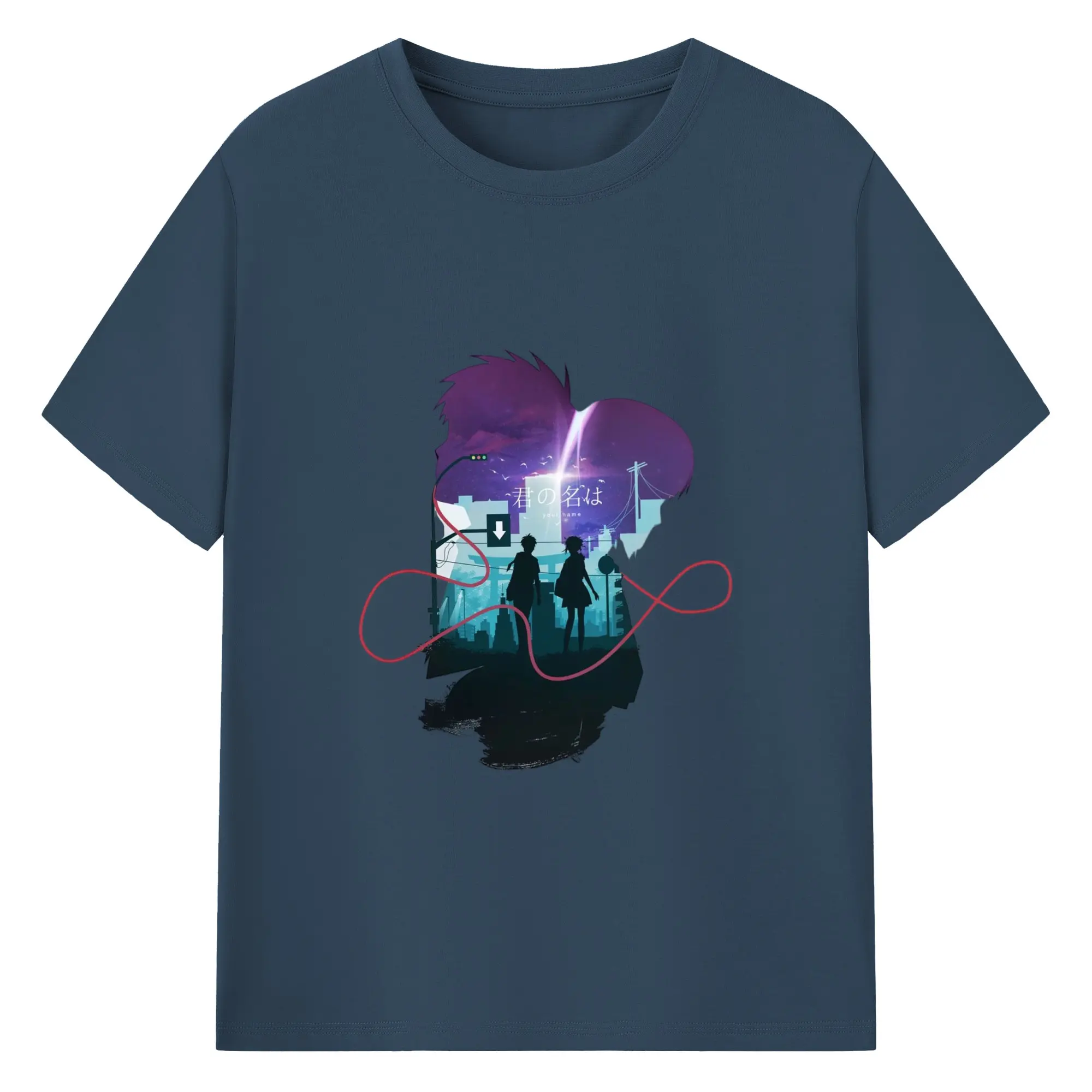 君の名は 立花瀧と宮水三葉 - 綿100% ヴィンテージ風 半袖Tシャツ ・ フロントプリント ・ 柔らか肌触り ・ 通気性 快適 ・ スポーツ カジュアル 外出用