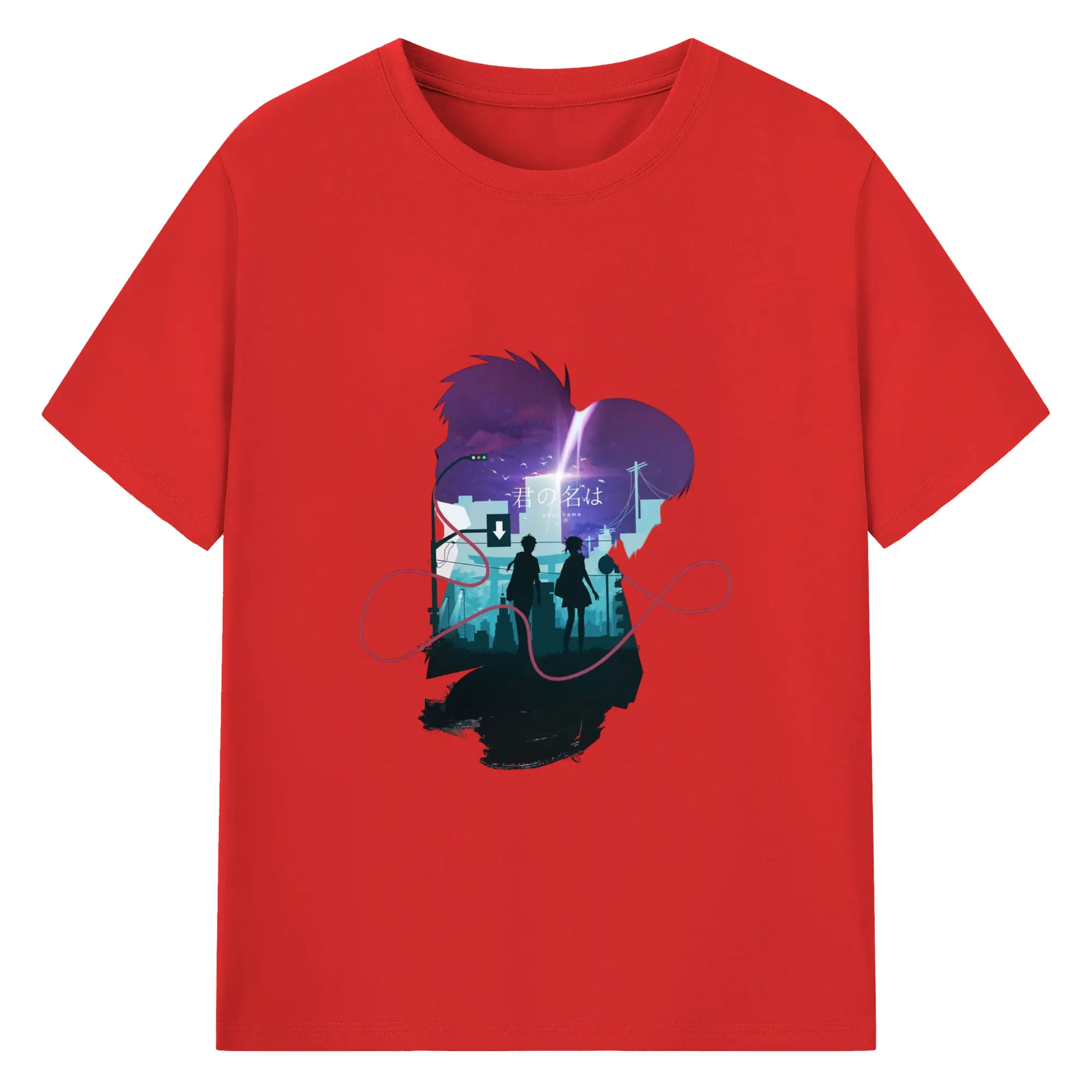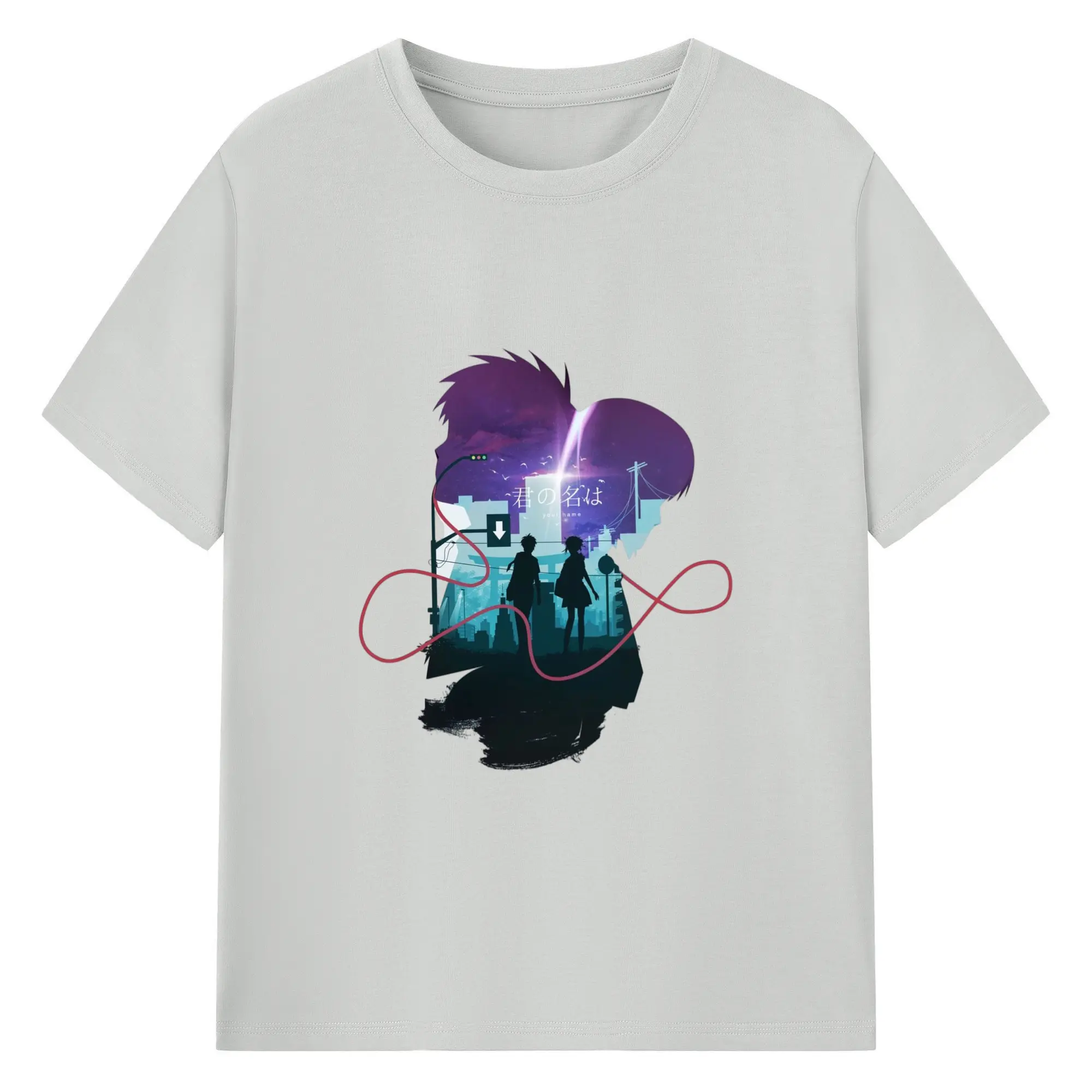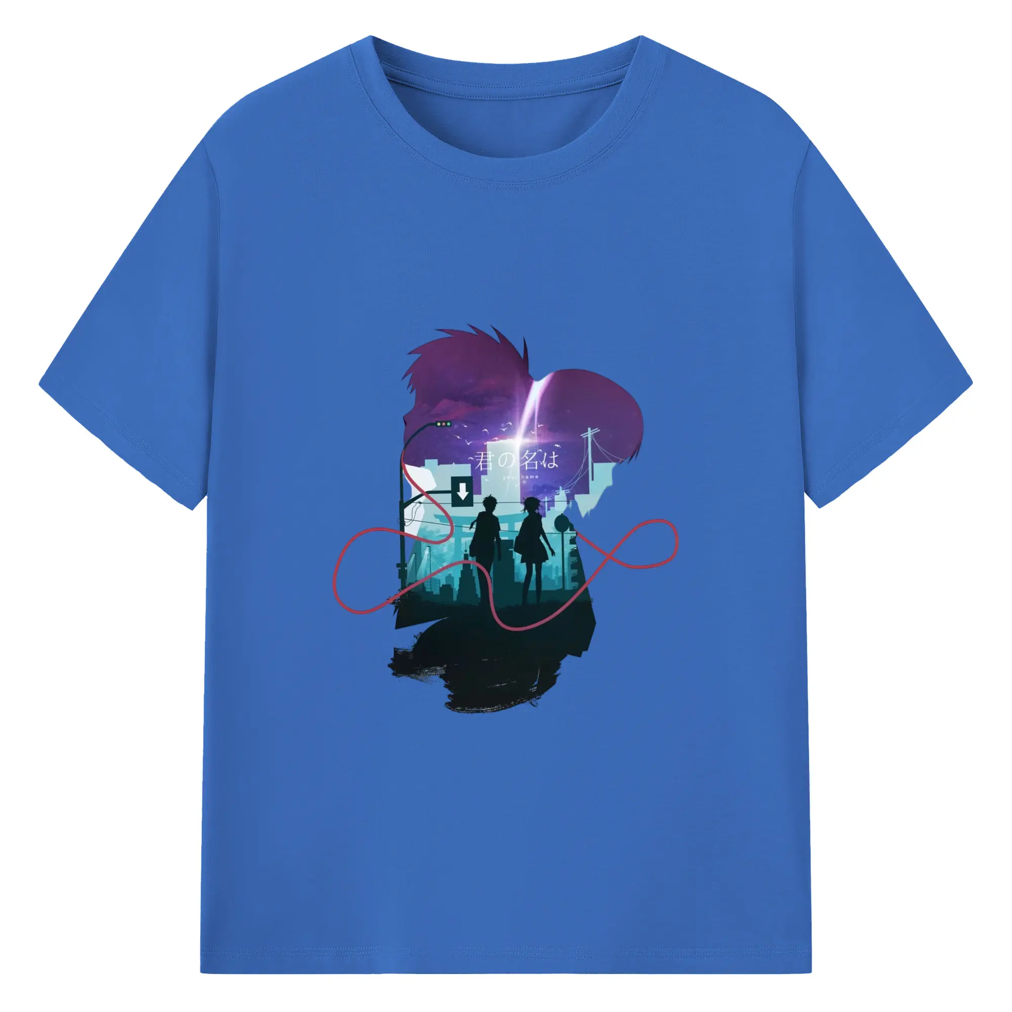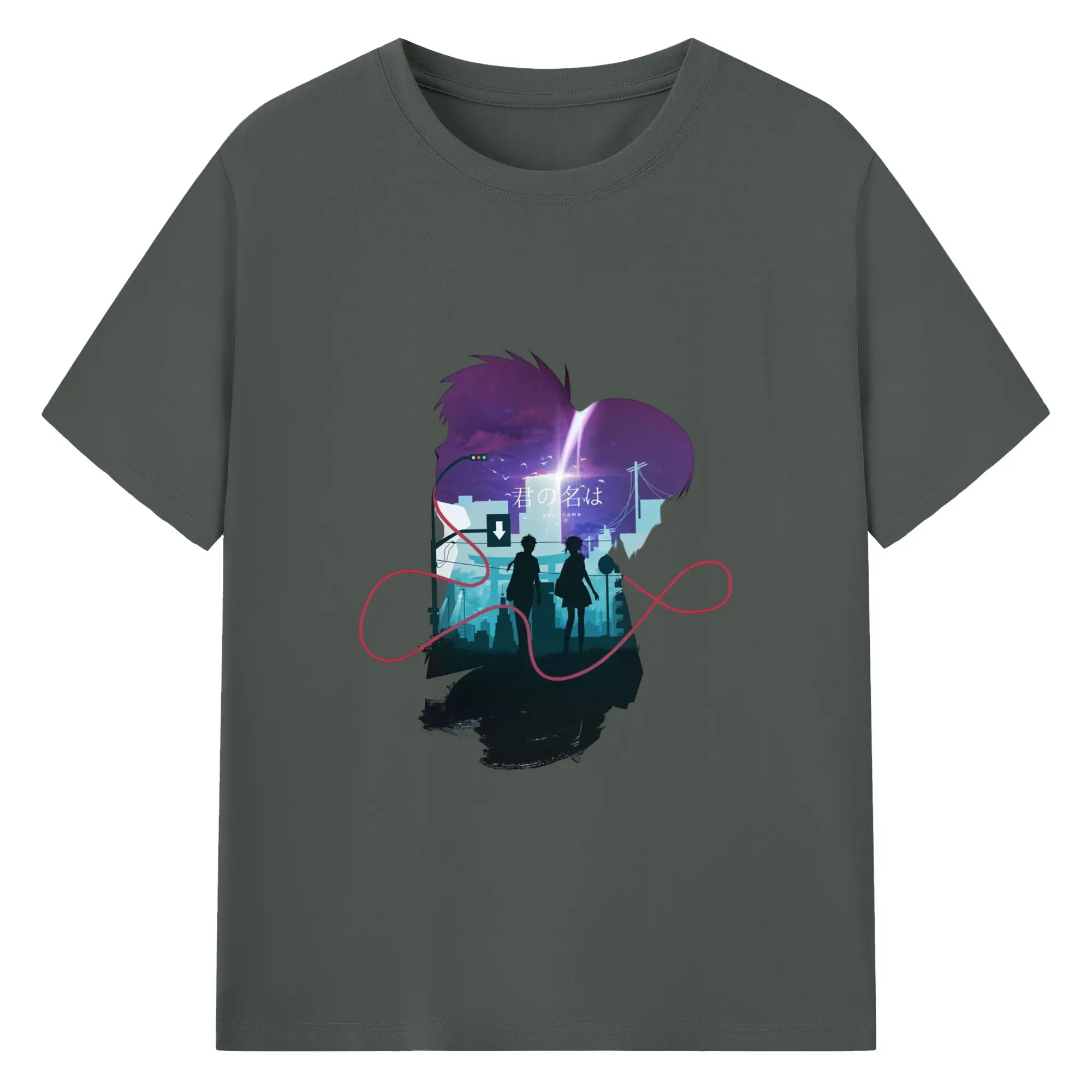君の名は 立花瀧と宮水三葉 - 綿100% ヴィンテージ風 半袖Tシャツ ・ フロントプリント ・ 柔らか肌触り ・ 通気性 快適 ・ スポーツ カジュアル 外出用