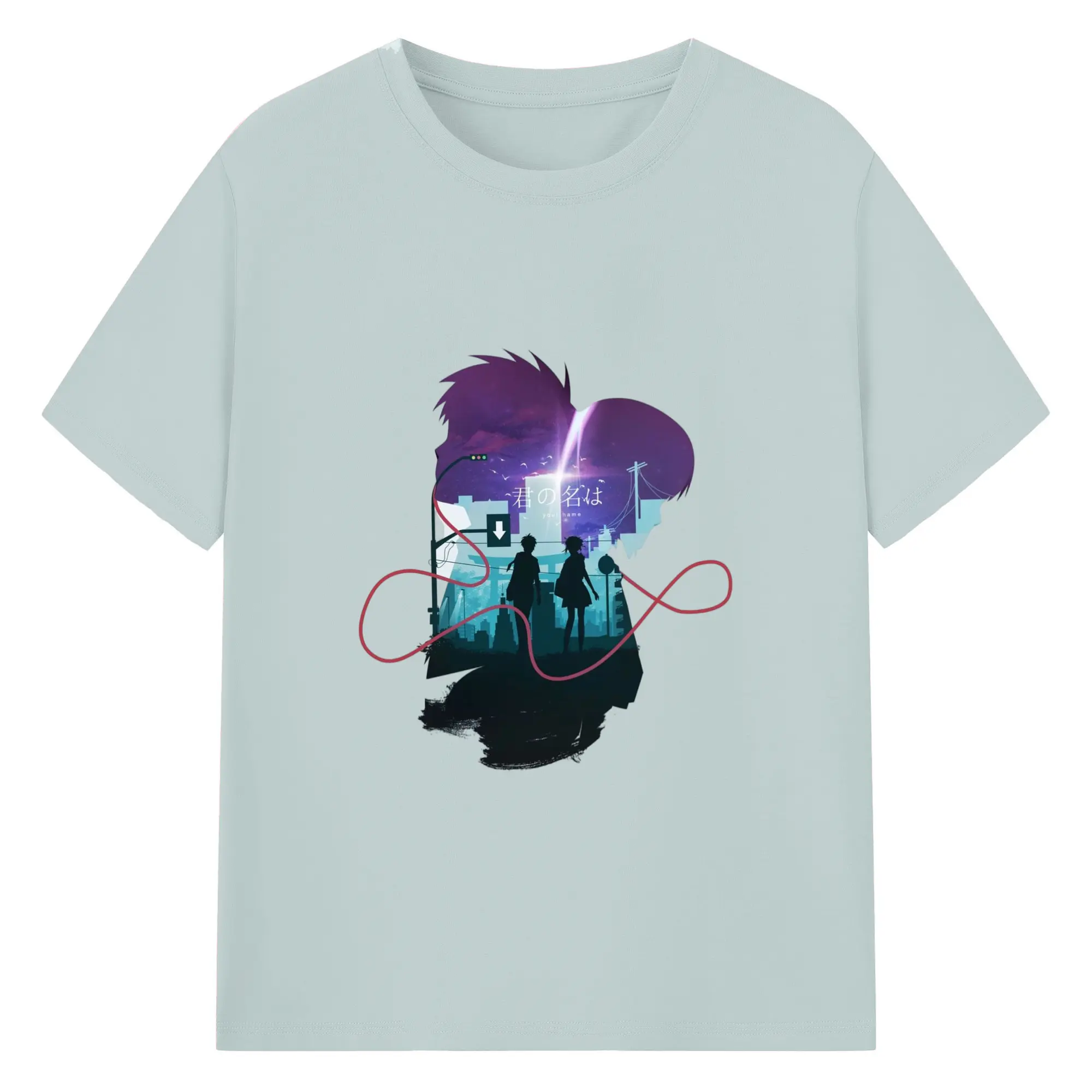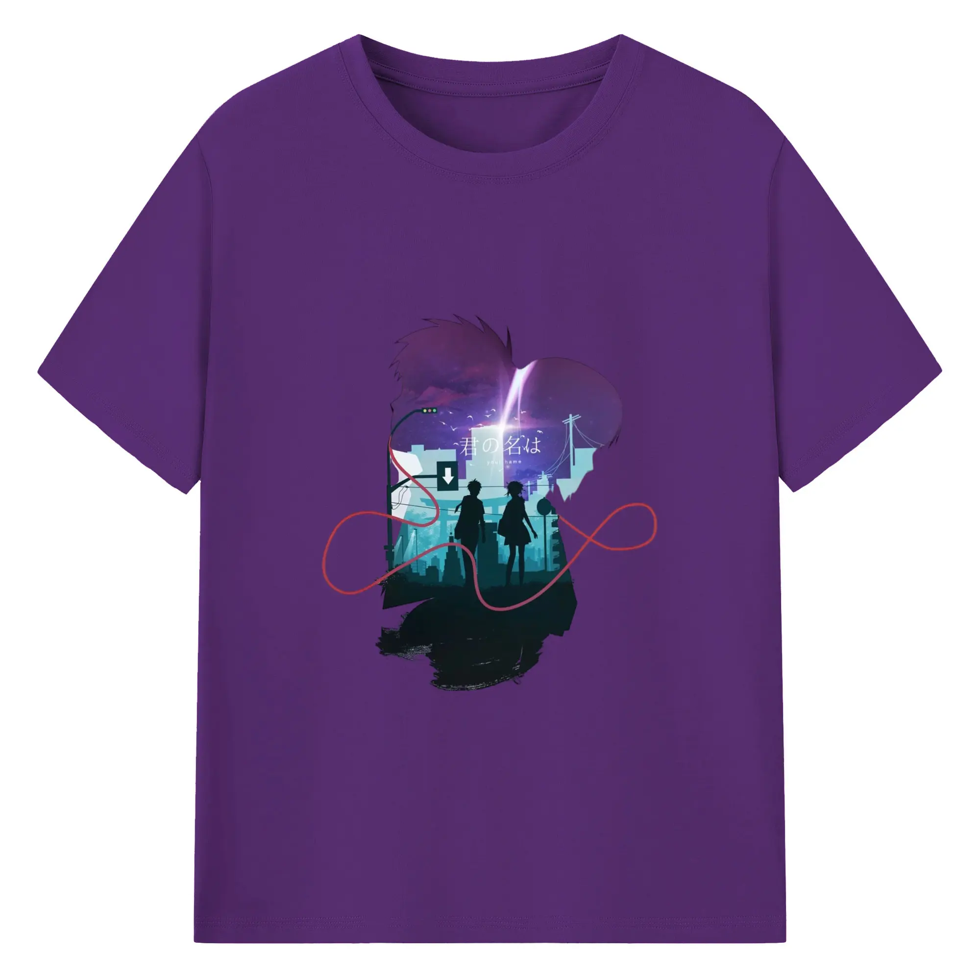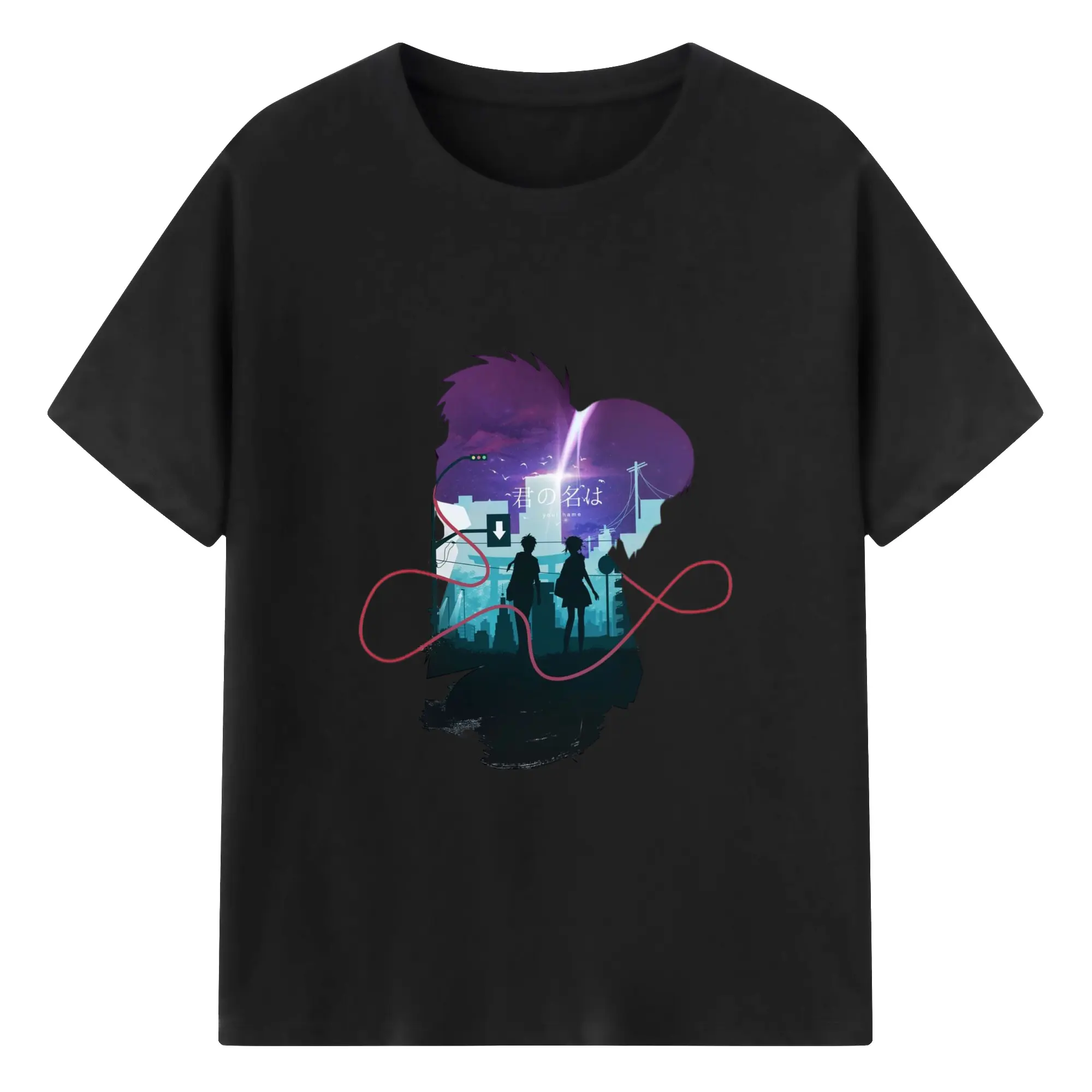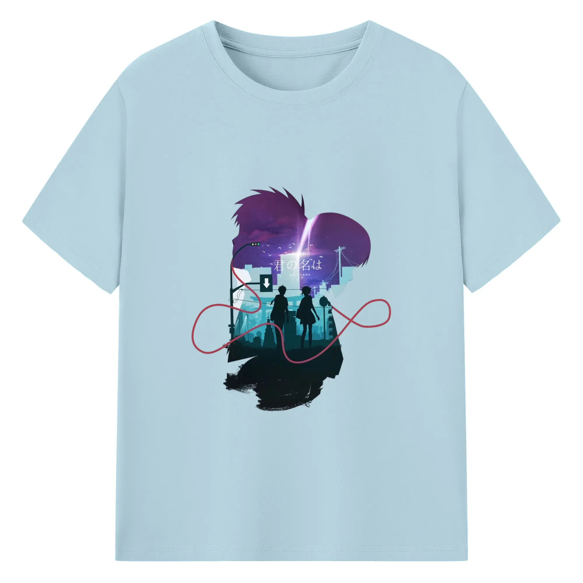 君の名は 立花瀧と宮水三葉 - 綿100% ヴィンテージ風 半袖Tシャツ ・ フロントプリント ・ 柔らか肌触り ・ 通気性 快適 ・ スポーツ カジュアル 外出用