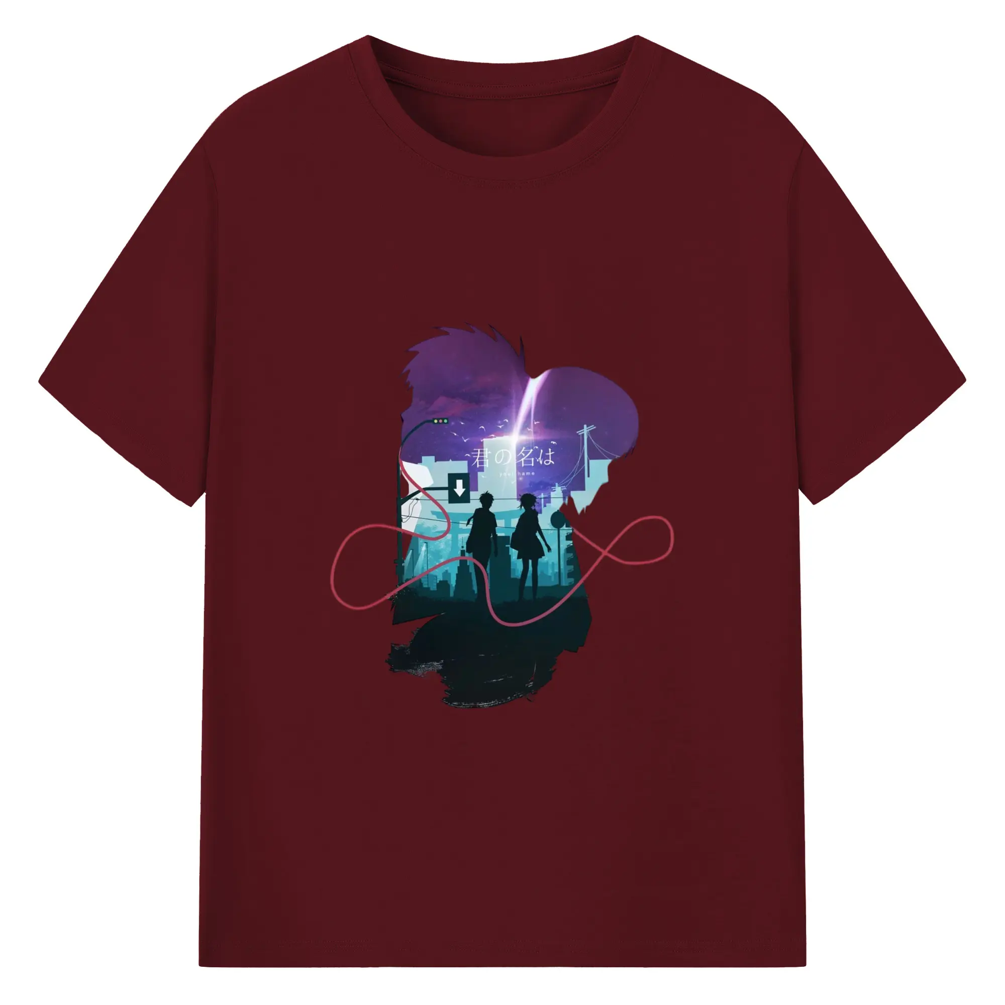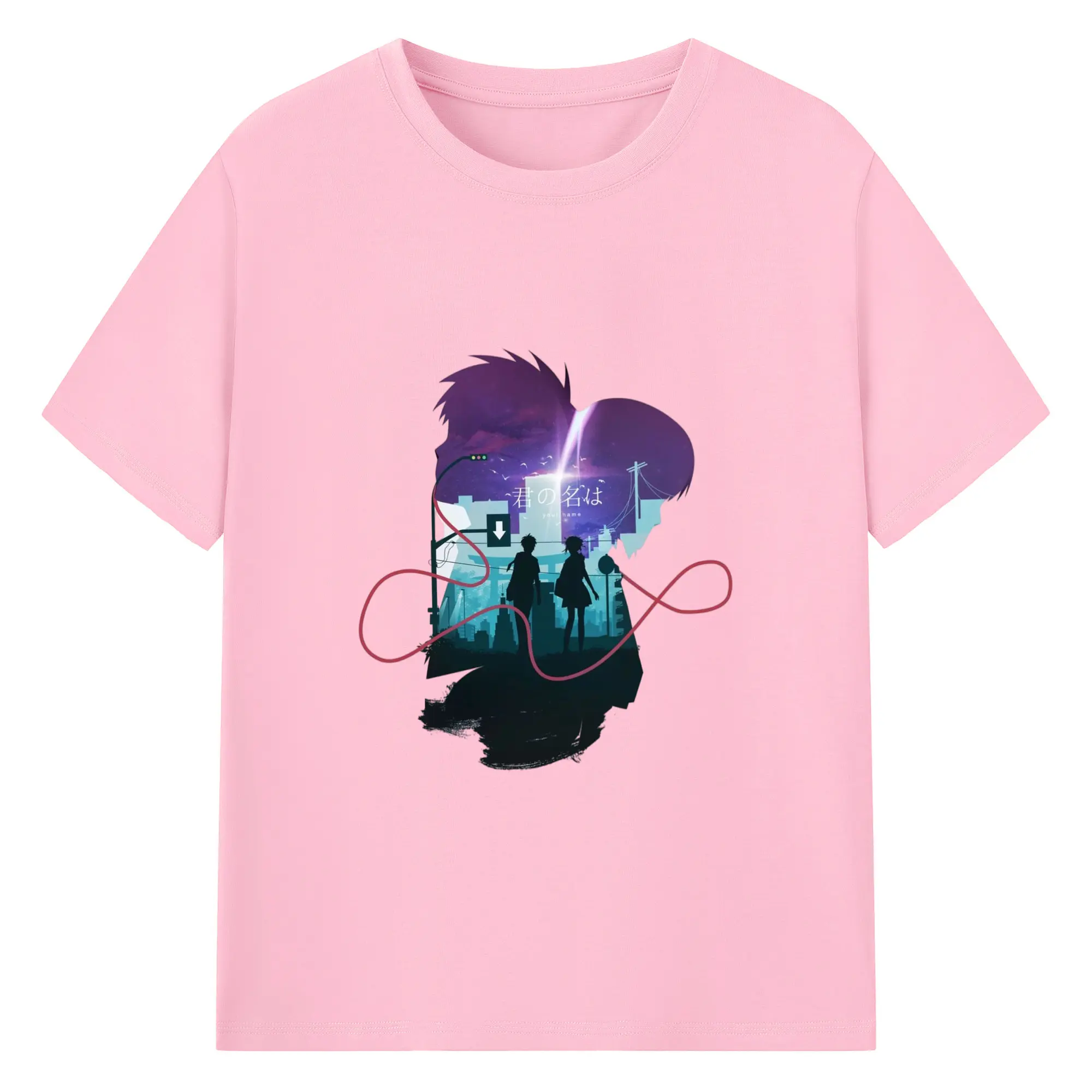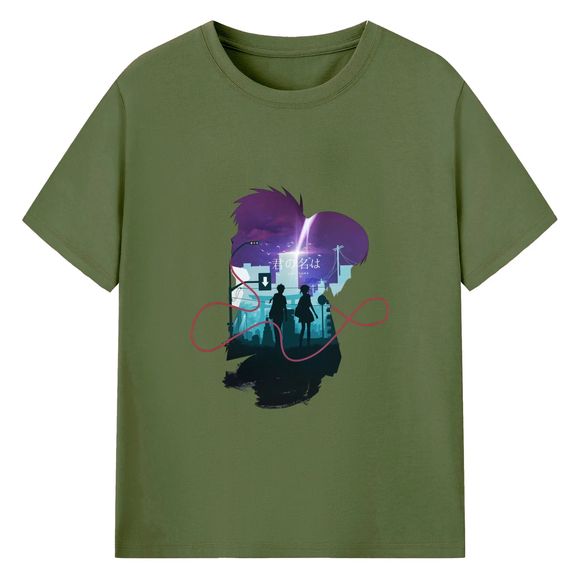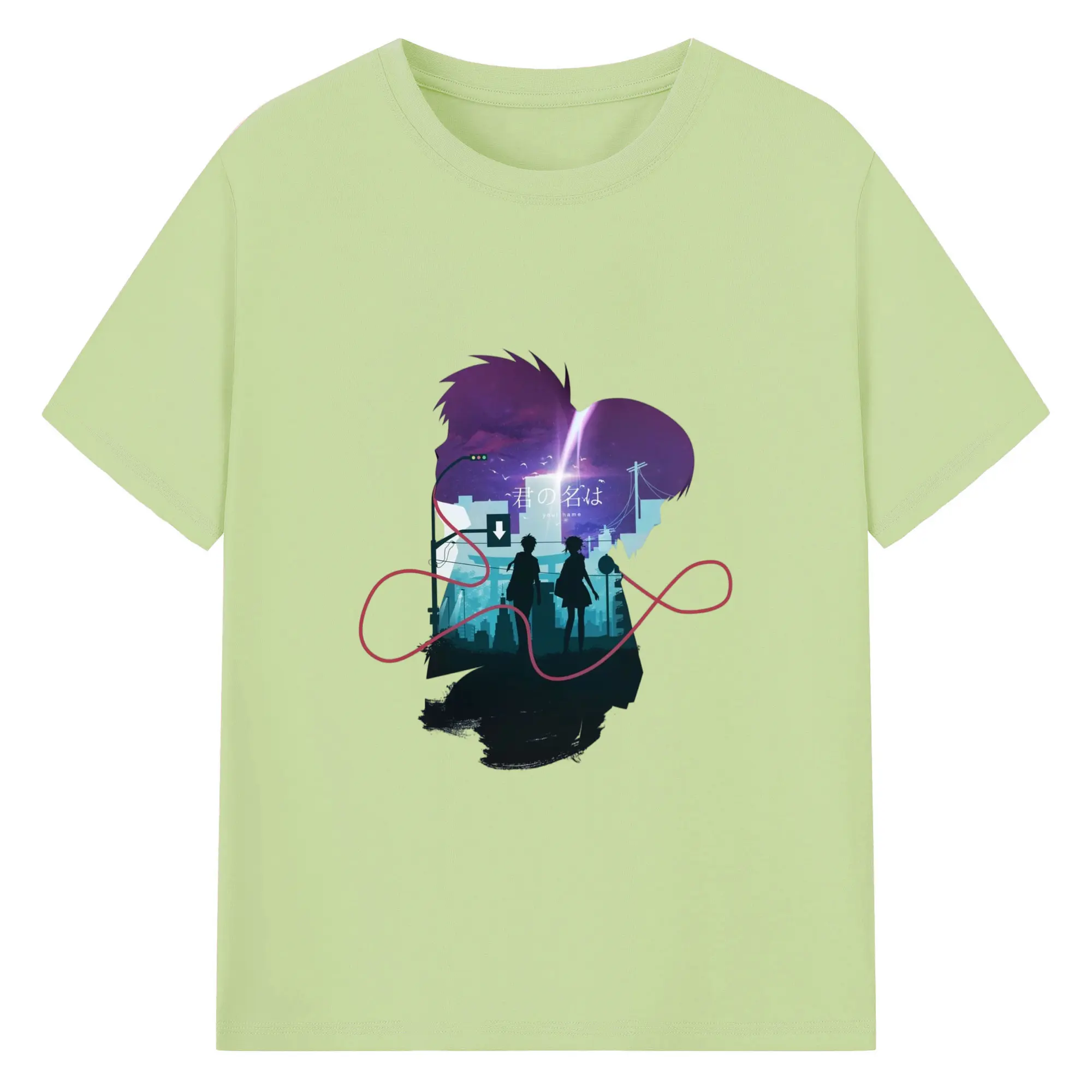君の名は 立花瀧と宮水三葉 - 綿100% ヴィンテージ風 半袖Tシャツ ・ フロントプリント ・ 柔らか肌触り ・ 通気性 快適 ・ スポーツ カジュアル 外出用
