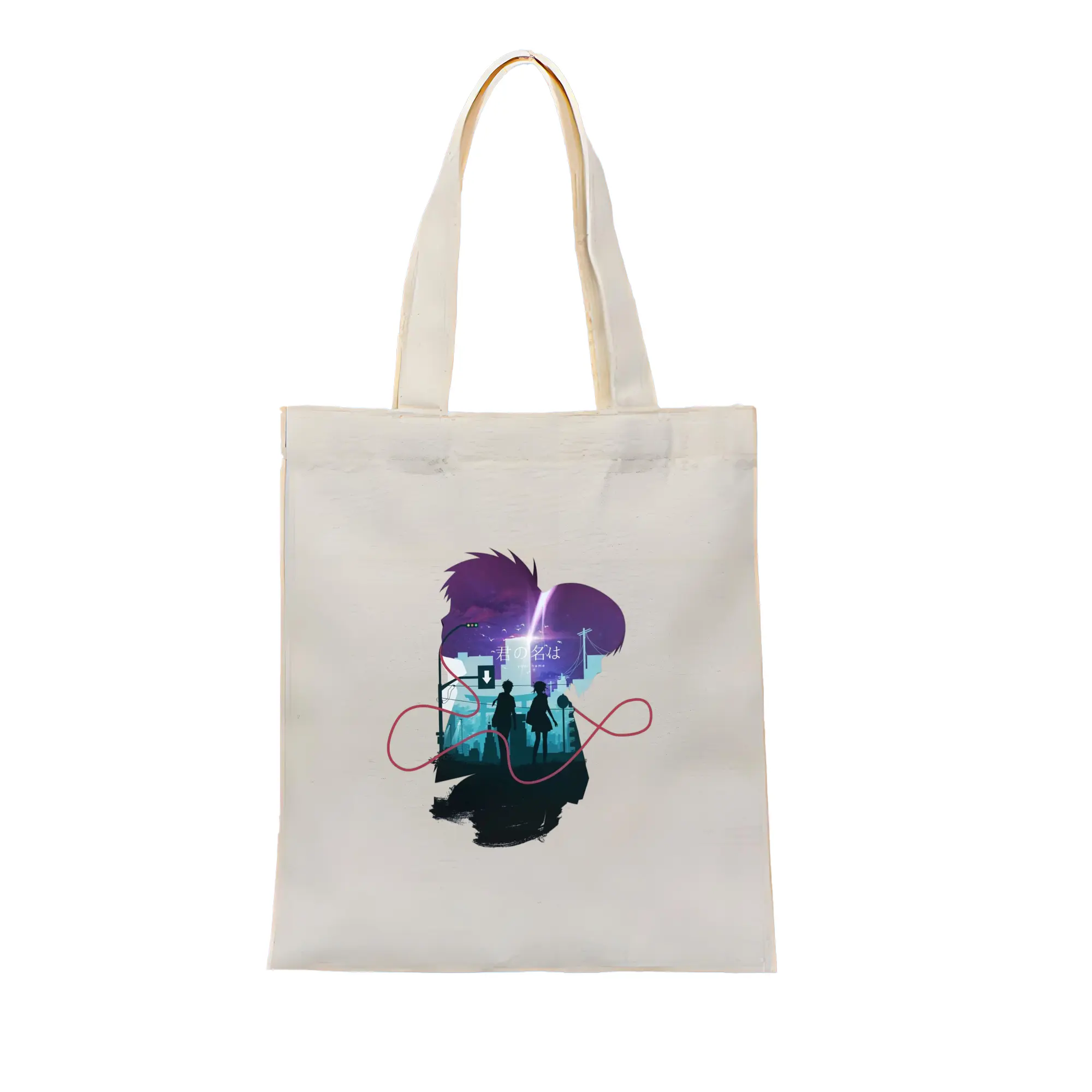 君の名は 立花瀧と宮水三葉 - 縦型キャンバス手提げバッグ(トートバッグ) ・ キャンバス素材 ・ ショッピング用 ・ 軽量 丈夫 お手入れ簡単