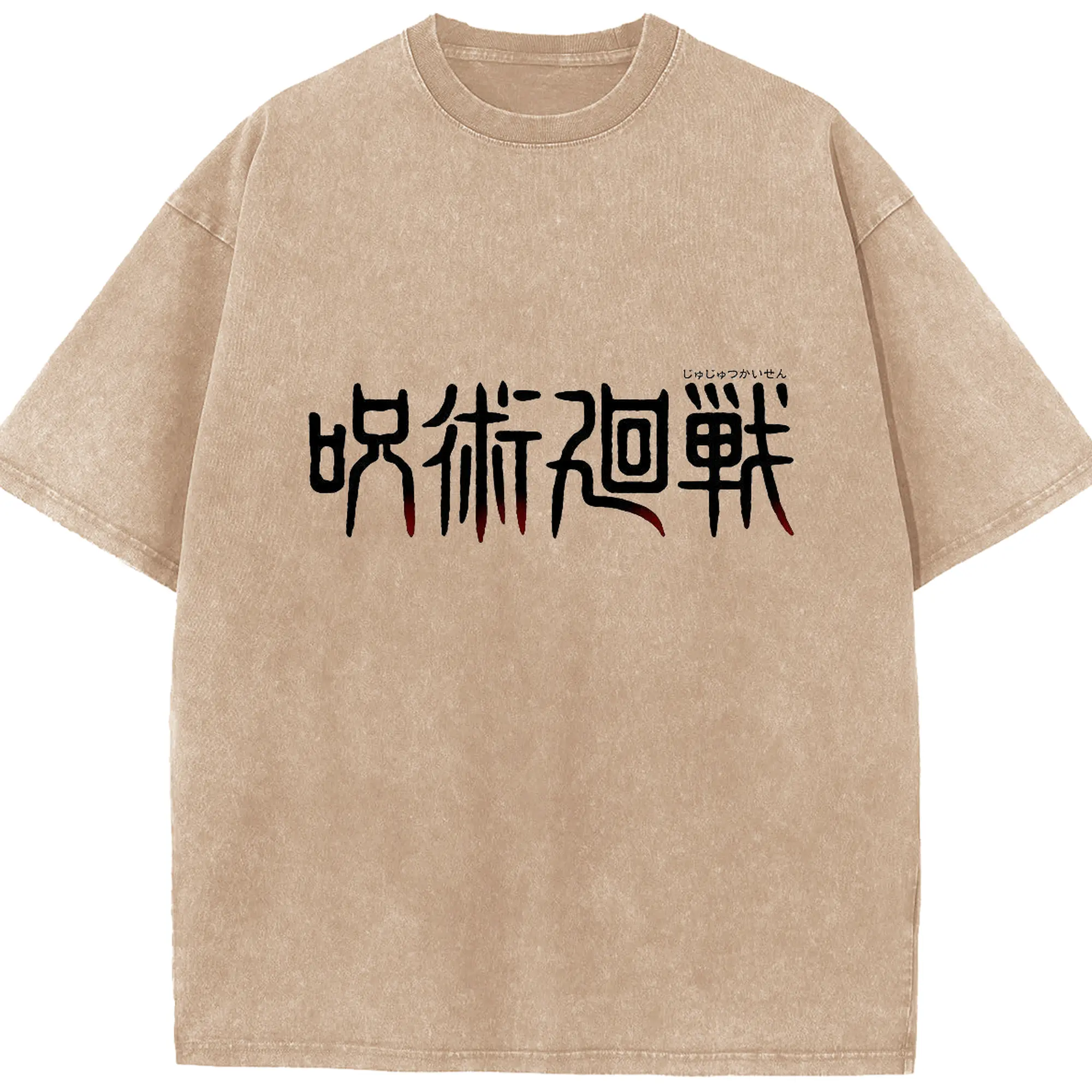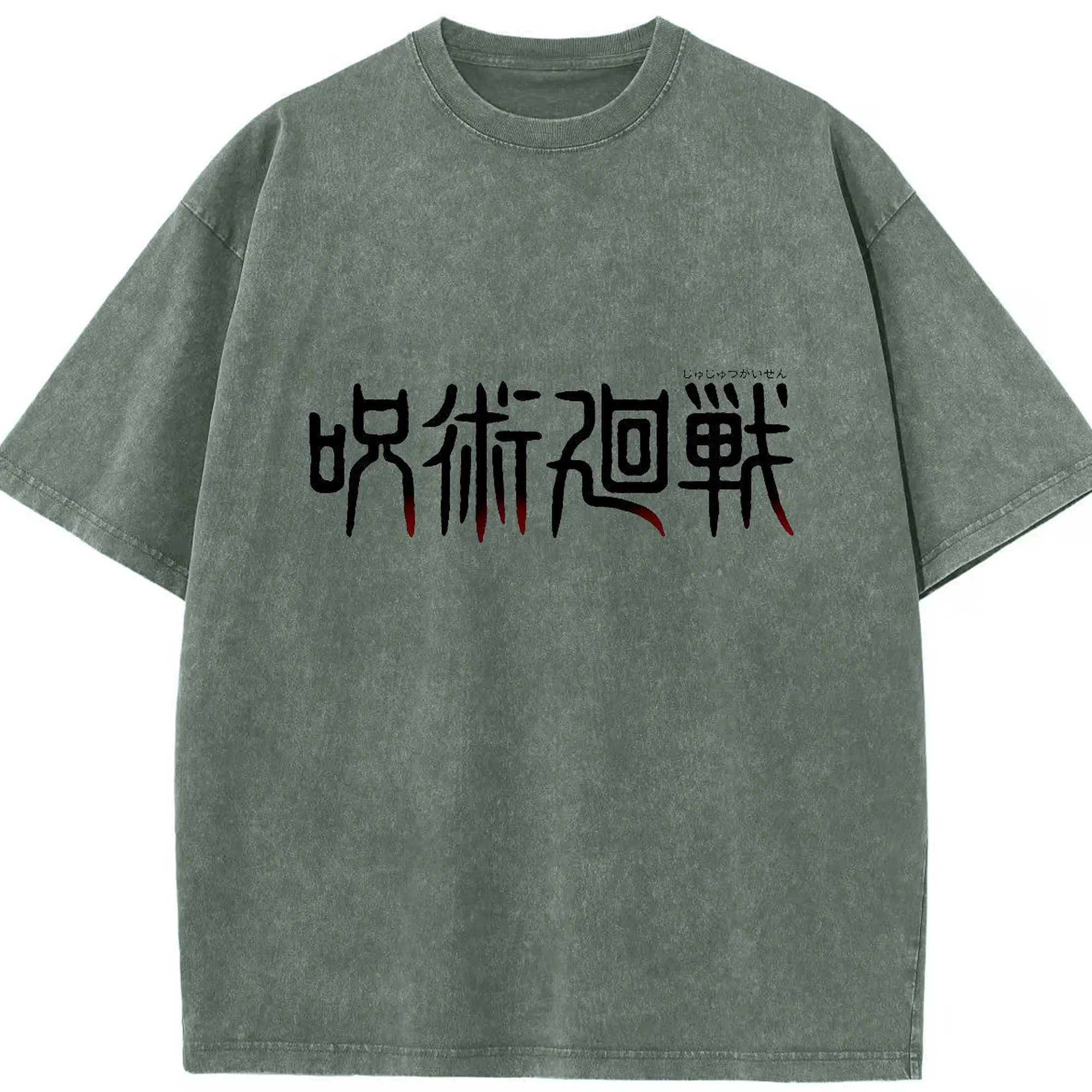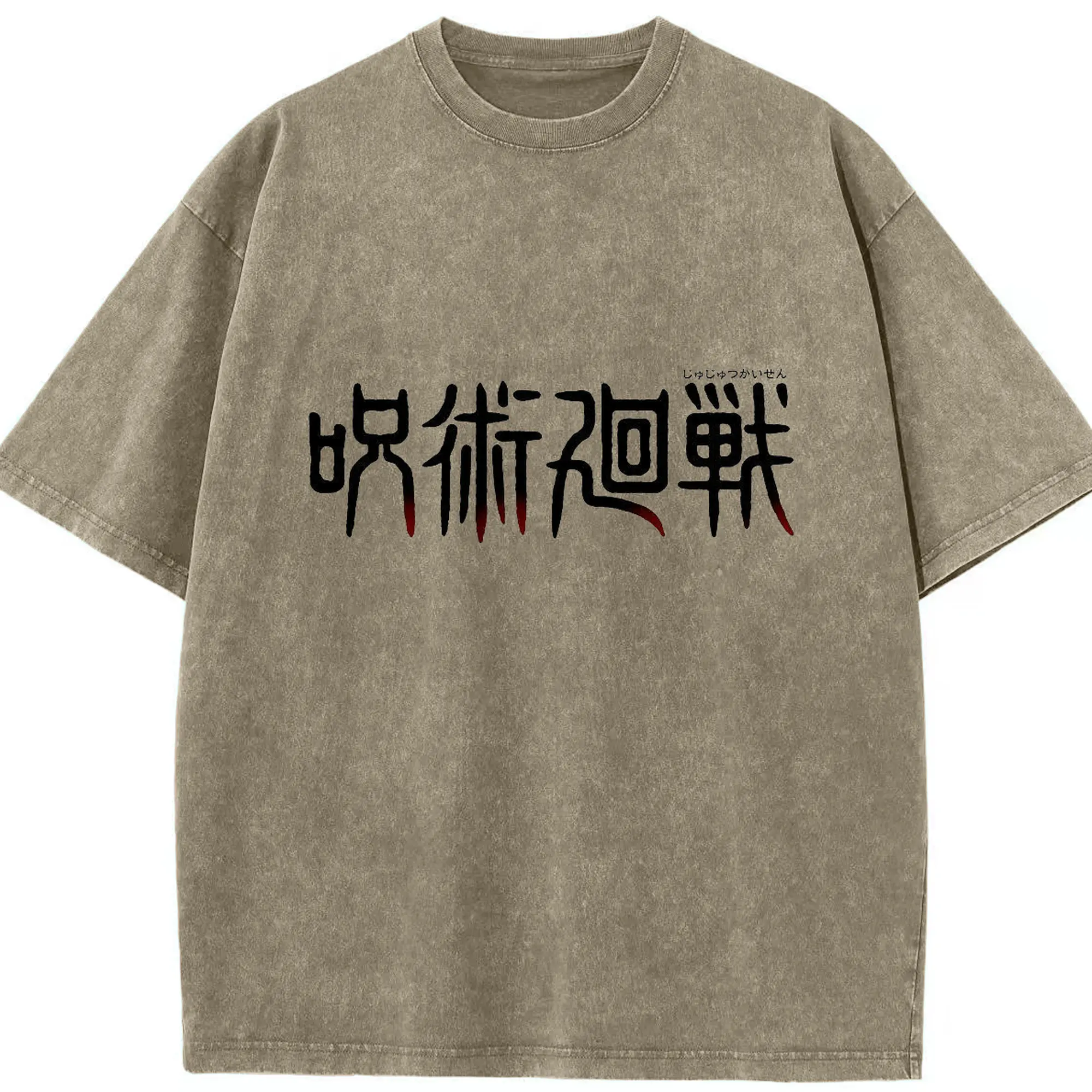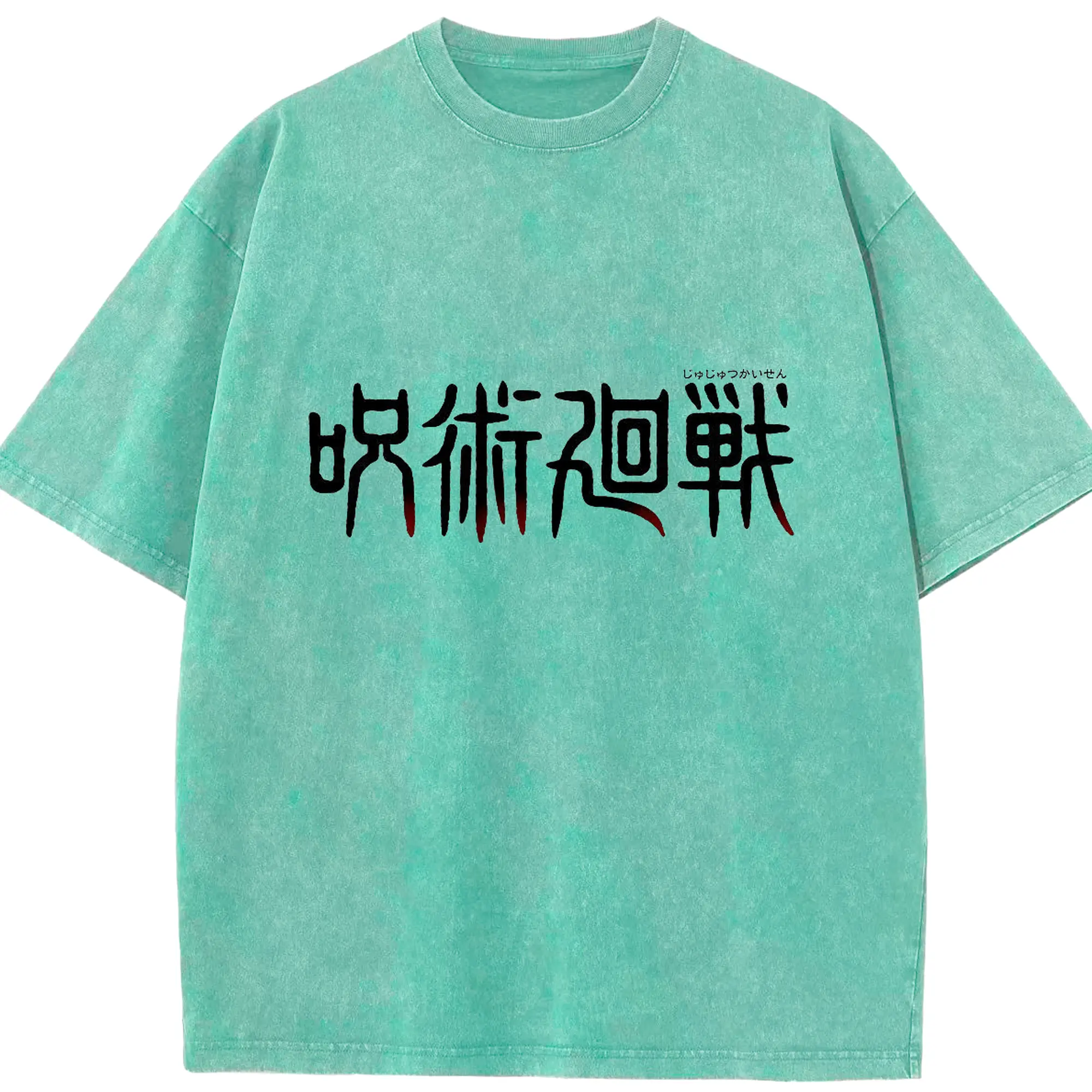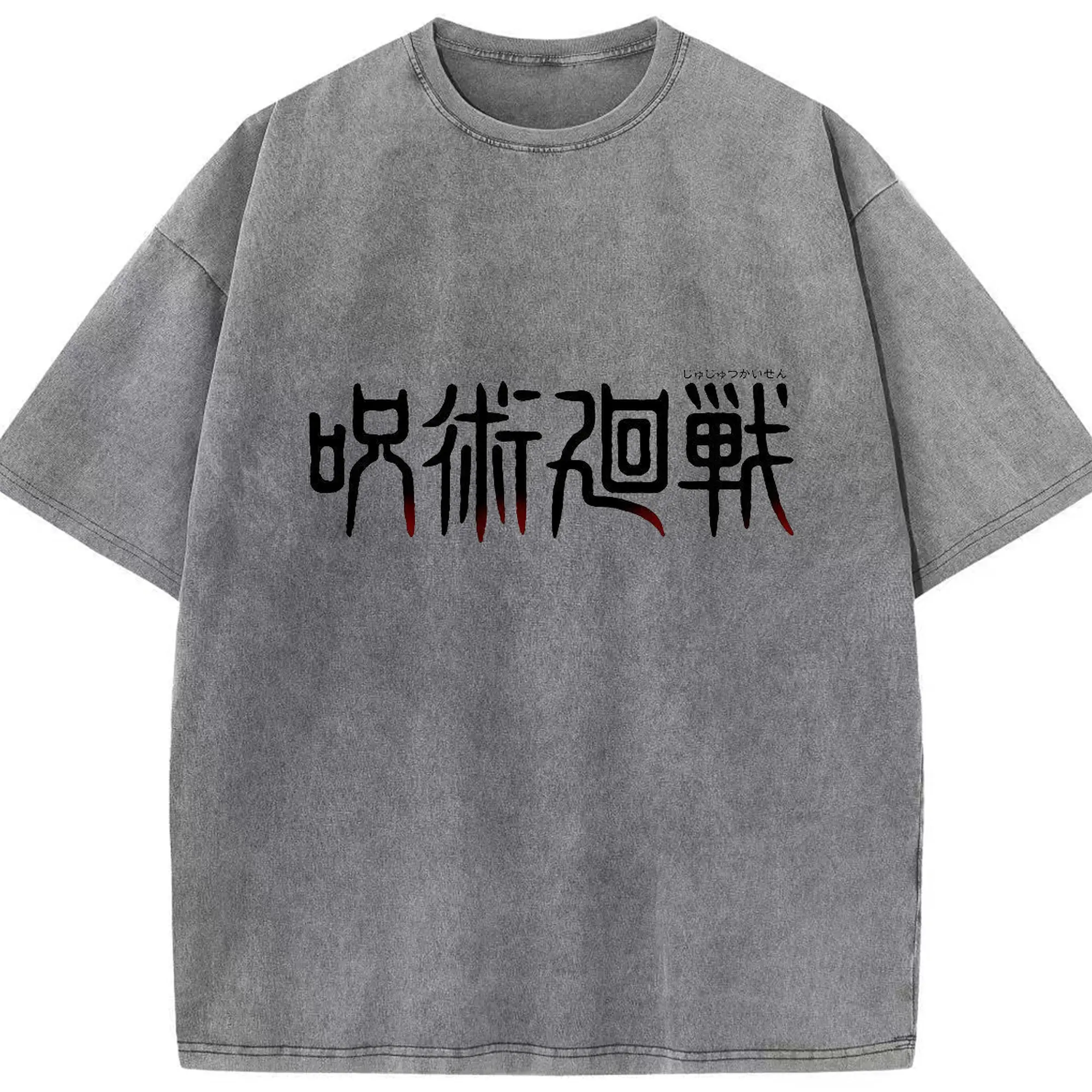 呪術廻戦 シンプルロゴ - 綿100% ヴィンテージ風 半袖Tシャツ ・ フロントプリント ・ 柔らか肌触り ・ 通気性 快適 ・ スポーツ カジュアル 外出用