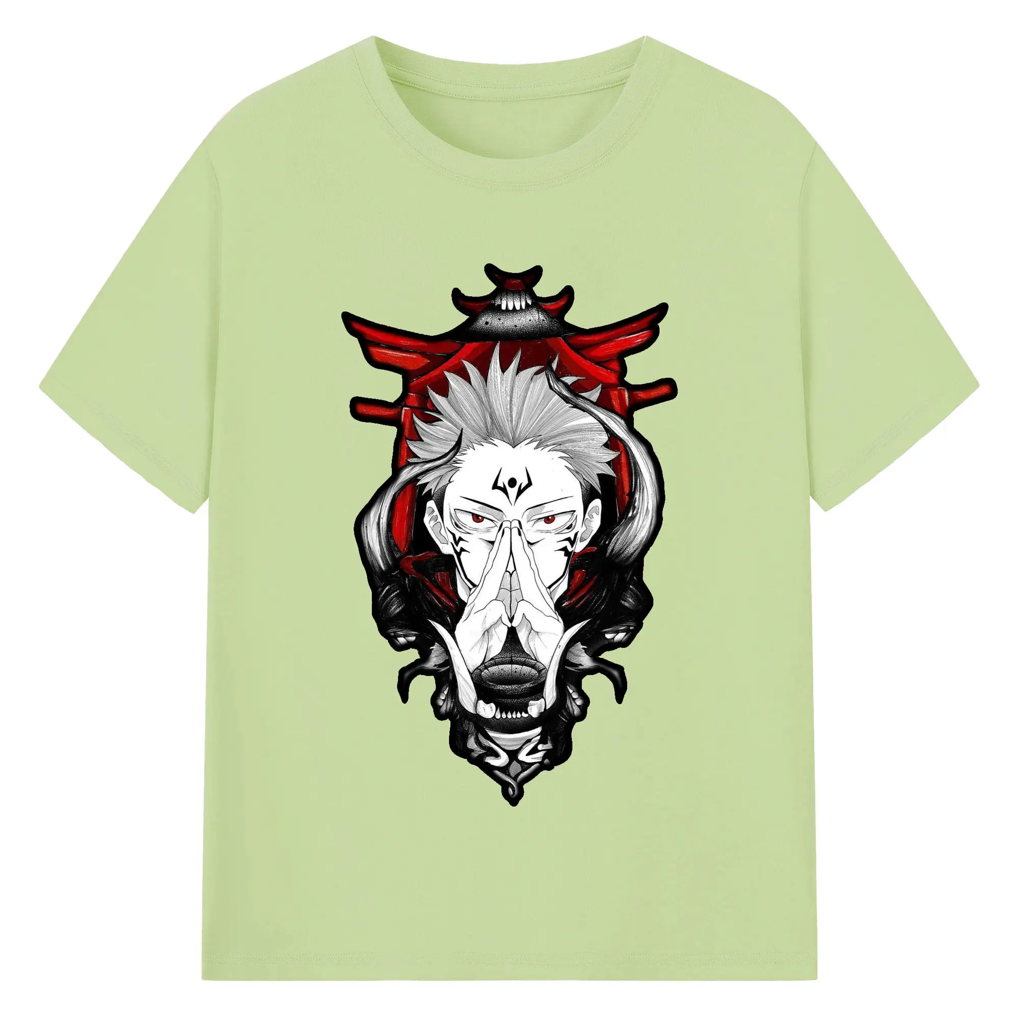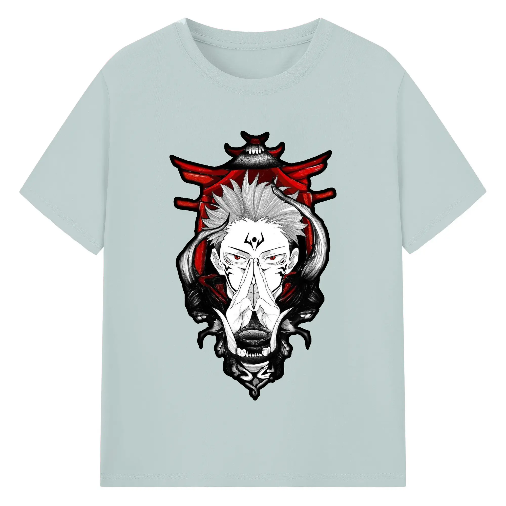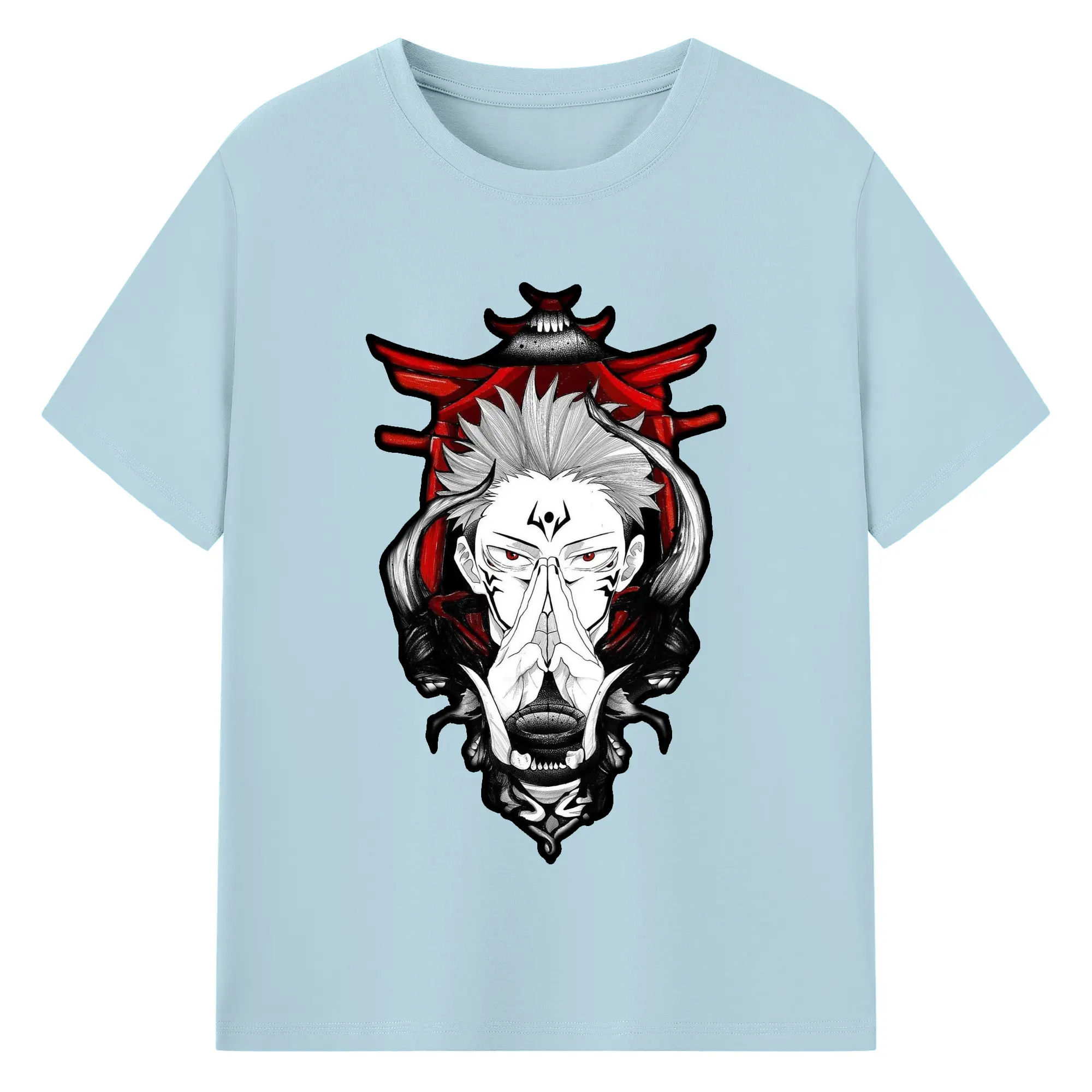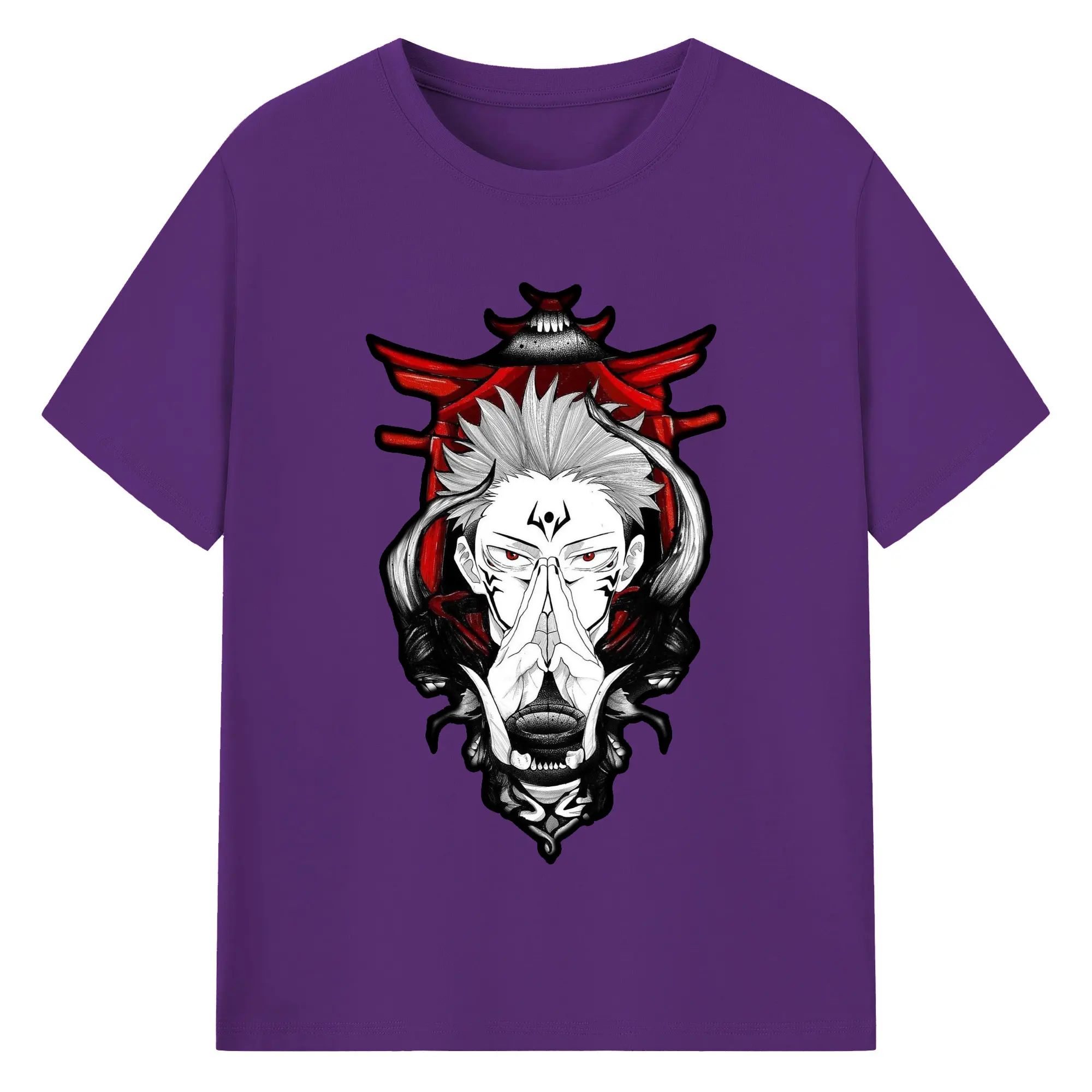 呪術廻戦 両面宿儺 - 綿100% 半袖Tシャツ ・ フロントプリント ・ 快適 通気性 ・ 日常使い 散歩 スポーツ用