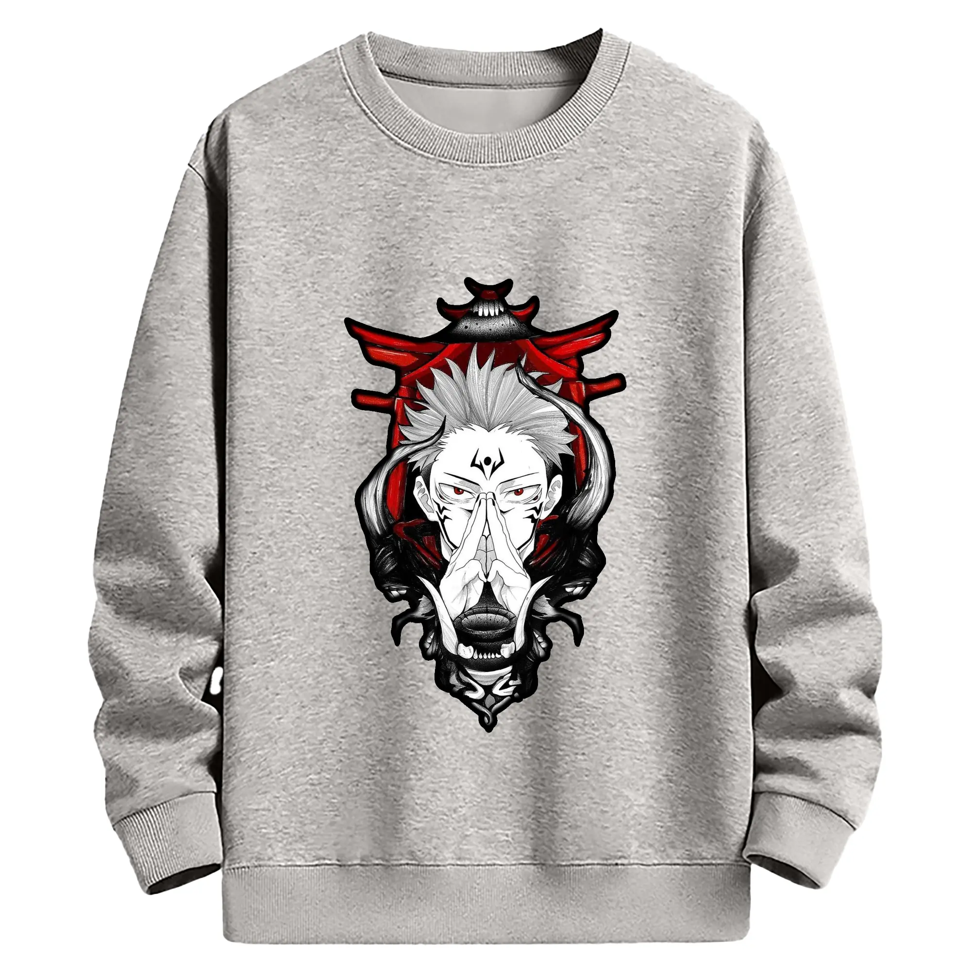 呪術廻戦 両面宿儺 - 高品質 クルーネック スウェット ・ コットン59% ポリエステル41% ・ ユニセックス 長袖 トレーナー ・ カジュアル デイリー スポーツ 散歩用