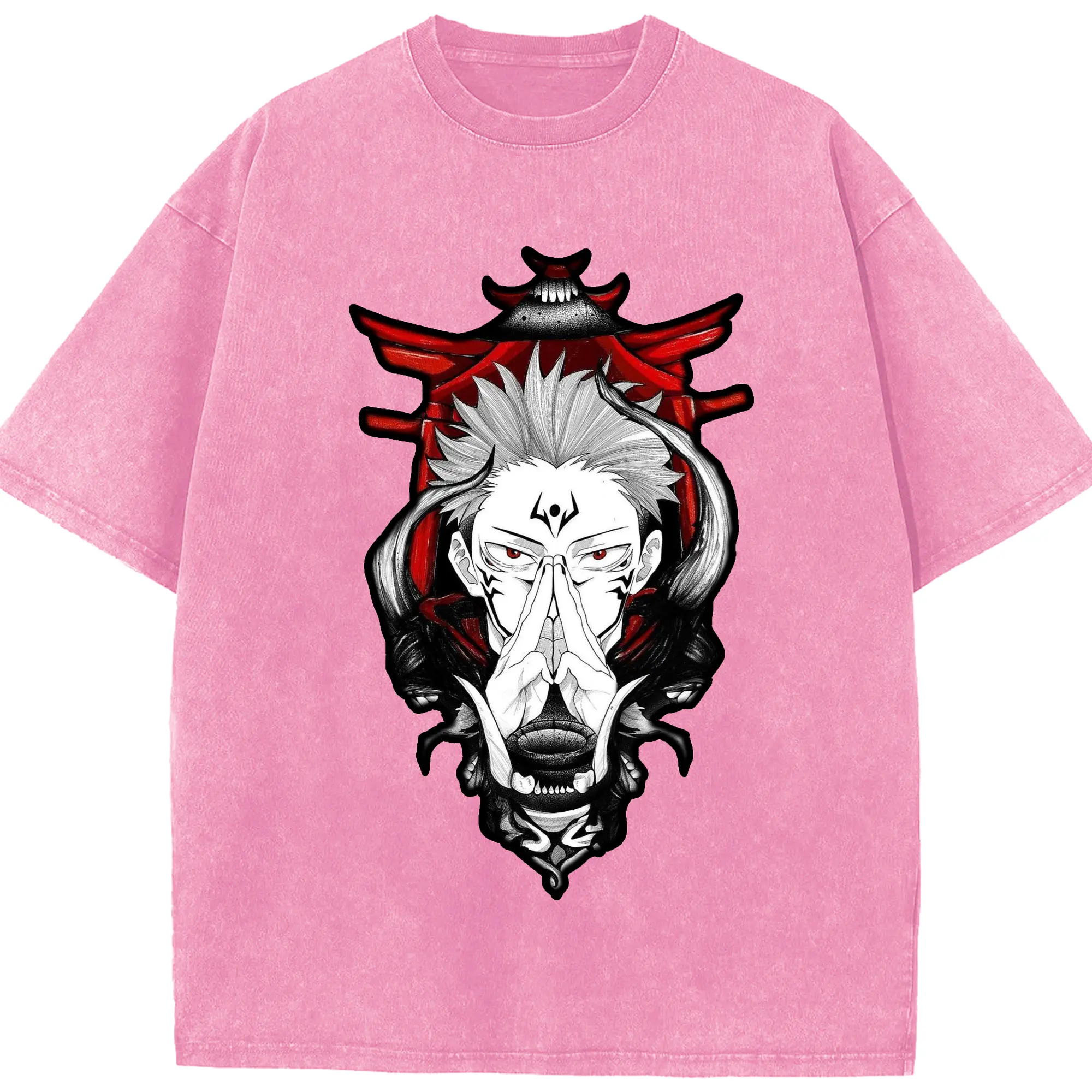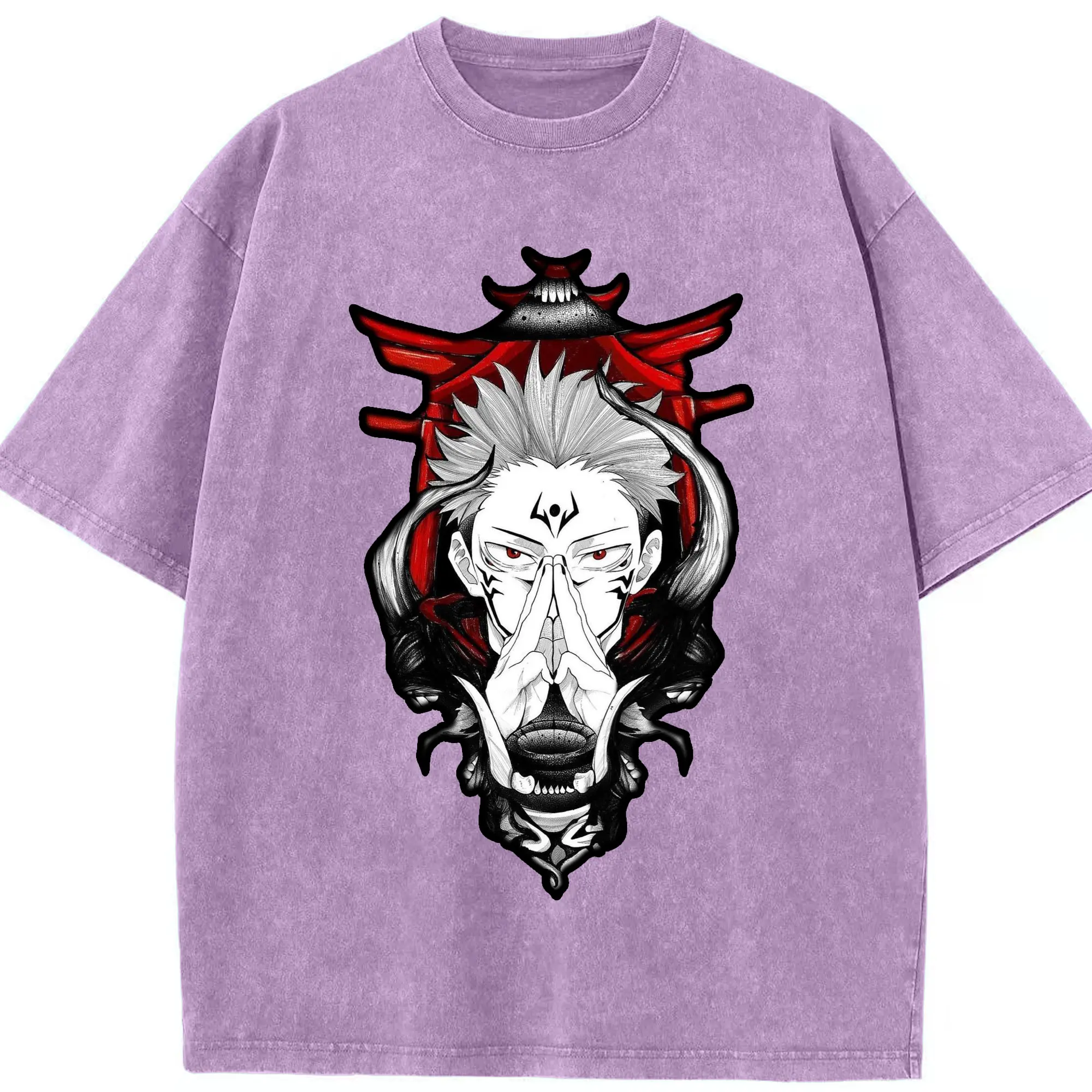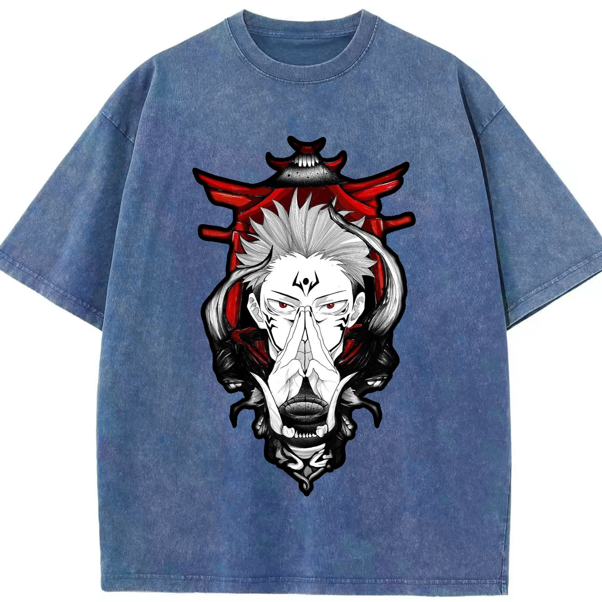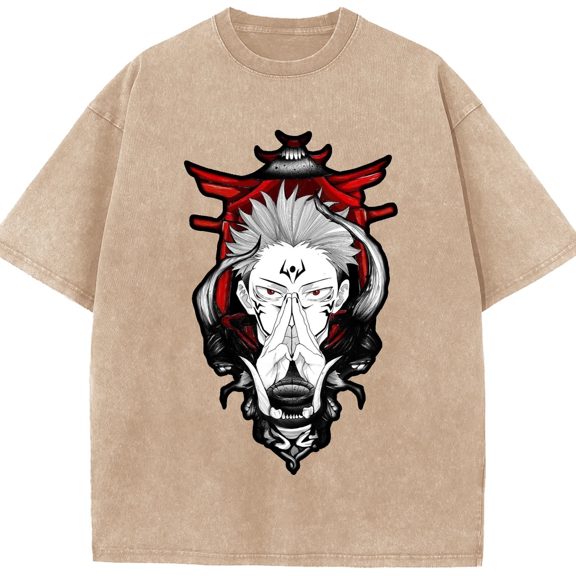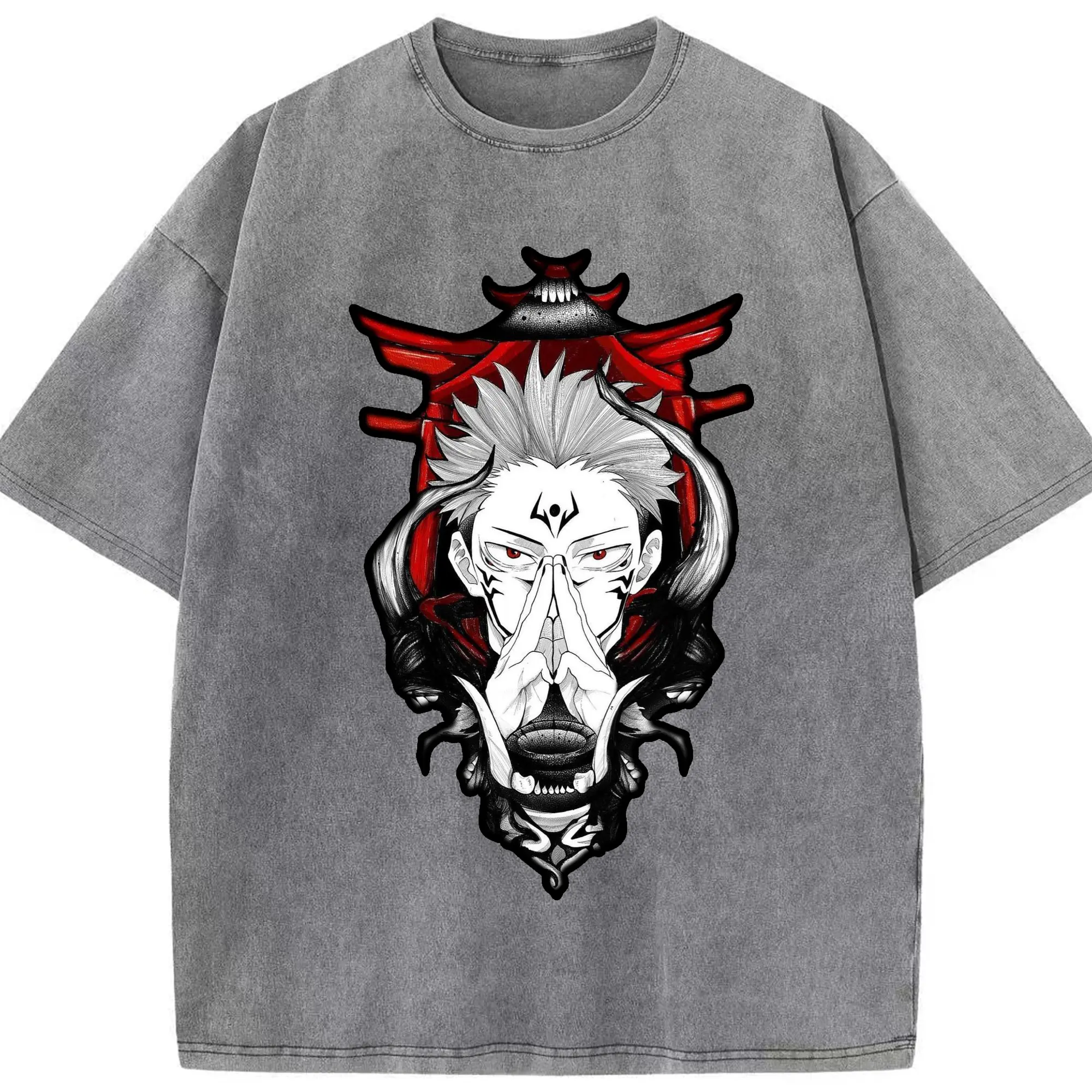 呪術廻戦 両面宿儺 - 綿100% ヴィンテージ風 半袖Tシャツ ・ フロントプリント ・ 柔らか肌触り ・ 通気性 快適 ・ スポーツ カジュアル 外出用