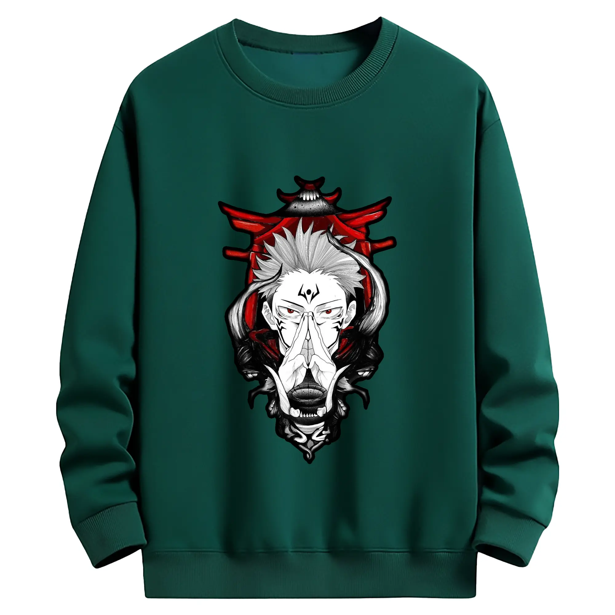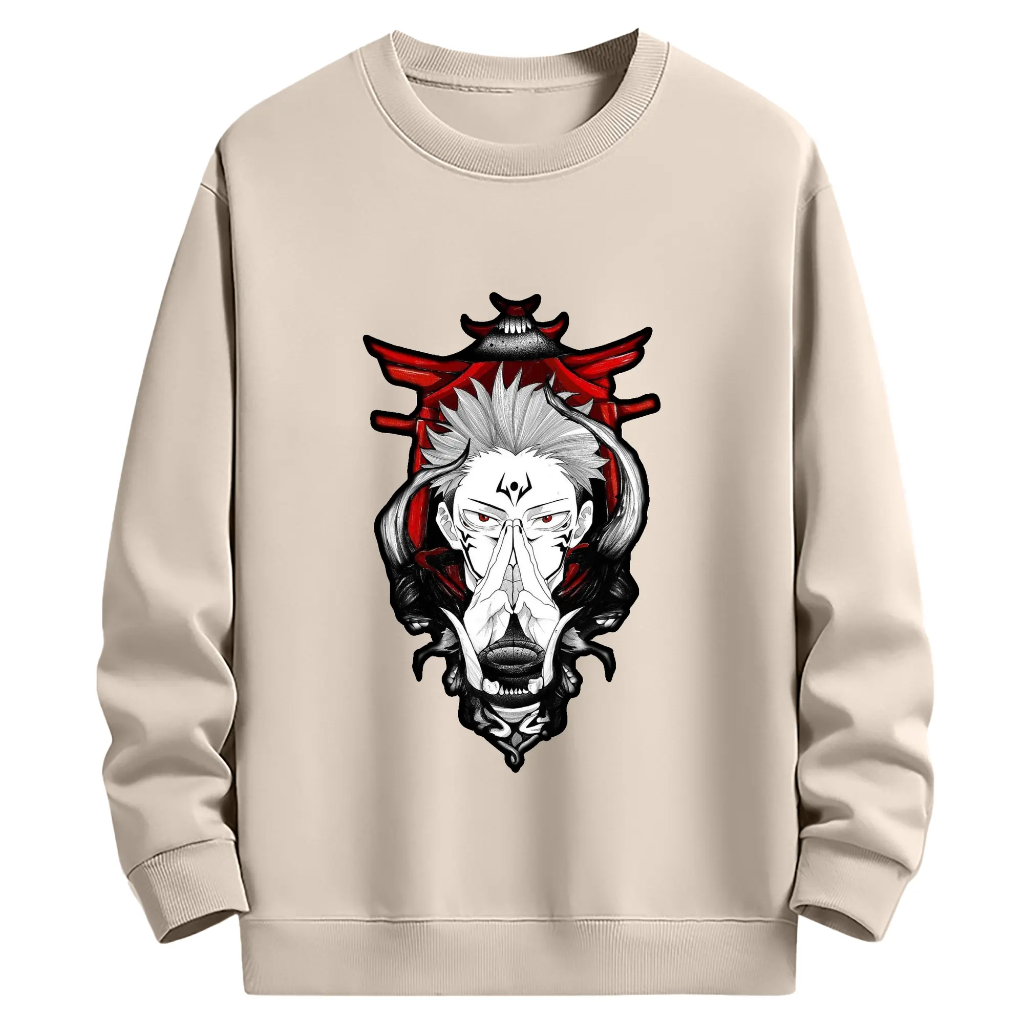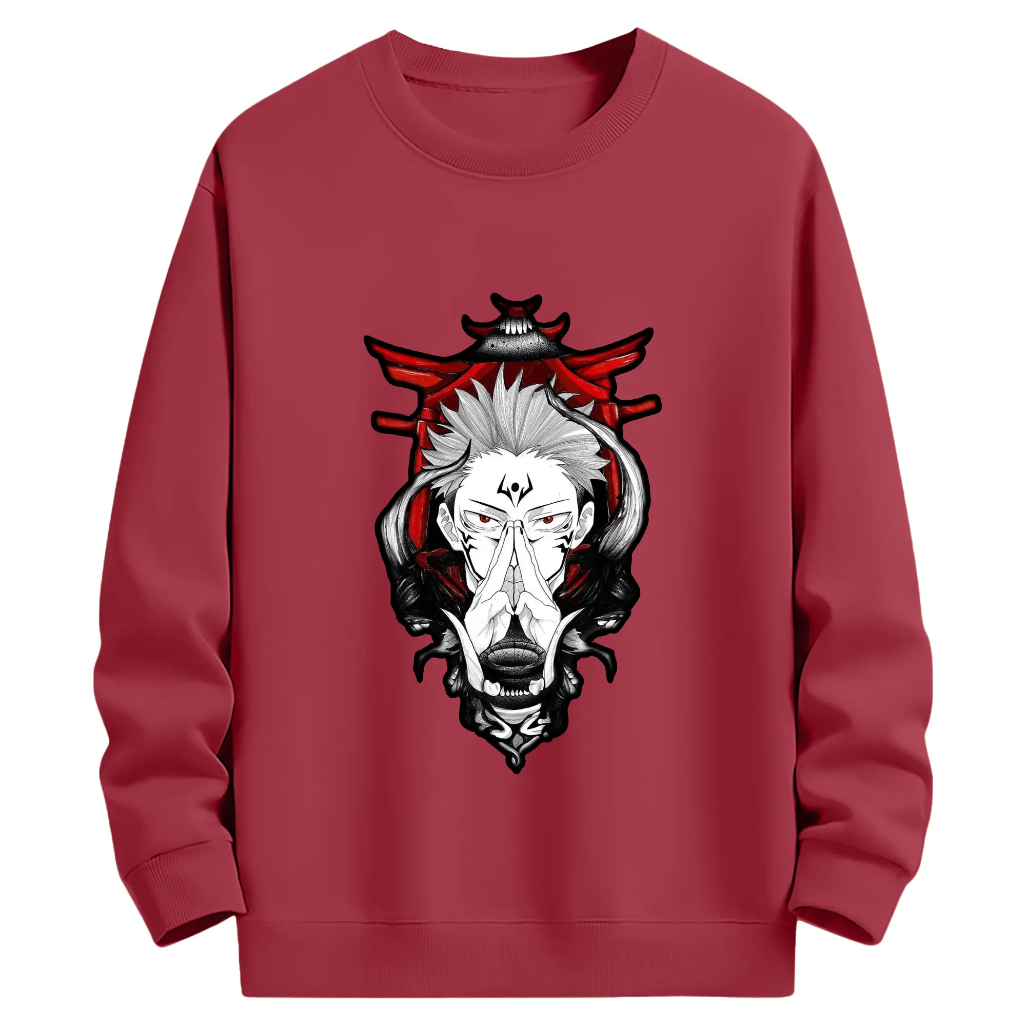 呪術廻戦 両面宿儺 - 高品質 クルーネック スウェット ・ コットン59% ポリエステル41% ・ ユニセックス 長袖 トレーナー ・ カジュアル デイリー スポーツ 散歩用