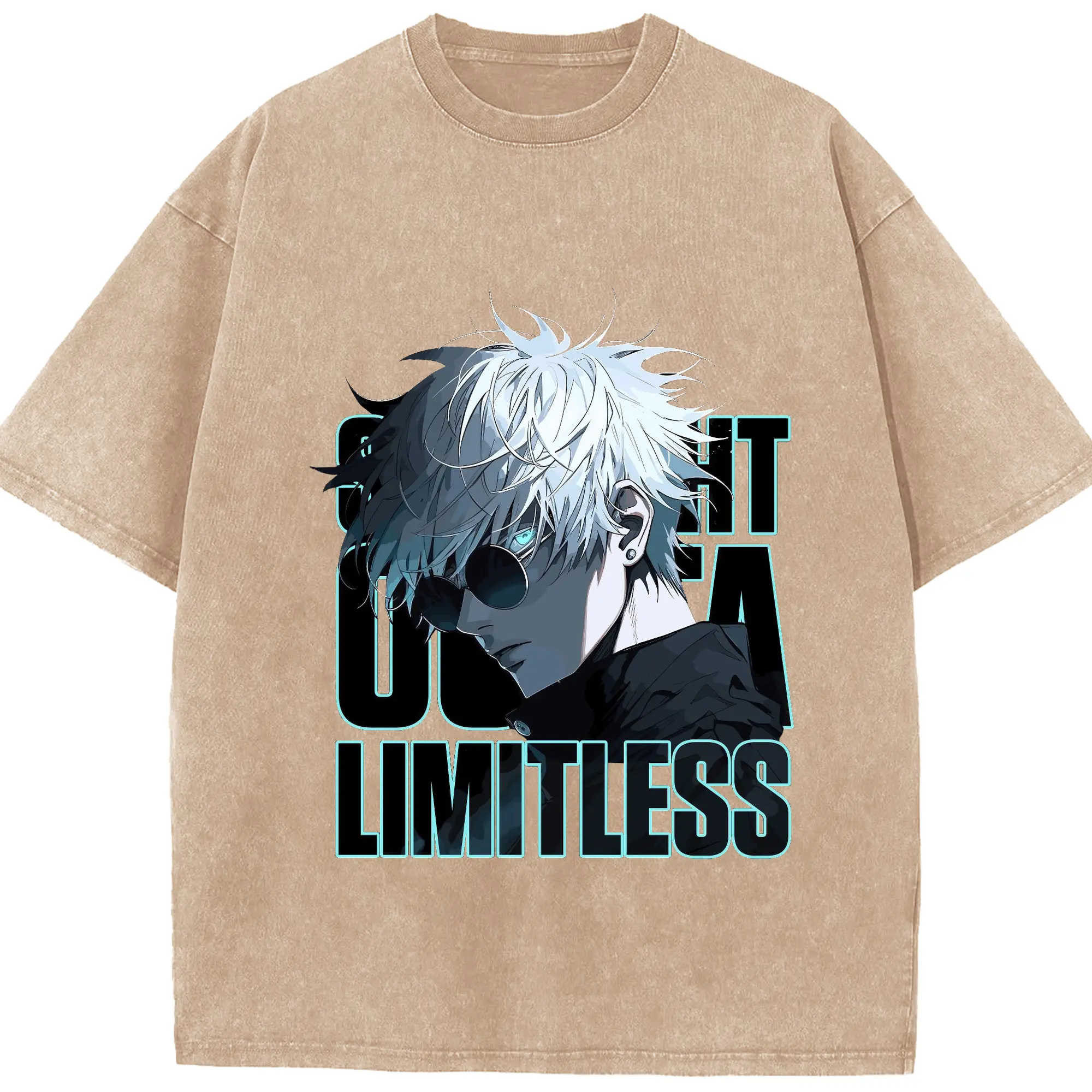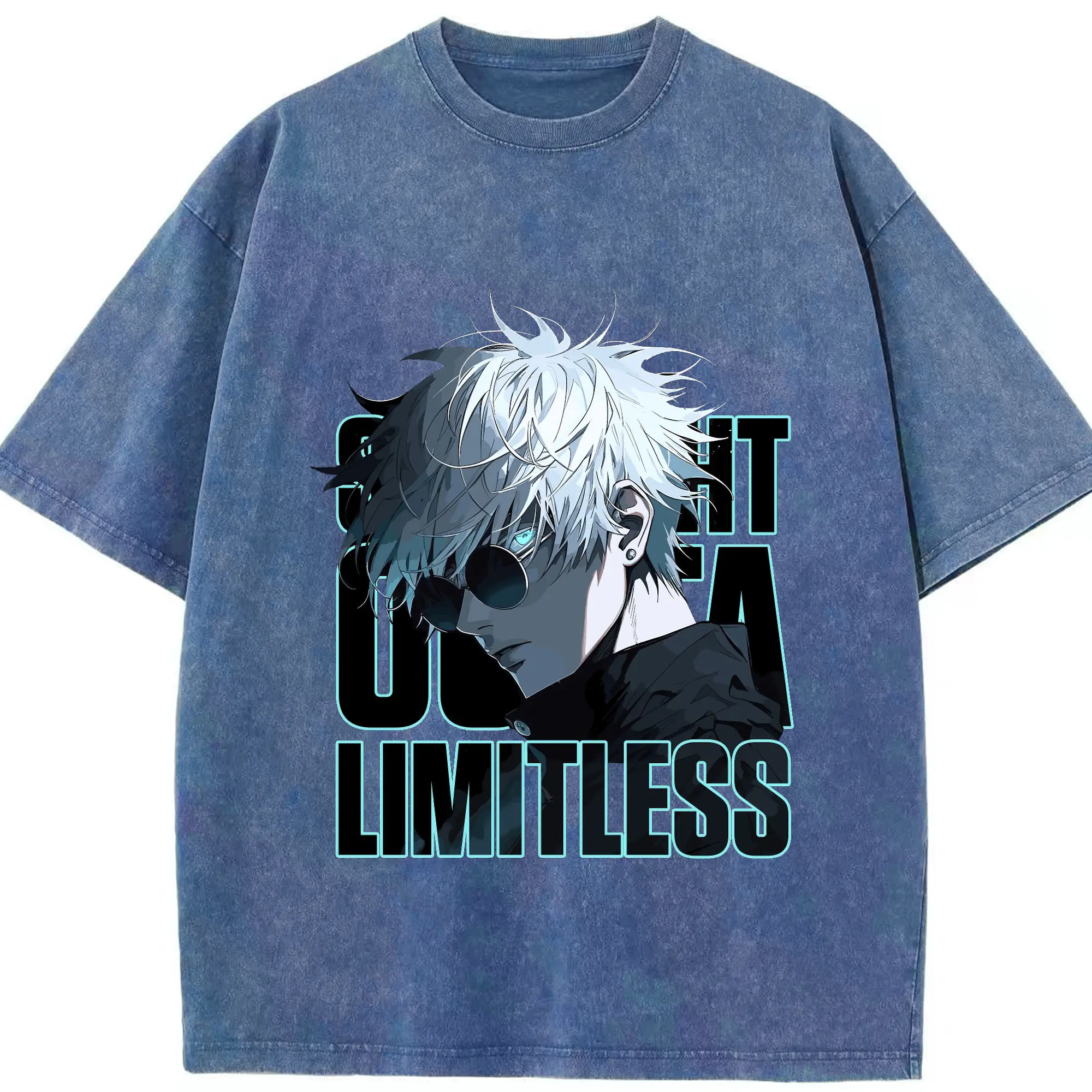 呪術廻戦 五条悟かっこいい - 綿100% ヴィンテージ風 半袖Tシャツ ・ フロントプリント ・ 柔らか肌触り ・ 通気性 快適 ・ スポーツ カジュアル 外出用