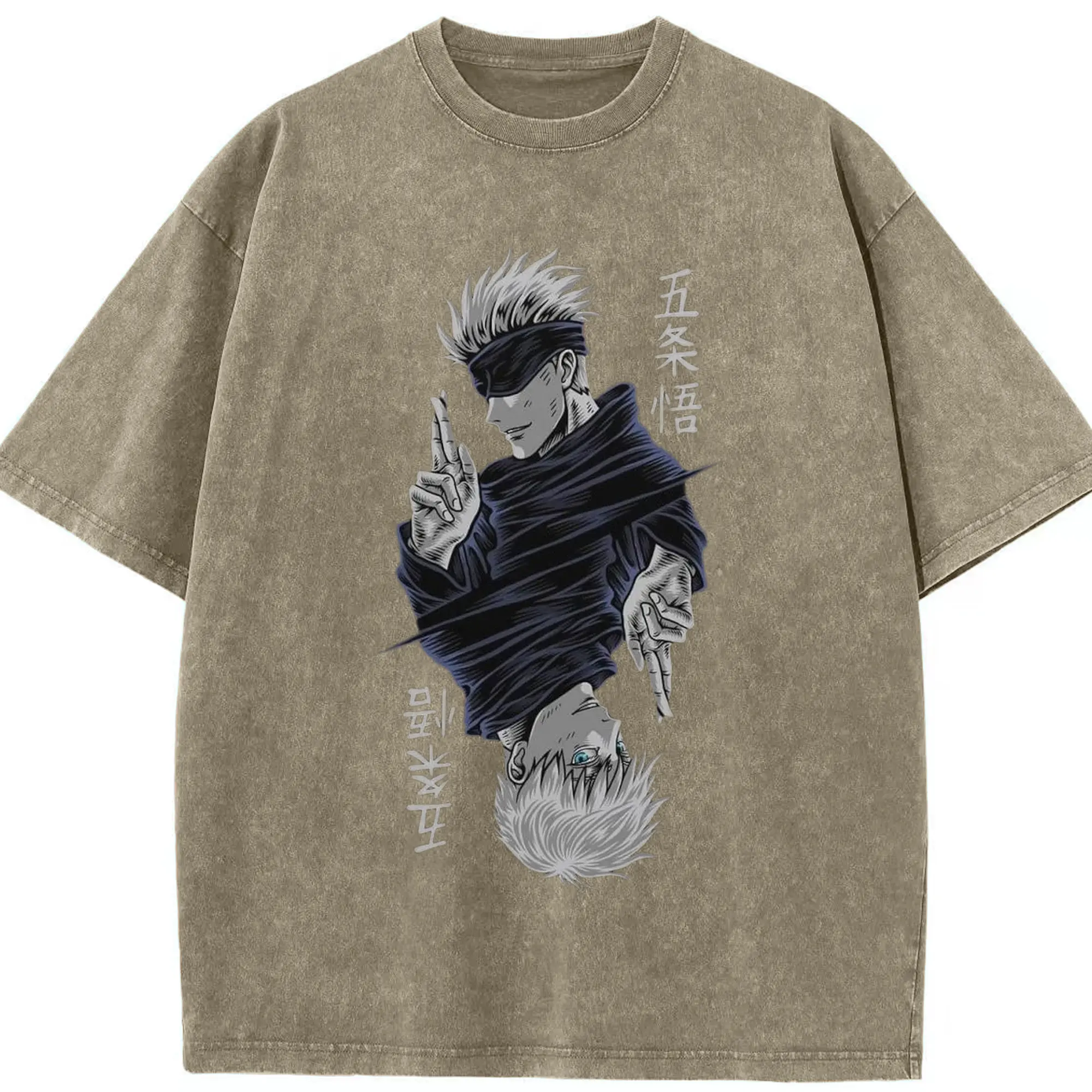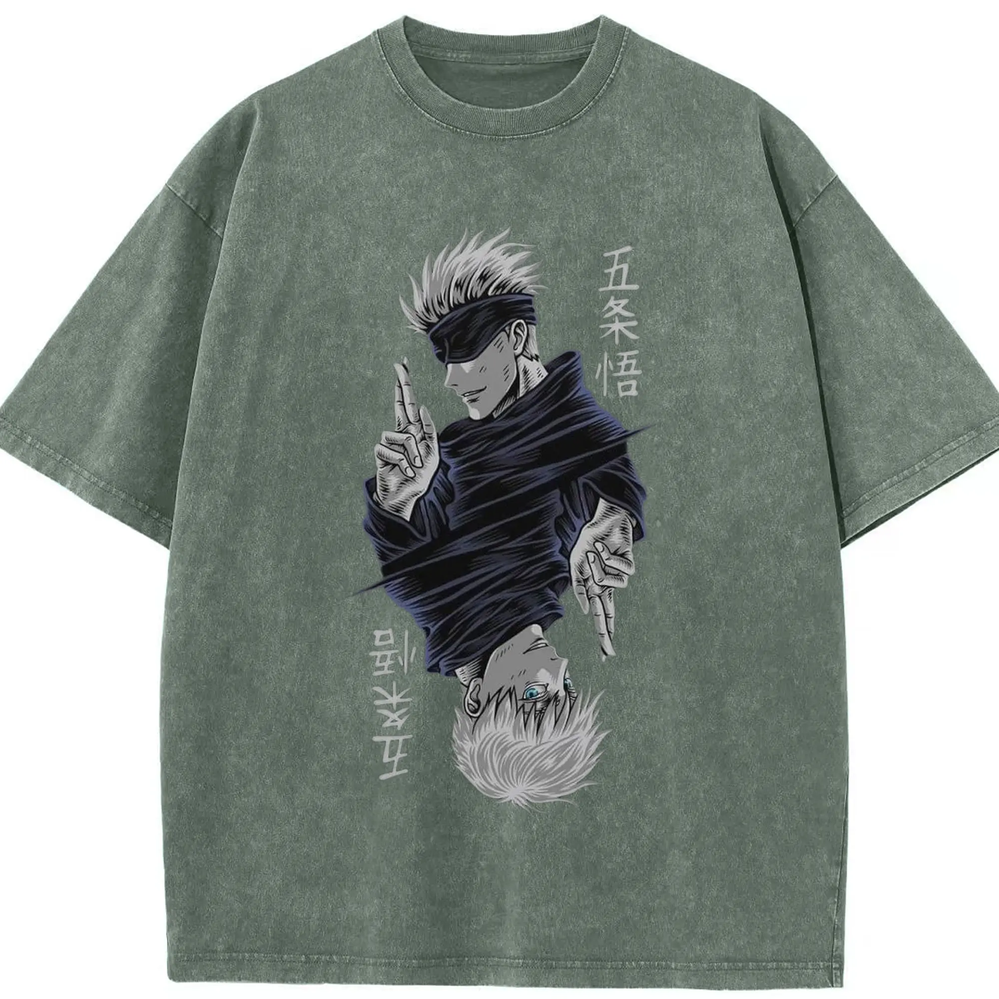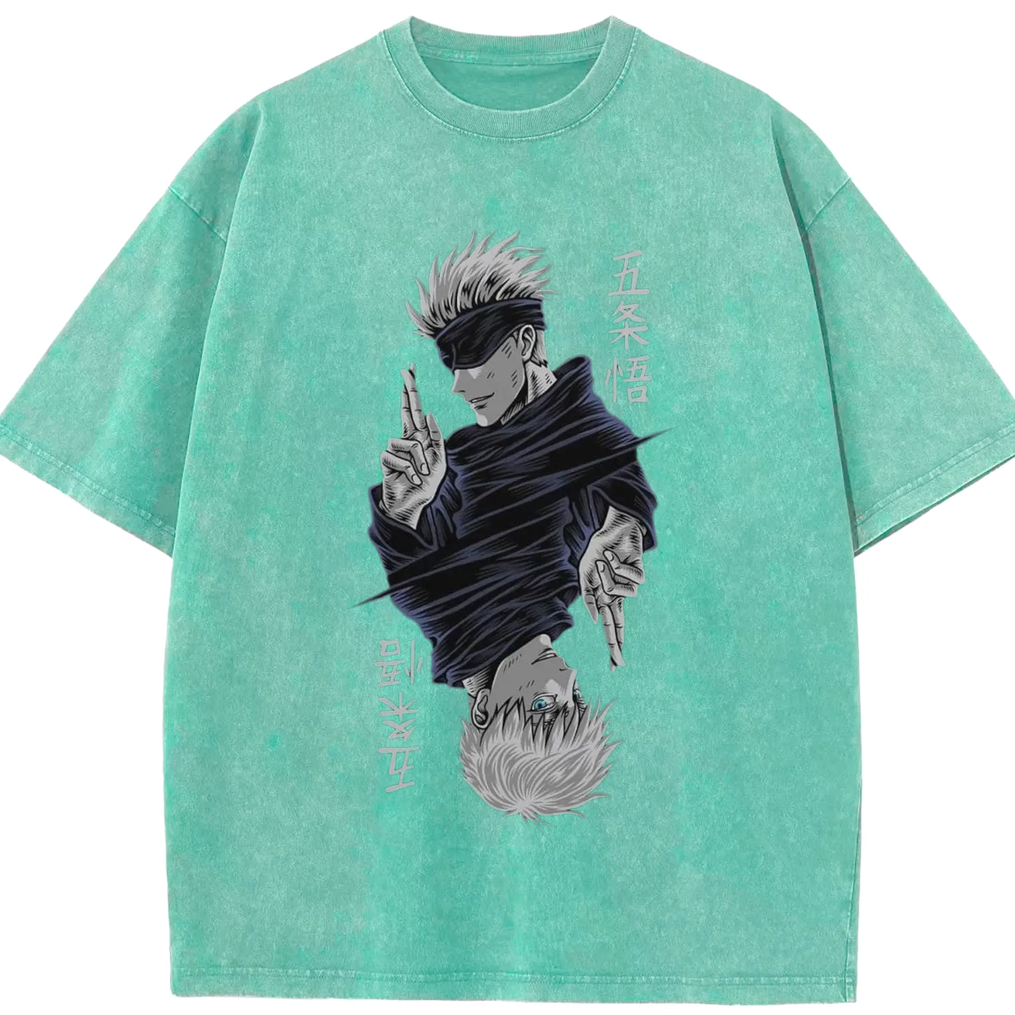 呪術廻戦 五条悟最強 - 綿100% ヴィンテージ風 半袖Tシャツ ・ フロントプリント ・ 柔らか肌触り ・ 通気性 快適 ・ スポーツ カジュアル 外出用