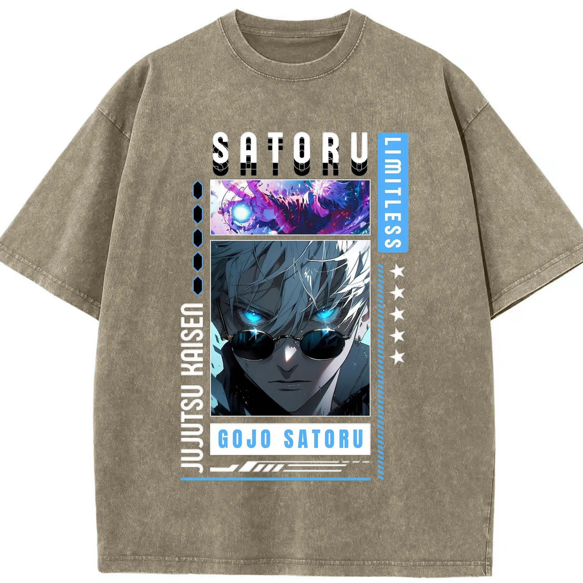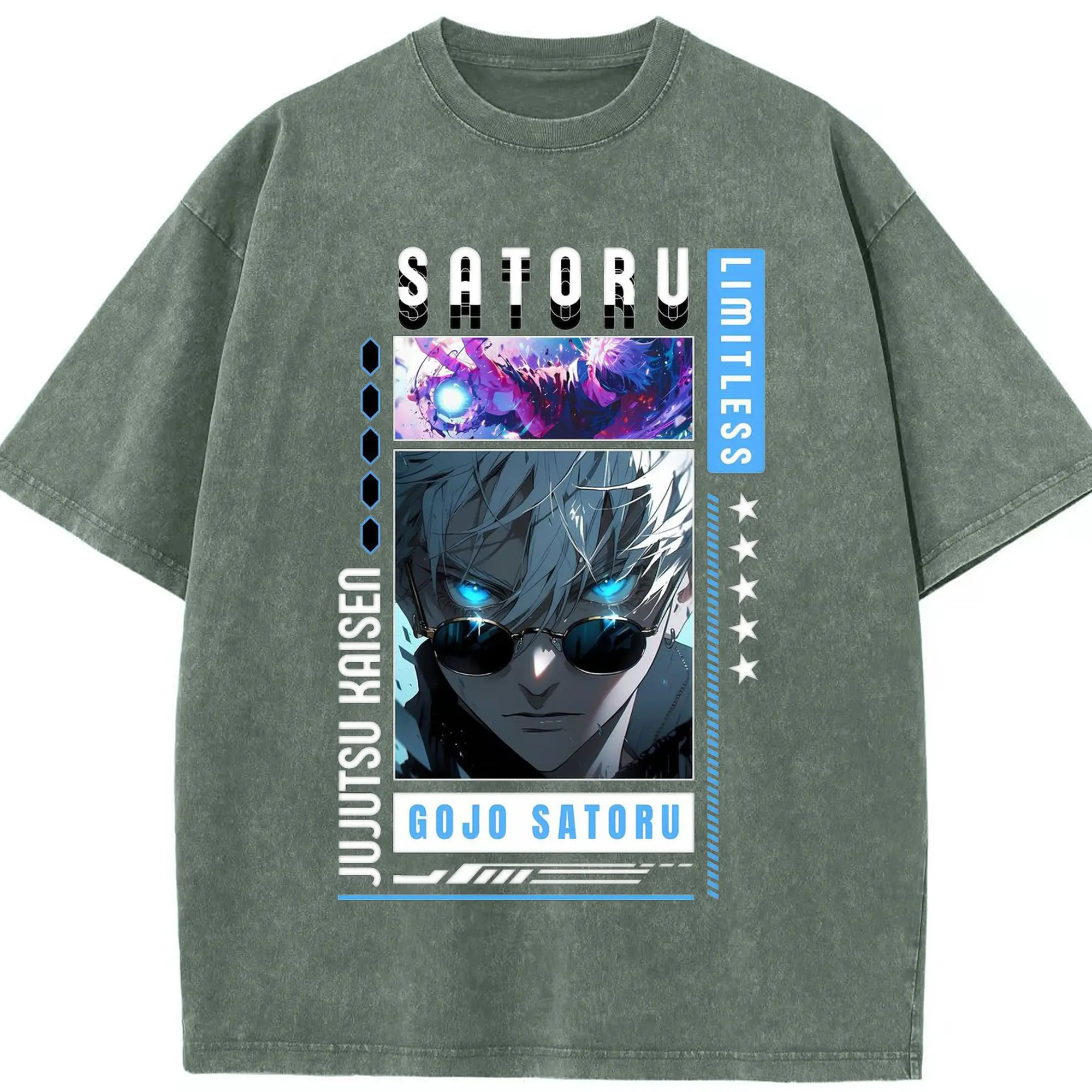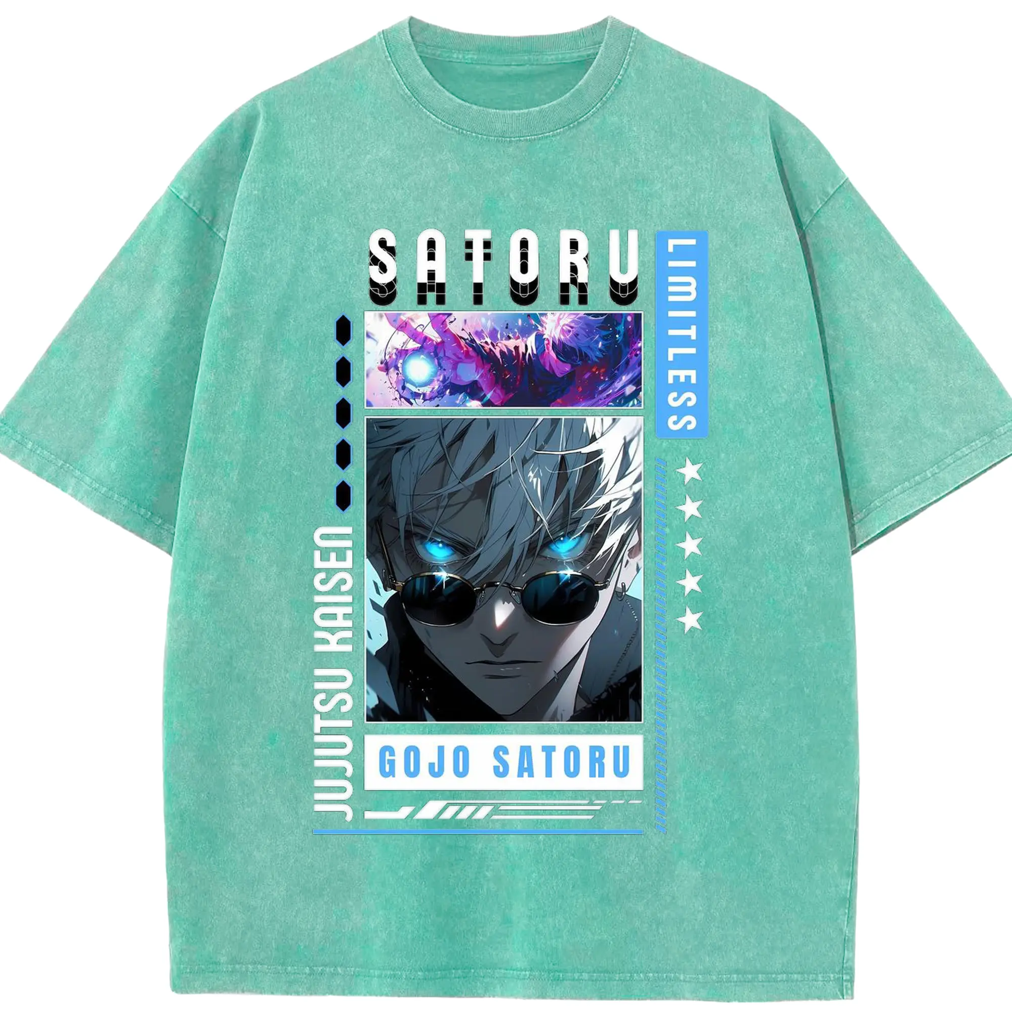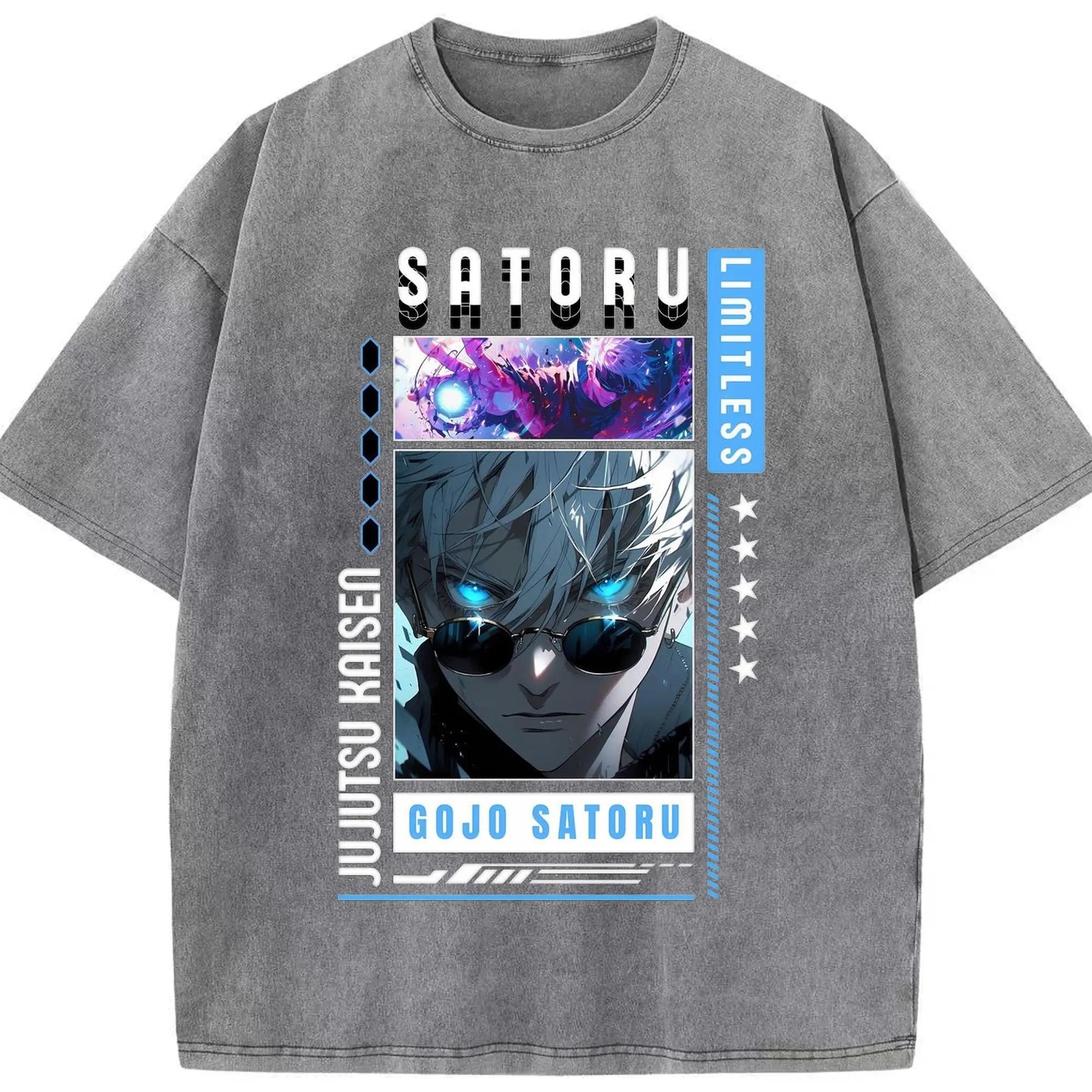 呪術廻戦 五条悟 かっこいい - 綿100% ヴィンテージ風 半袖Tシャツ ・ フロントプリント ・ 柔らか肌触り ・ 通気性 快適 ・ スポーツ カジュアル 外出用