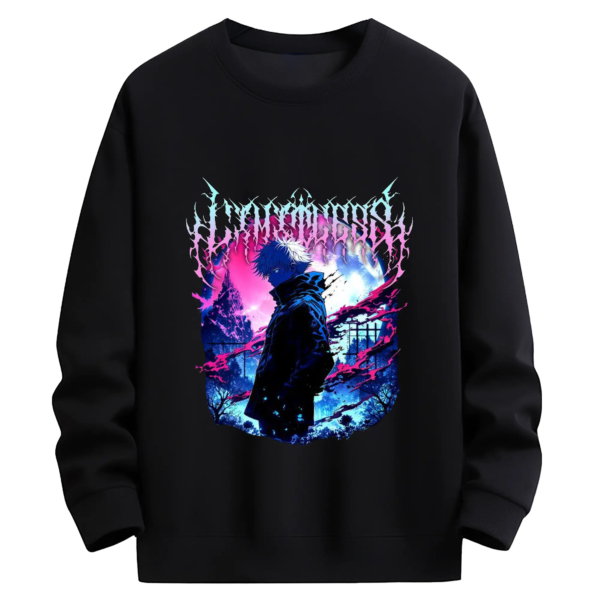 呪術廻戦 五条悟 俺が最強だから - 高品質 クルーネック スウェット ・ コットン59% ポリエステル41% ・ ユニセックス 長袖 トレーナー ・ カジュアル デイリー スポーツ 散歩用