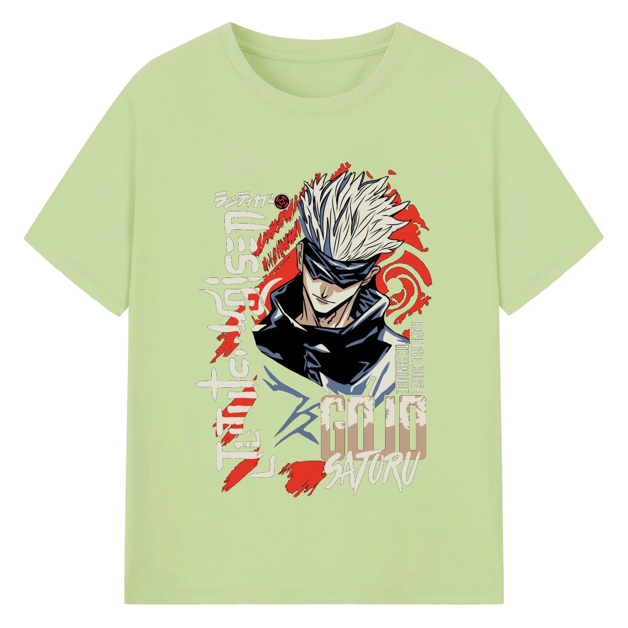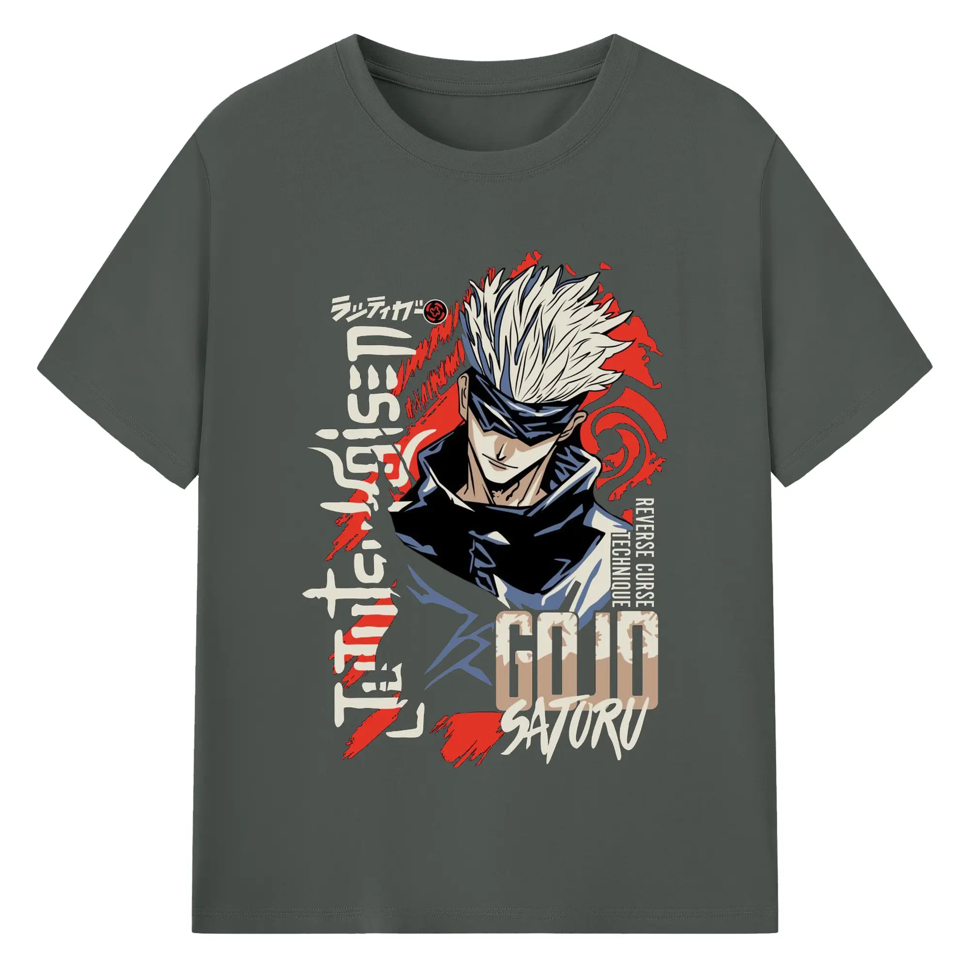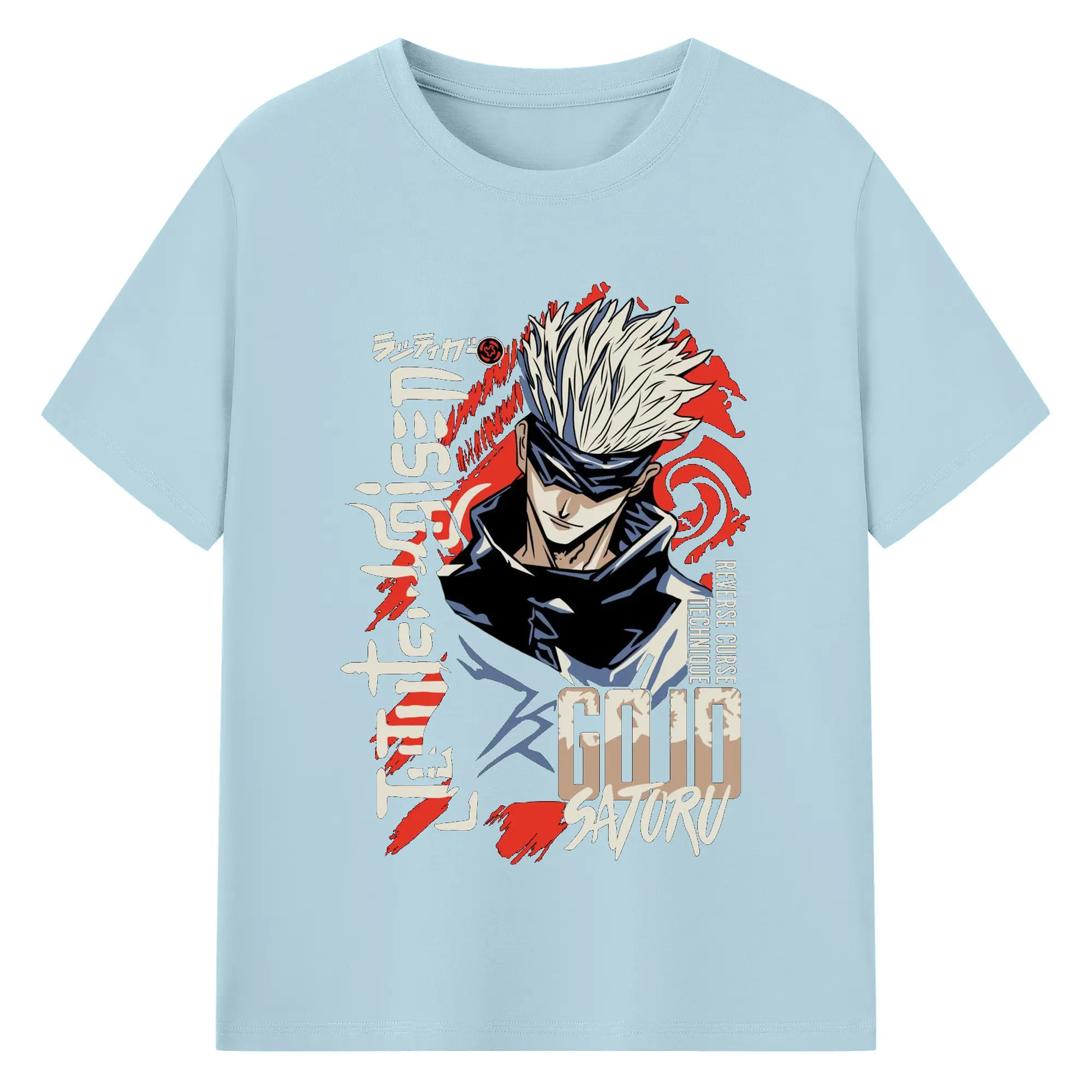 呪術廻戦 五条悟先生 - 綿100% 半袖Tシャツ ・ フロントプリント ・ 快適 通気性 ・ 日常使い 散歩 スポーツ用