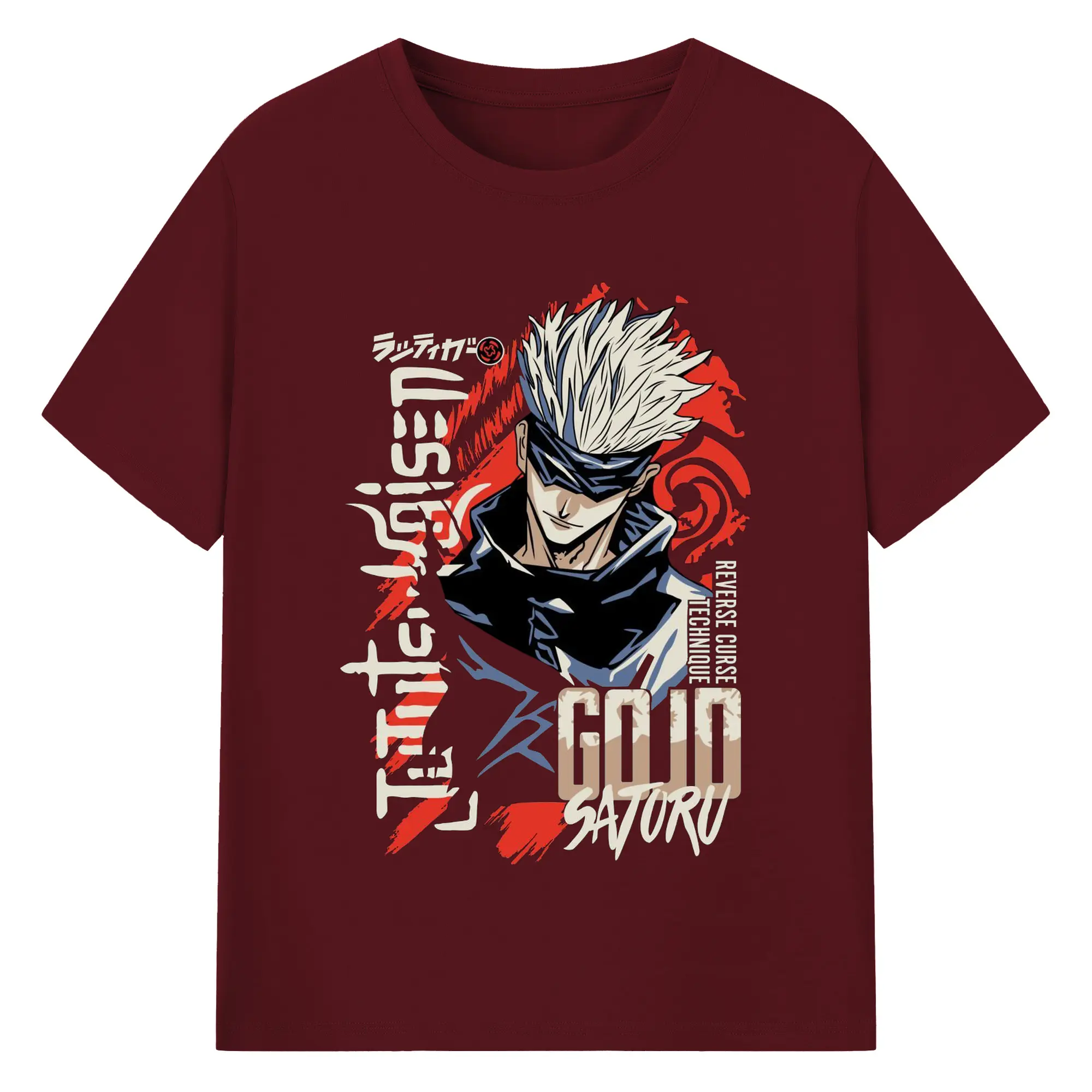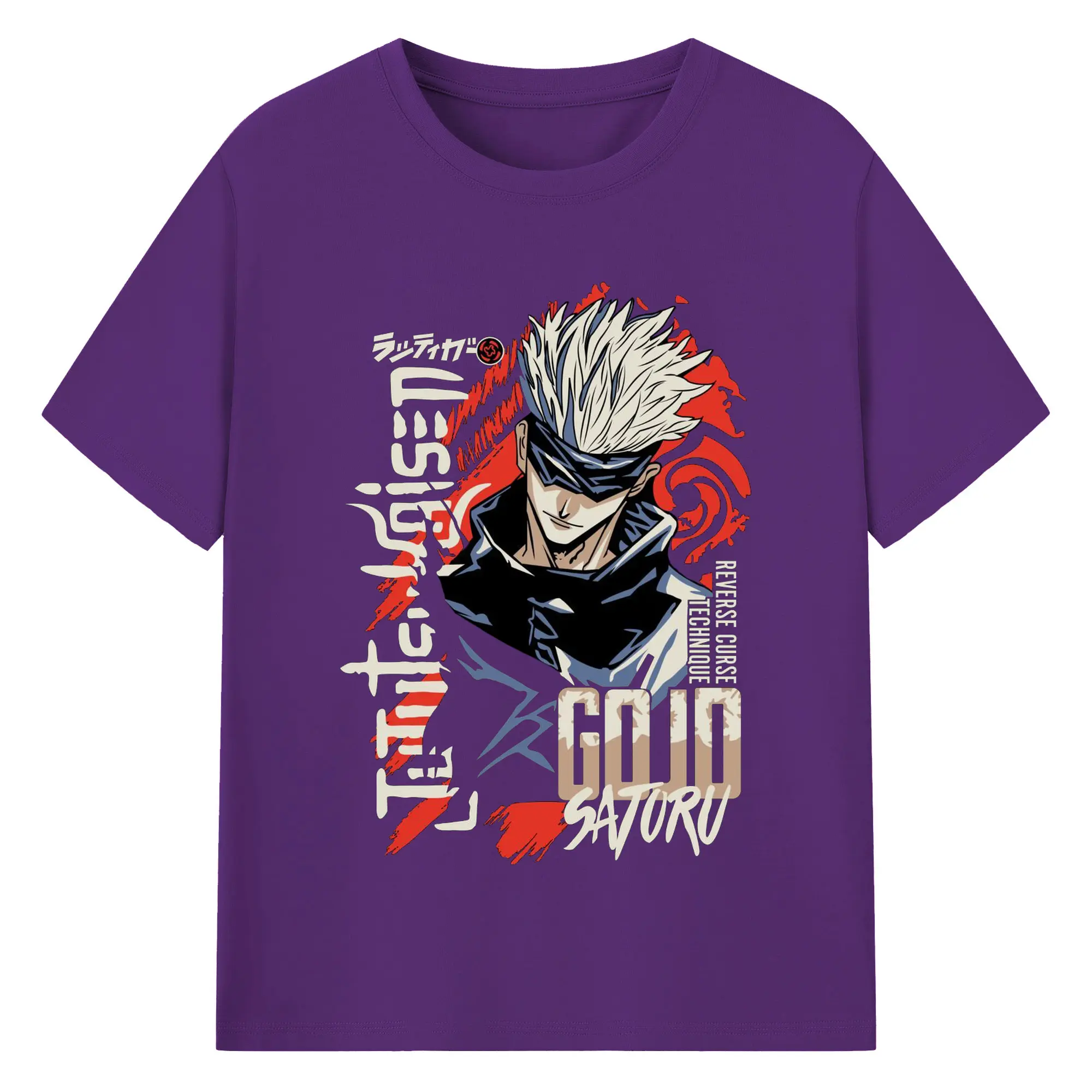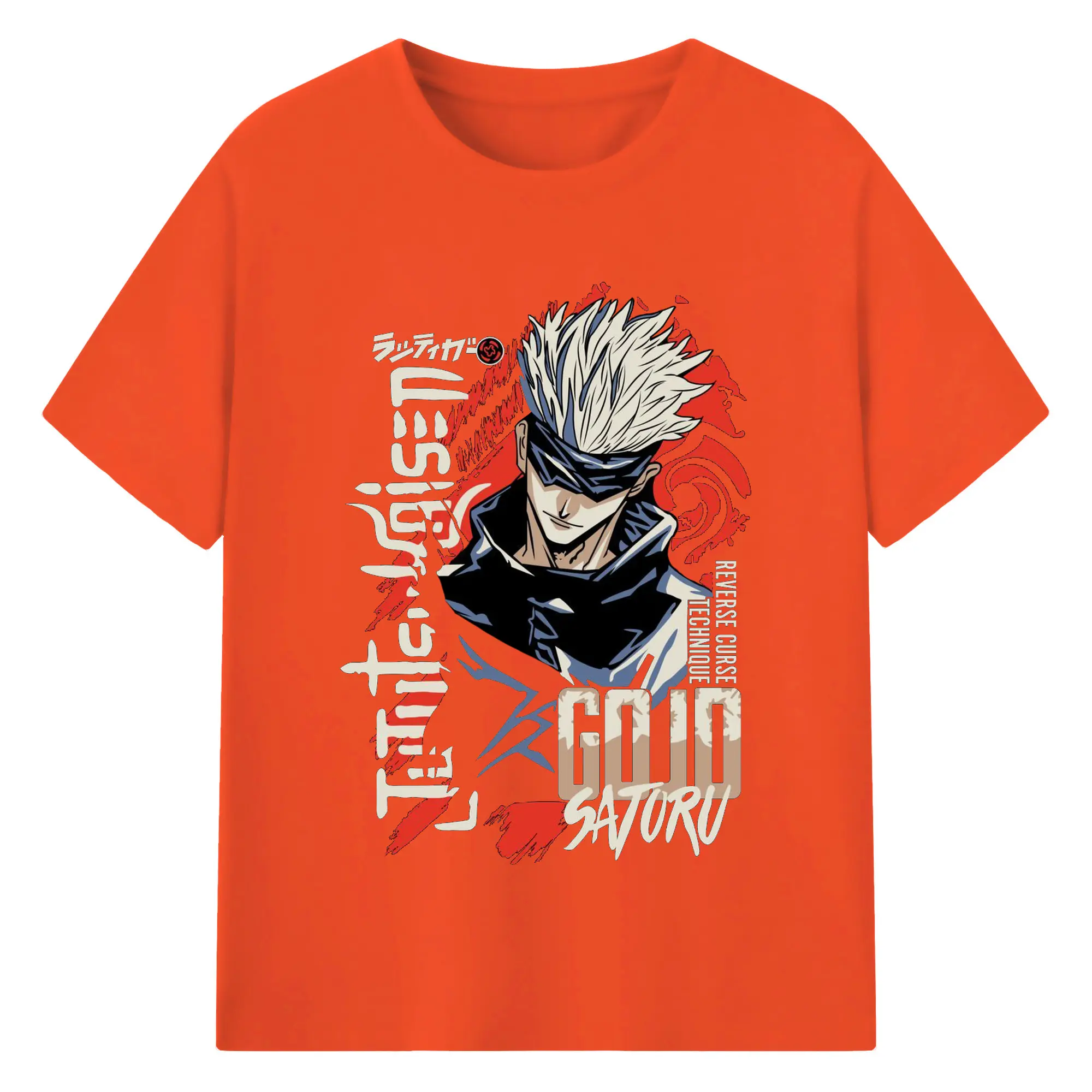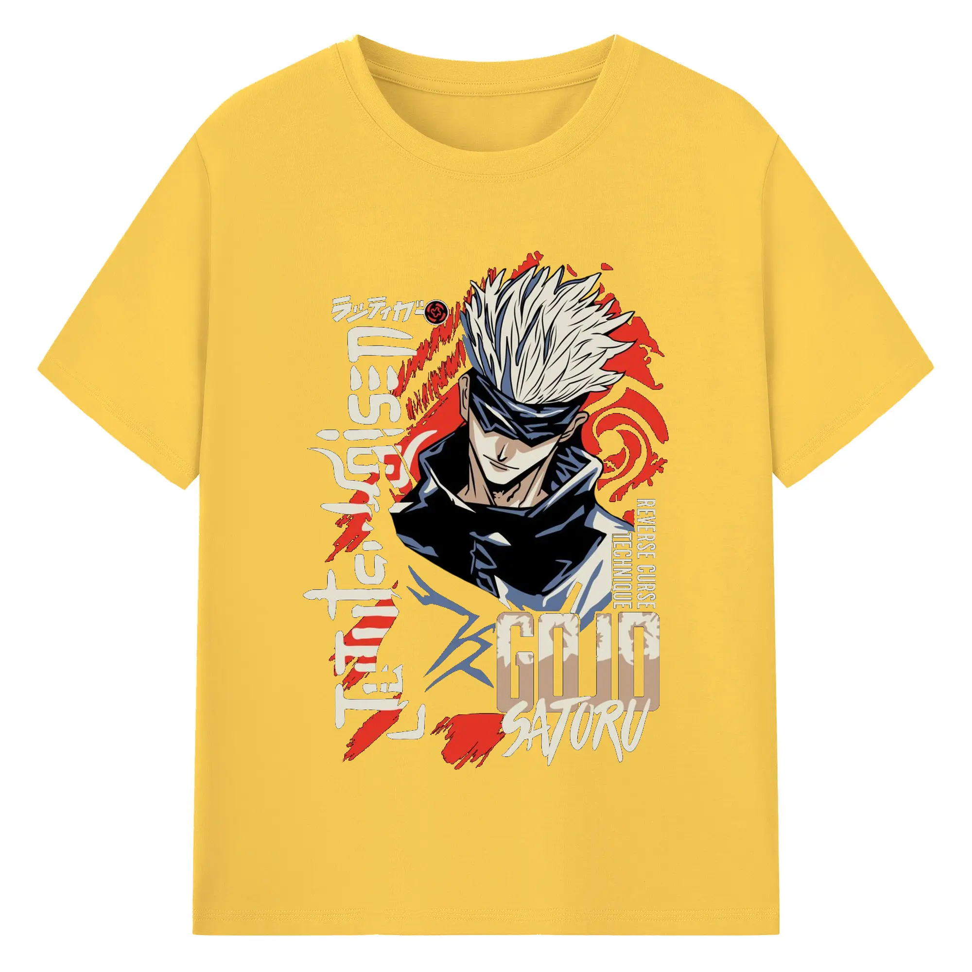 呪術廻戦 五条悟先生 - 綿100% 半袖Tシャツ ・ フロントプリント ・ 快適 通気性 ・ 日常使い 散歩 スポーツ用