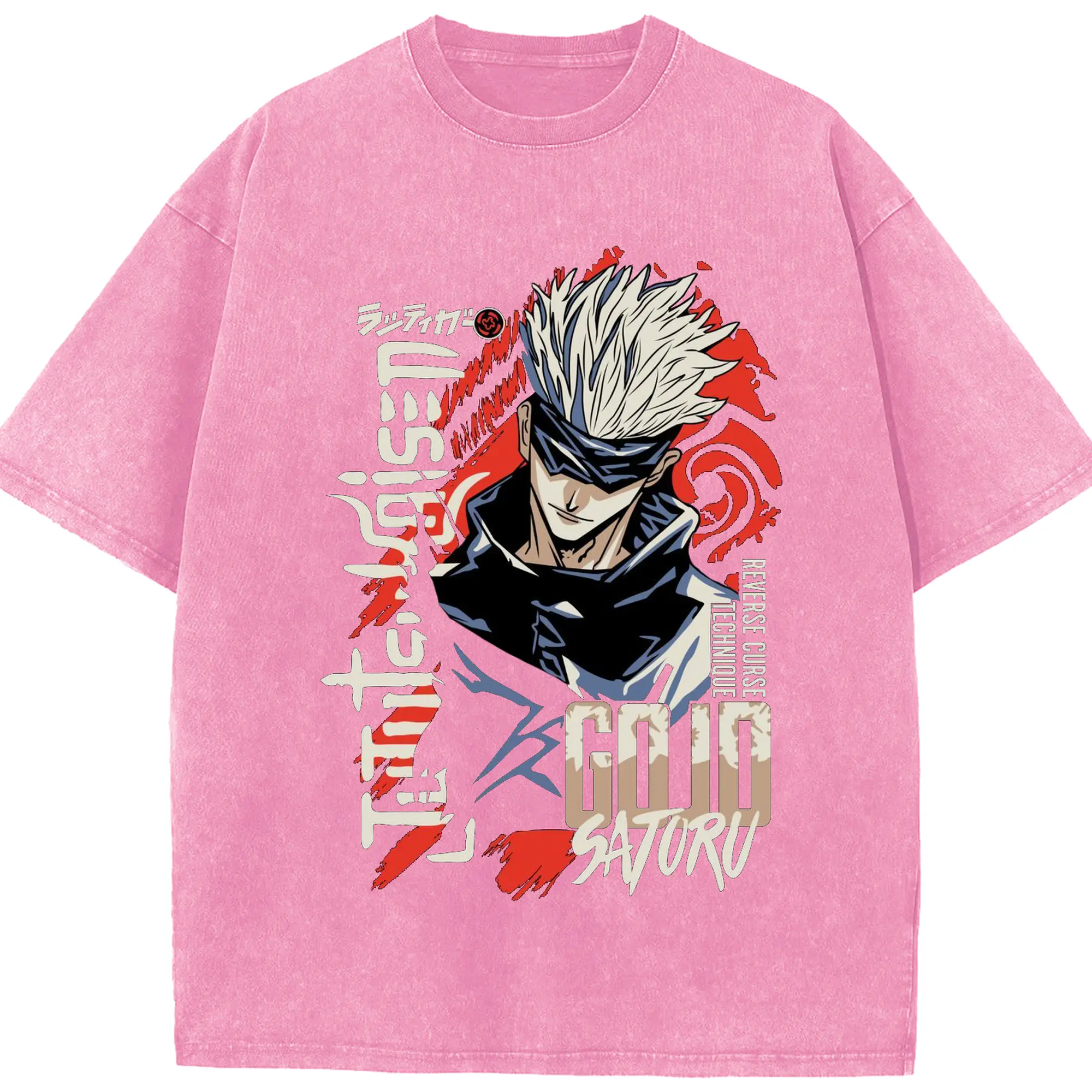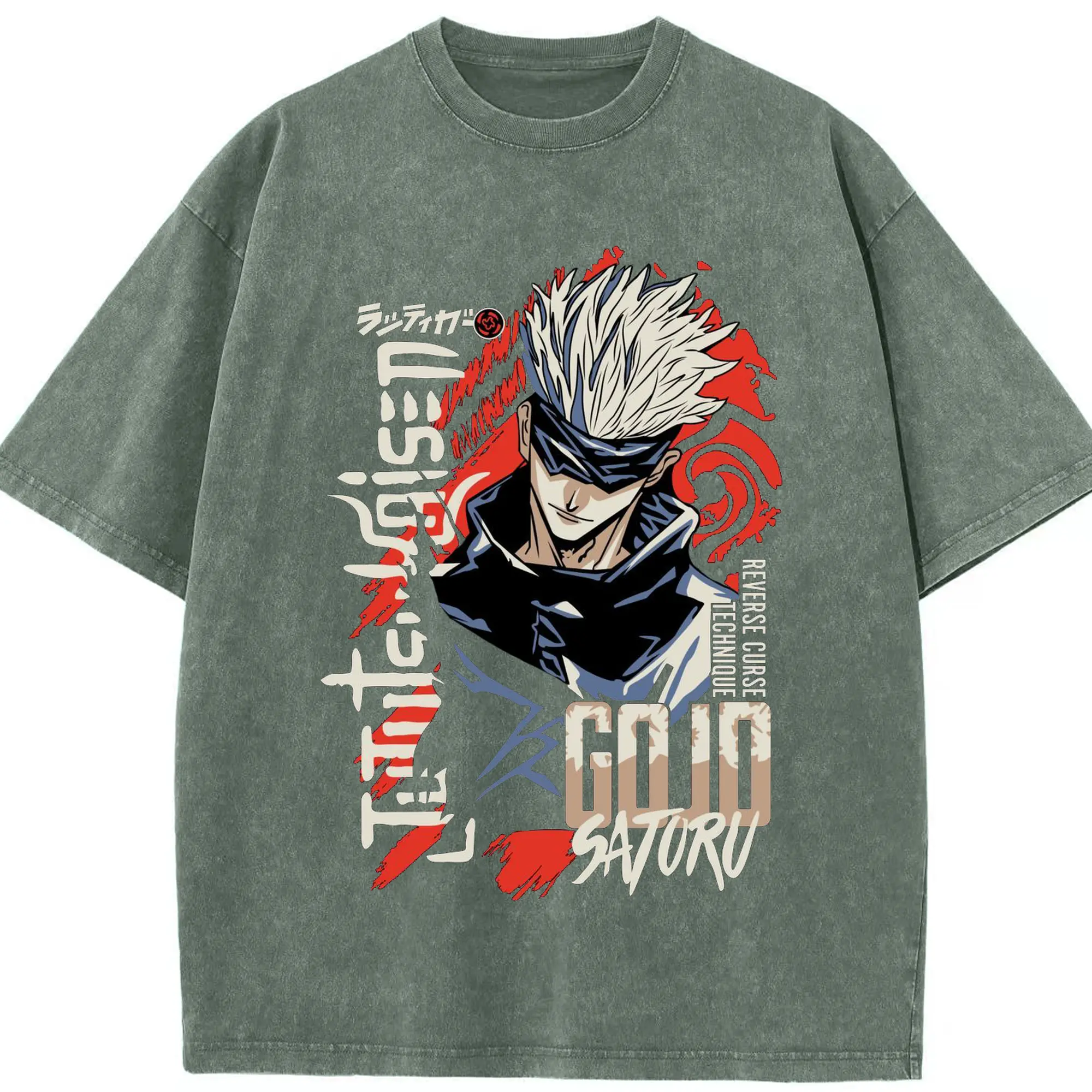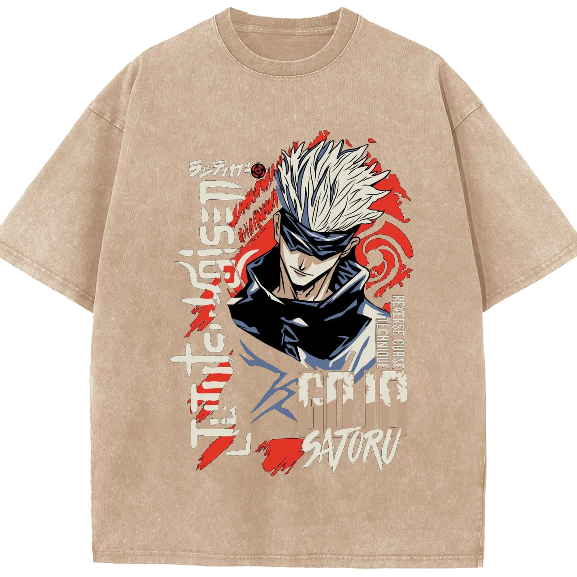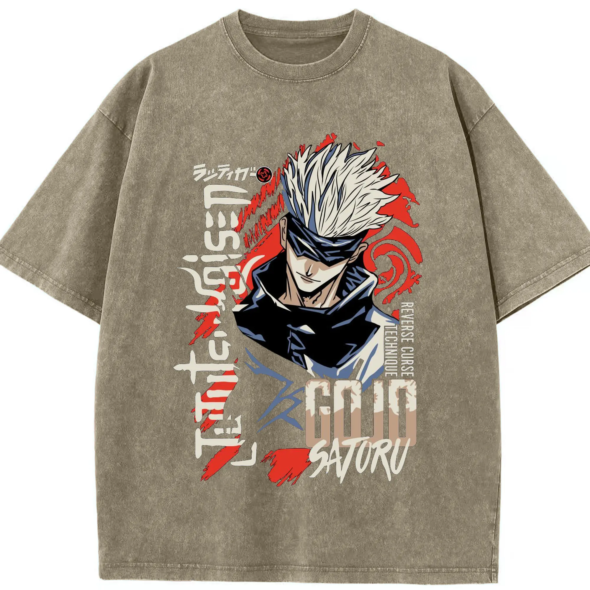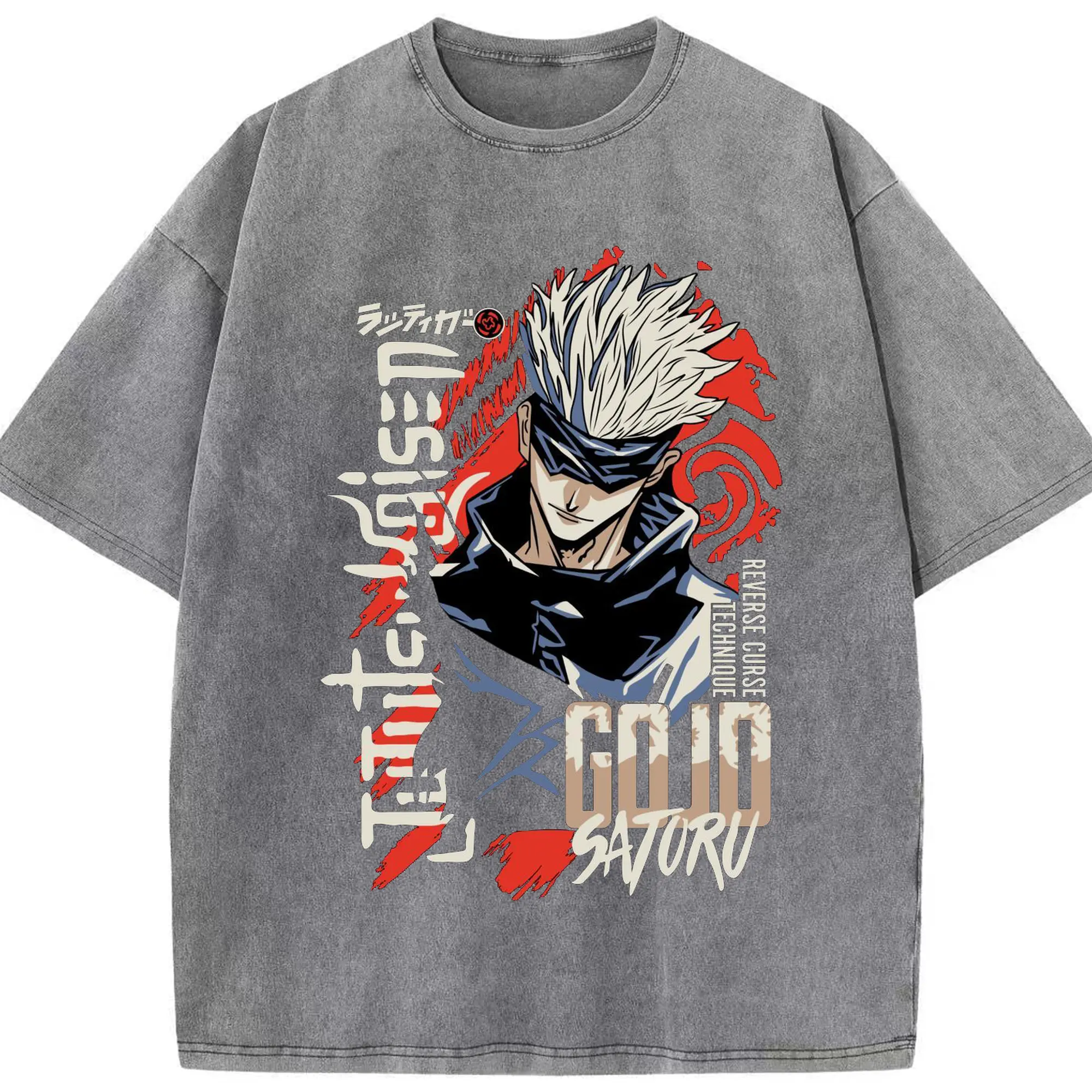呪術廻戦 五条悟 俺が最強だから - 綿100% ヴィンテージ風 半袖Tシャツ ・ フロントプリント ・ 柔らか肌触り ・ 通気性 快適 ・ スポーツ カジュアル 外出用