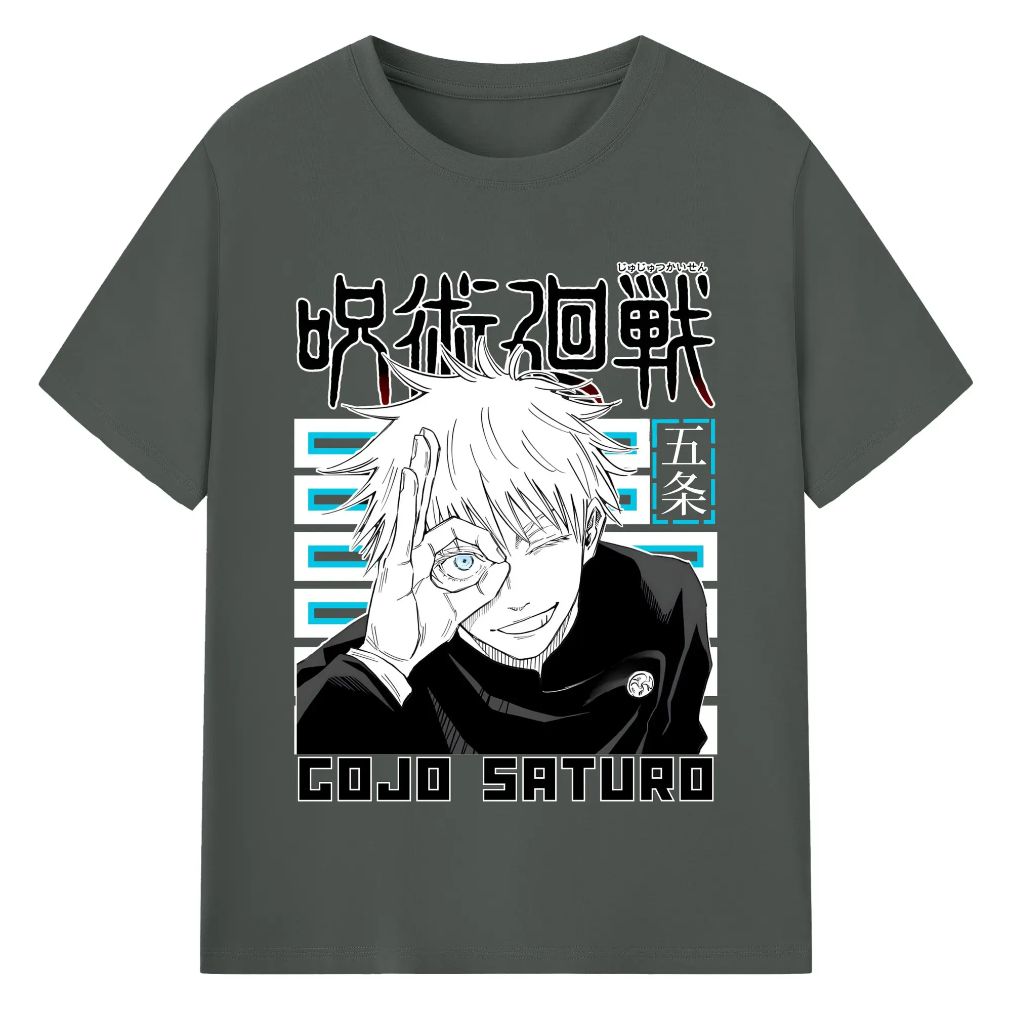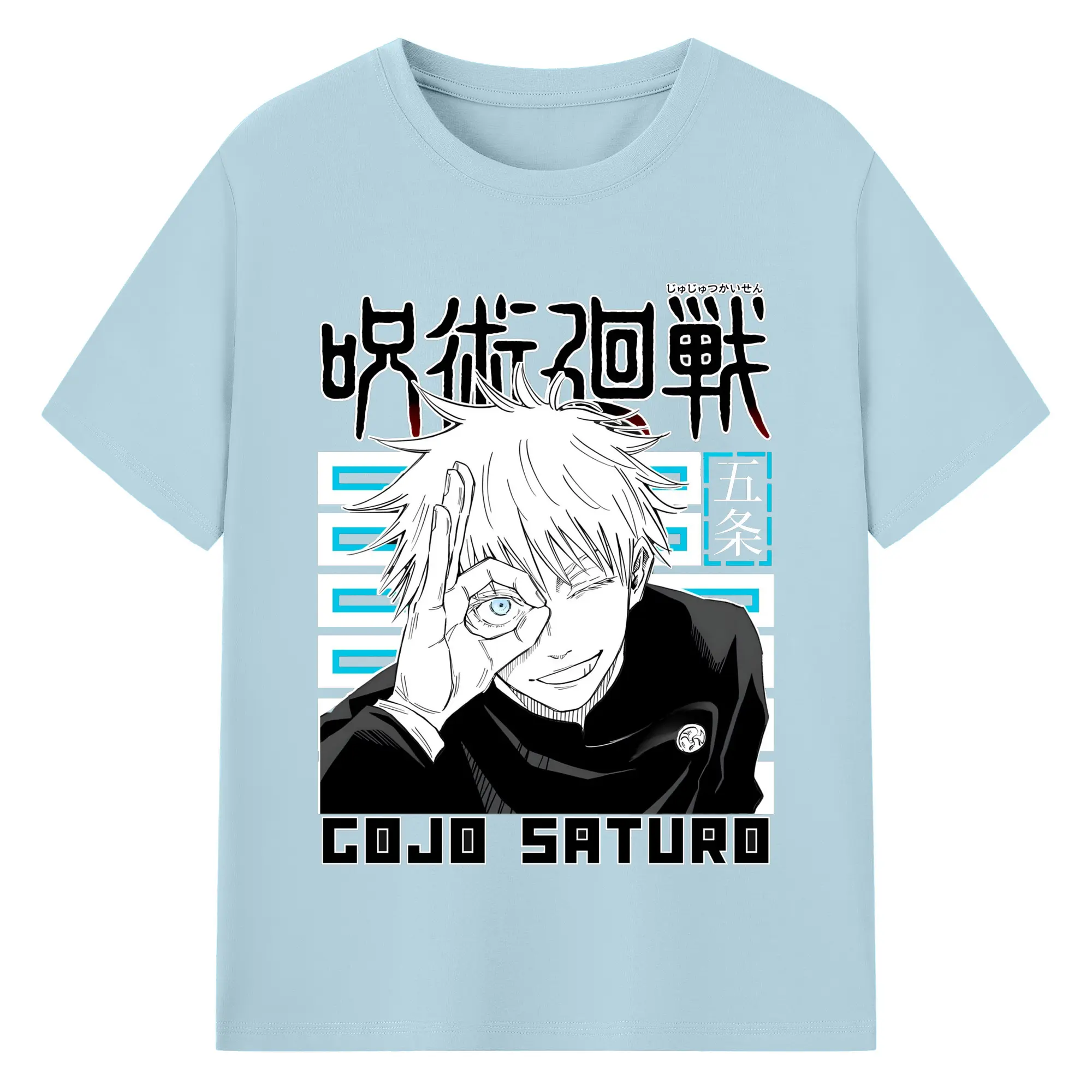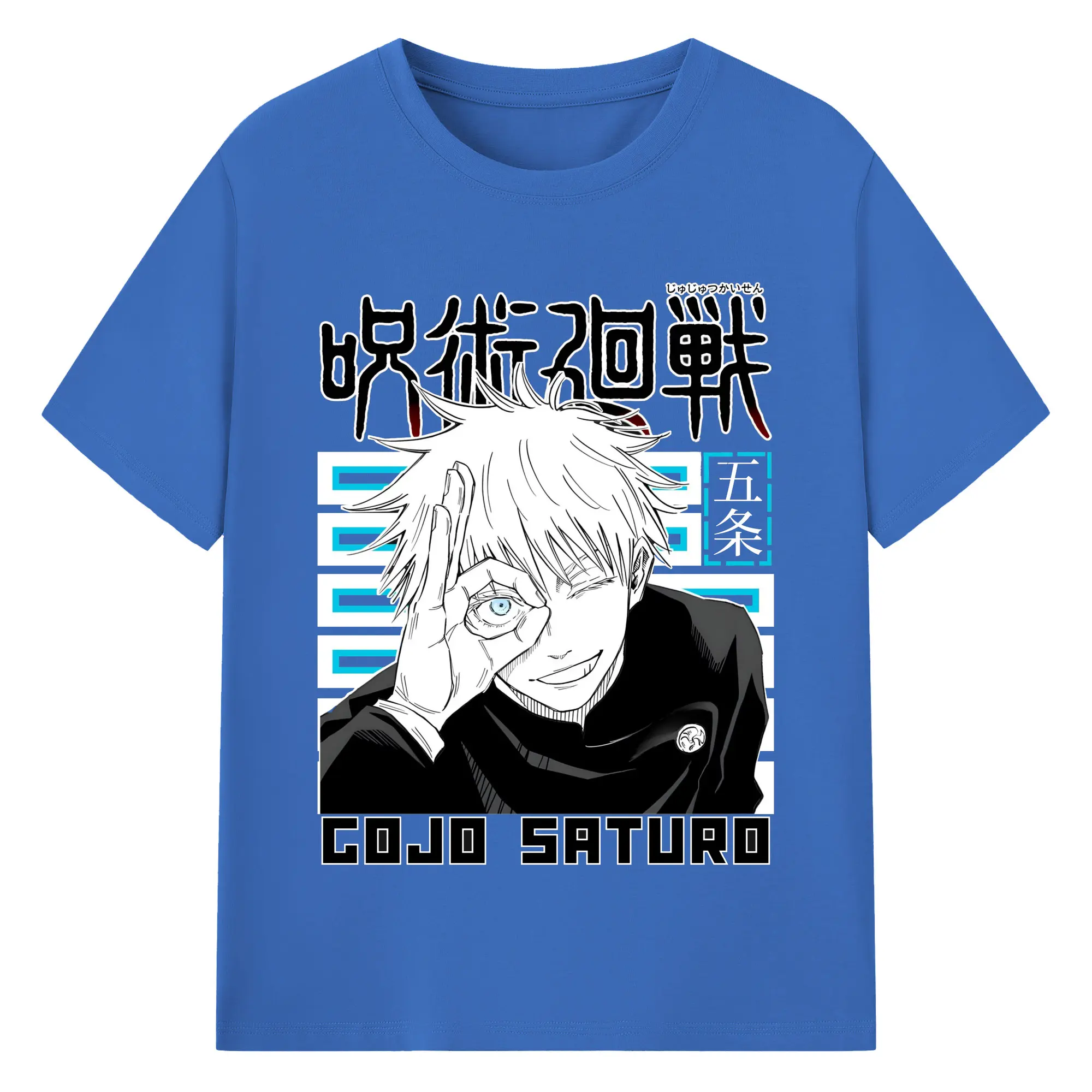 呪術廻戦 五条悟 六眼 - 綿100% 半袖Tシャツ ・ フロントプリント ・ 快適 通気性 ・ 日常使い 散歩 スポーツ用