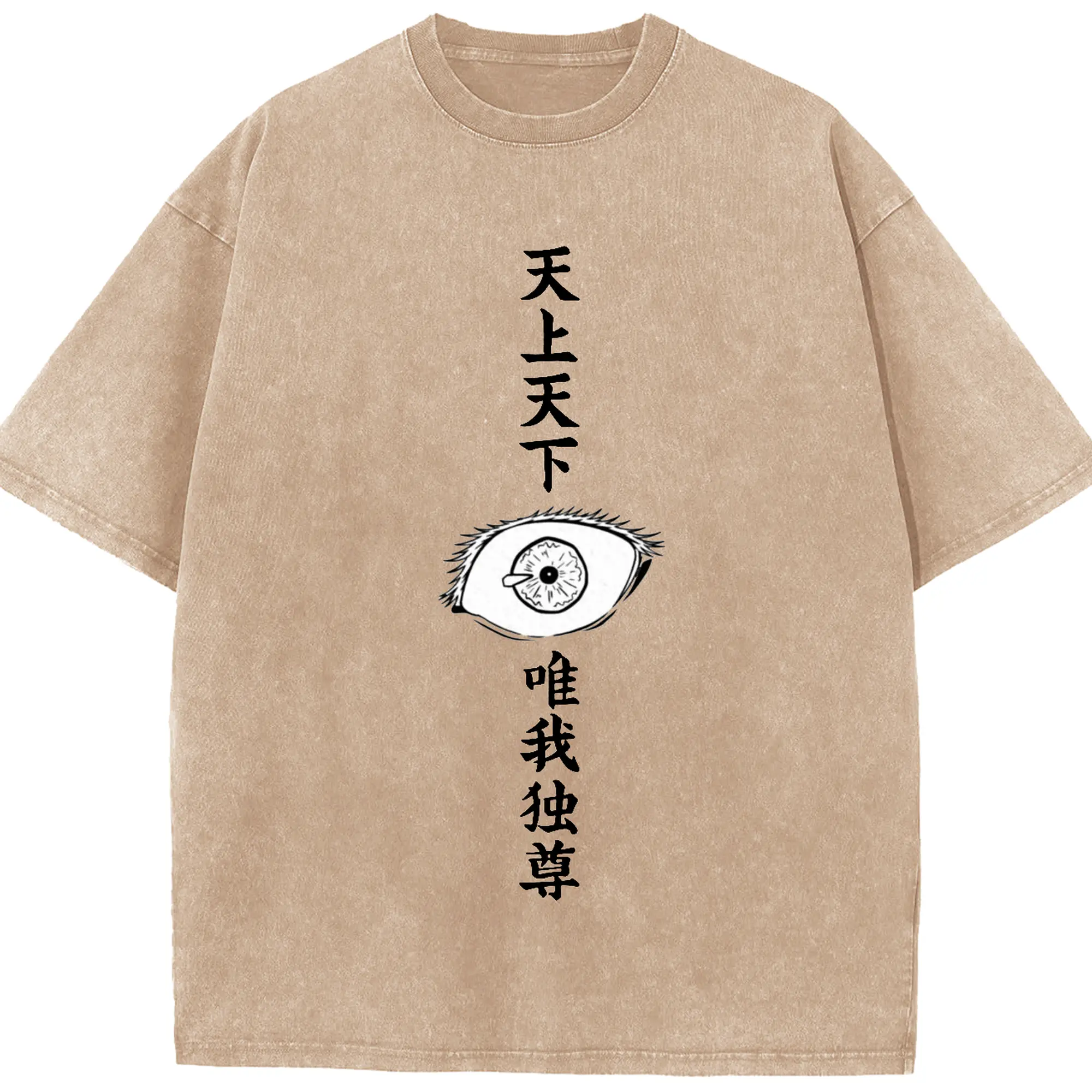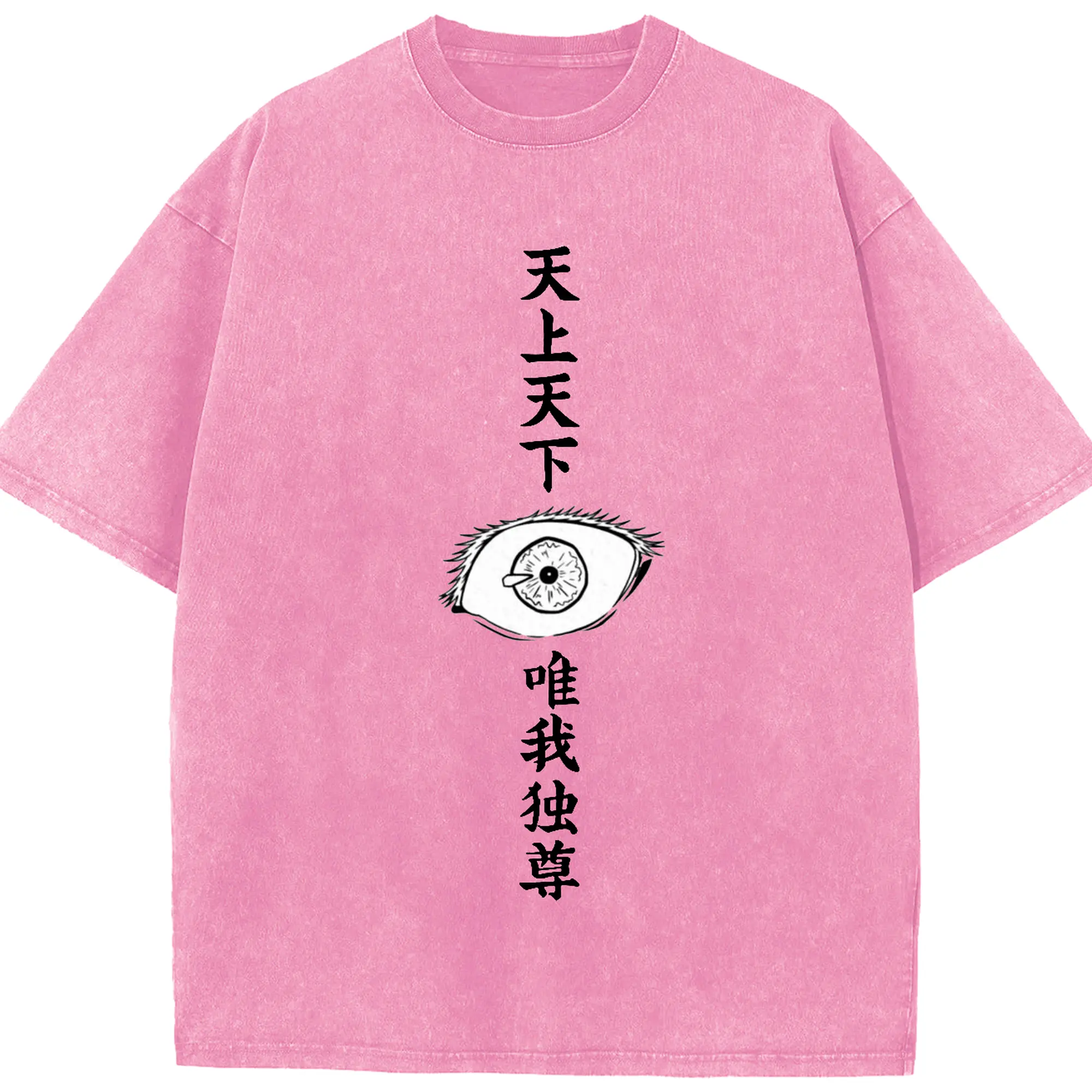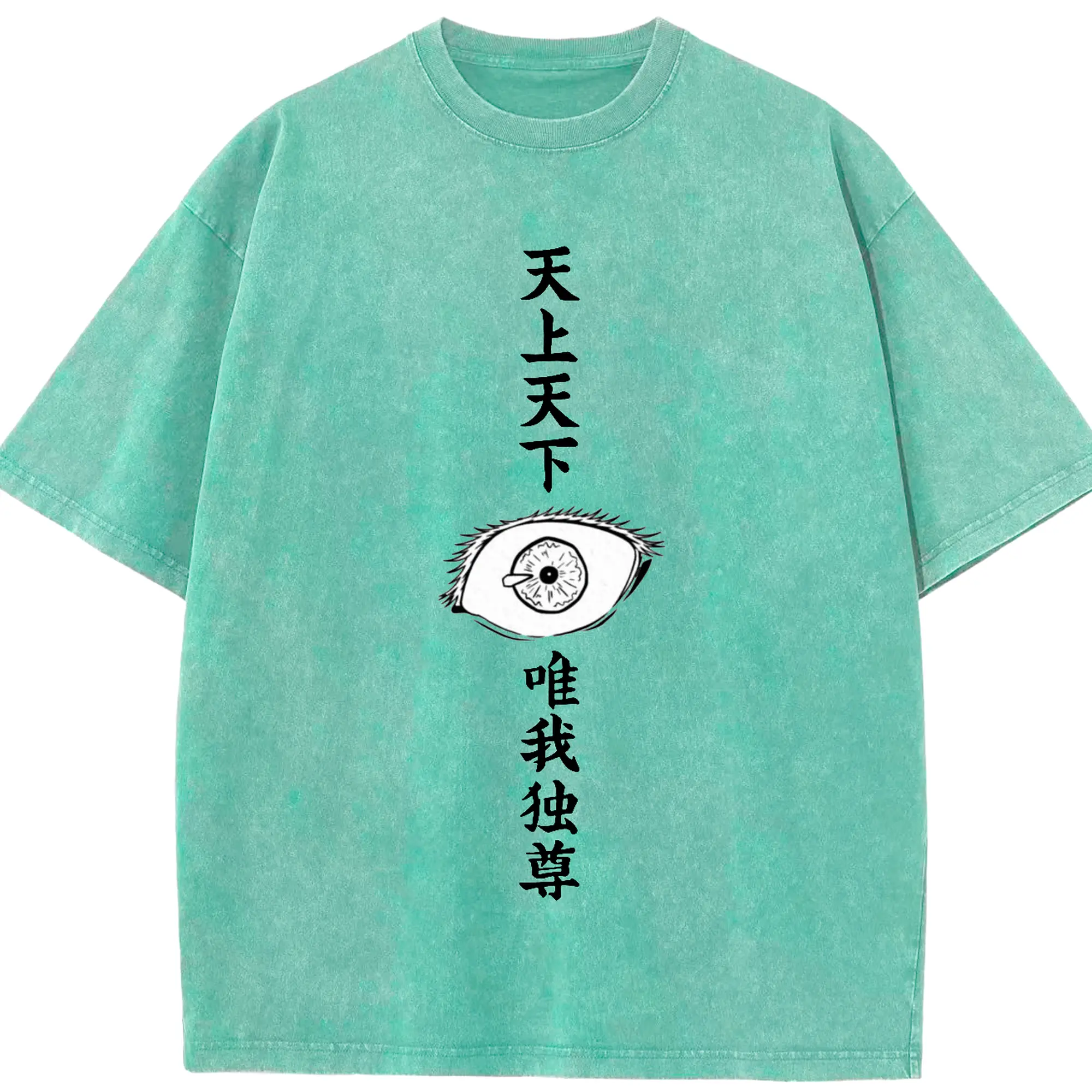 呪術廻戦 五条悟 六眼 - 綿100% ヴィンテージ風 半袖Tシャツ ・ フロントプリント ・ 柔らか肌触り ・ 通気性 快適 ・ スポーツ カジュアル 外出用
