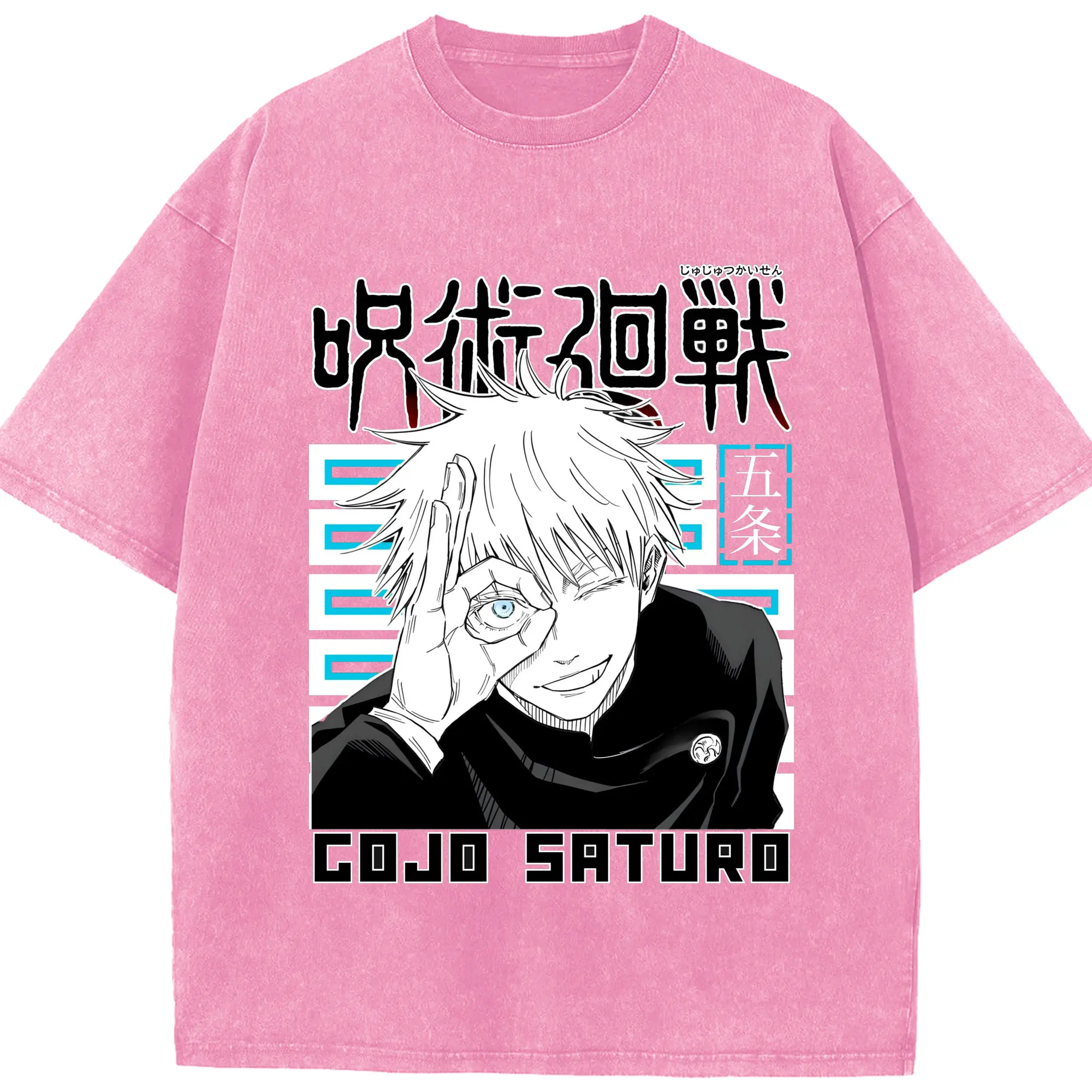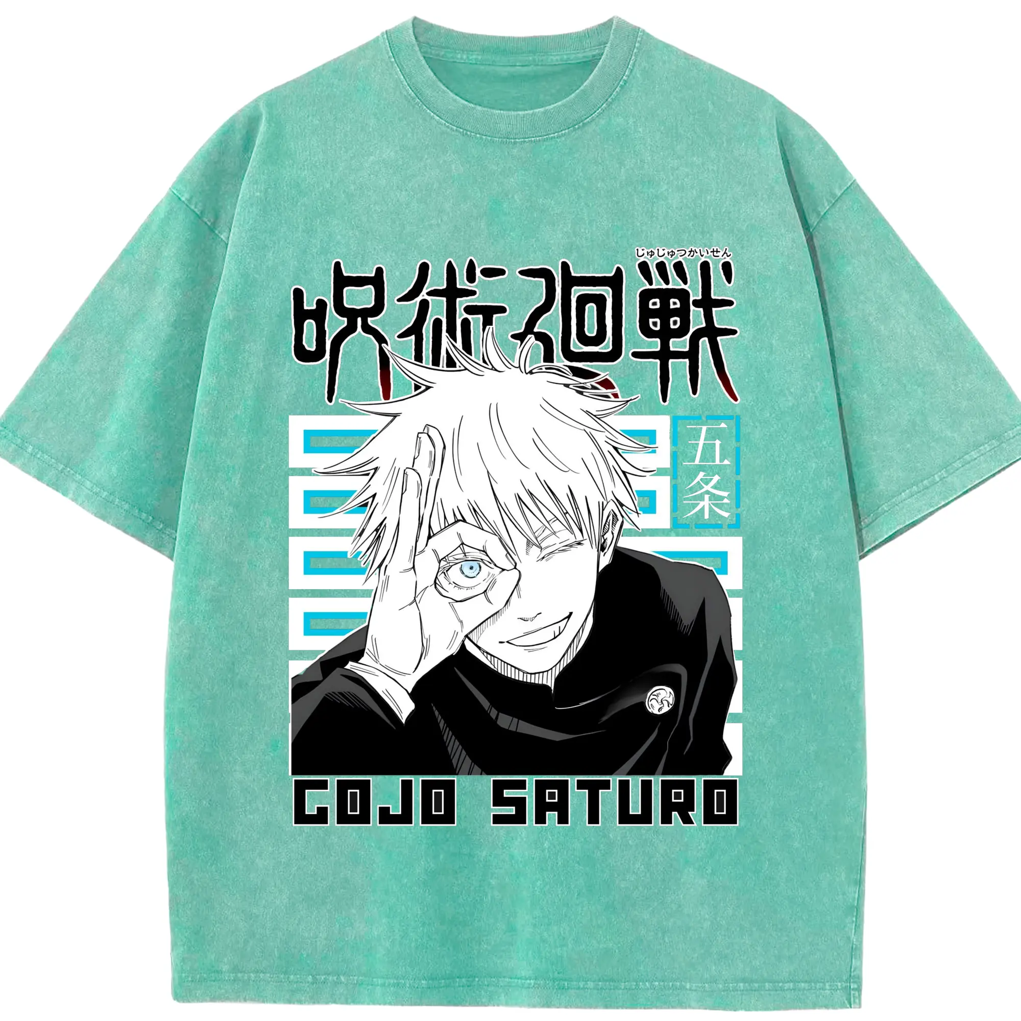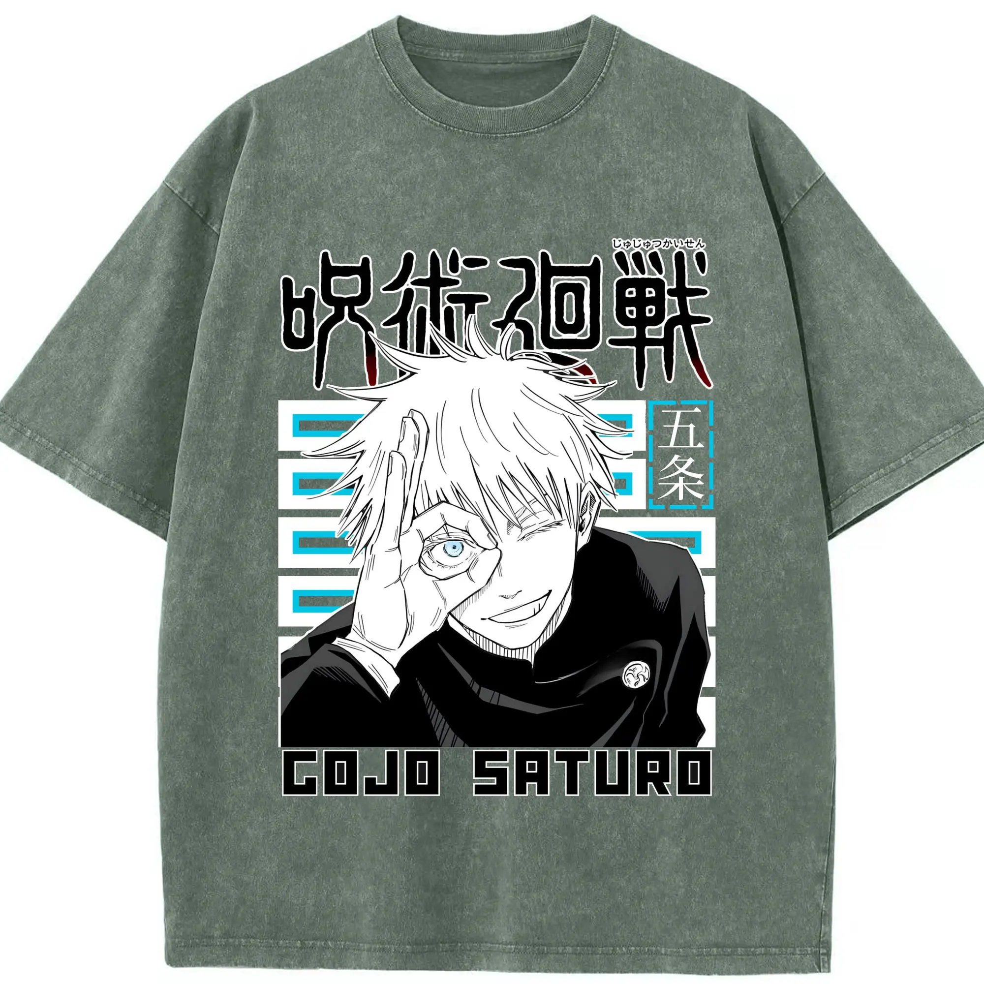 呪術廻戦 五条悟 六眼 - 綿100% ヴィンテージ風 半袖Tシャツ ・ フロントプリント ・ 柔らか肌触り ・ 通気性 快適 ・ スポーツ カジュアル 外出用