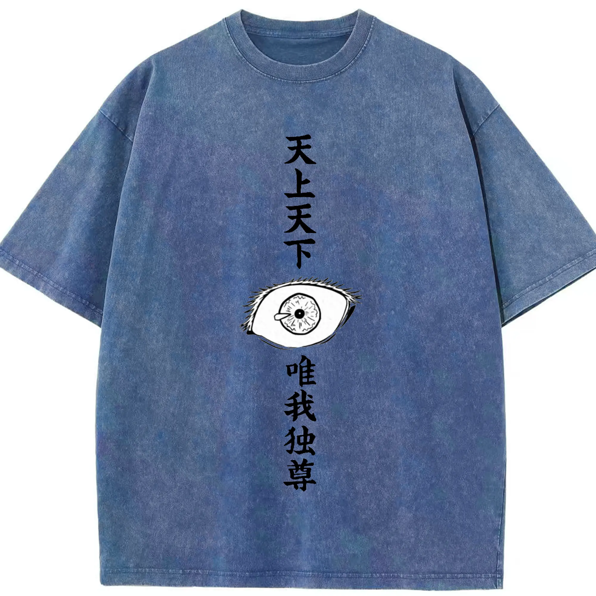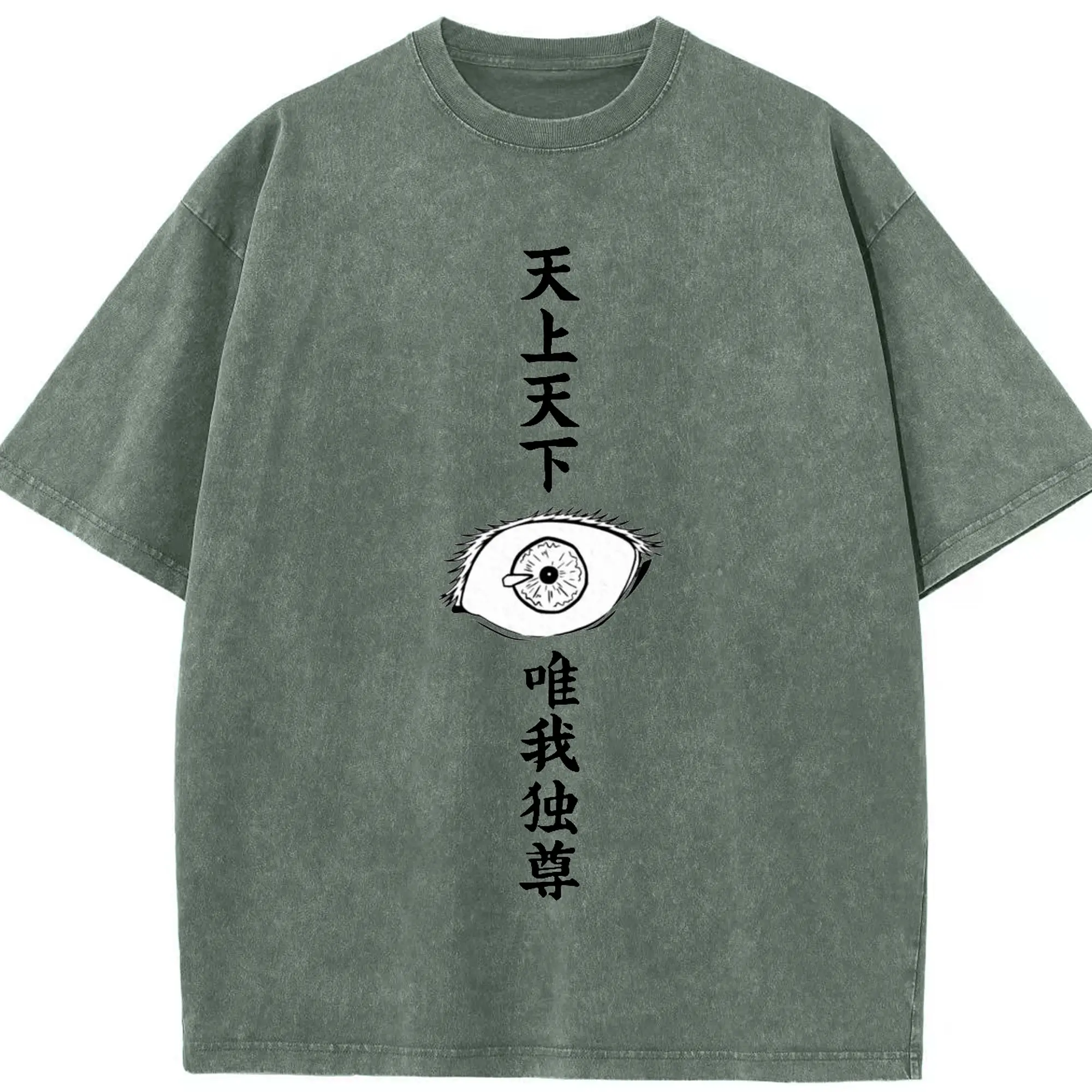 呪術廻戦 五条悟 六眼 - 綿100% ヴィンテージ風 半袖Tシャツ ・ フロントプリント ・ 柔らか肌触り ・ 通気性 快適 ・ スポーツ カジュアル 外出用