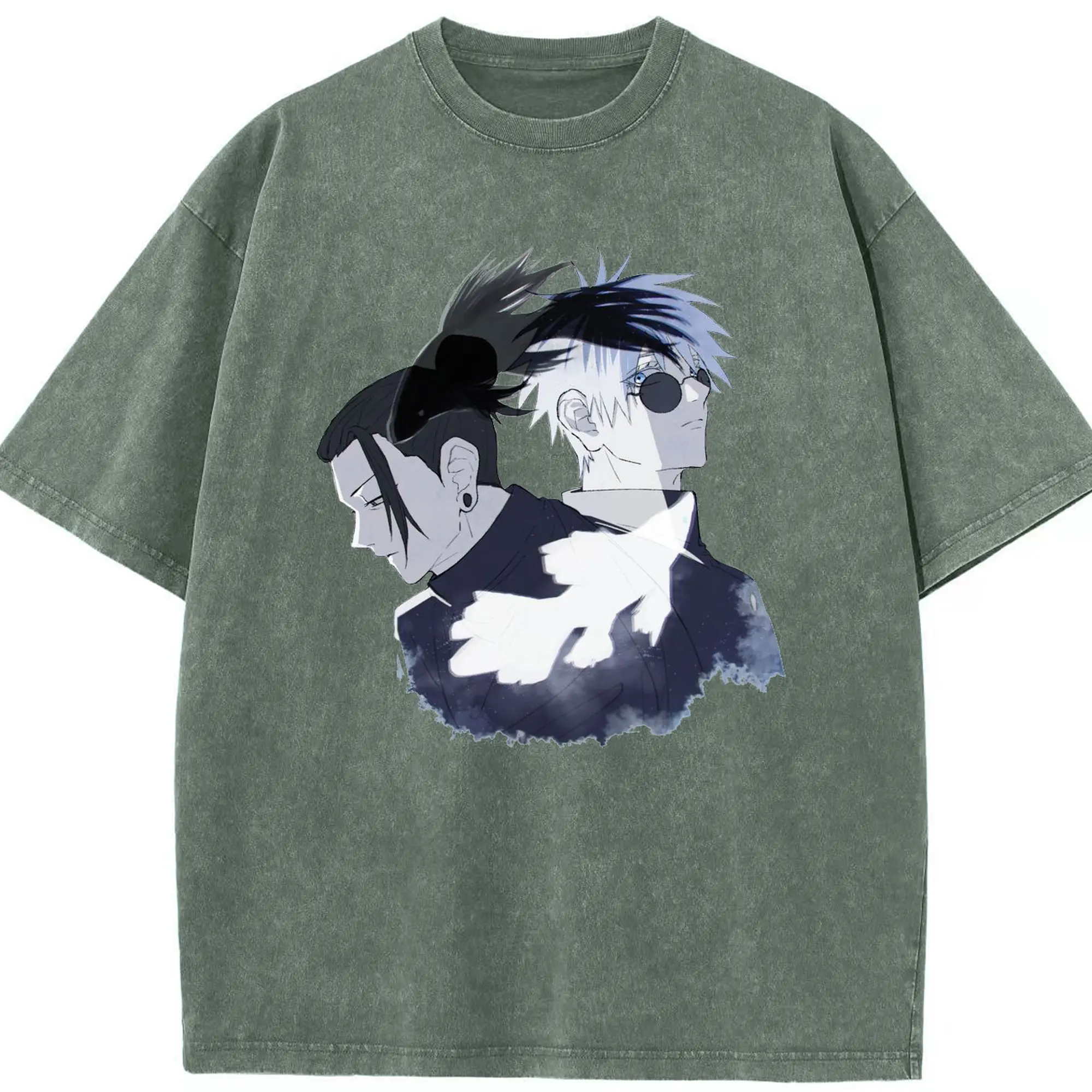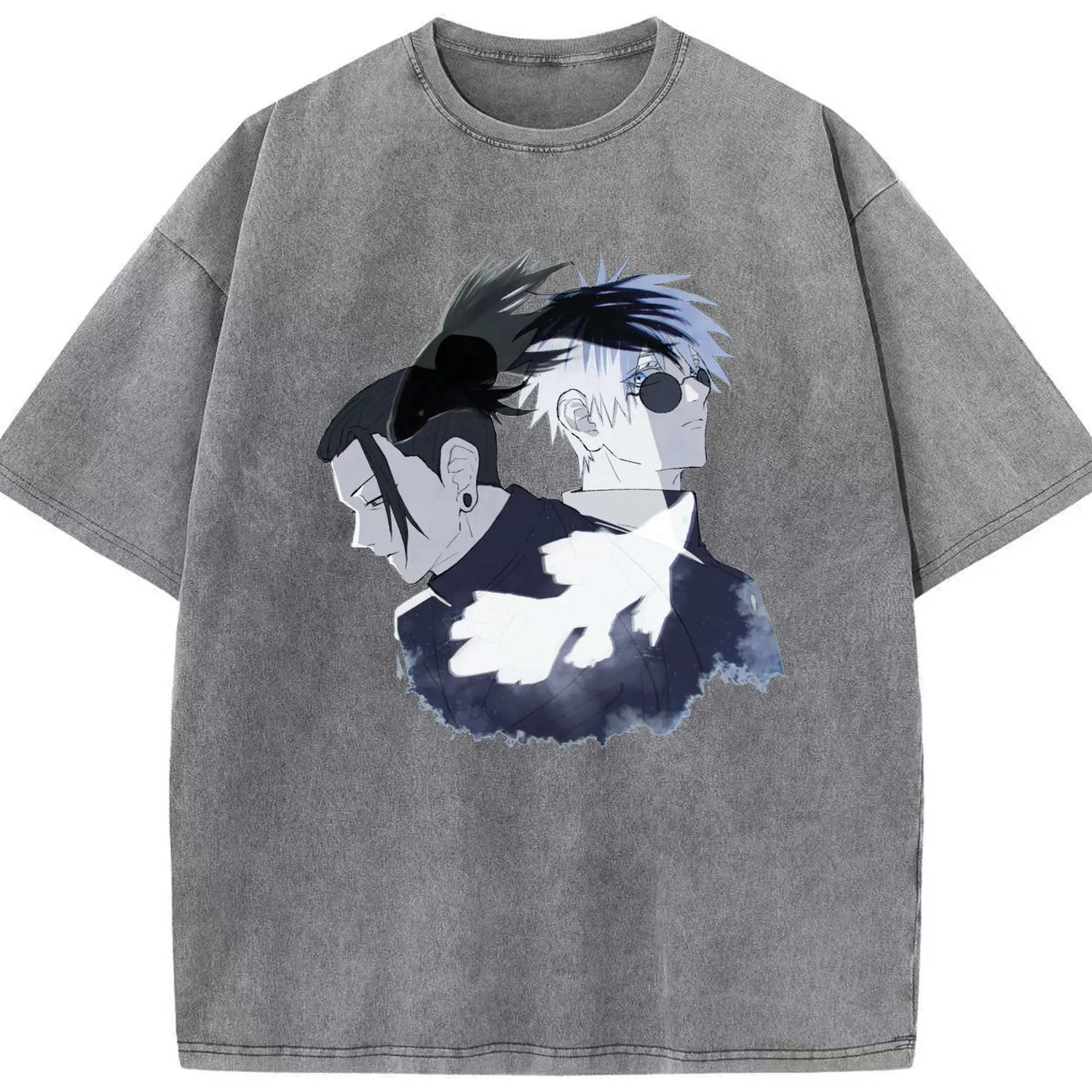 呪術廻戦 五条悟 vs 夏油傑 - 綿100% ヴィンテージ風 半袖Tシャツ ・ フロントプリント ・ 柔らか肌触り ・ 通気性 快適 ・ スポーツ カジュアル 外出用