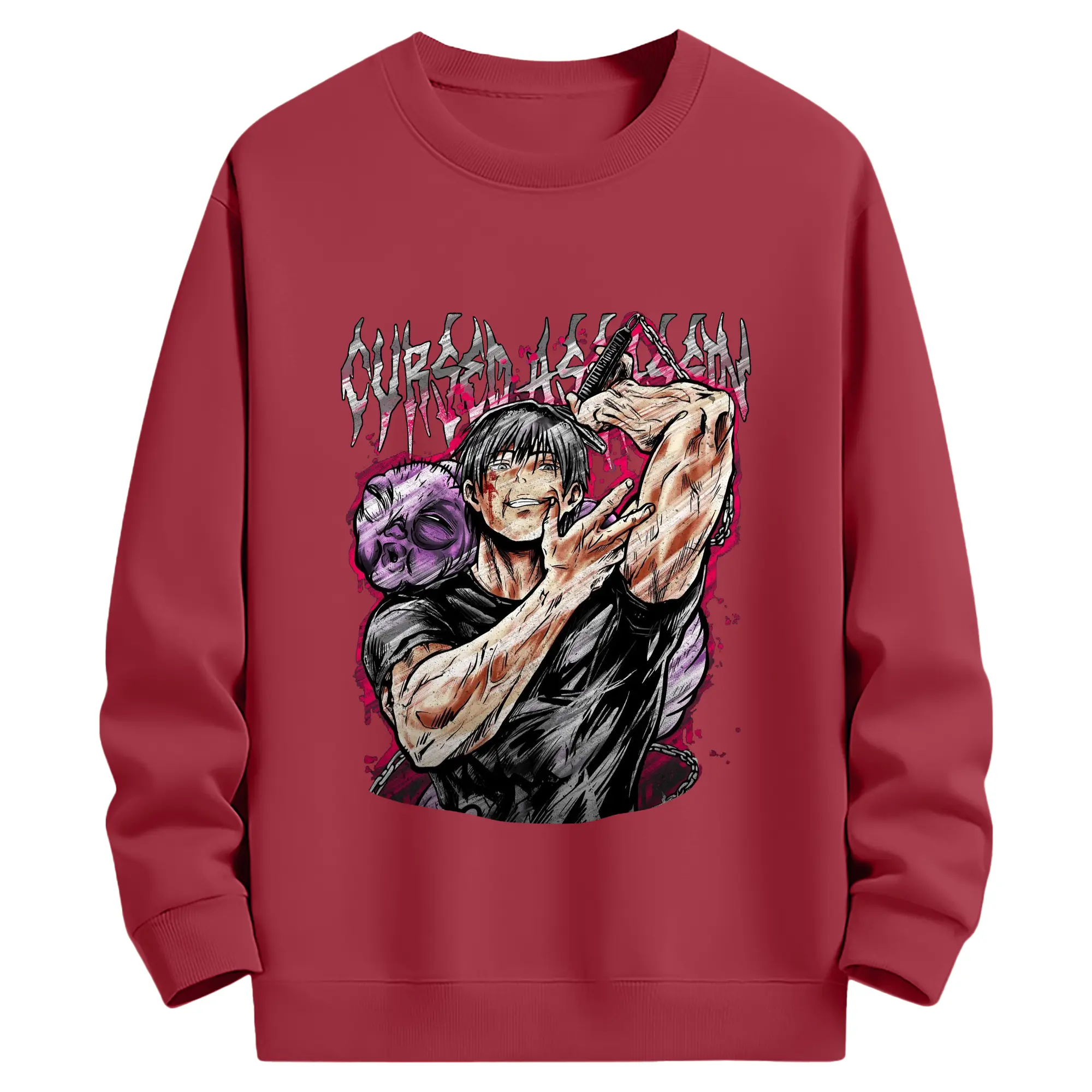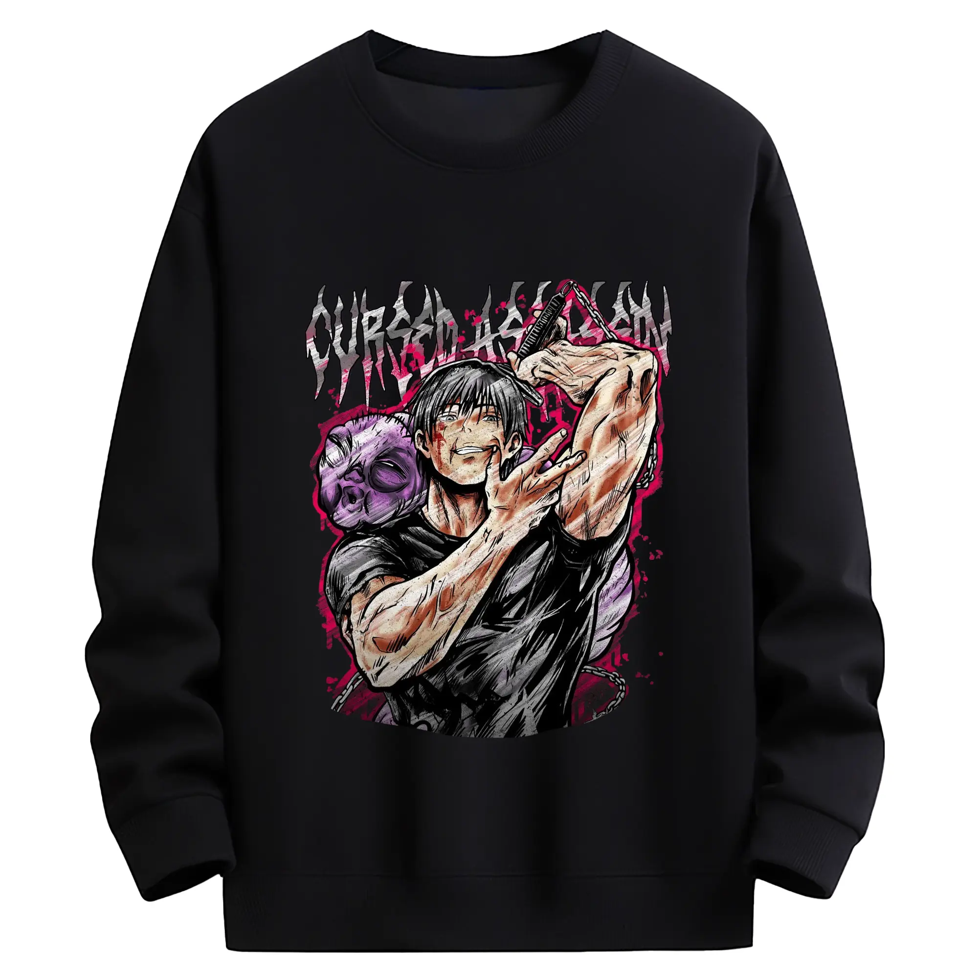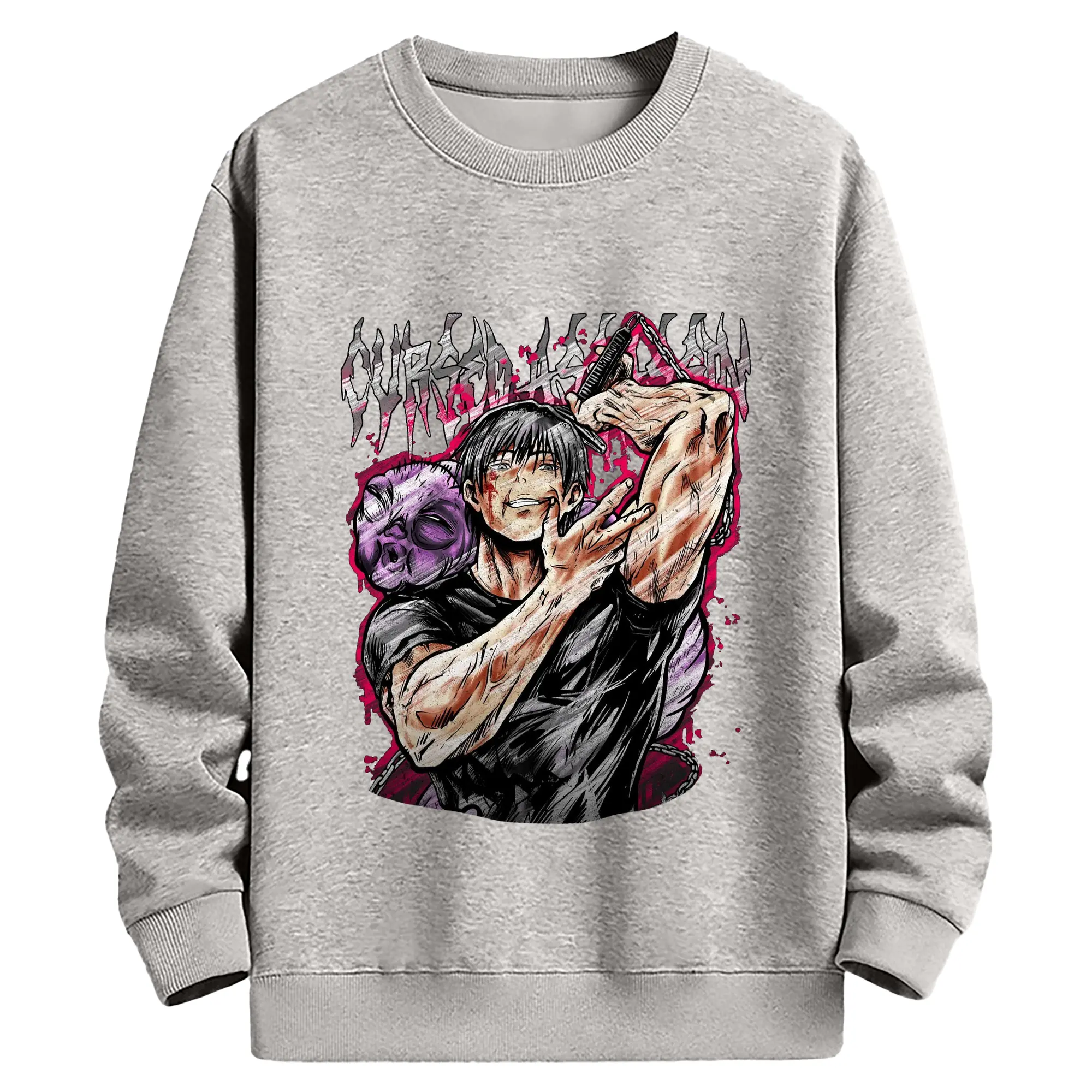 呪術廻戦 伏黒甚爾天与呪縛術師殺し - 高品質 クルーネック スウェット ・ コットン59% ポリエステル41% ・ ユニセックス 長袖 トレーナー ・ カジュアル デイリー スポーツ 散歩用