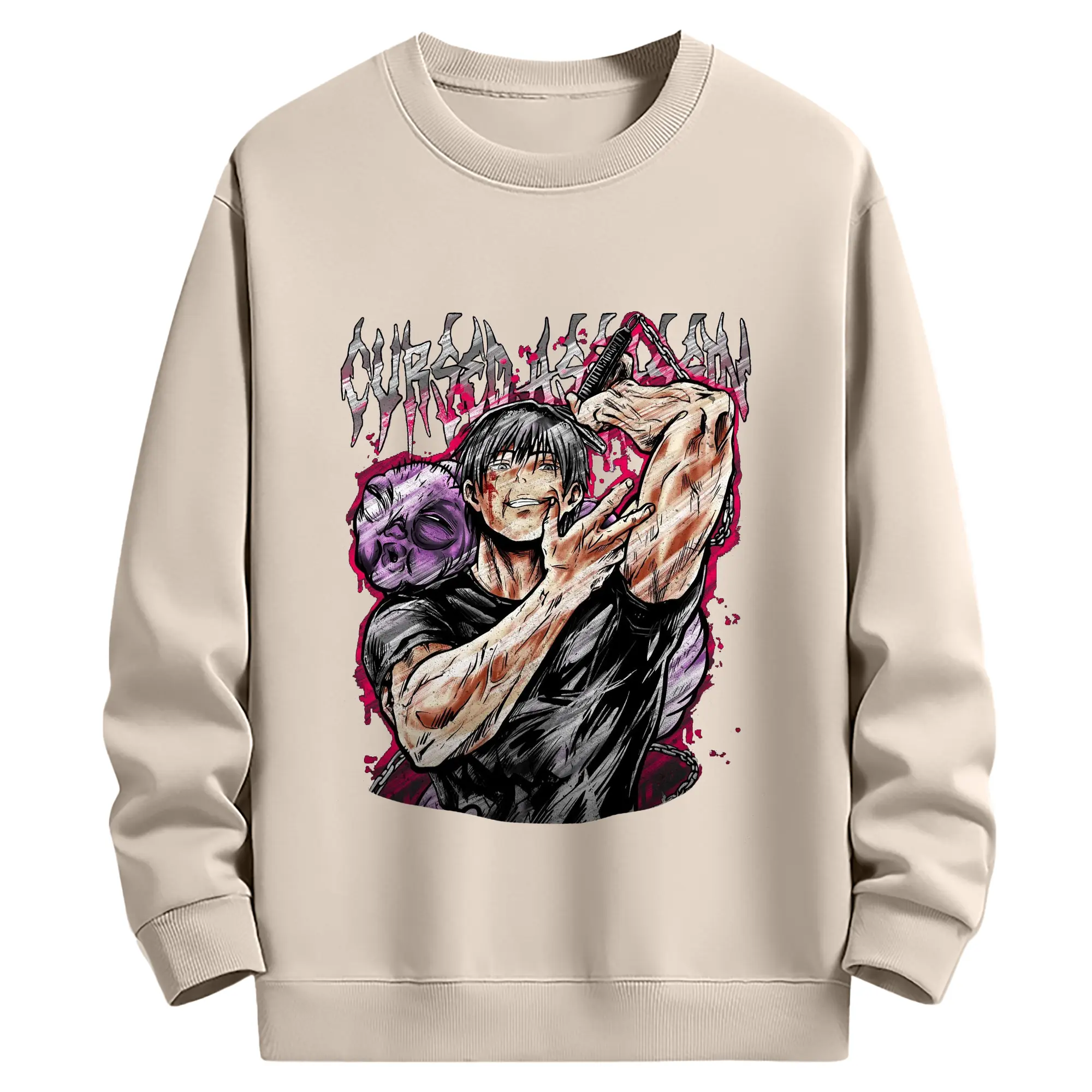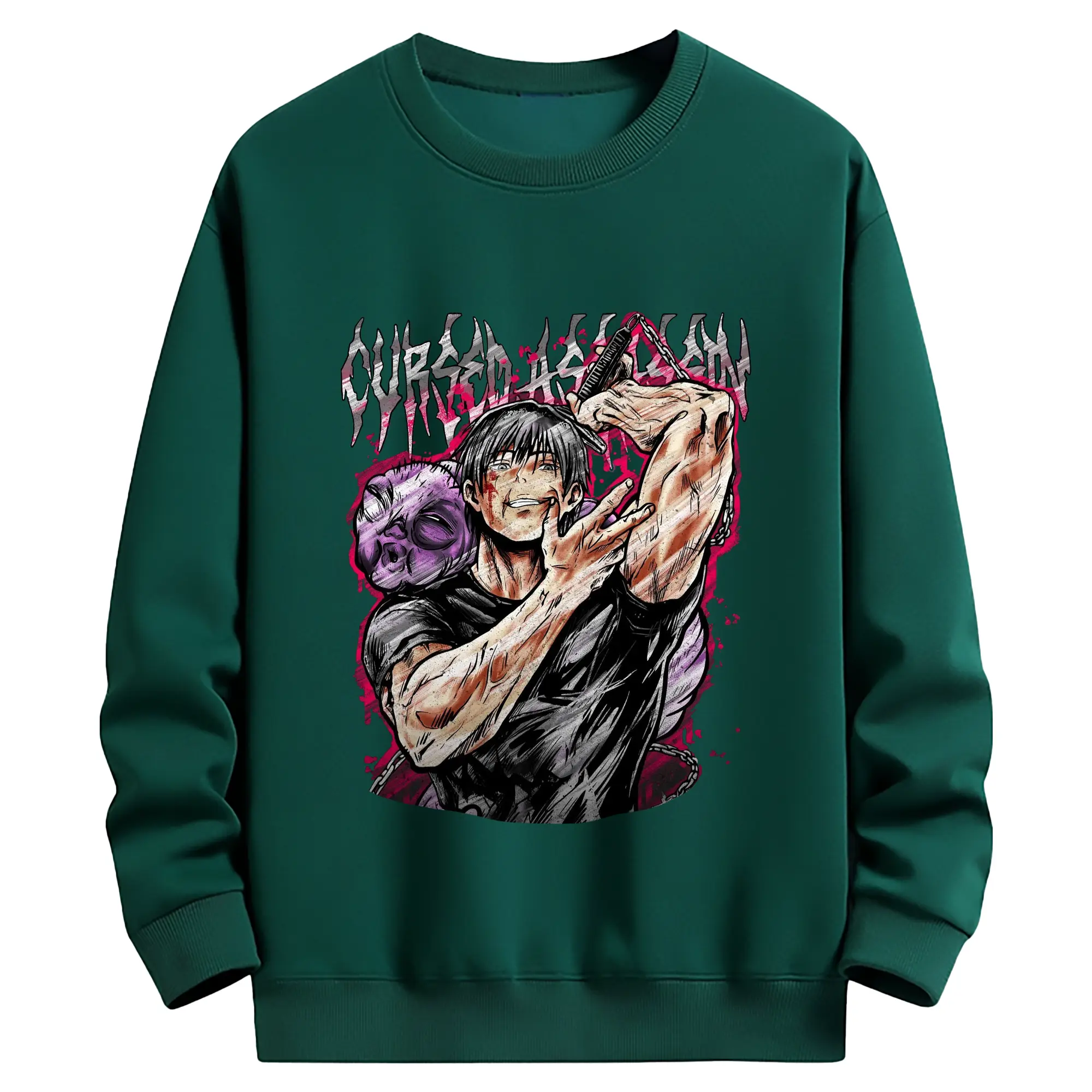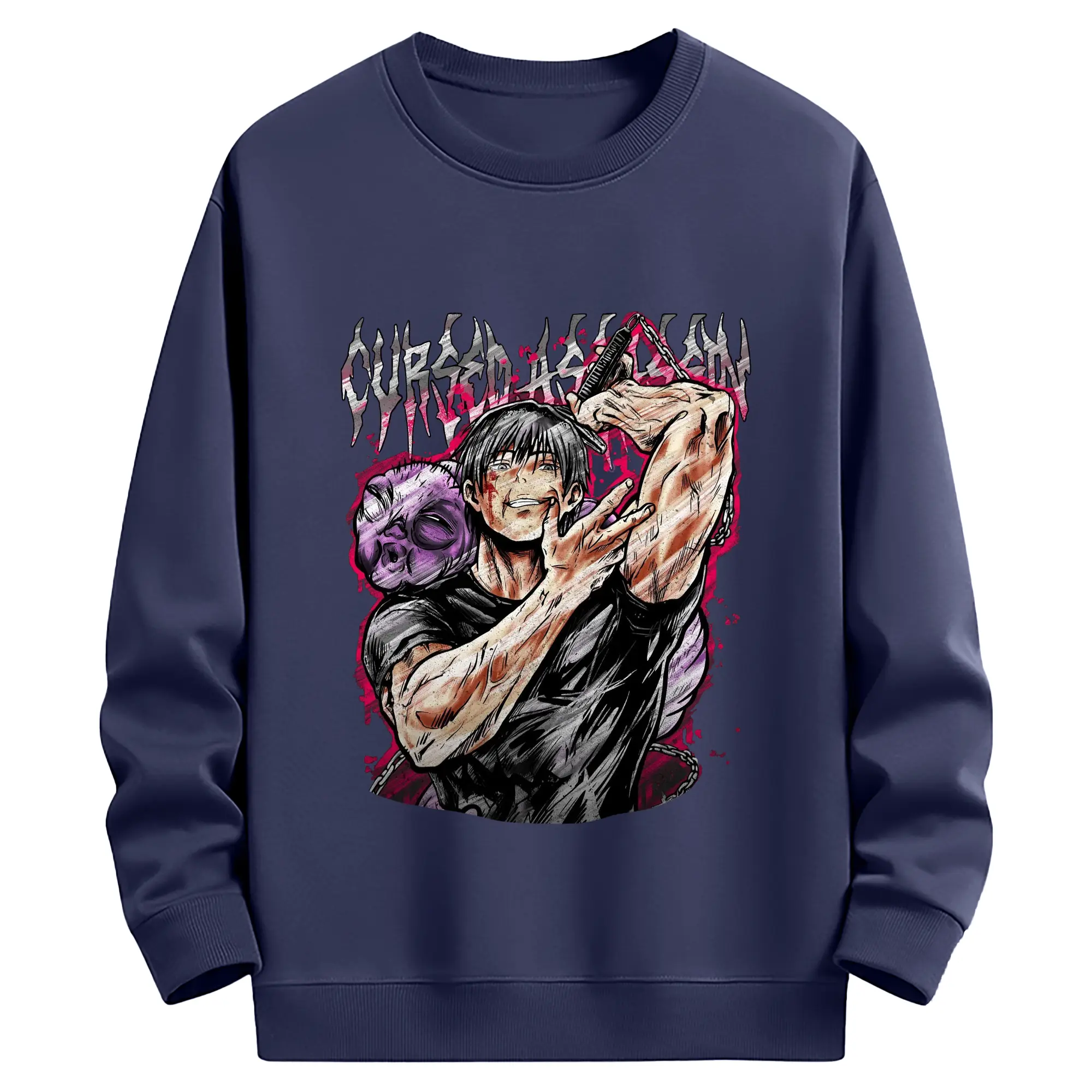 呪術廻戦 伏黒甚爾天与呪縛術師殺し - 高品質 クルーネック スウェット ・ コットン59% ポリエステル41% ・ ユニセックス 長袖 トレーナー ・ カジュアル デイリー スポーツ 散歩用