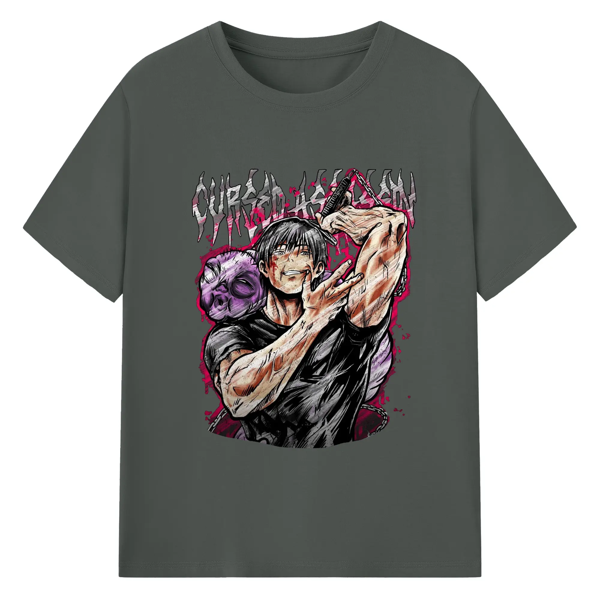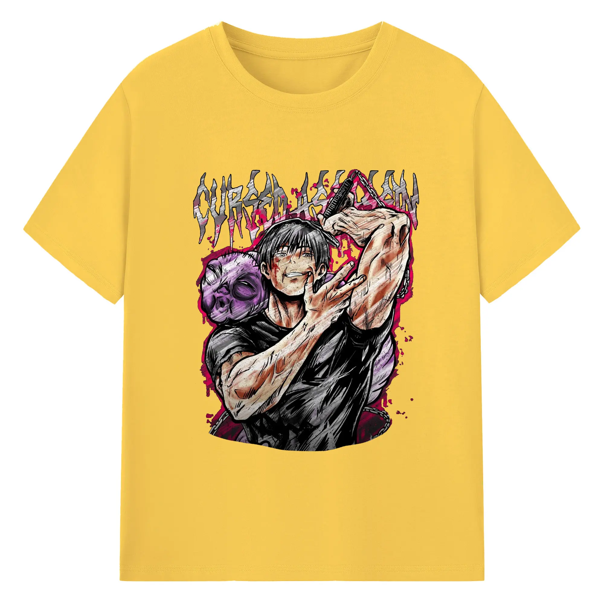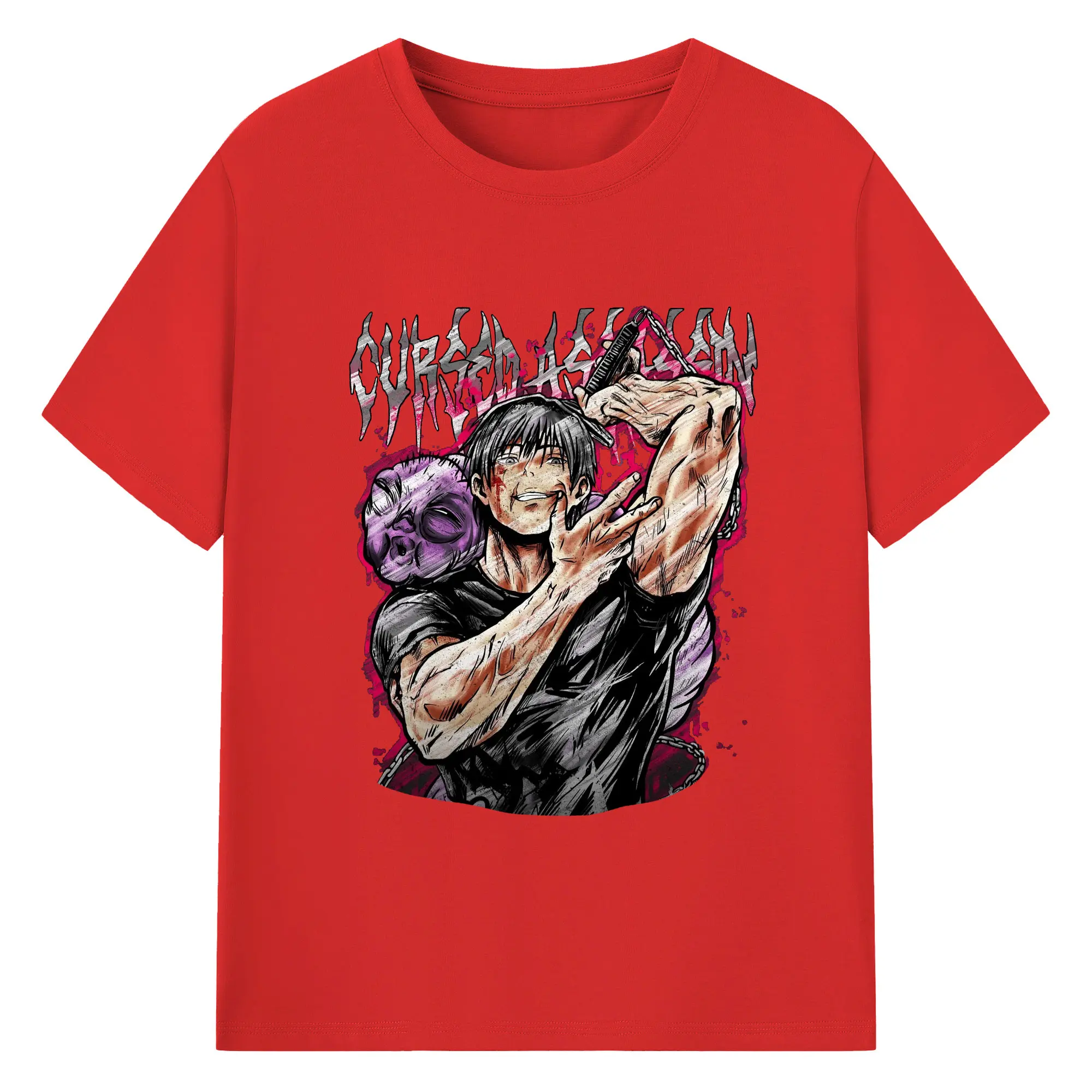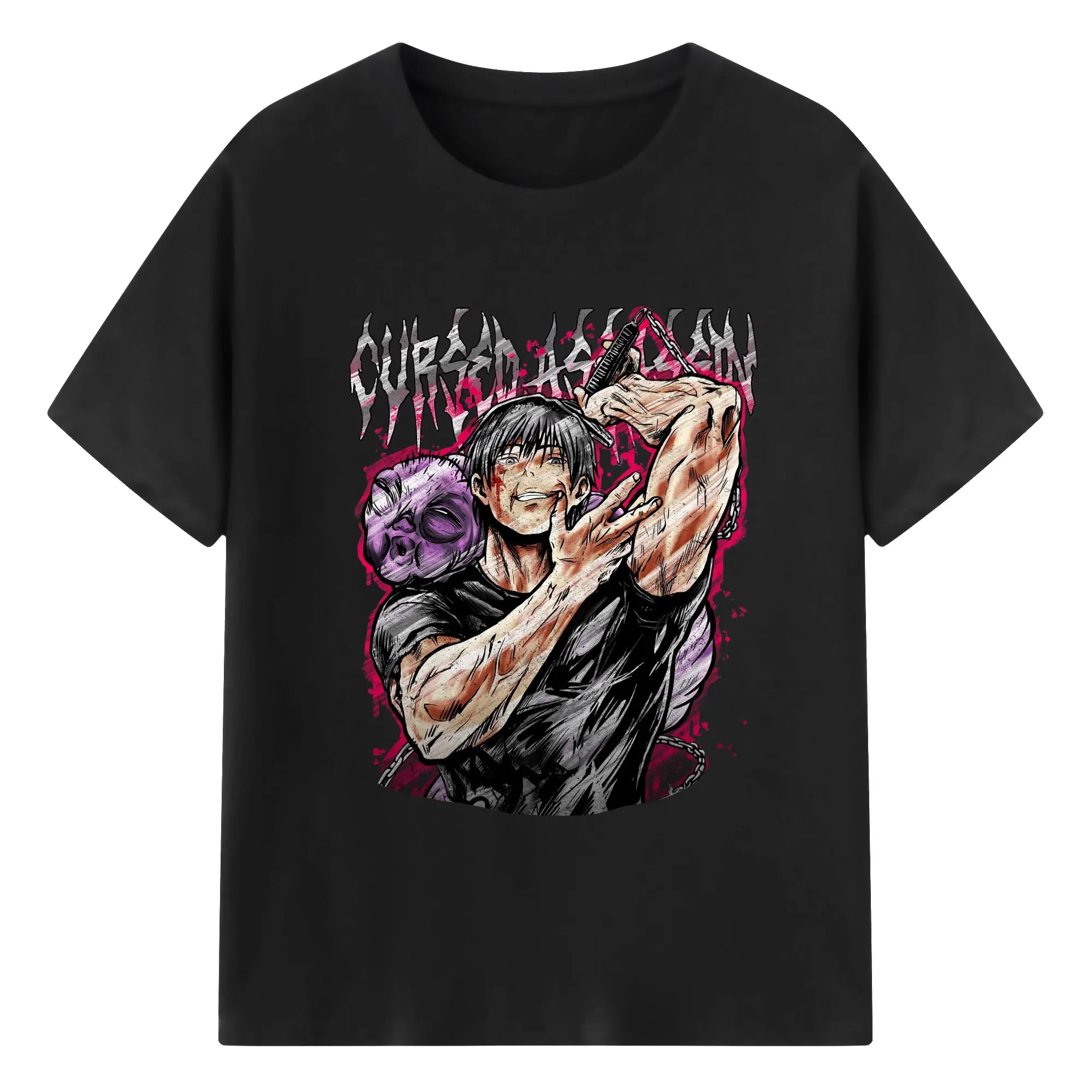 呪術廻戦 虎杖悠仁宿儺 - 綿100% 半袖Tシャツ ・ フロントプリント ・ 快適 通気性 ・ 日常使い 散歩 スポーツ用