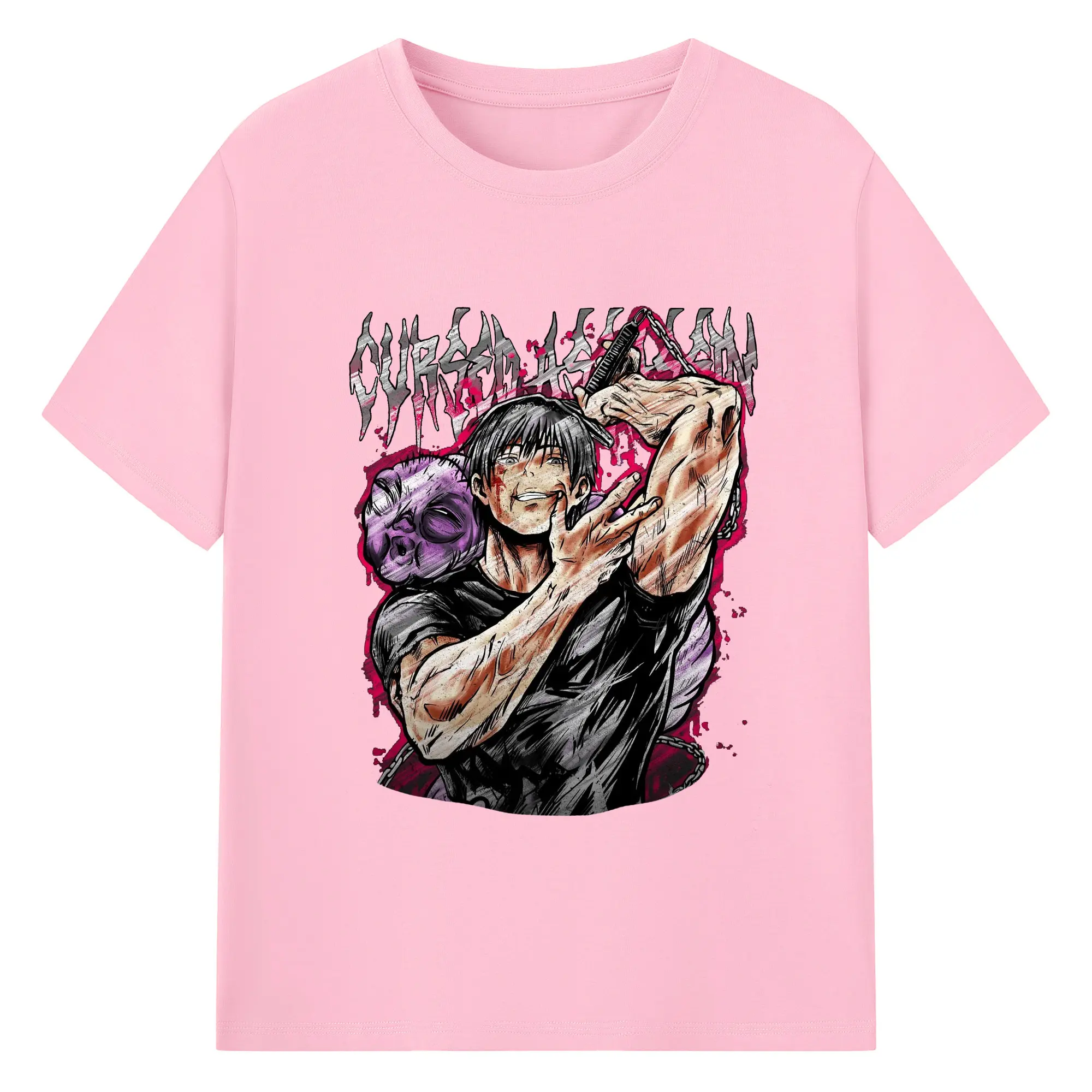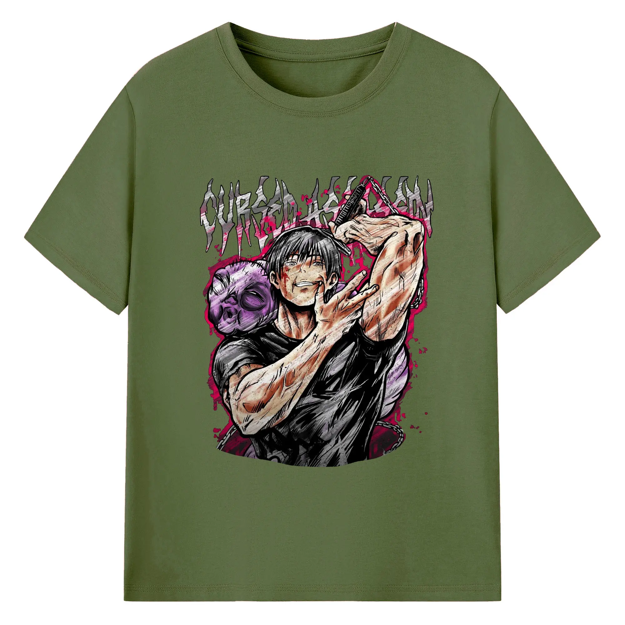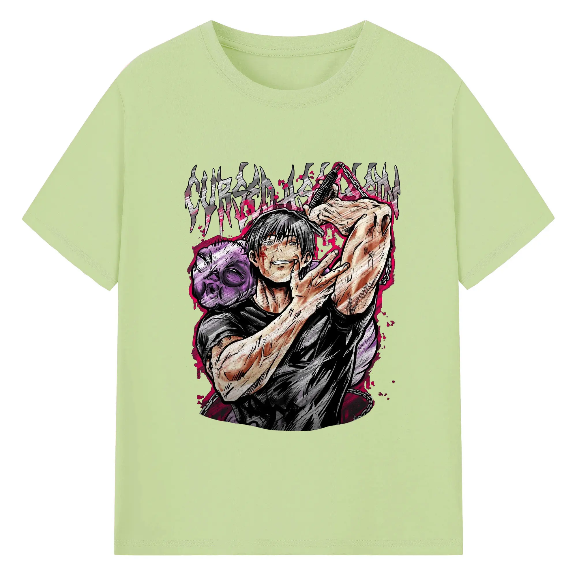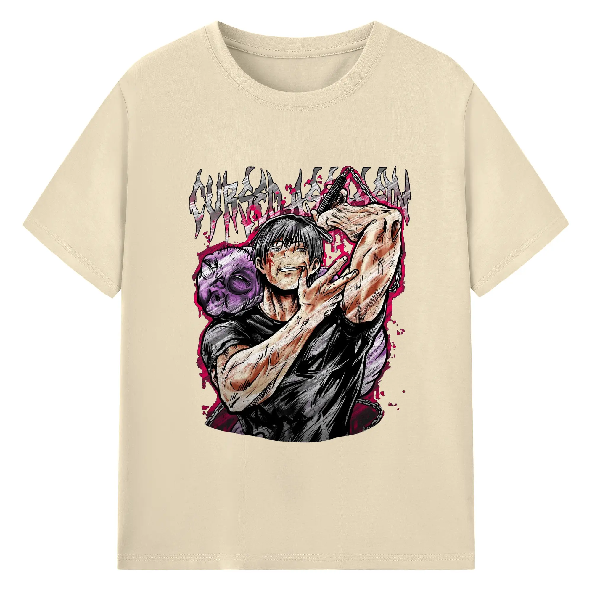 呪術廻戦 虎杖悠仁宿儺 - 綿100% 半袖Tシャツ ・ フロントプリント ・ 快適 通気性 ・ 日常使い 散歩 スポーツ用