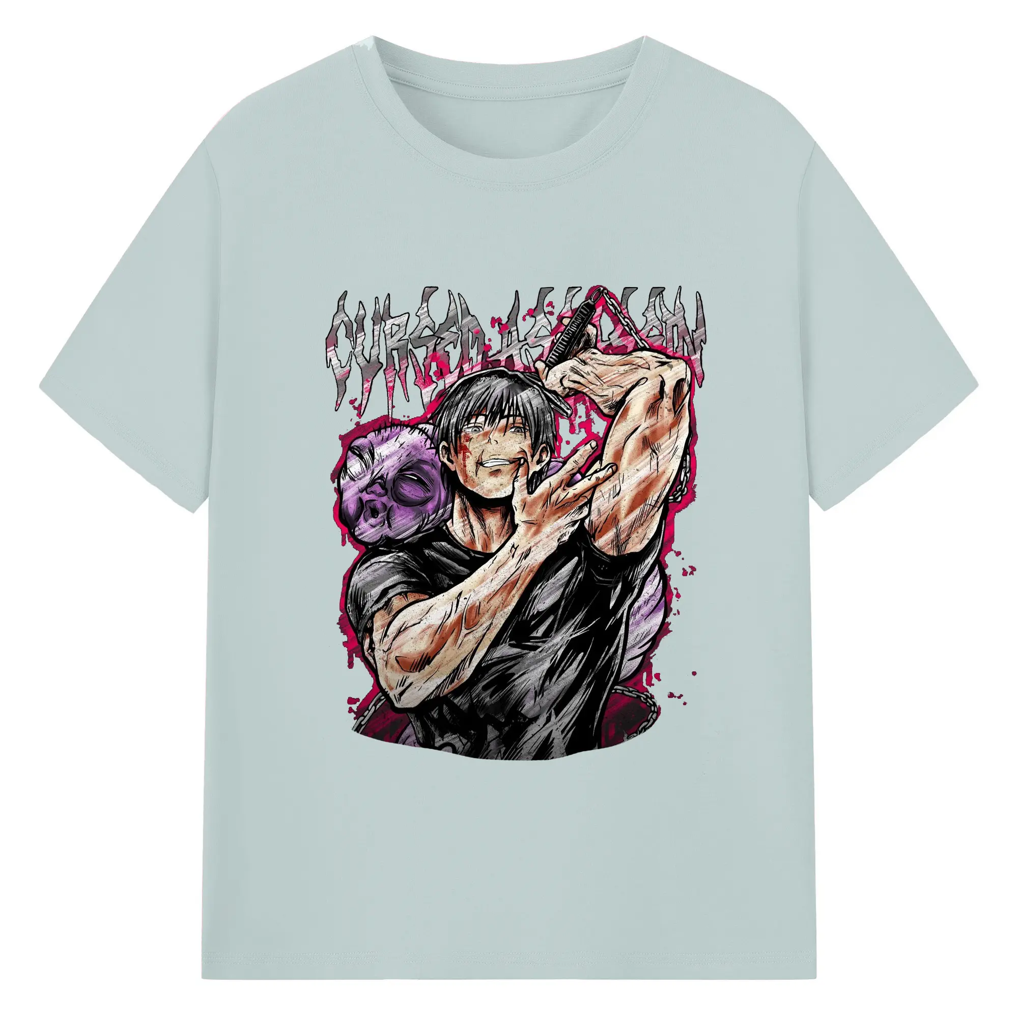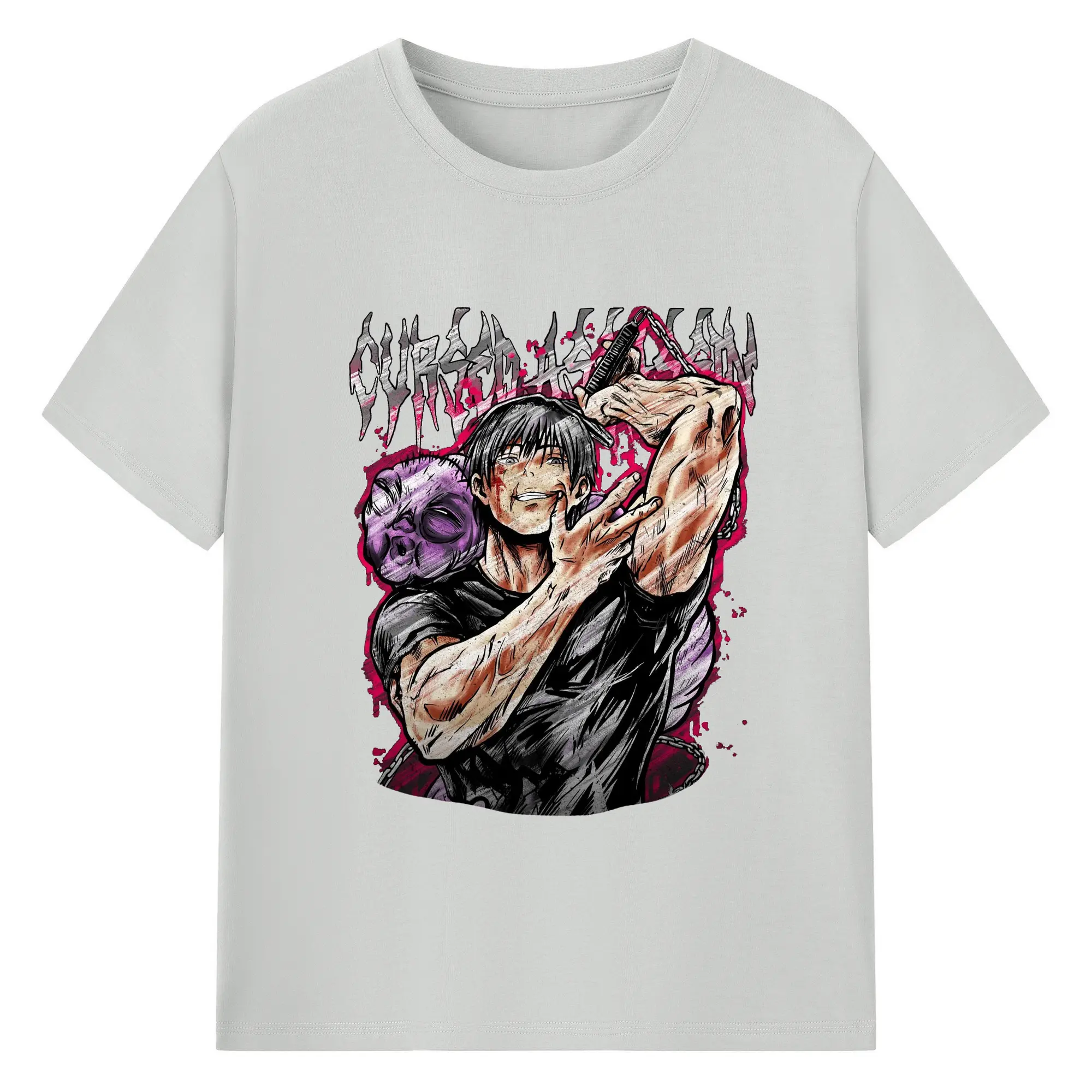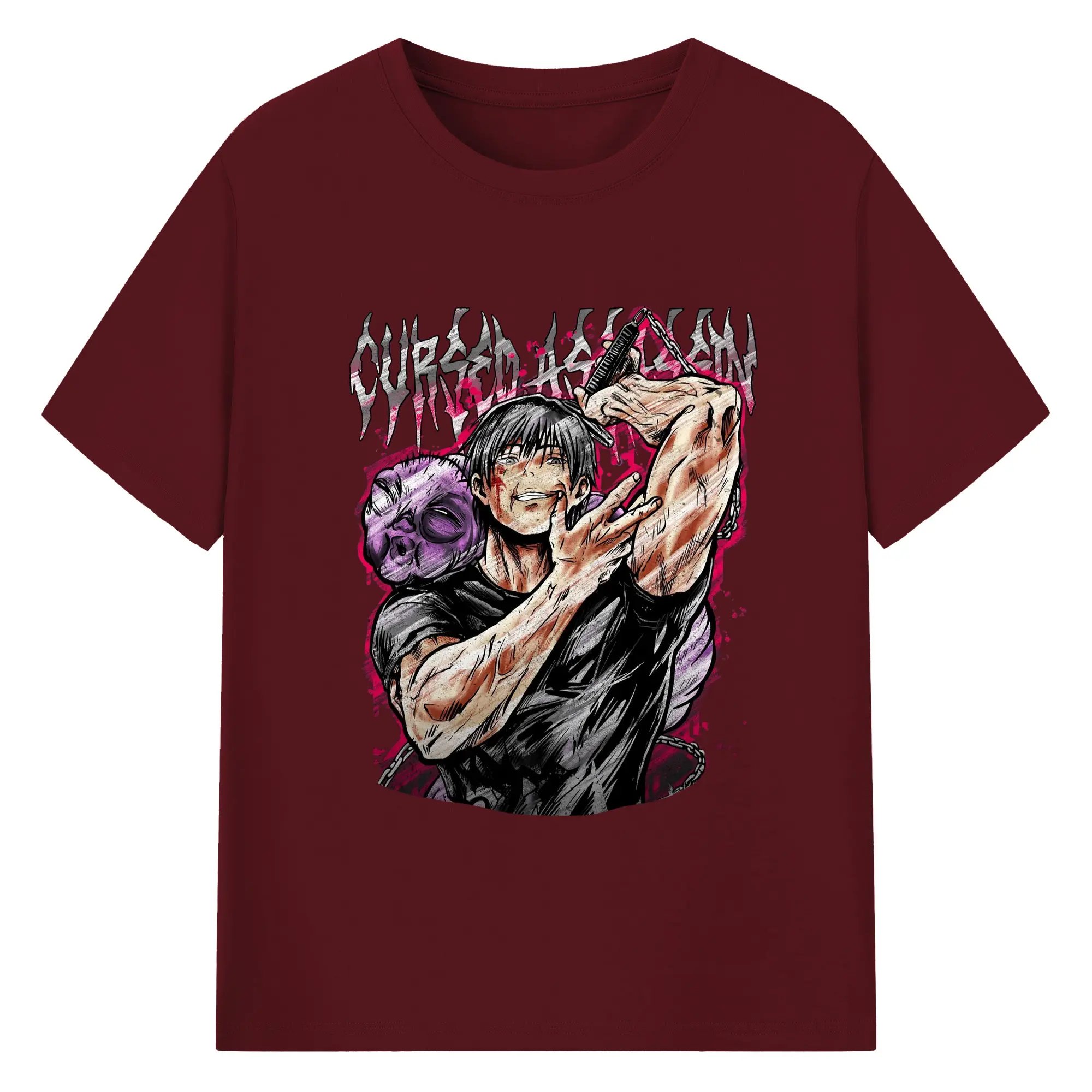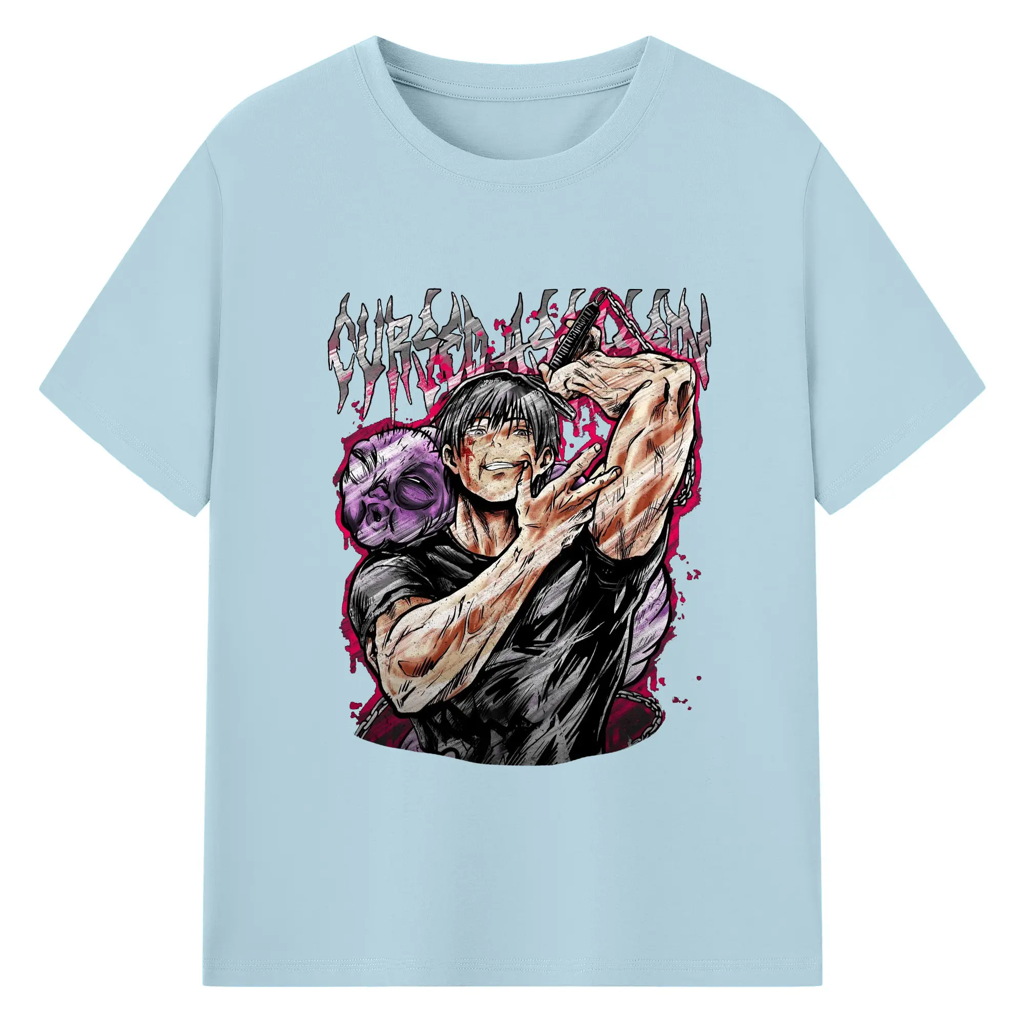 呪術廻戦 虎杖悠仁宿儺 - 綿100% 半袖Tシャツ ・ フロントプリント ・ 快適 通気性 ・ 日常使い 散歩 スポーツ用