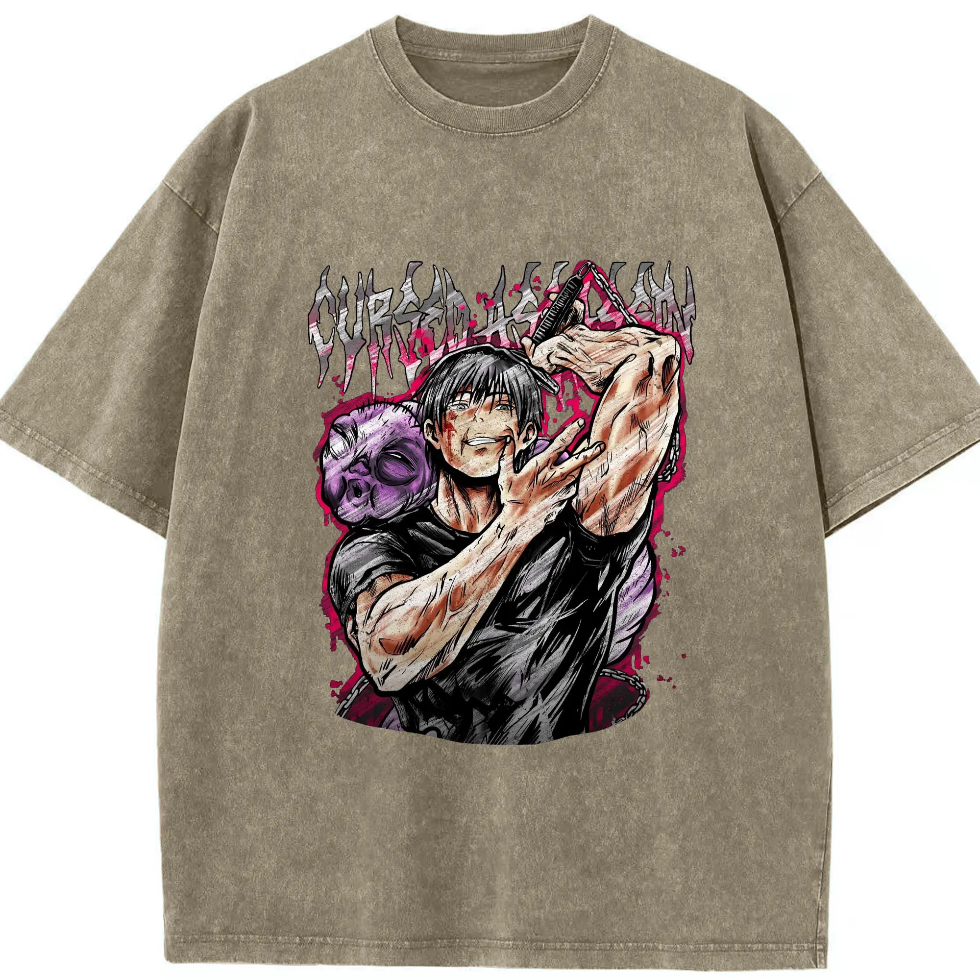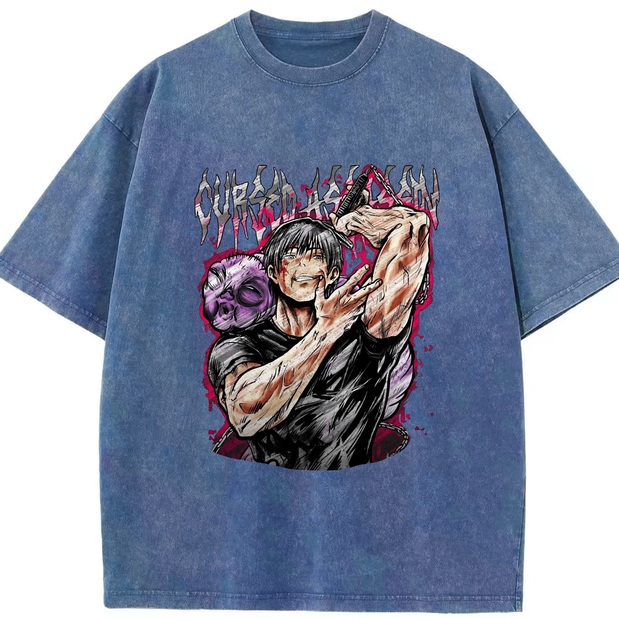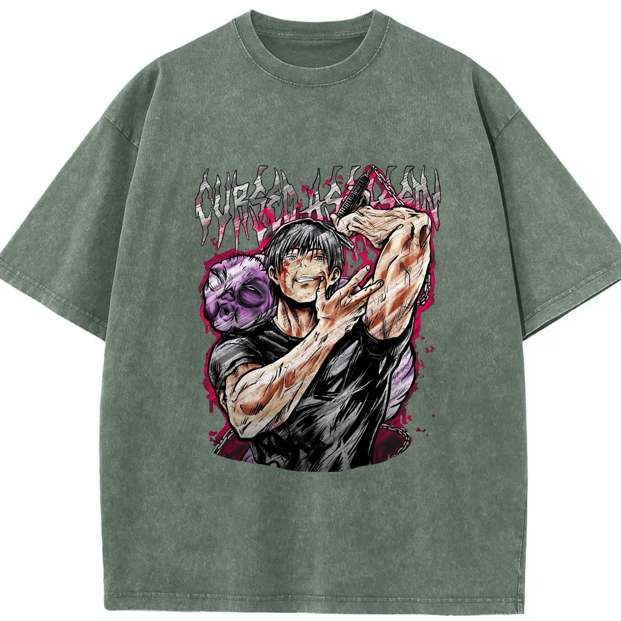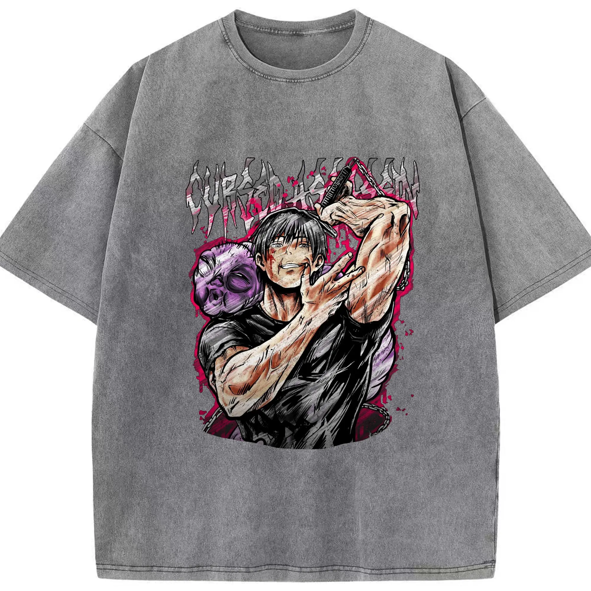 呪術廻戦 伏黒甚爾天与呪縛術師殺し - 綿100% ヴィンテージ風 半袖Tシャツ ・ フロントプリント ・ 柔らか肌触り ・ 通気性 快適 ・ スポーツ カジュアル 外出用