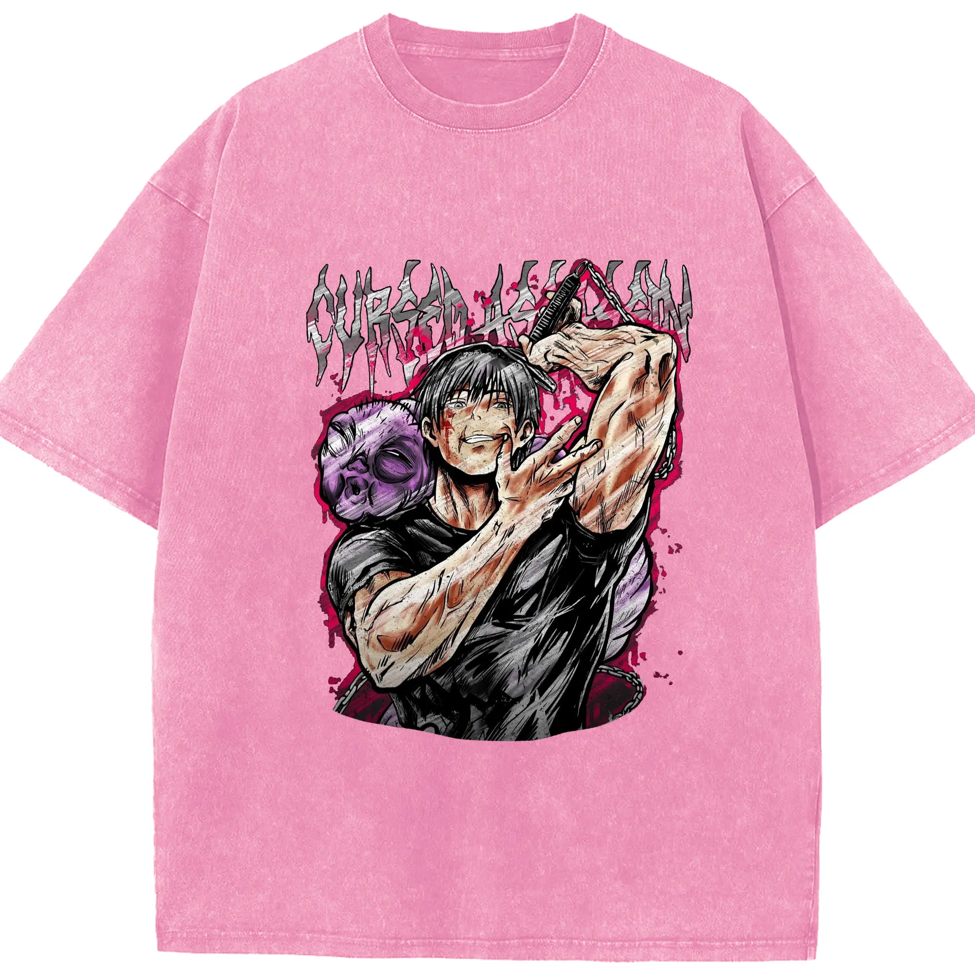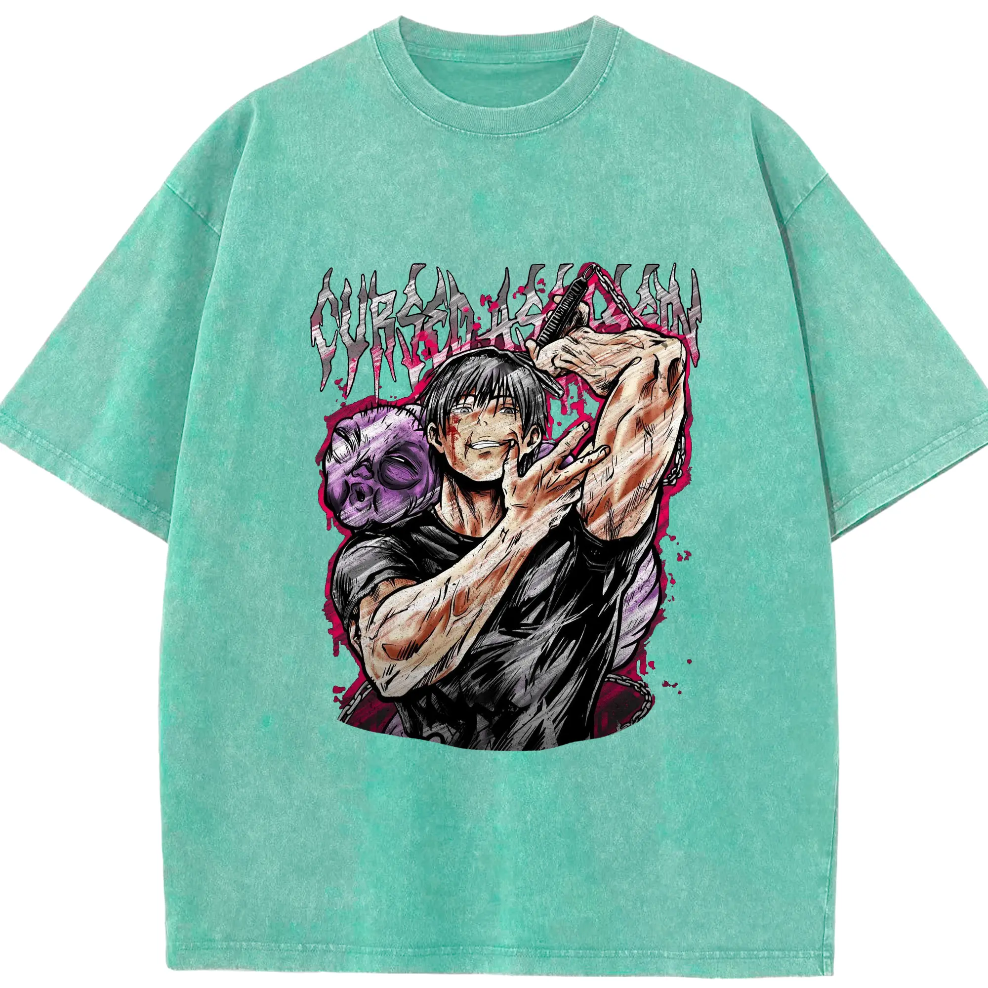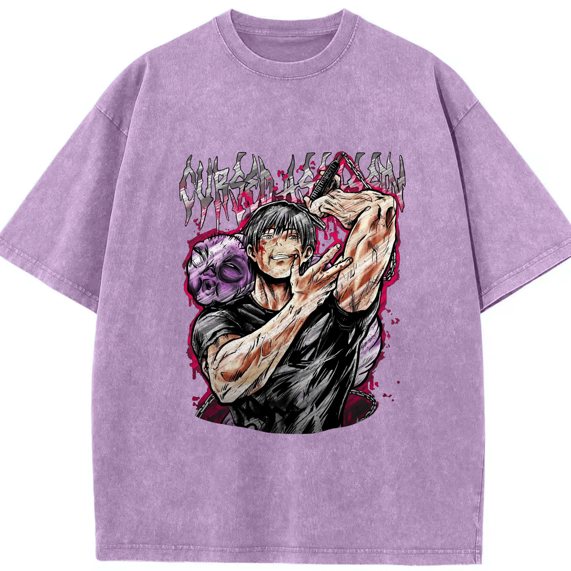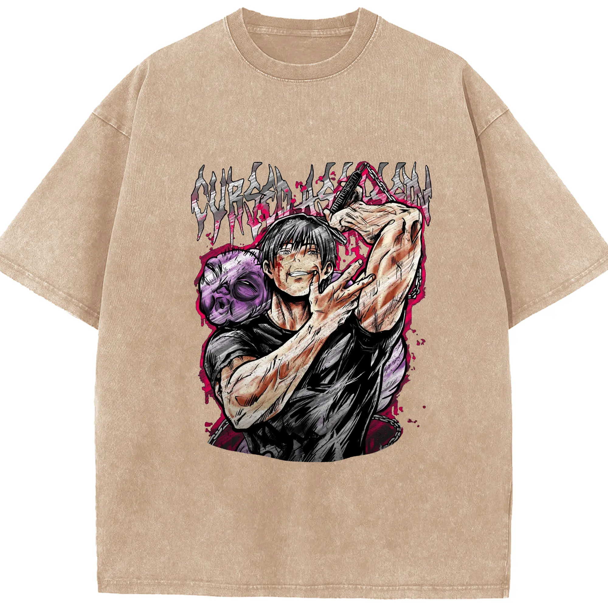 呪術廻戦 伏黒甚爾天与呪縛術師殺し - 綿100% ヴィンテージ風 半袖Tシャツ ・ フロントプリント ・ 柔らか肌触り ・ 通気性 快適 ・ スポーツ カジュアル 外出用