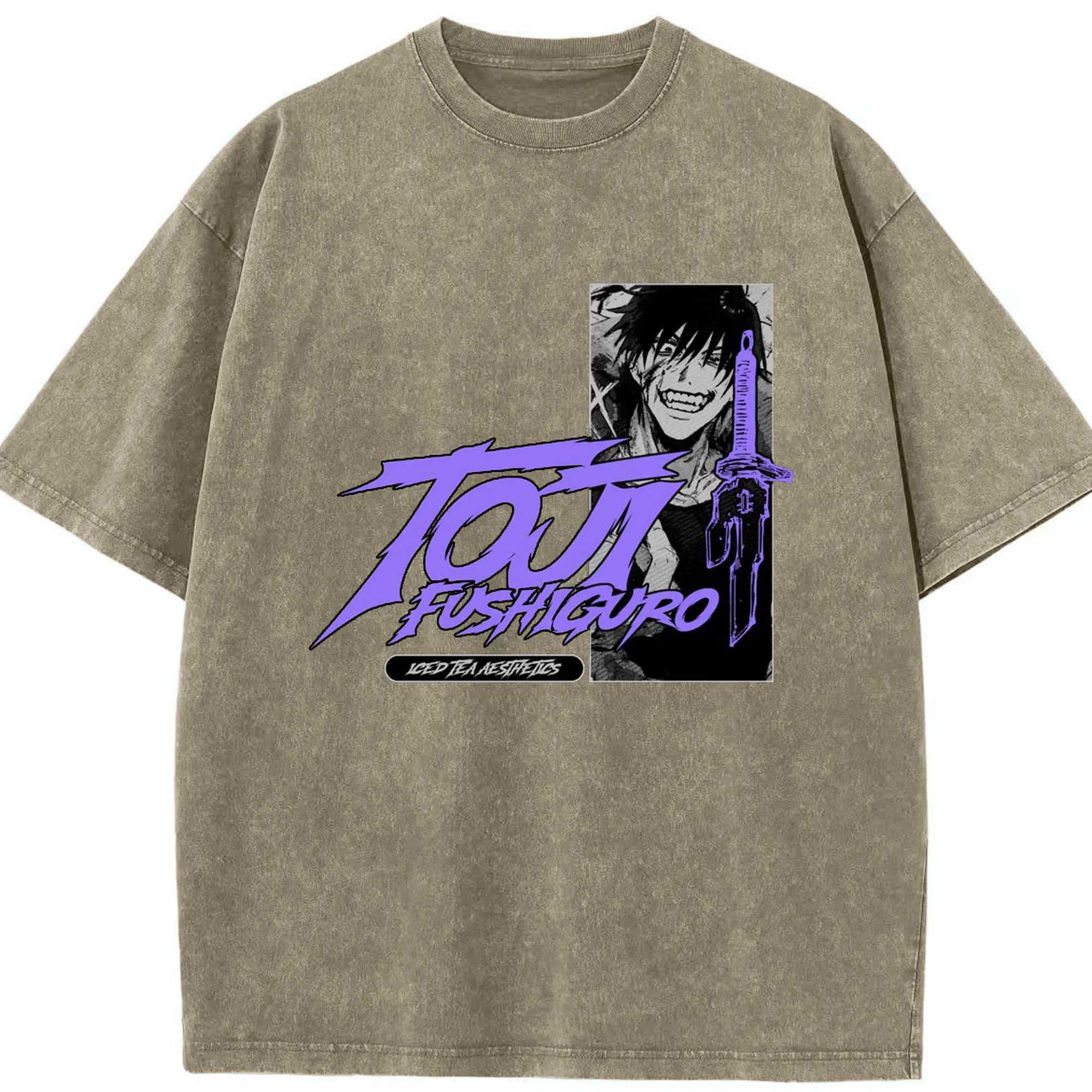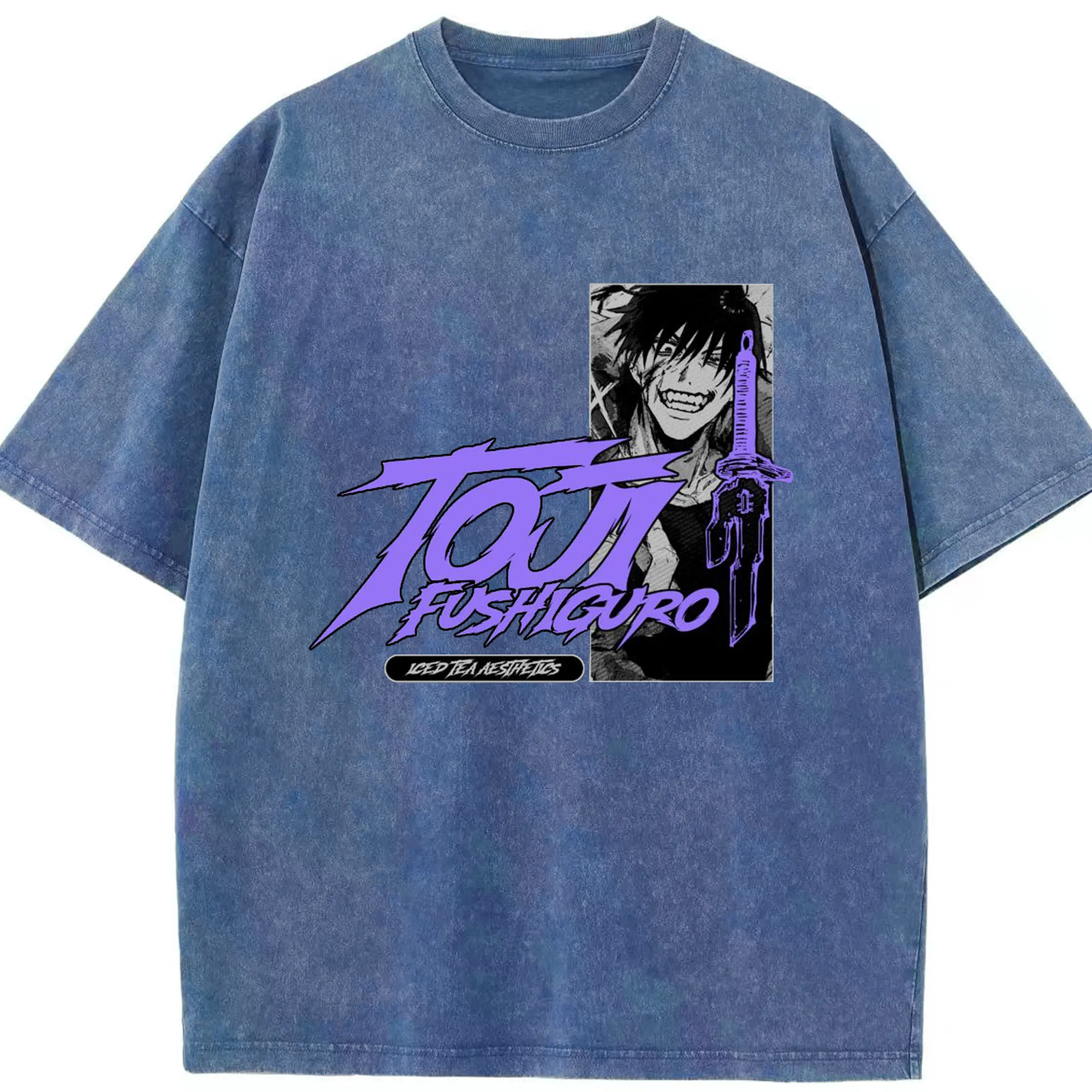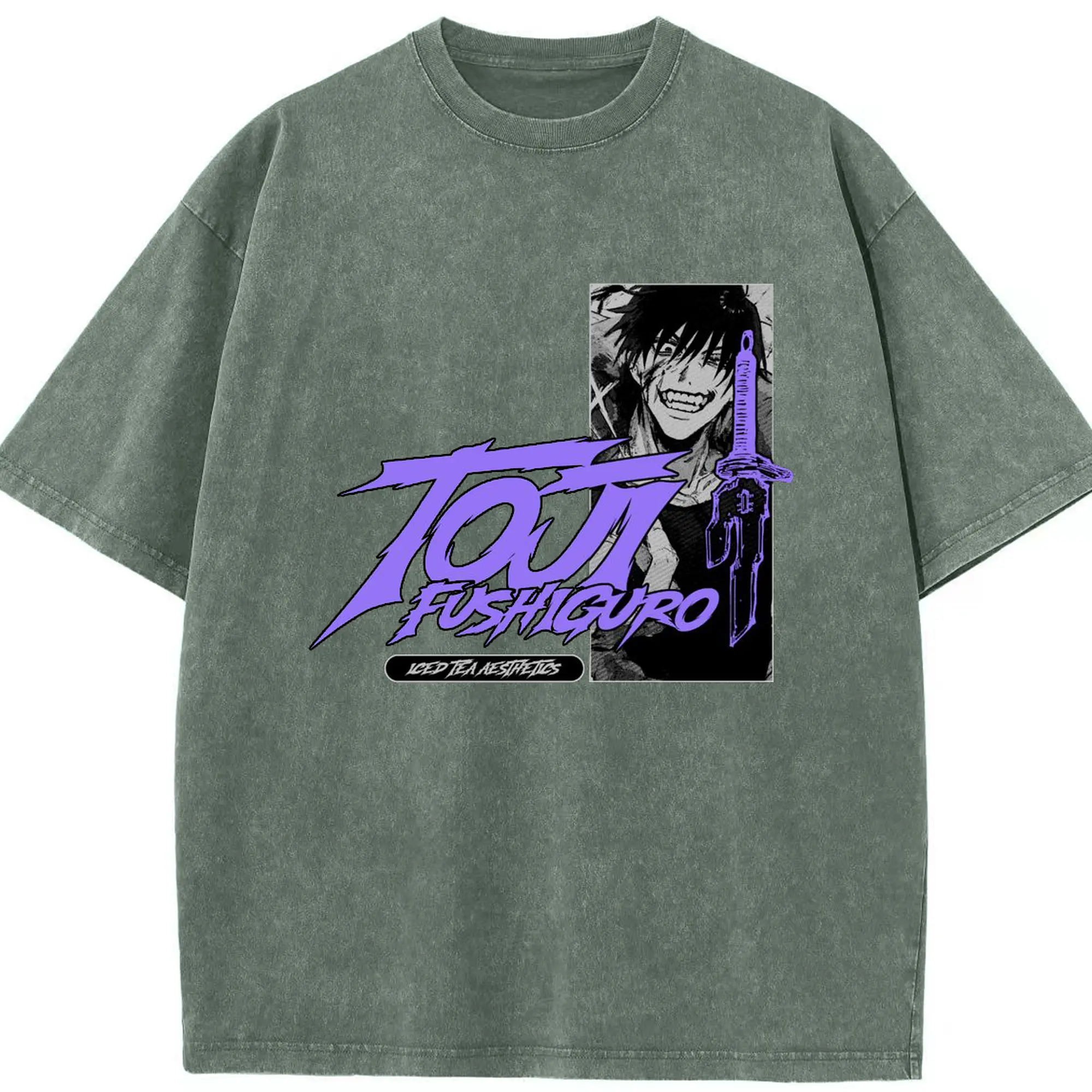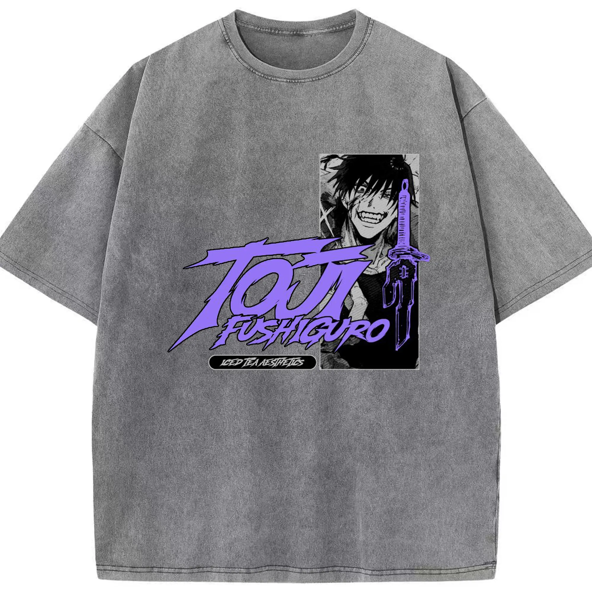 呪術廻戦 伏黒甚爾天与呪縛 - 綿100% ヴィンテージ風 半袖Tシャツ ・ フロントプリント ・ 柔らか肌触り ・ 通気性 快適 ・ スポーツ カジュアル 外出用