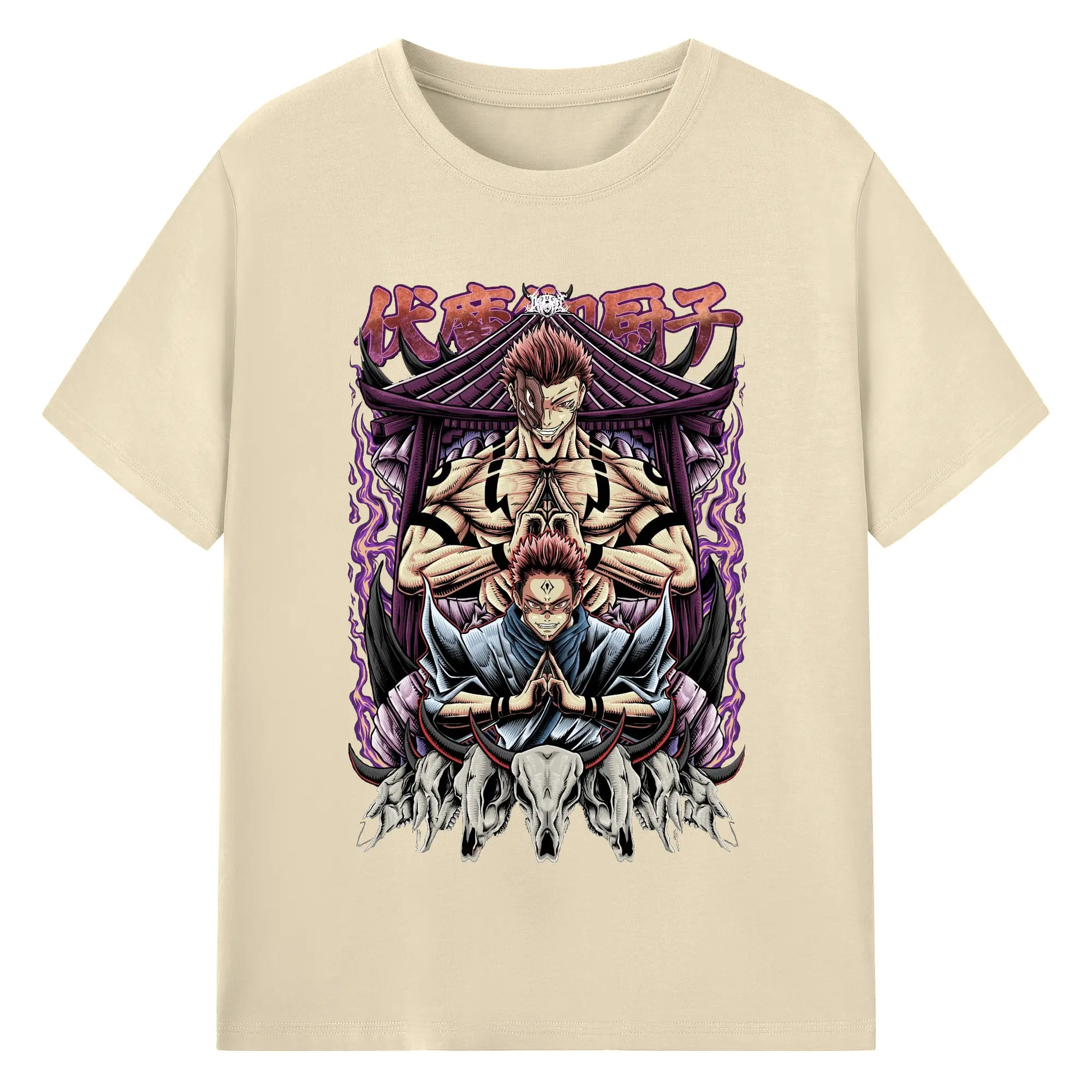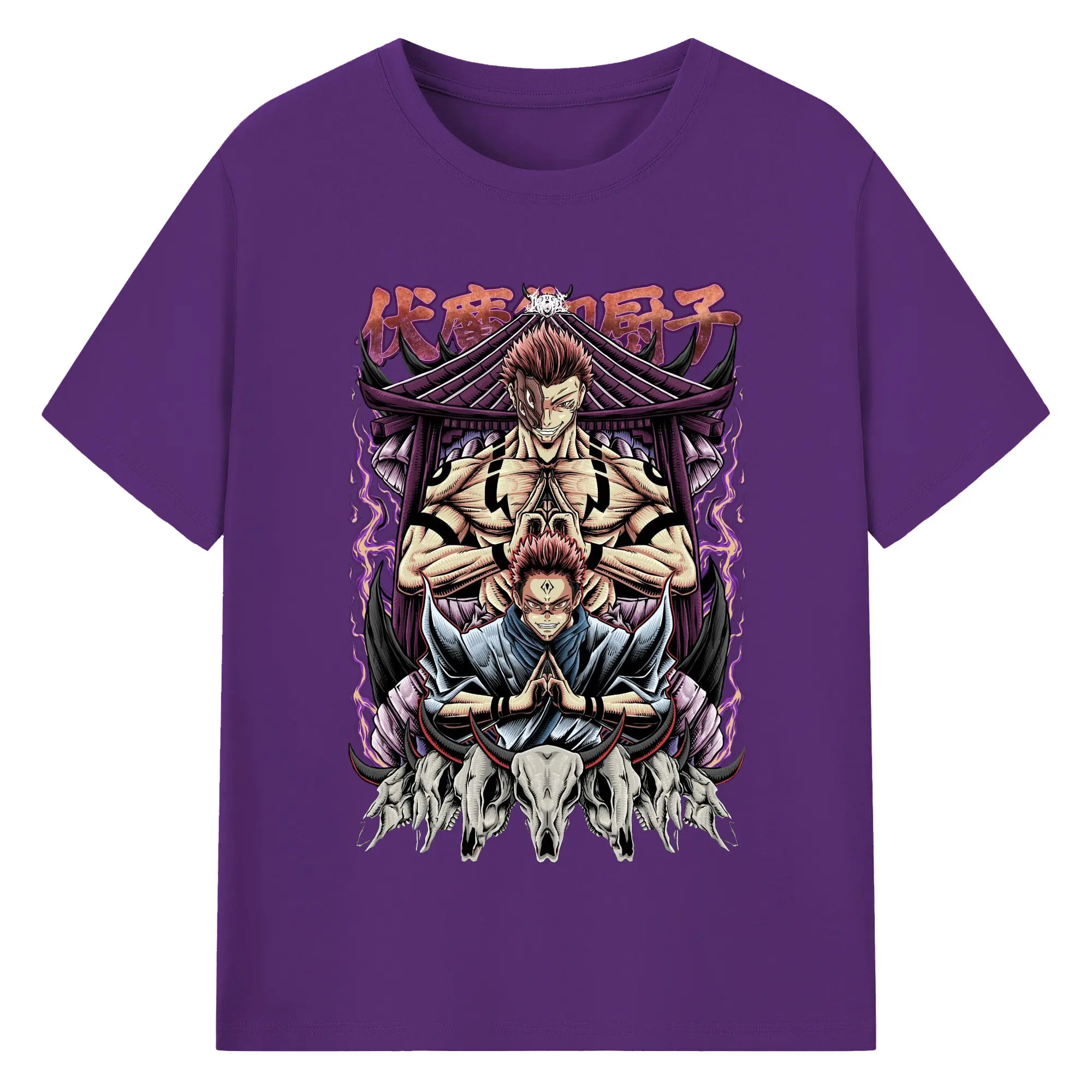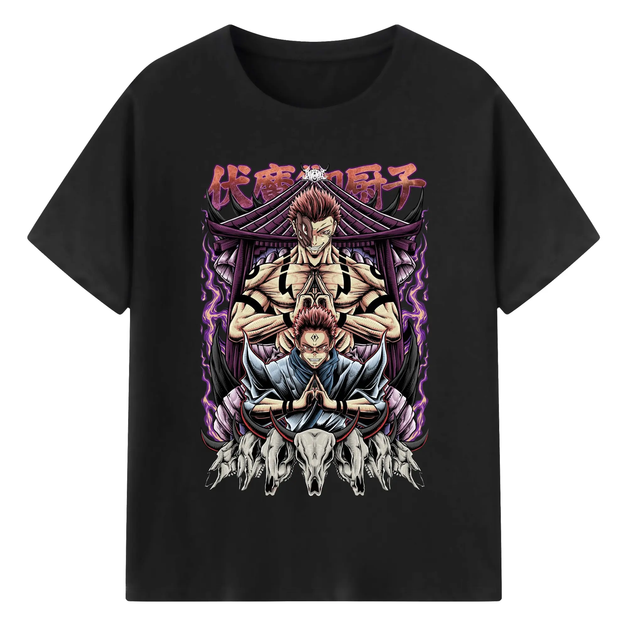 呪術廻戦 宿儺覚醒 領域展開 - 綿100% 半袖Tシャツ ・ フロントプリント ・ 快適 通気性 ・ 日常使い 散歩 スポーツ用