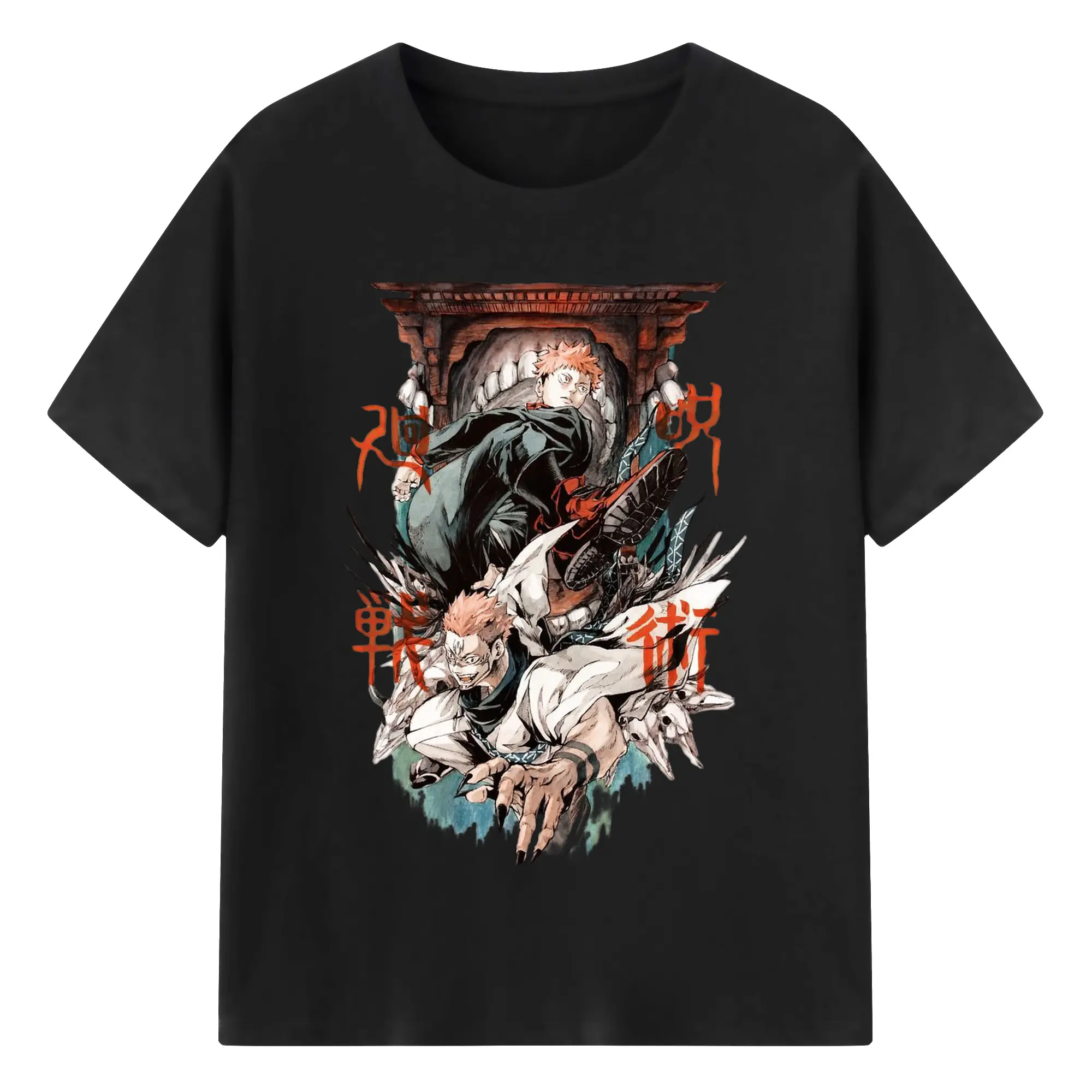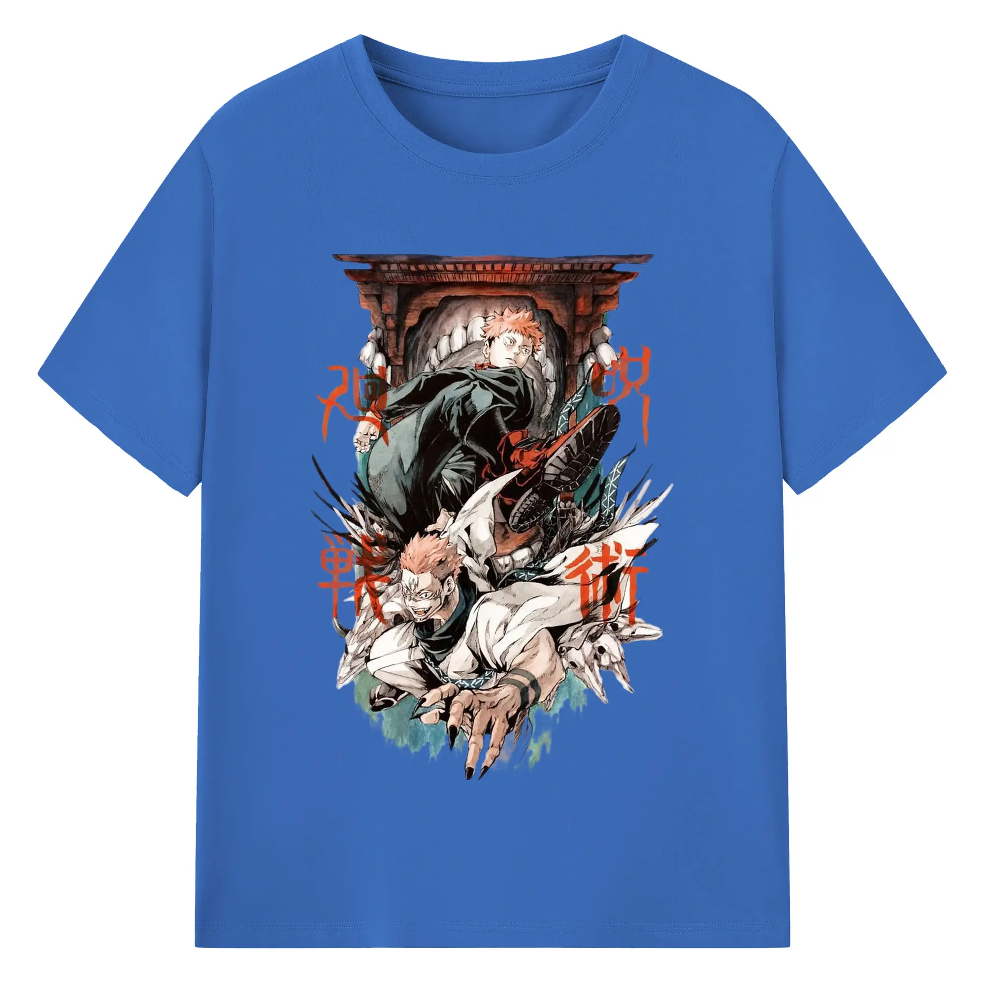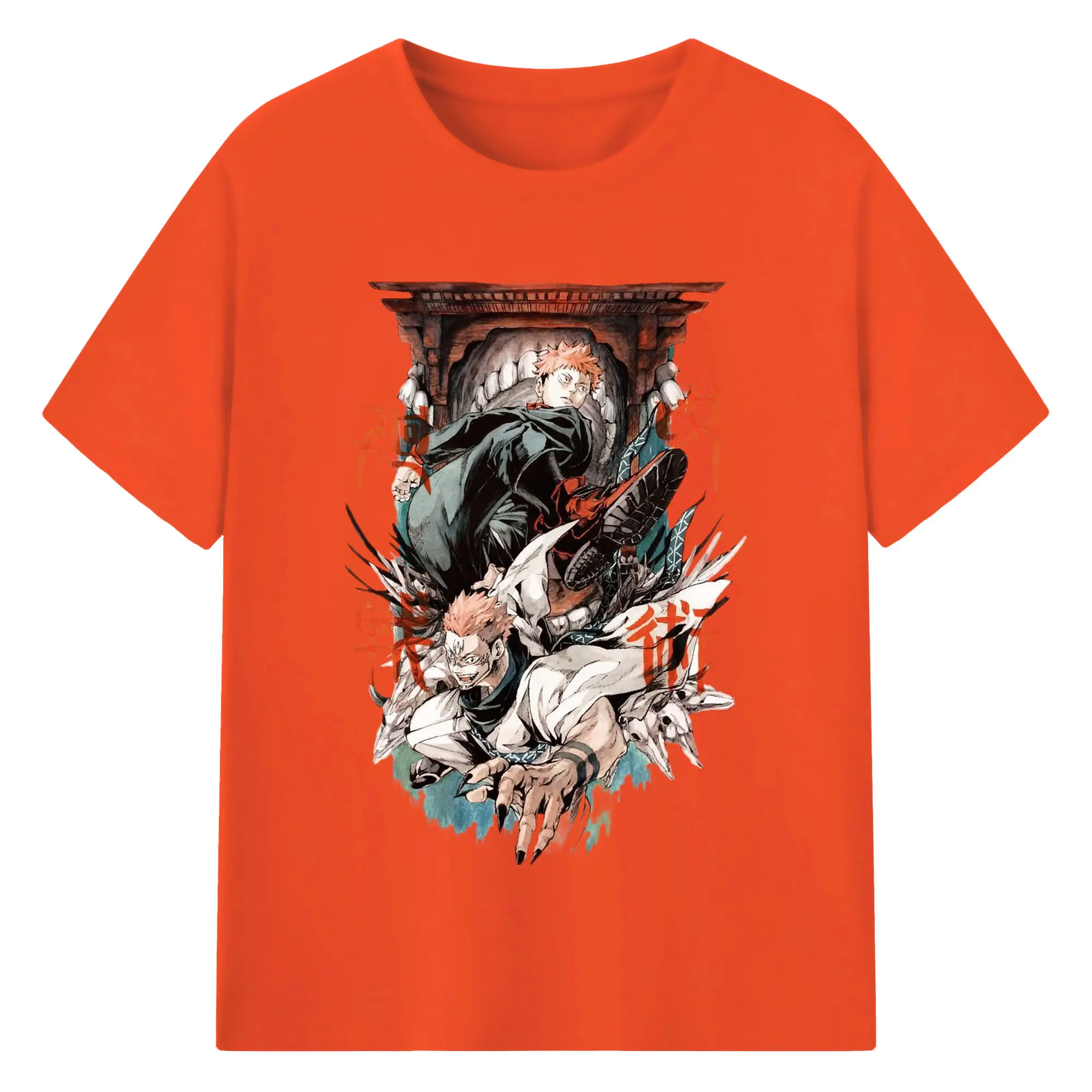 呪術廻戦 宿儺覚醒 両面宿儺 - 綿100% 半袖Tシャツ ・ フロントプリント ・ 快適 通気性 ・ 日常使い 散歩 スポーツ用