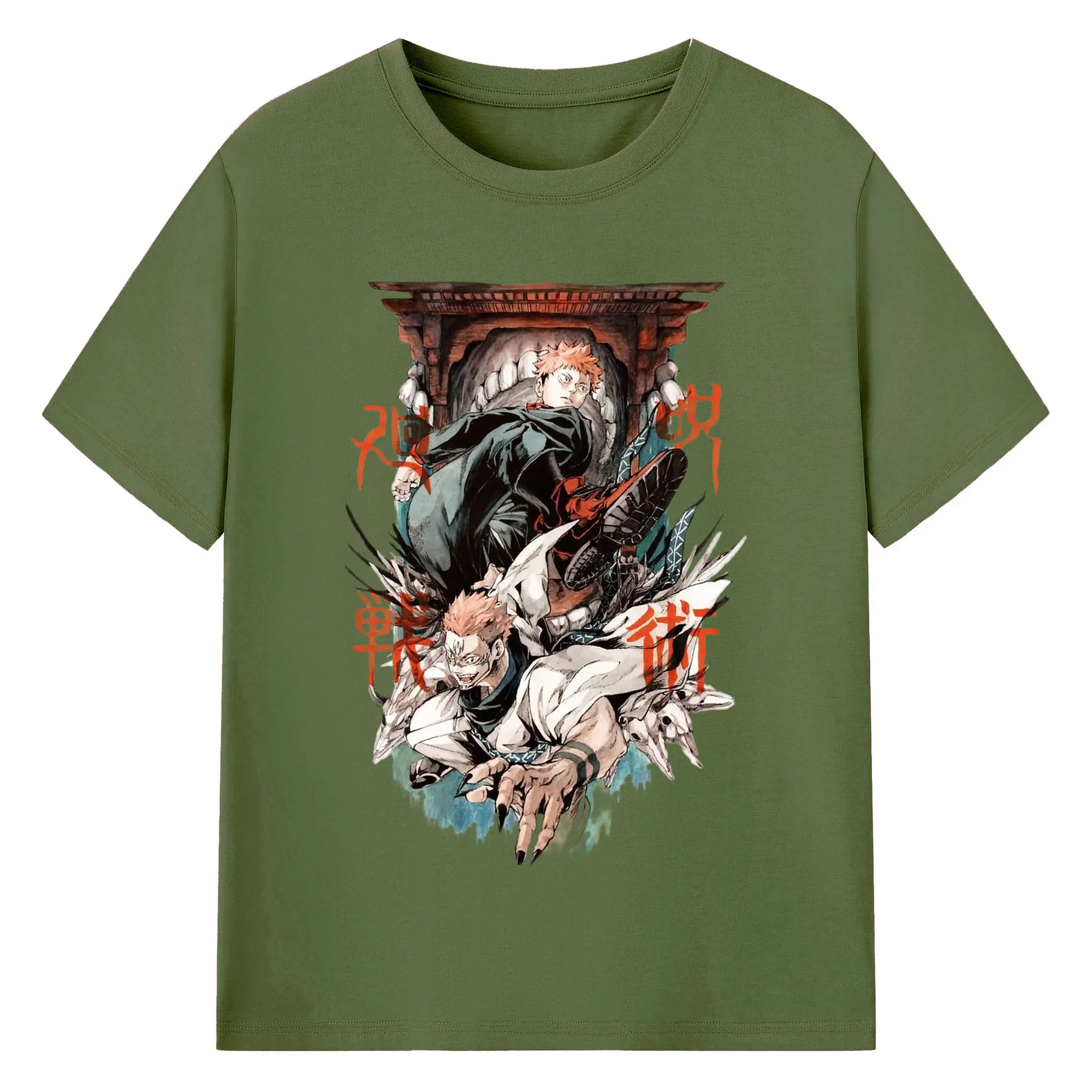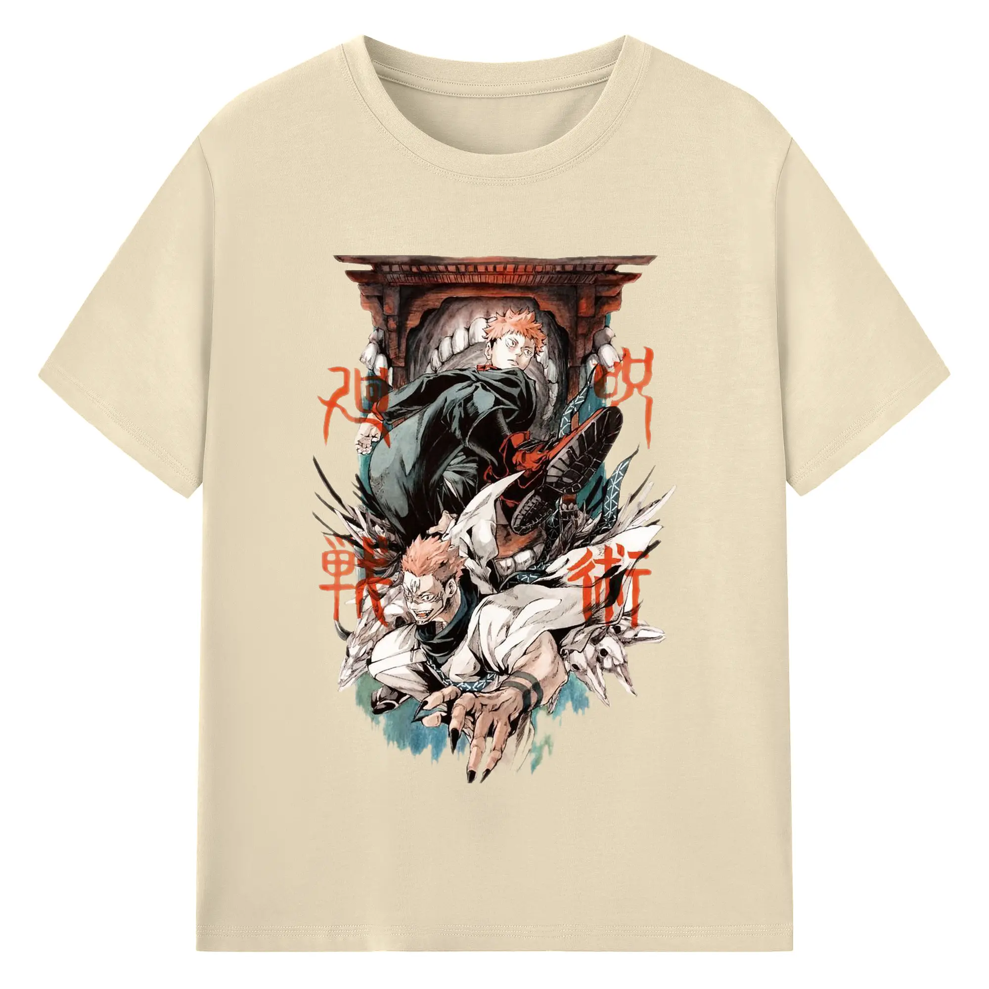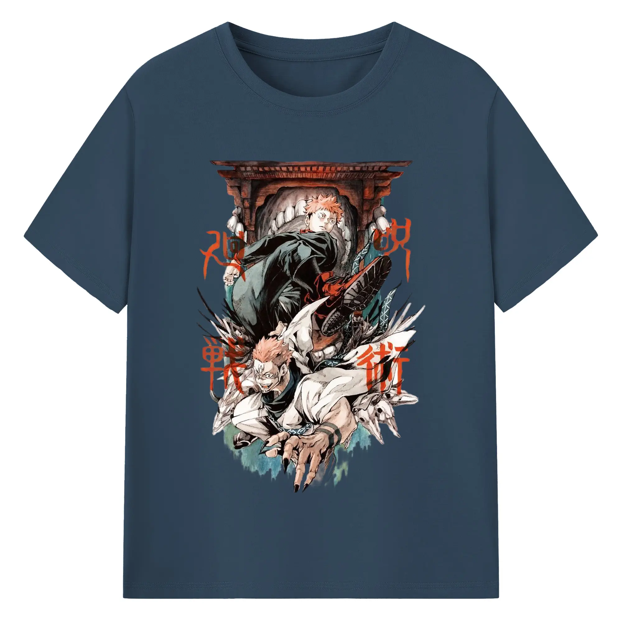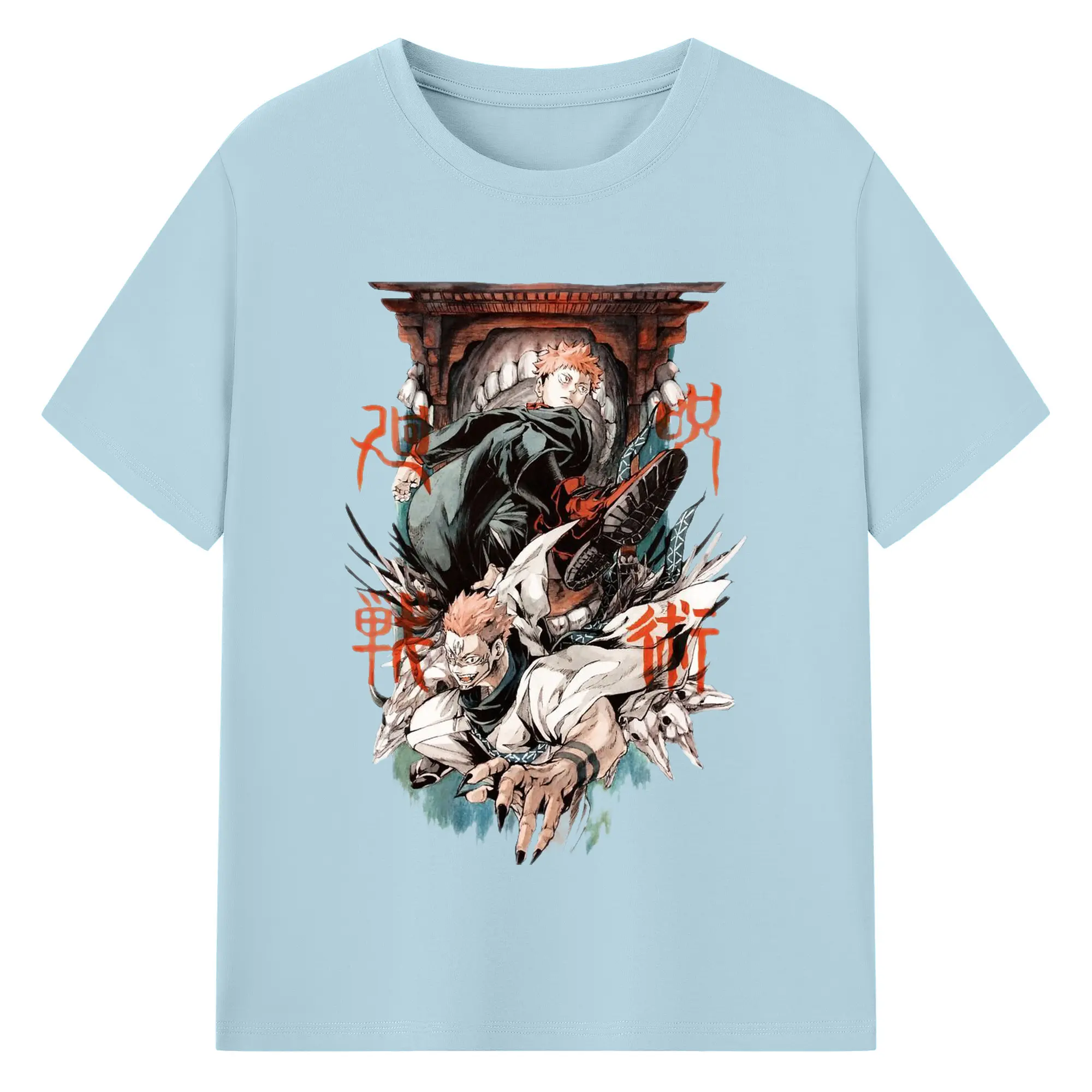 呪術廻戦 宿儺覚醒 両面宿儺 - 綿100% 半袖Tシャツ ・ フロントプリント ・ 快適 通気性 ・ 日常使い 散歩 スポーツ用