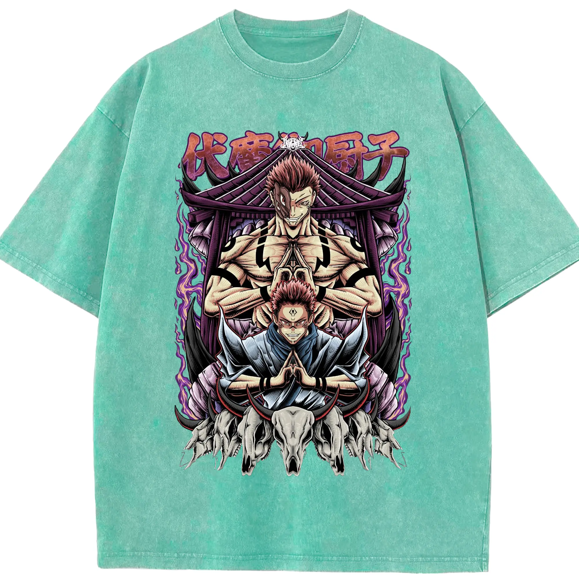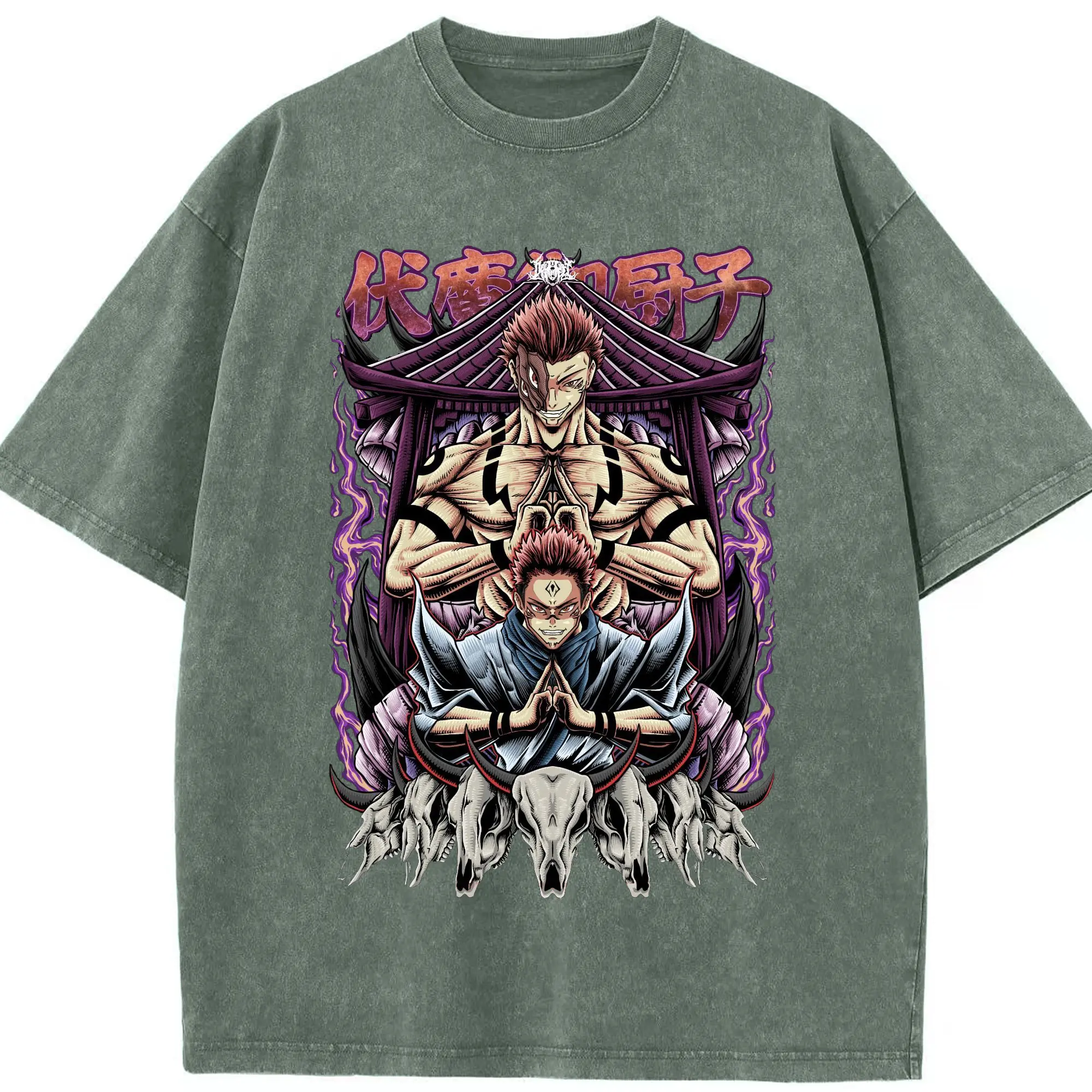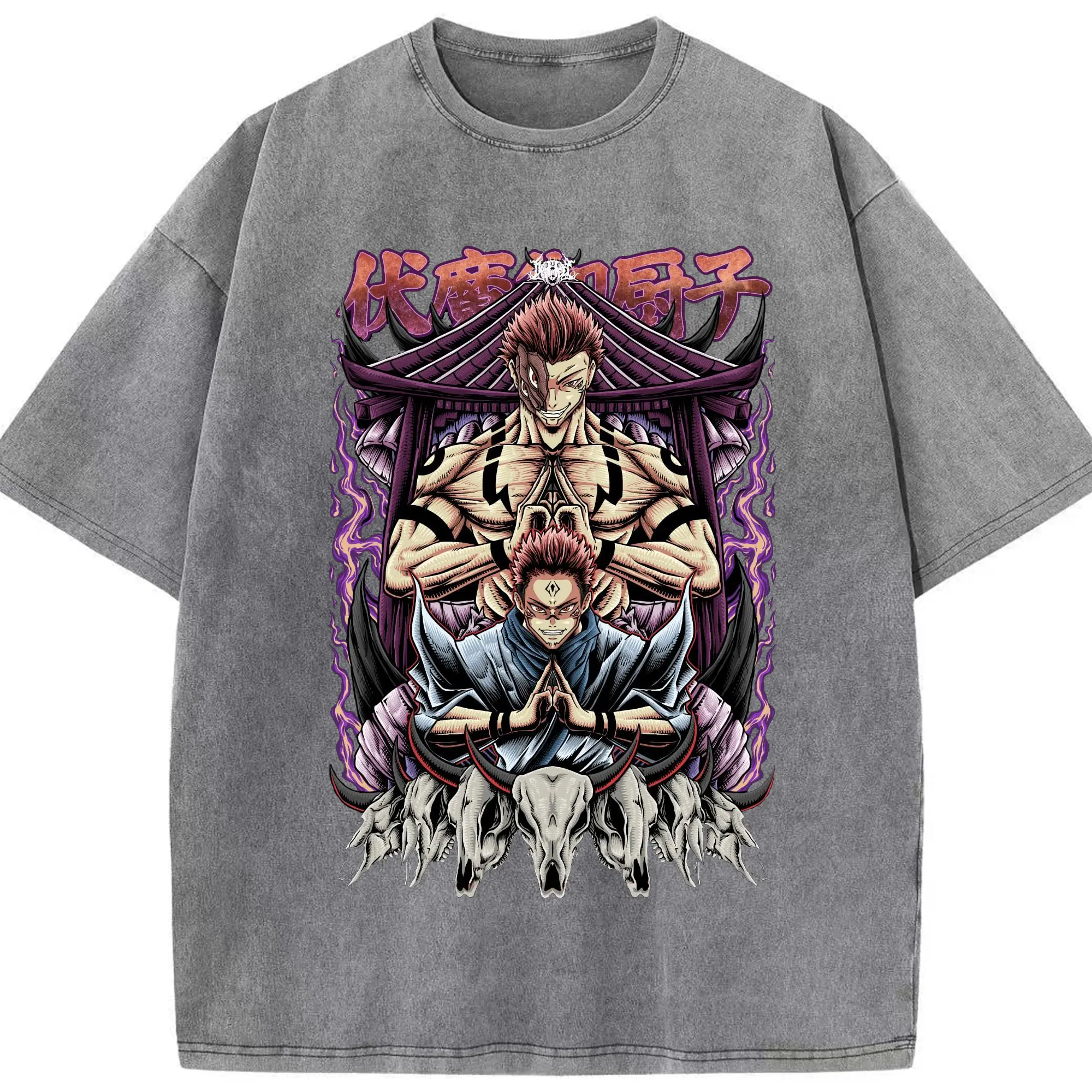 呪術廻戦 宿儺覚醒 領域展開 - 綿100% ヴィンテージ風 半袖Tシャツ ・ フロントプリント ・ 柔らか肌触り ・ 通気性 快適 ・ スポーツ カジュアル 外出用