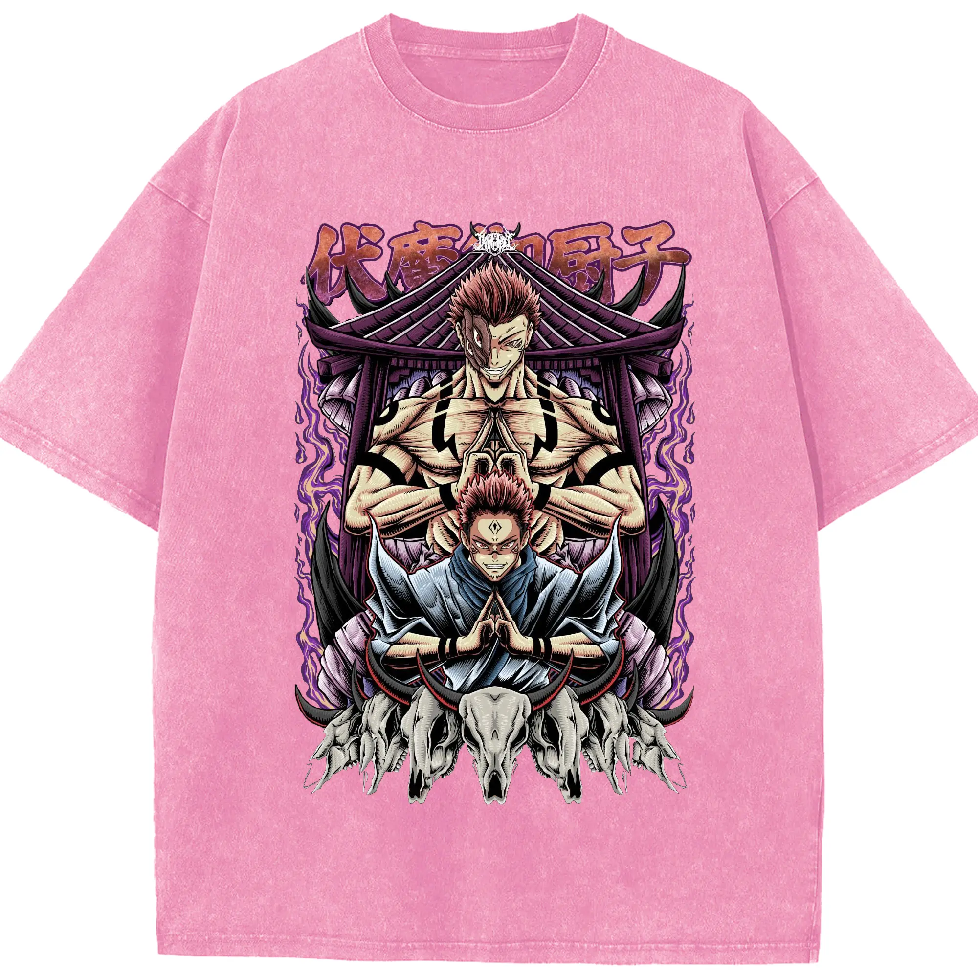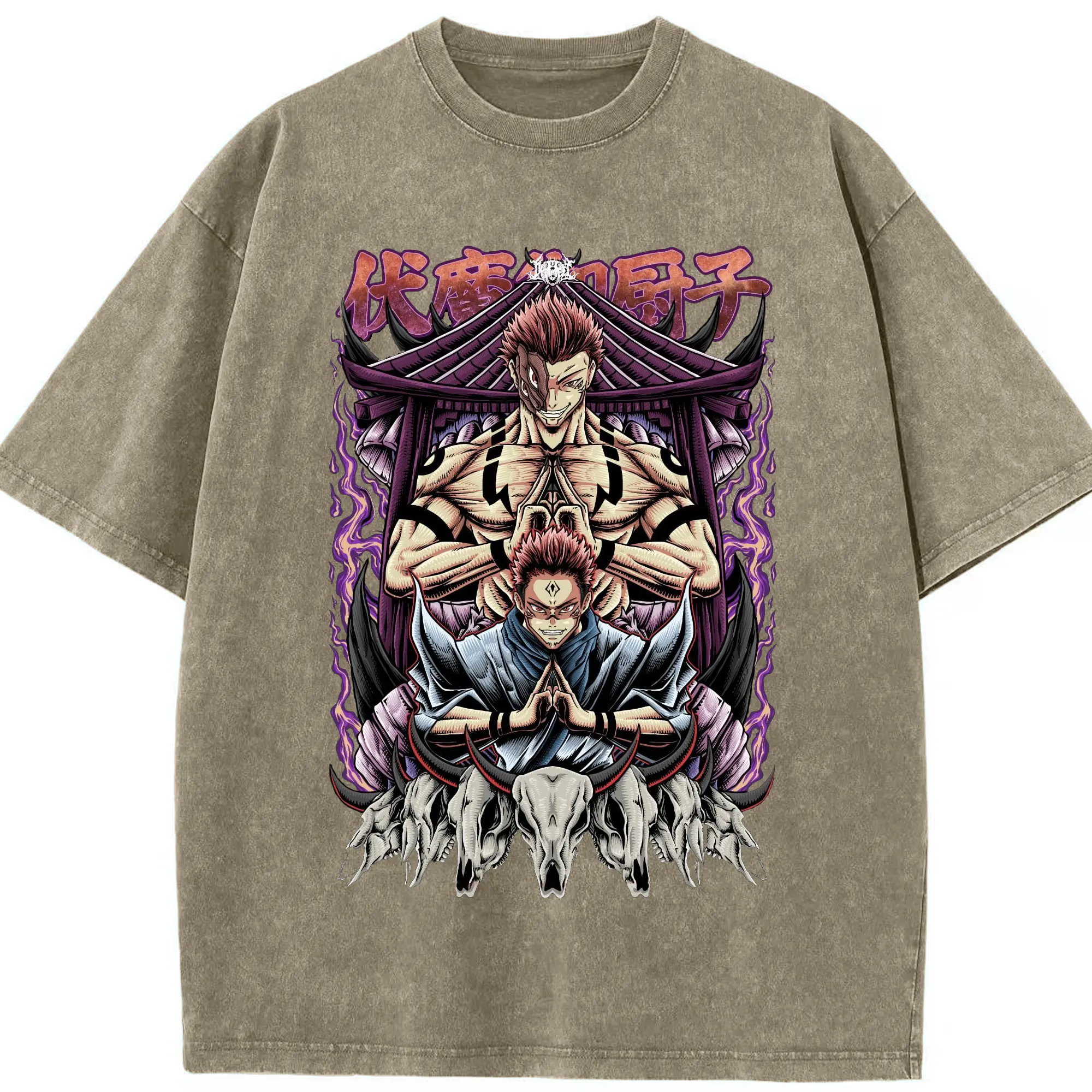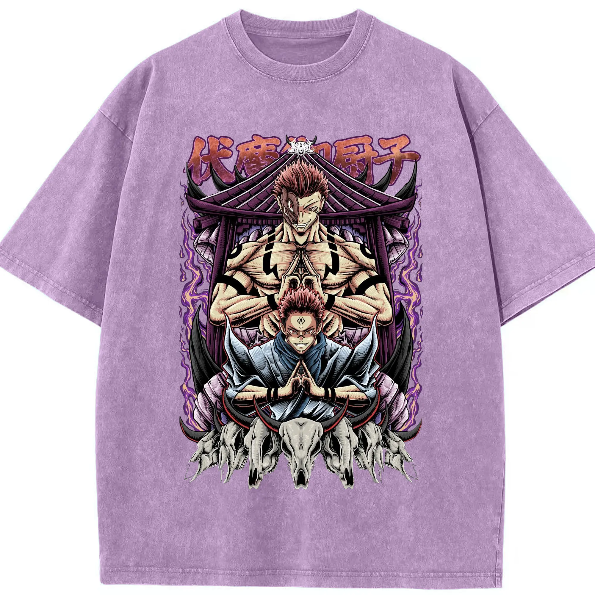 呪術廻戦 宿儺覚醒 領域展開 - 綿100% ヴィンテージ風 半袖Tシャツ ・ フロントプリント ・ 柔らか肌触り ・ 通気性 快適 ・ スポーツ カジュアル 外出用