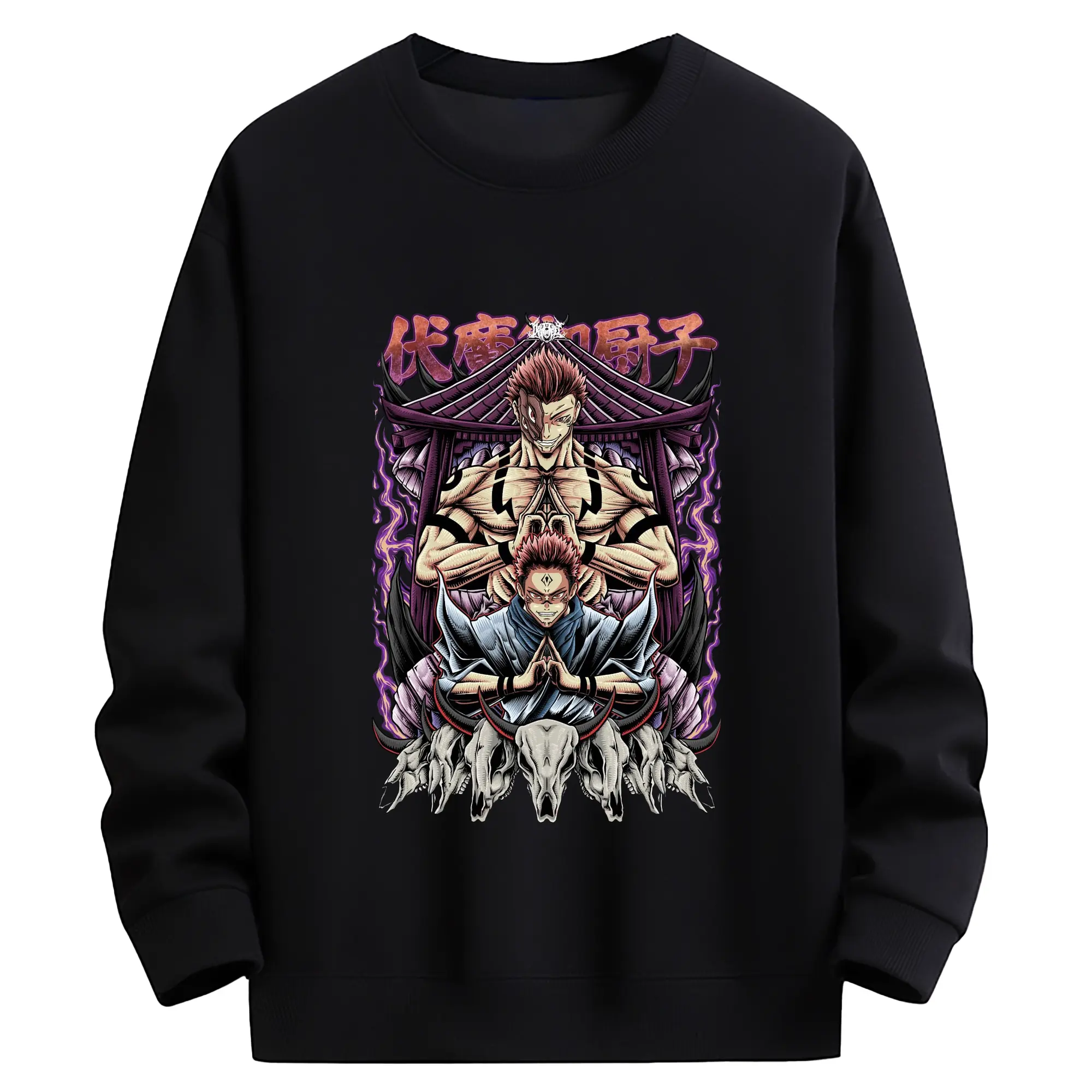 呪術廻戦 宿儺覚醒 領域展開 - 高品質 クルーネック スウェット ・ コットン59% ポリエステル41% ・ ユニセックス 長袖 トレーナー ・ カジュアル デイリー スポーツ 散歩用